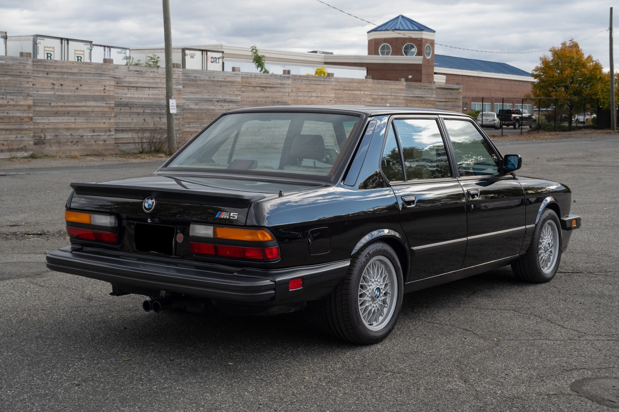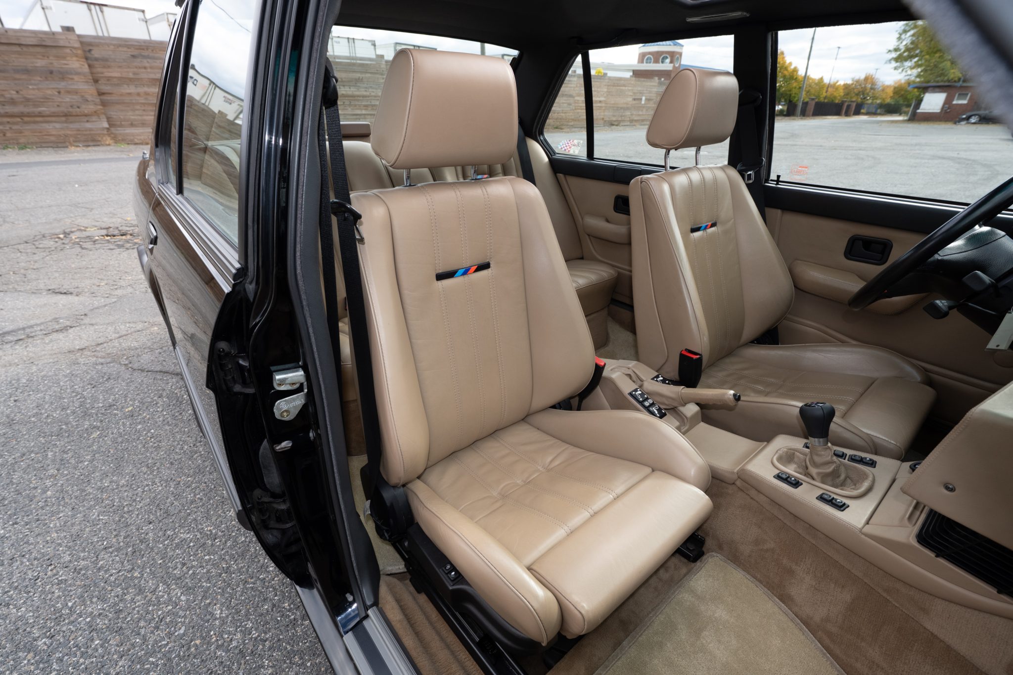 it is powered by a 3.5-liter inline-six paired with a five-speed manual transmission. Equipment includes a limited-slip differential, 16″ basketweave alloy wheels, an electric sunroof, heated power-adjustable front seats, a cassette stereo, cruise control, and air conditioning. Work under current ownership consisted of adjusting the valves, changing the drivetrain lubricants, and flushing the brake and power-steering fluids in addition to replacing the clutch, battery, spark plugs, suspension-leveling accumulators, some transmission seals, and more as detailed below. Showing 59k miles, this E28 M5