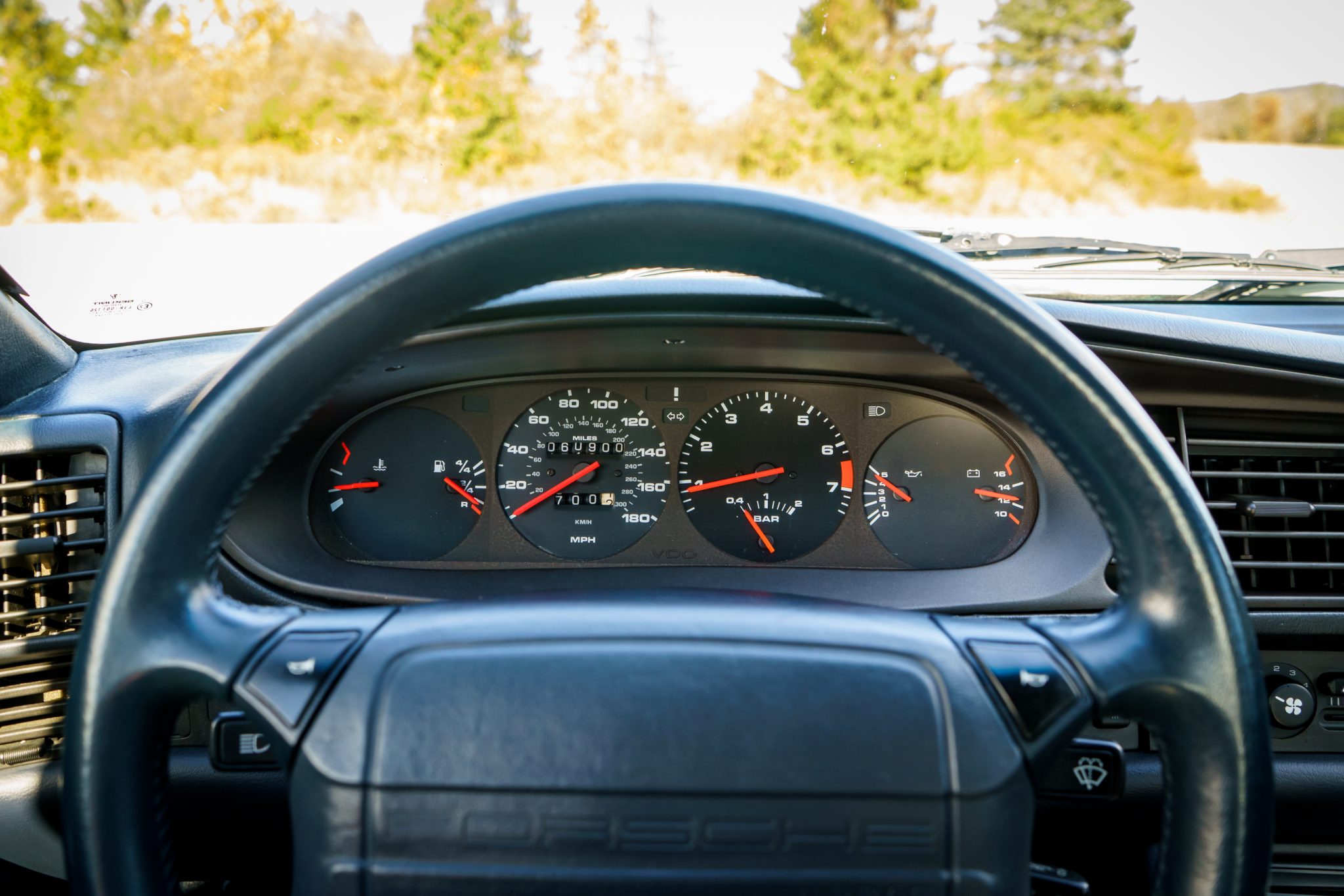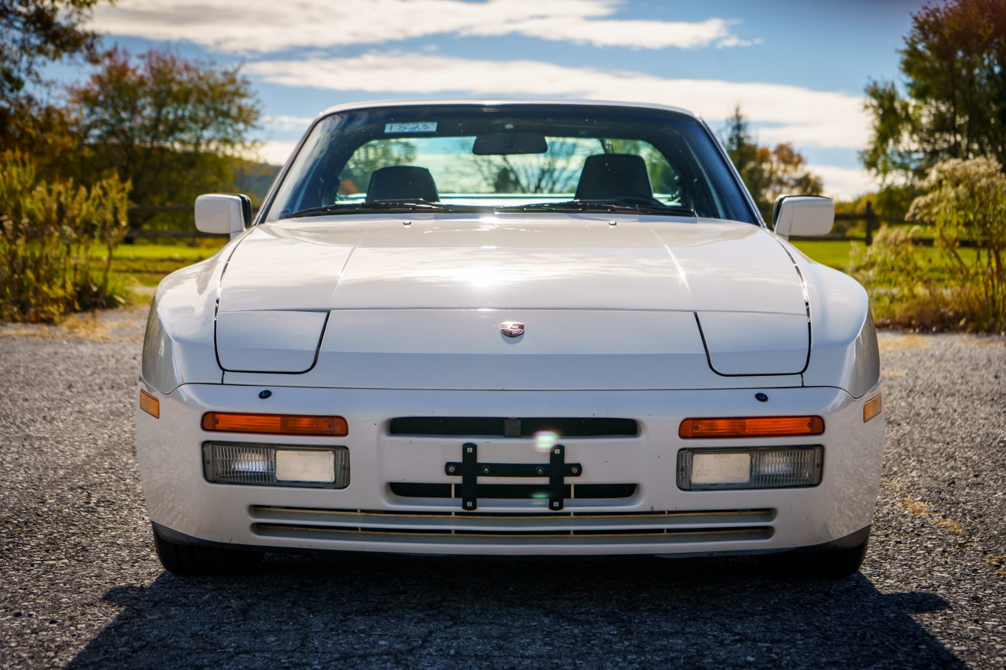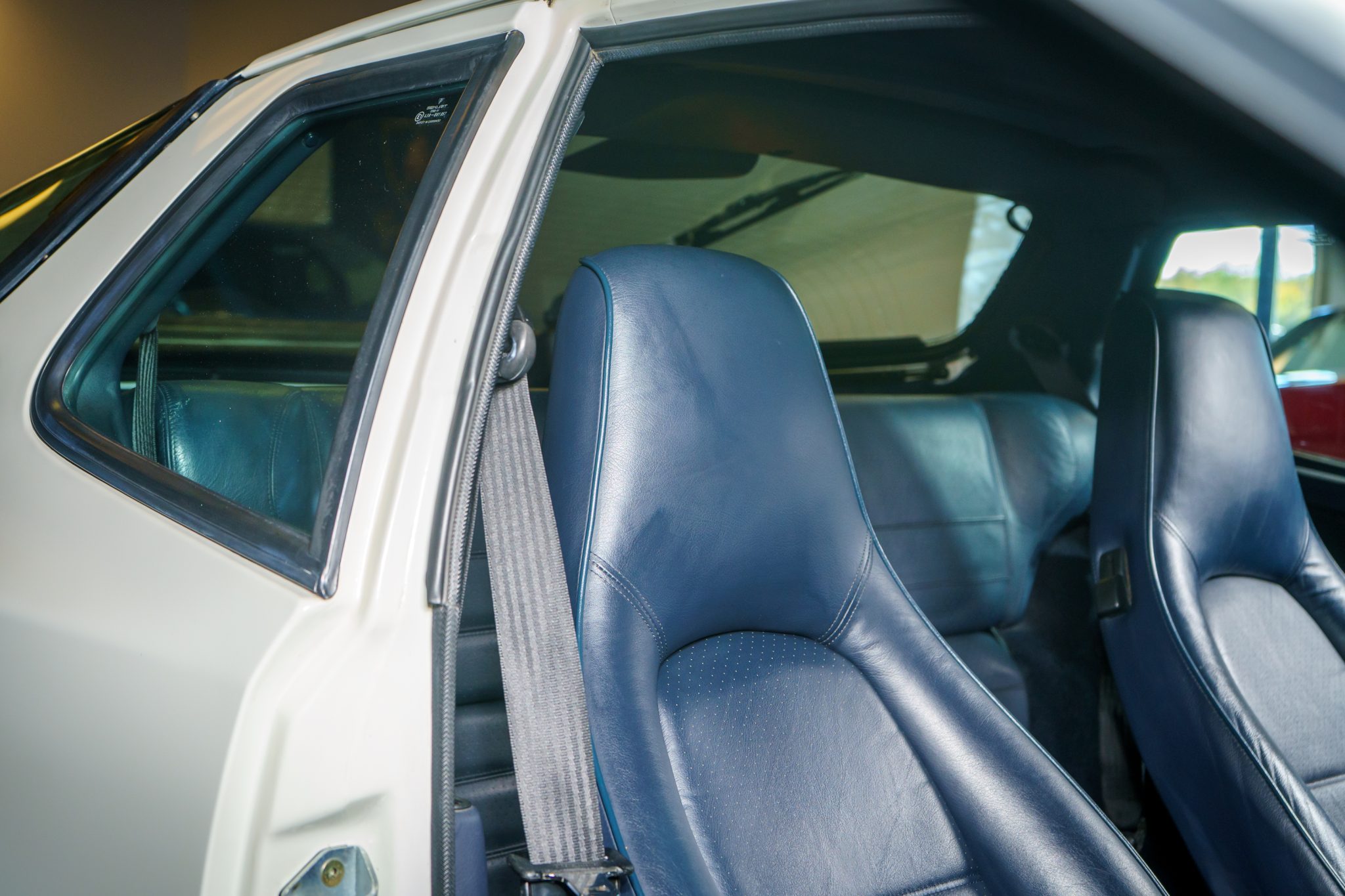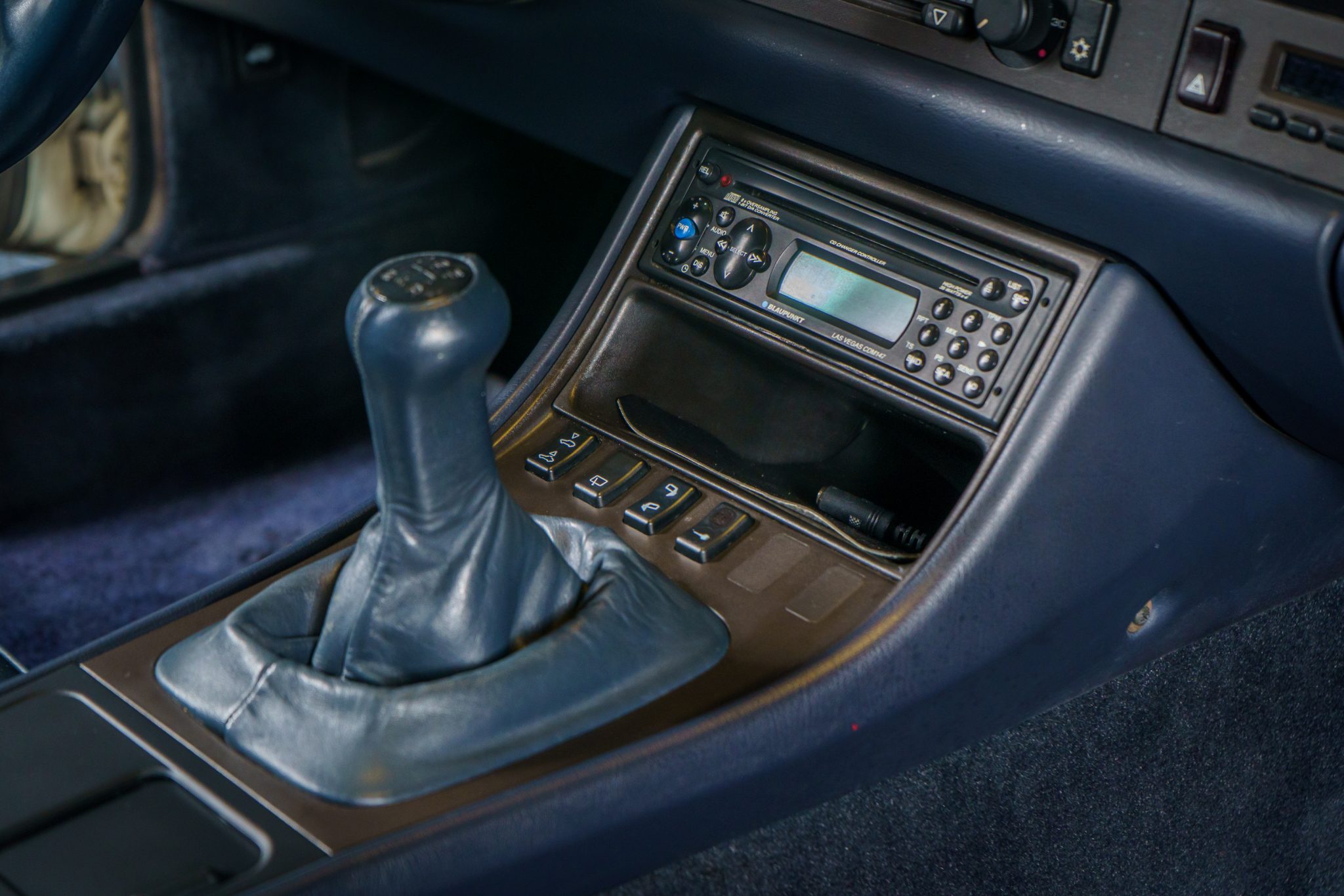 This 1989 Porsche 944 Turbo is powered by a turbocharged 2.5-liter inline-four paired with a five-speed manual transaxle and is finished in Alpine White over Marine Blue leather upholstery. Showing 61k miles, the car is equipped with 16″ Club Sport alloy wheels, a limited-slip differential, pop-up headlights, fog lights, power-adjustable front seats, a sunroof, a Blaupunkt CD stereo, cruise control, and air conditioning.