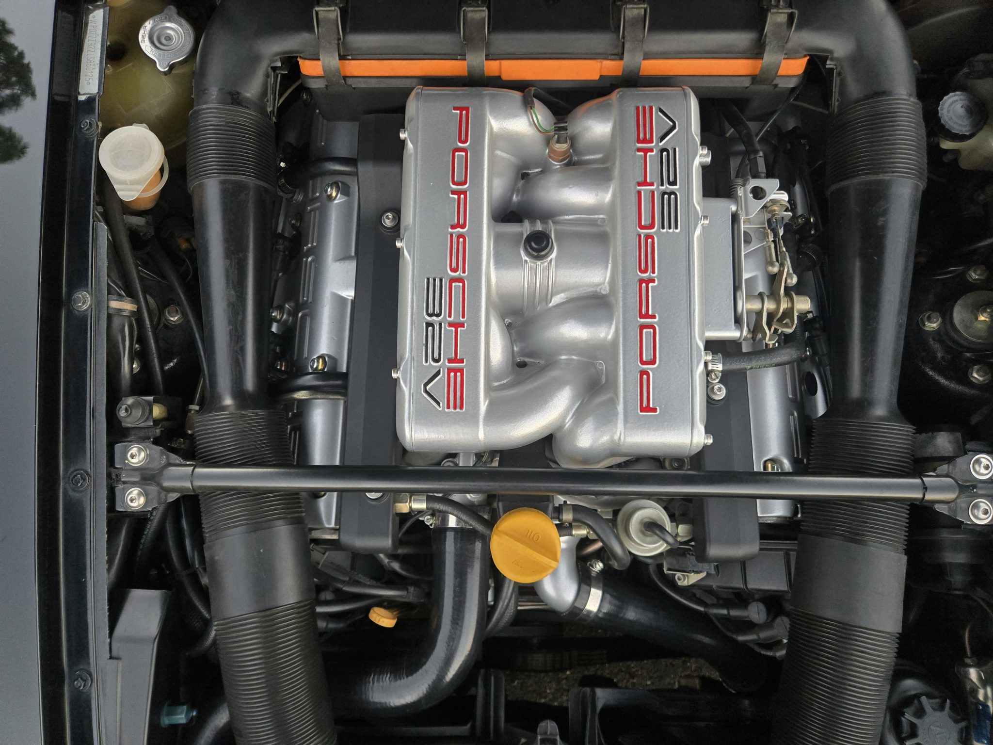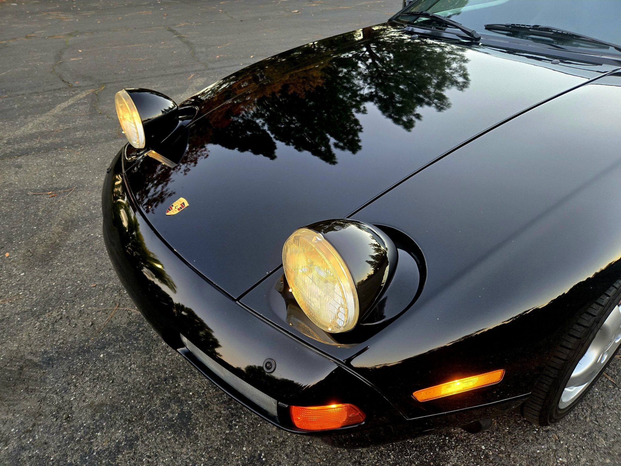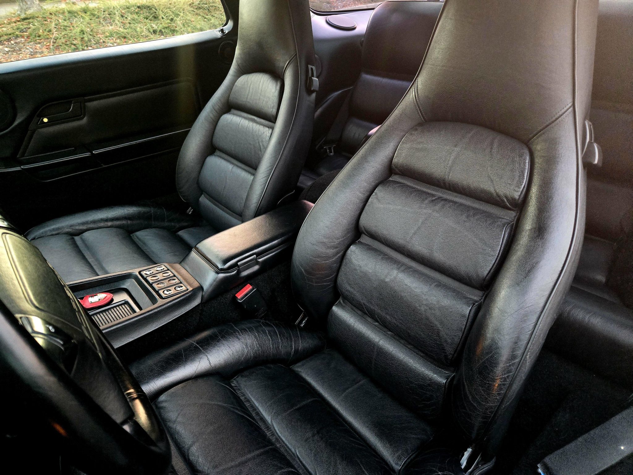 Finished in black over black leather upholstery, the car is powered by a 5.0-liter DOHC V8 paired with a four-speed automatic transaxle. Equipment includes 17″ Cup 1 wheels, a sunroof, pop-up headlights, fog lights, power-adjustable front seats, a Bluetooth-capable JVC head unit, and air conditioning. This 928 S4 is offered