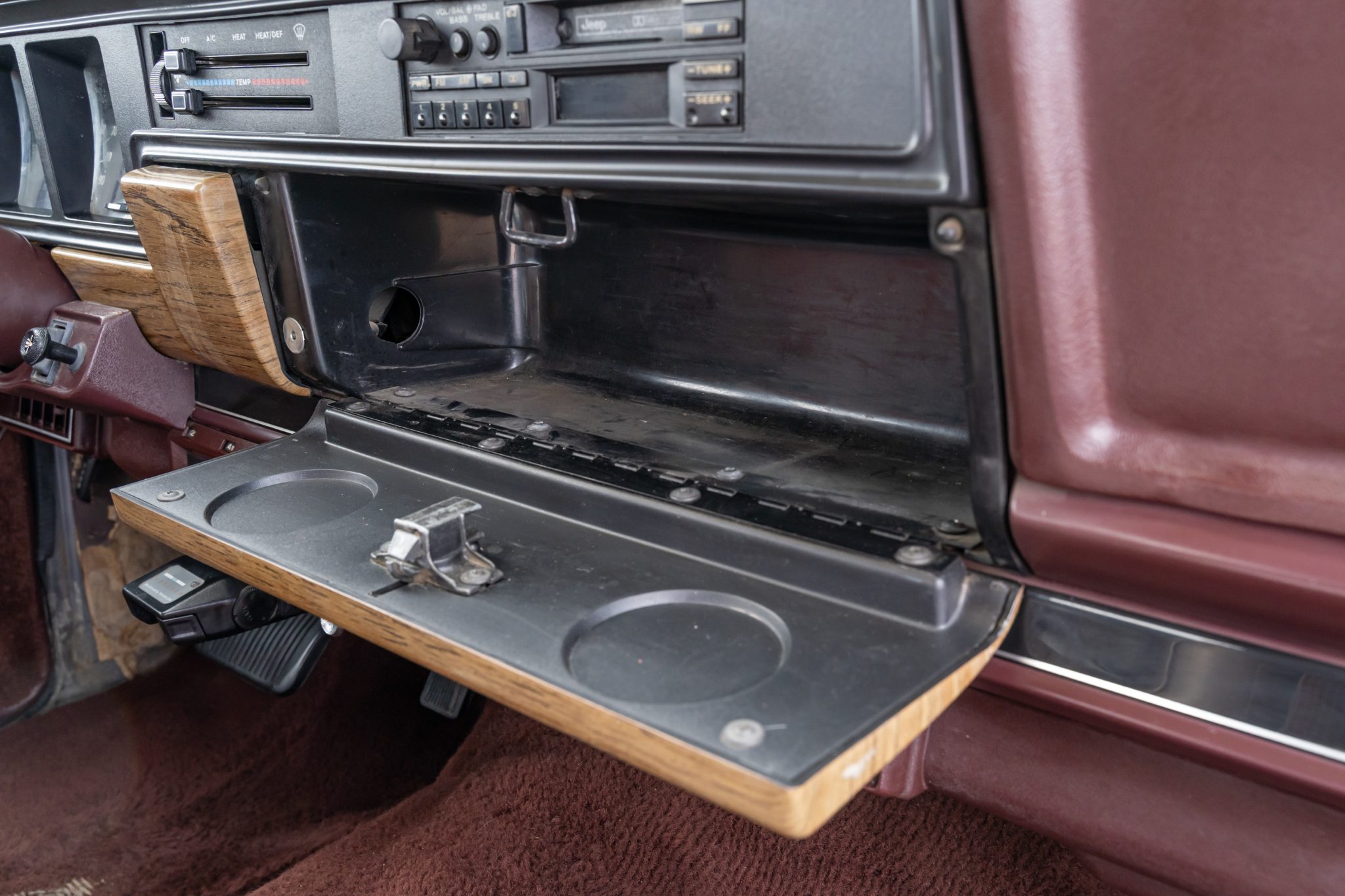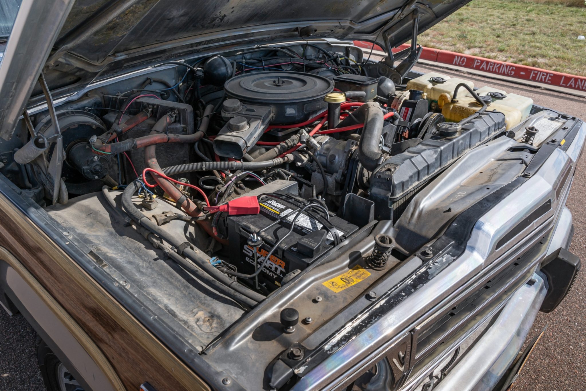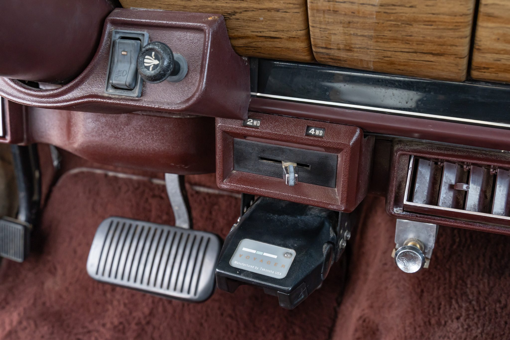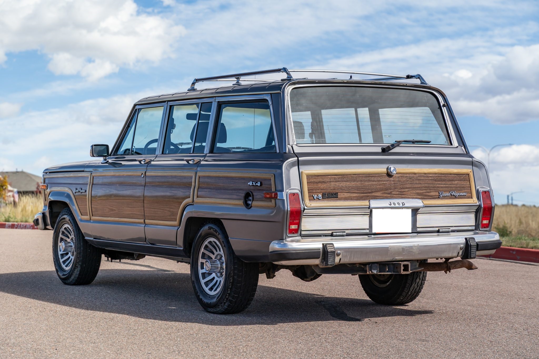 The truck is powered by a 360ci V8 that has been fitted with a Howell electronic fuel injection system and a Davis Unified Ignition distributor, while the three-speed automatic transmission was rebuilt in January 2017. Wearing a repaint in silver over Cordovan leather and cloth, features include a Selec-Trac four-wheel-drive system with a dual-range transfer case, a roof rack, faux-woodgrain trim, 15″ multi-spoke wheels, power-adjustable front seats, an aftermarket trailer brake controller, air conditioning, and cruise control.