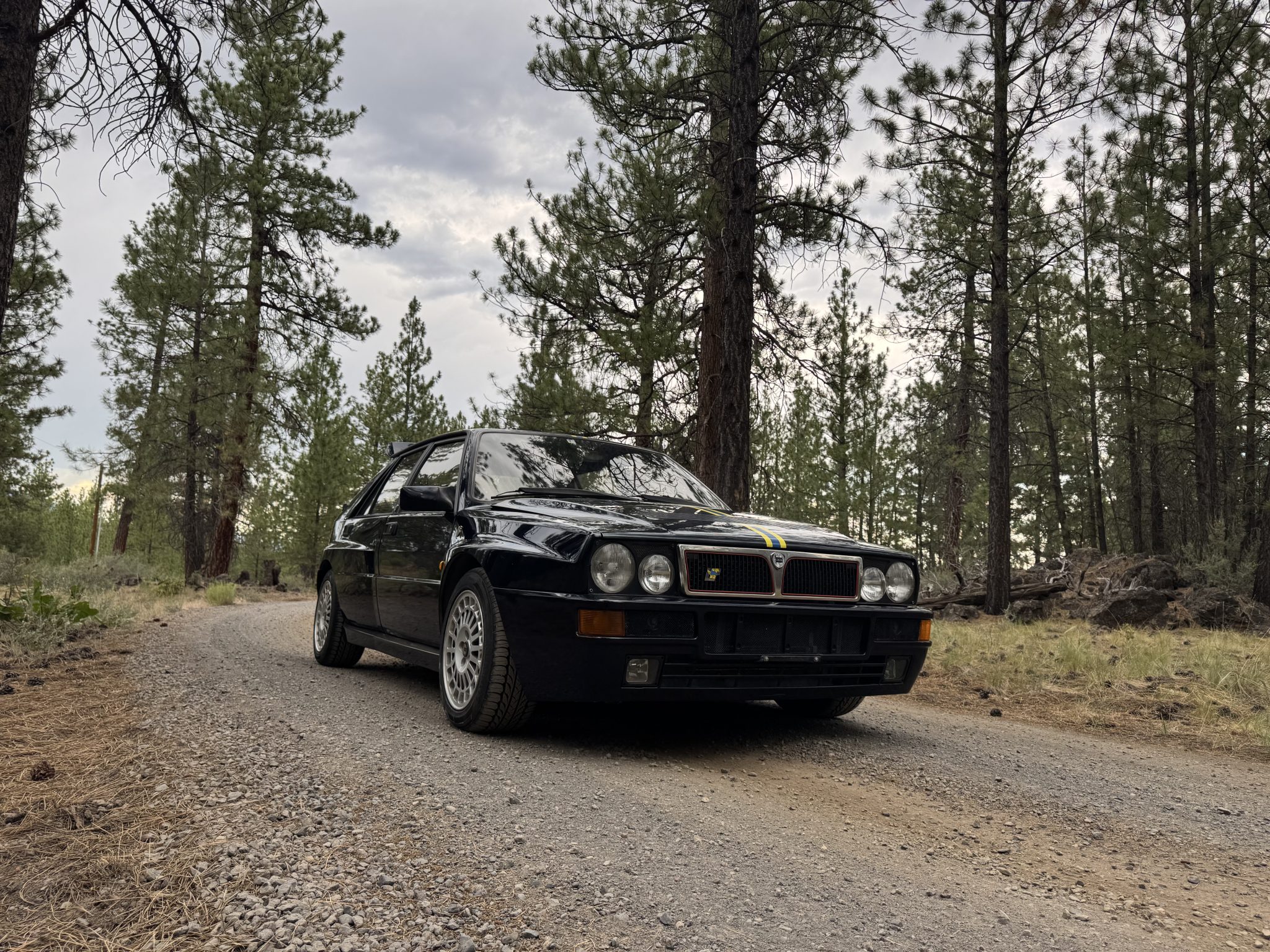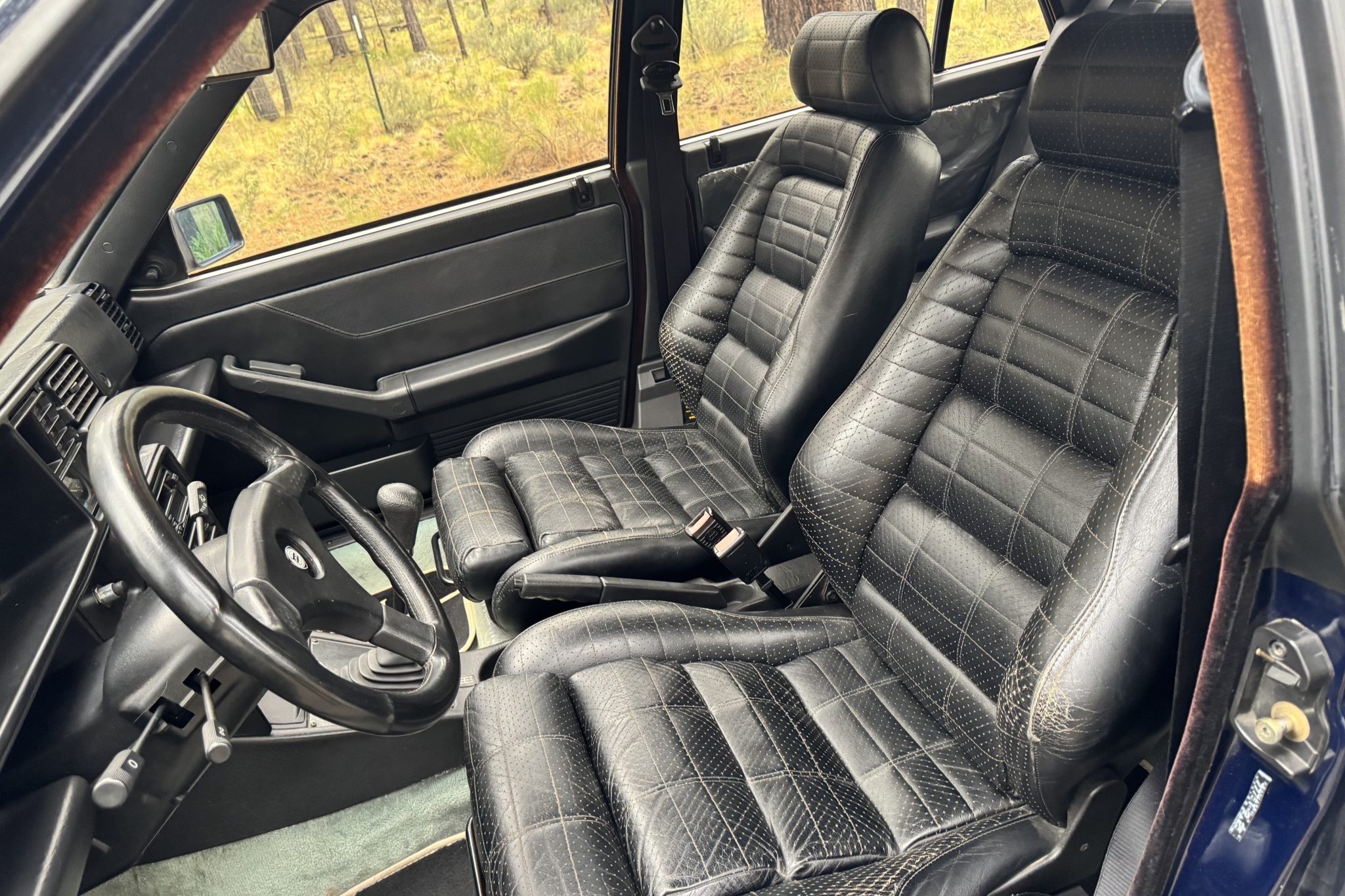 The car is finished in Bleu Lord over black leather and powered by a turbocharged 2.0-liter inline-four linked with a five-speed manual transaxle and an all-wheel-drive system that incorporates a Ferguson viscous center differential and a Torsen limited-slip rear differential. Further equipment includes 15″ Speedline alloy wheels, BC Racing adjustable coilovers, and a Tanc Barratt quick-shift kit along with Recaro front seats, air conditioning, and an aftermarket stereo. Now showing 75k kilometers (~47k miles), this Delta Integrale Evo 1
