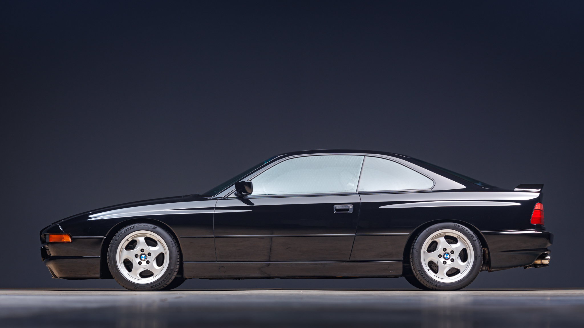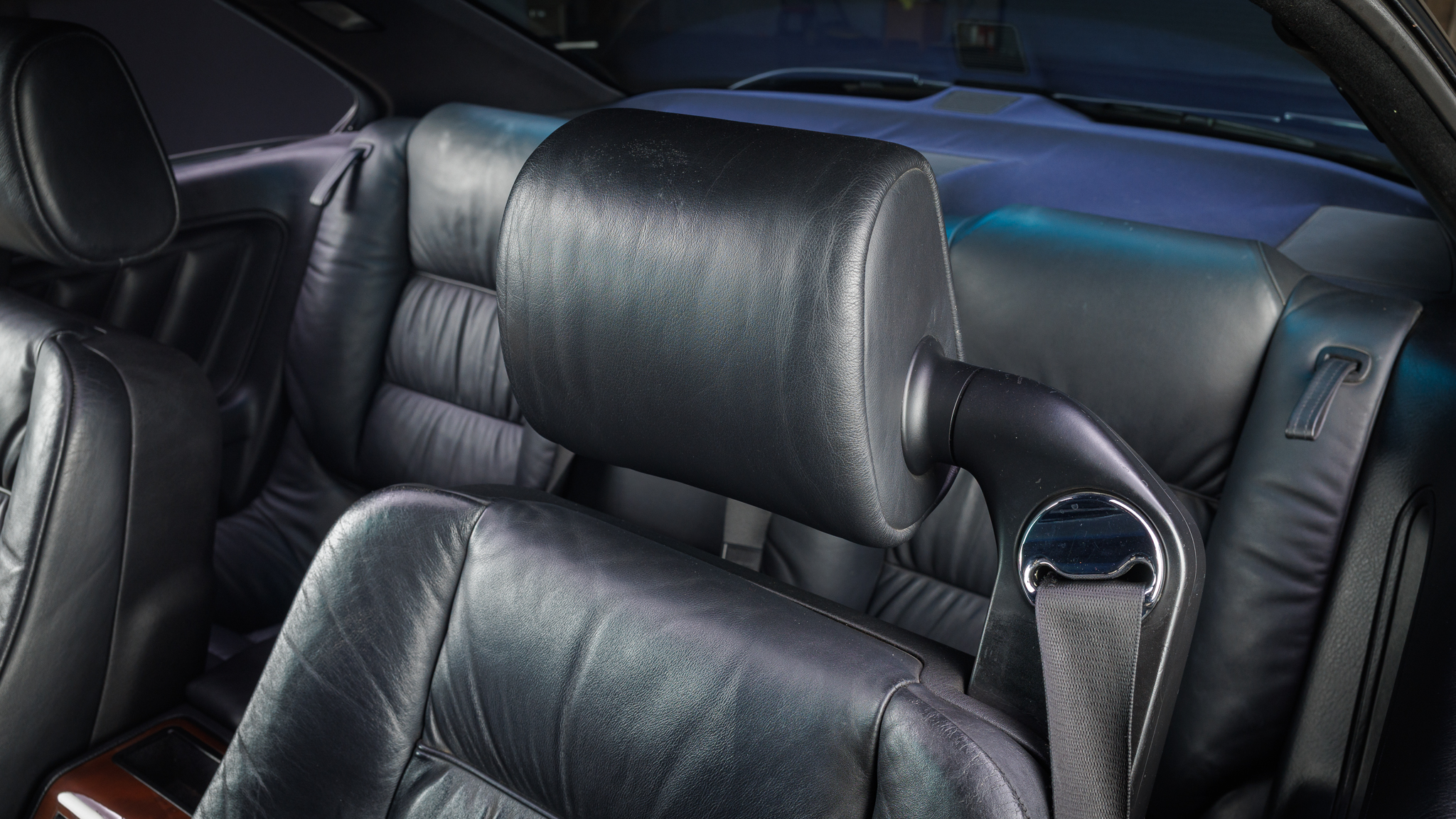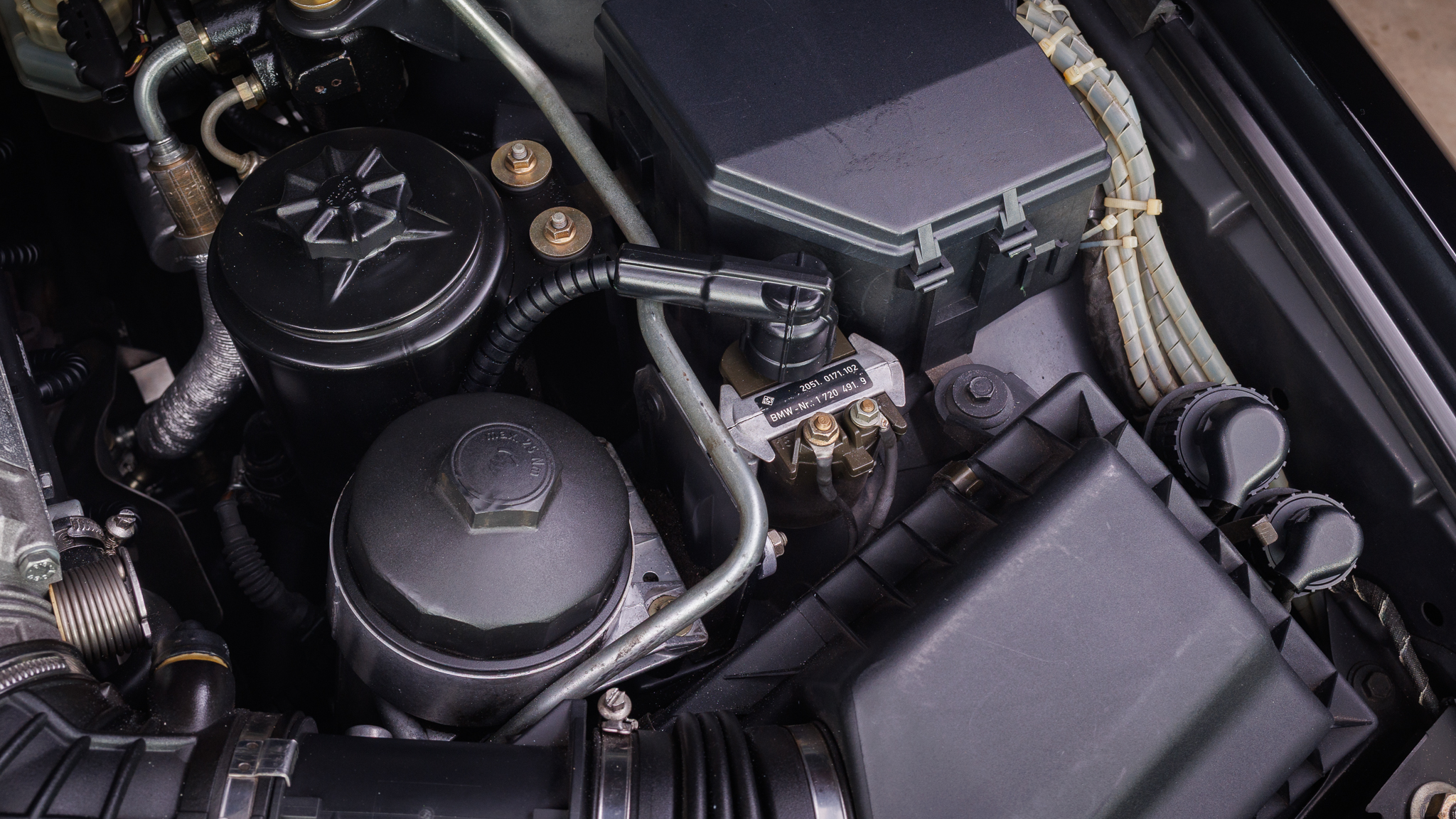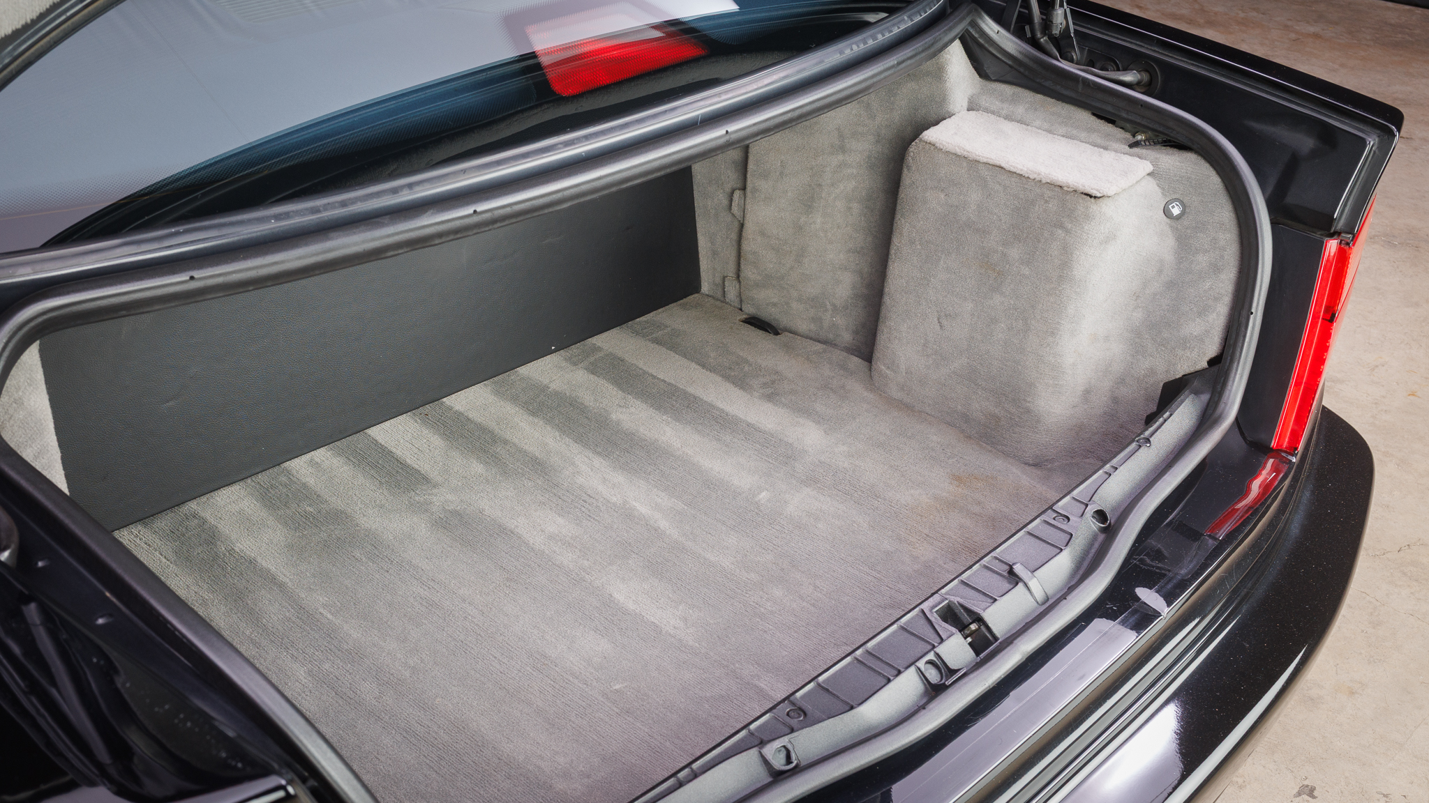 It is powered by a 5.6-liter V12 linked with a six-speed manual transmission and a limited-slip differential, and it is finished in Jet Black over black leather. The car has been modified with Bilstein shocks, H&R springs, adjustable camber plates and end links, MagnaFlow mufflers, a Turner Conforti ECU chip, aftermarket fuel injectors, a honed intake manifold, a short-shift kit, and a Pioneer CD stereo. Additional features include a power-operated sunroof, fog lights, dual-zone automatic climate control, heated and power-adjustable front seats, and cruise control.