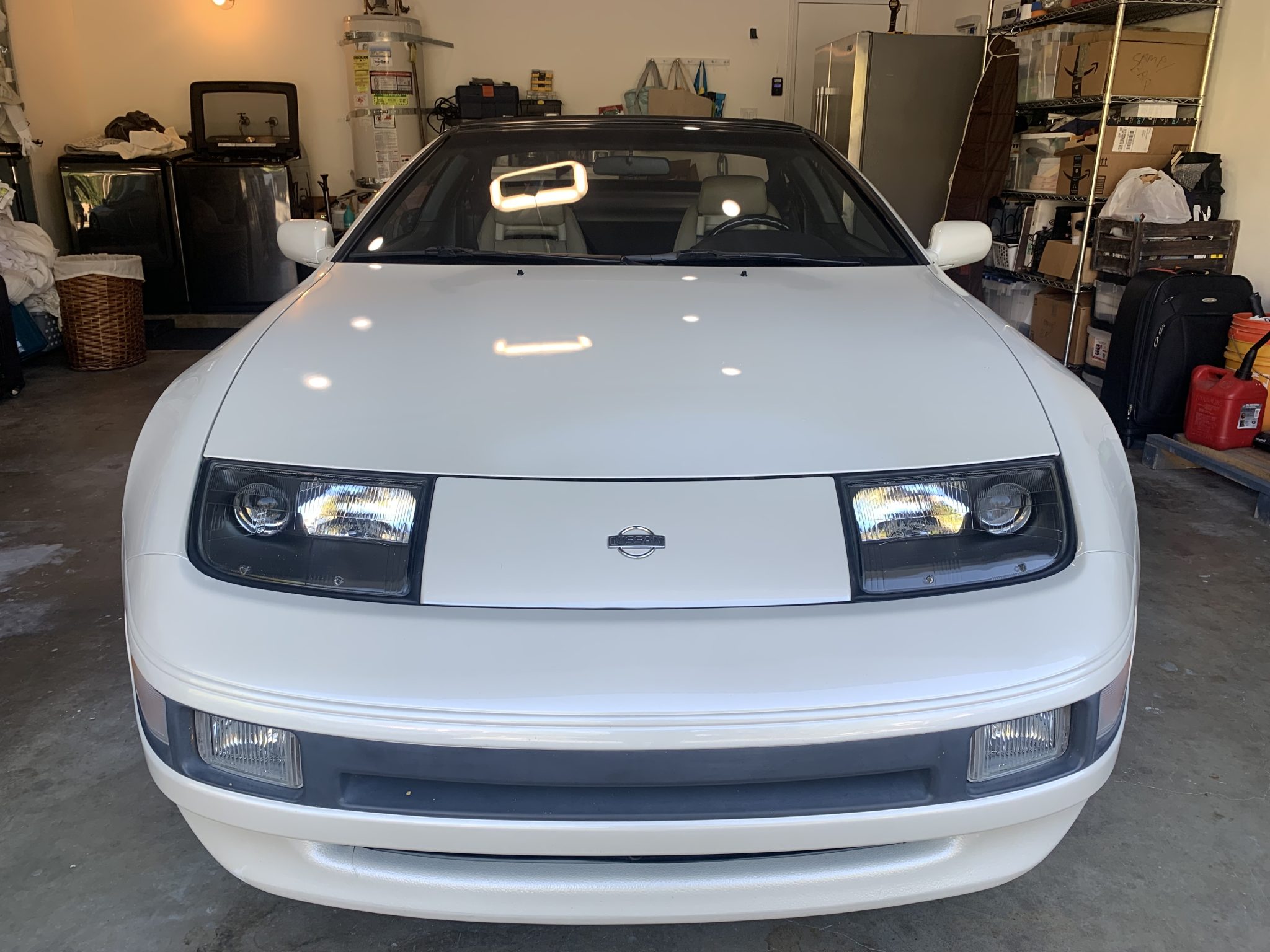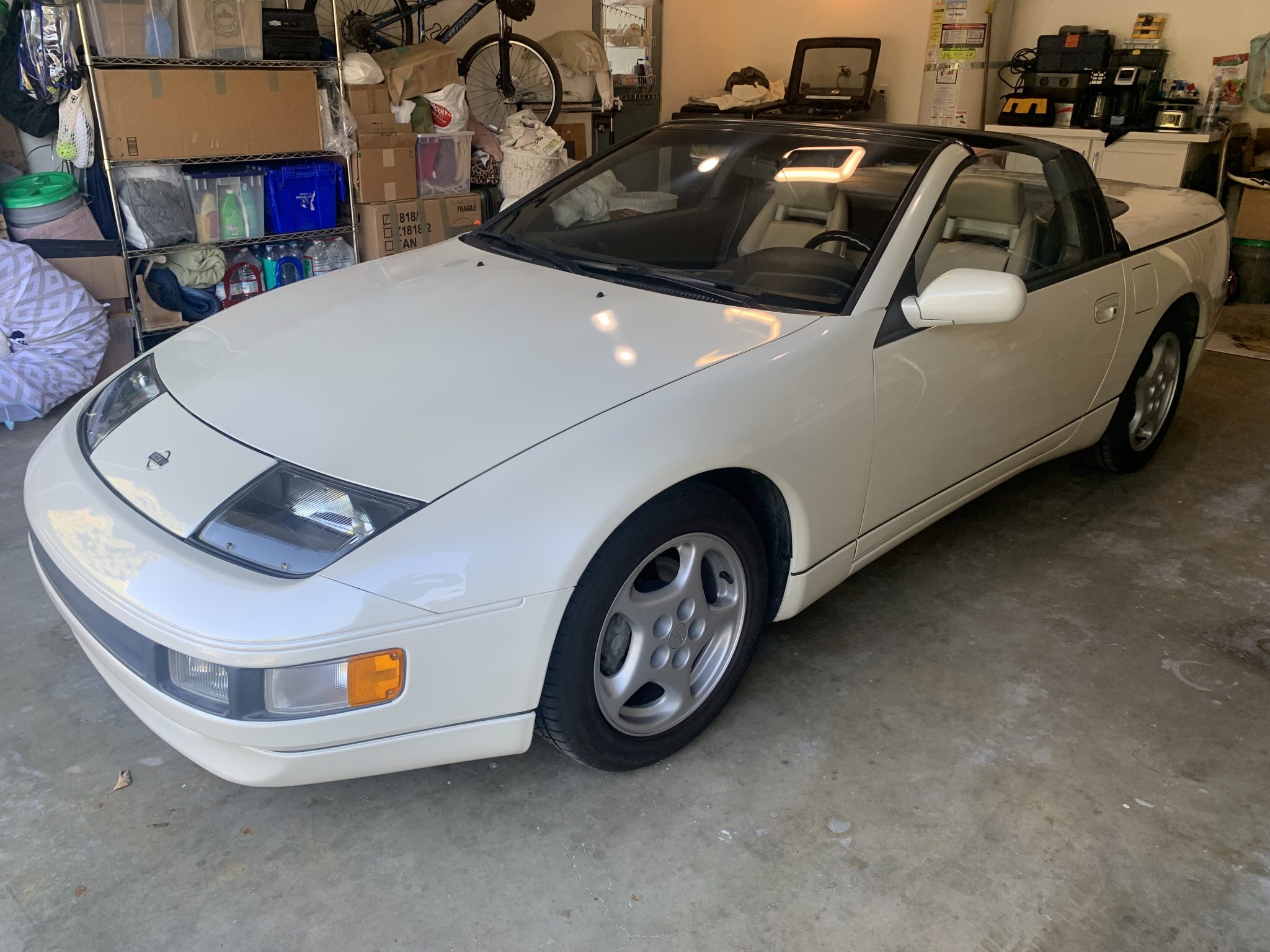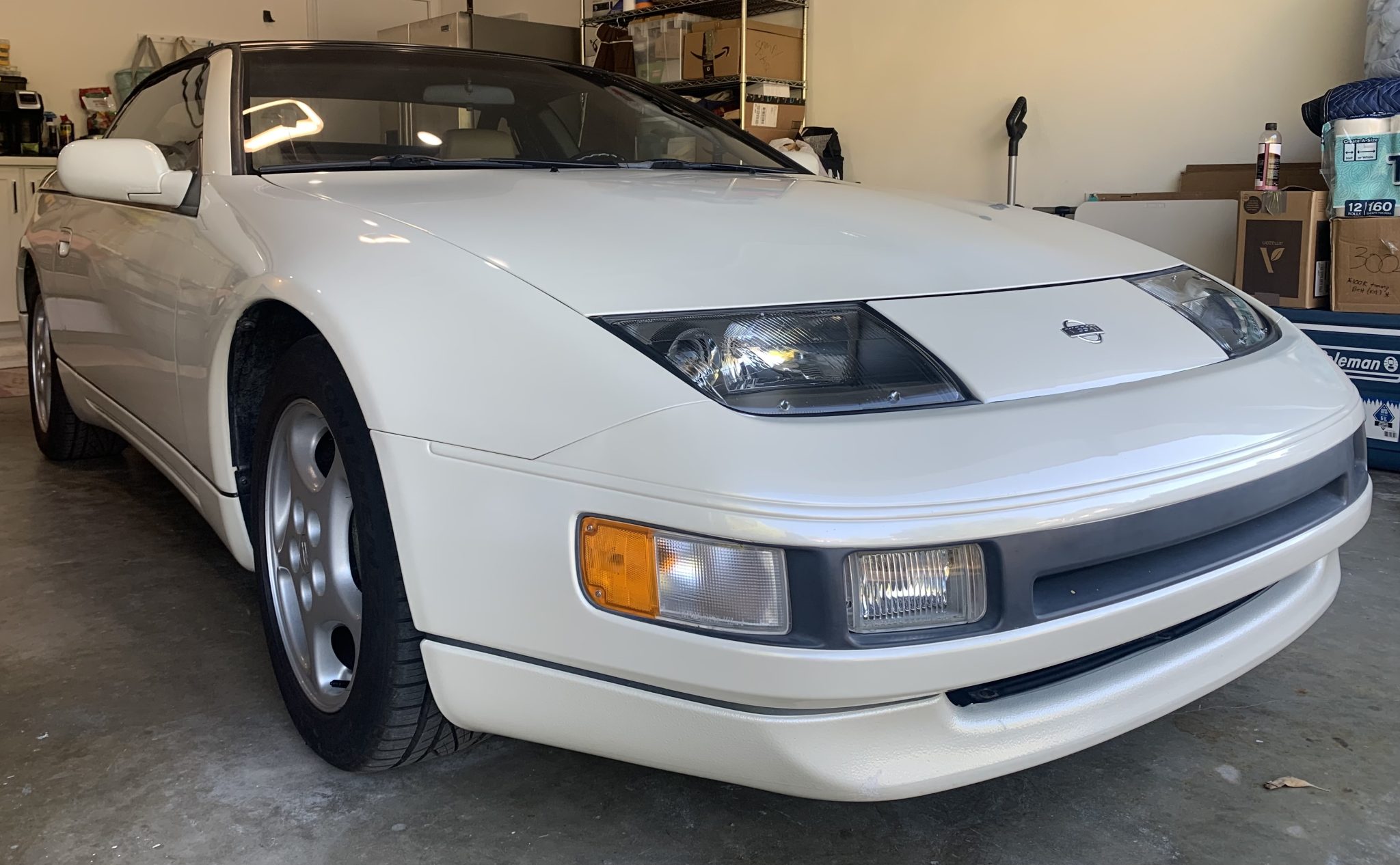 The car is finished in Glacier White Pearl Glow over tan leather and is powered by a 3.0-liter V6 mated to a five-speed manual transmission and a limited-slip differential. It is equipped with 16″ alloy wheels, a black convertible soft top, fog lights, power-adjustable seats, air conditioning, cruise control, and a Kenwood CD stereo.