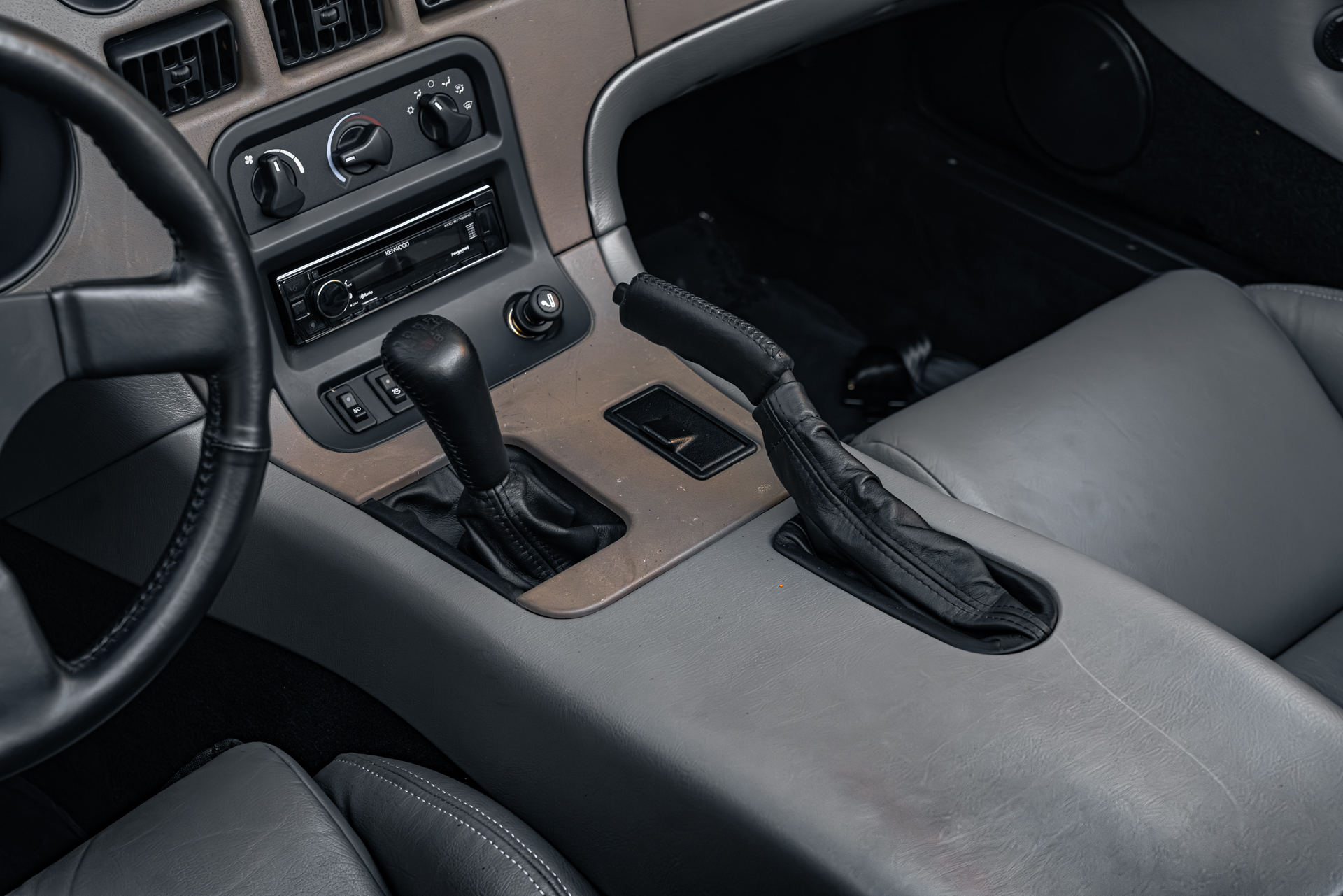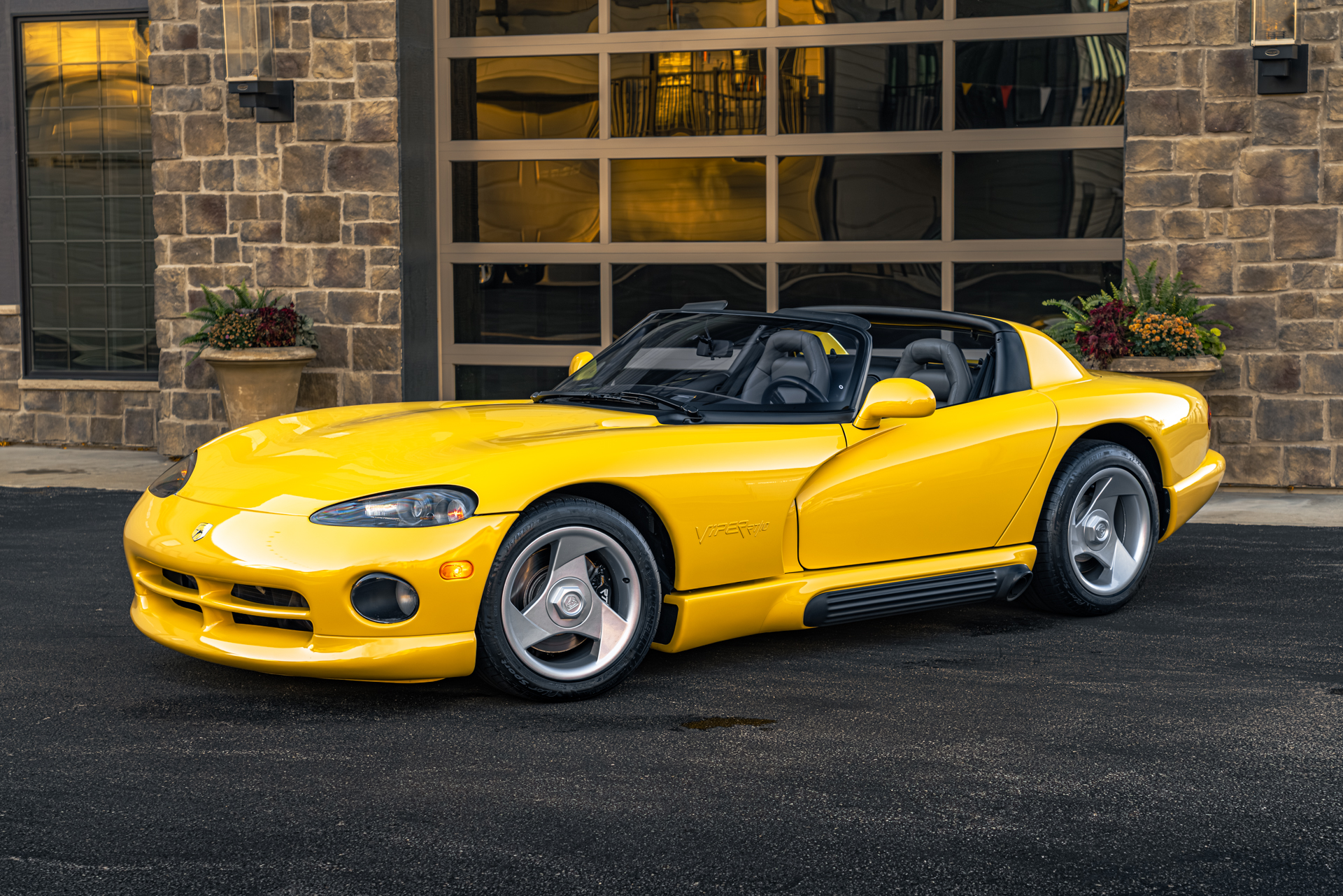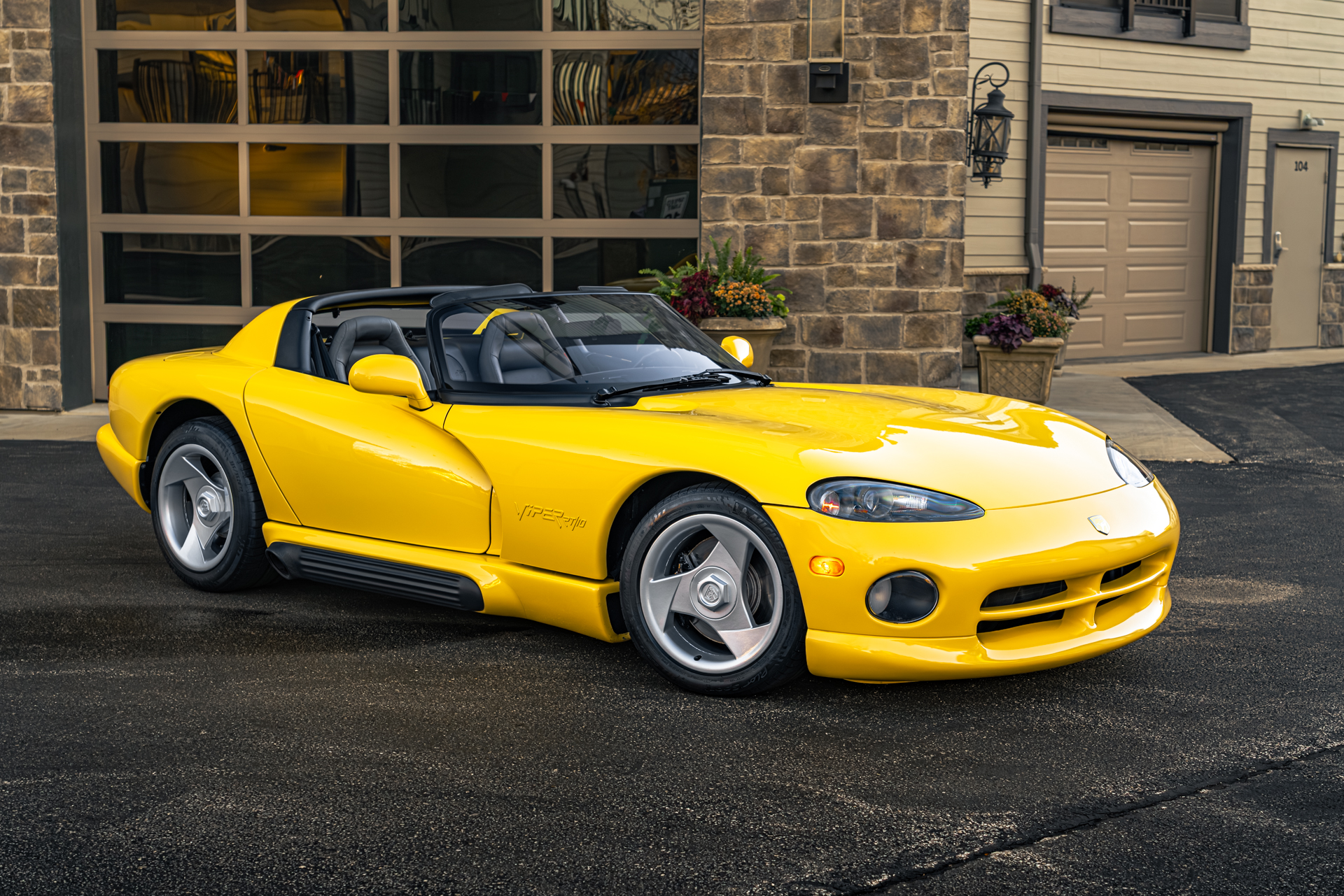 It is finished in Dandelion Yellow over Quartz leather upholstery and is powered by an 8.0-liter V10 paired with a six-speed manual transmission. Equipment includes a limited-slip differential, a removable black soft top, 17″ tri-spoke alloy wheels, and a Kenwood CD stereo. This Viper has 1,400 miles