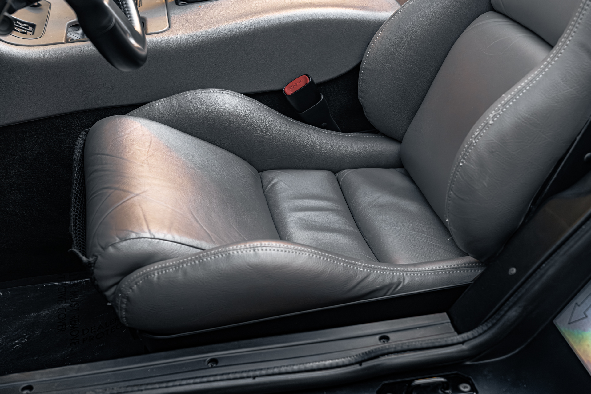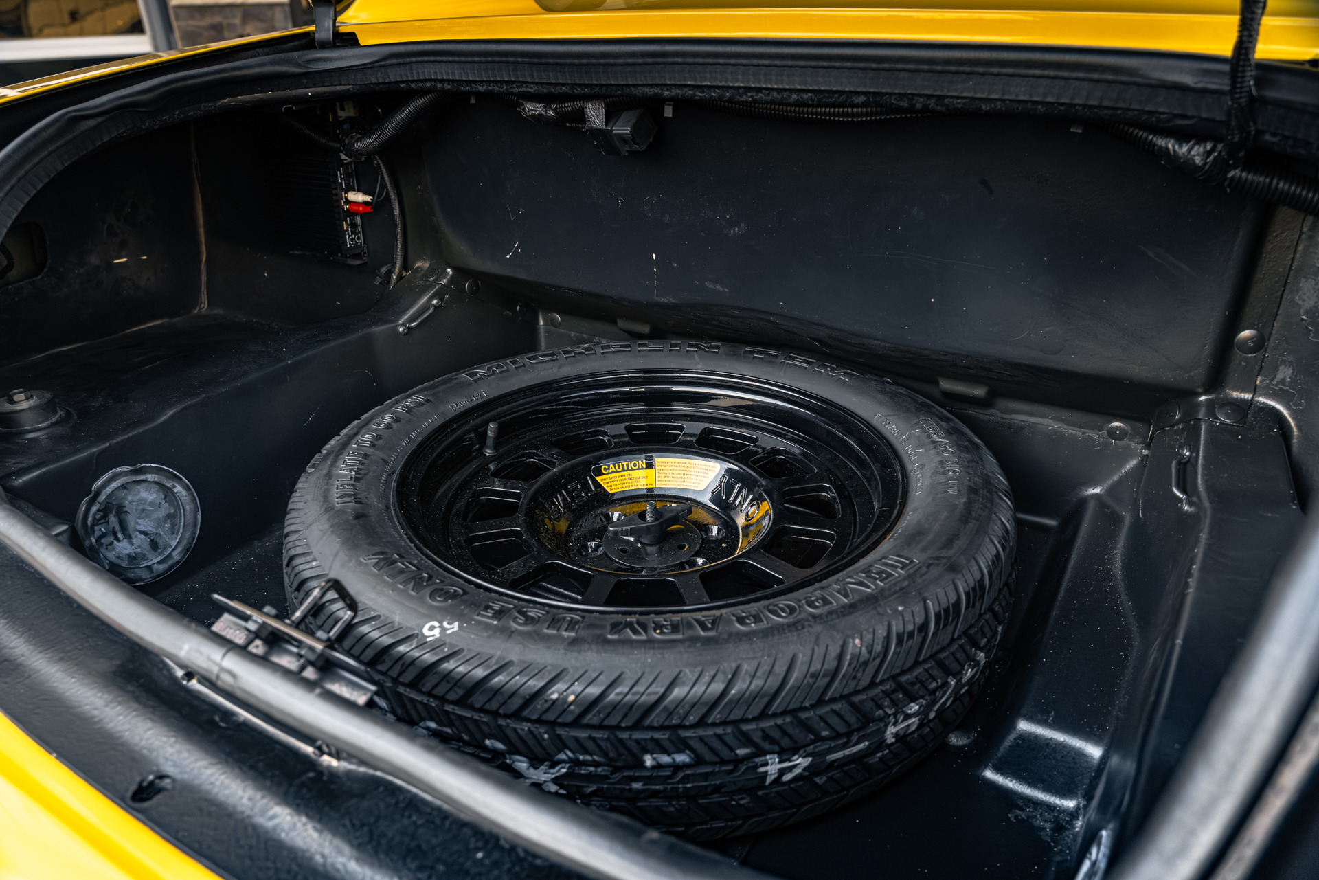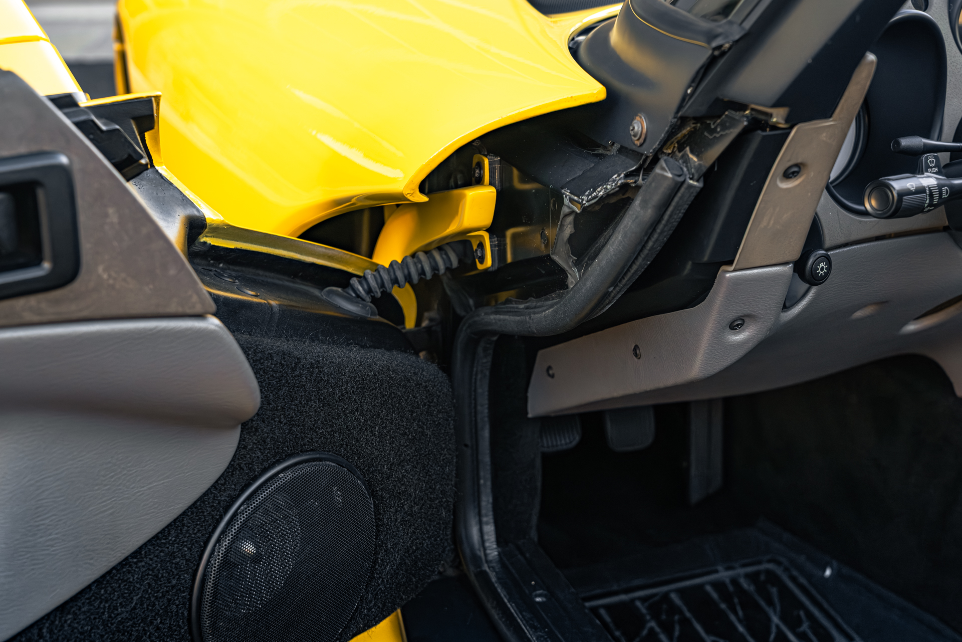 It is finished in Dandelion Yellow over Quartz leather upholstery and is powered by an 8.0-liter V10 paired with a six-speed manual transmission. Equipment includes a limited-slip differential, a removable black soft top, 17″ tri-spoke alloy wheels, and a Kenwood CD stereo. This Viper has 1,400 miles