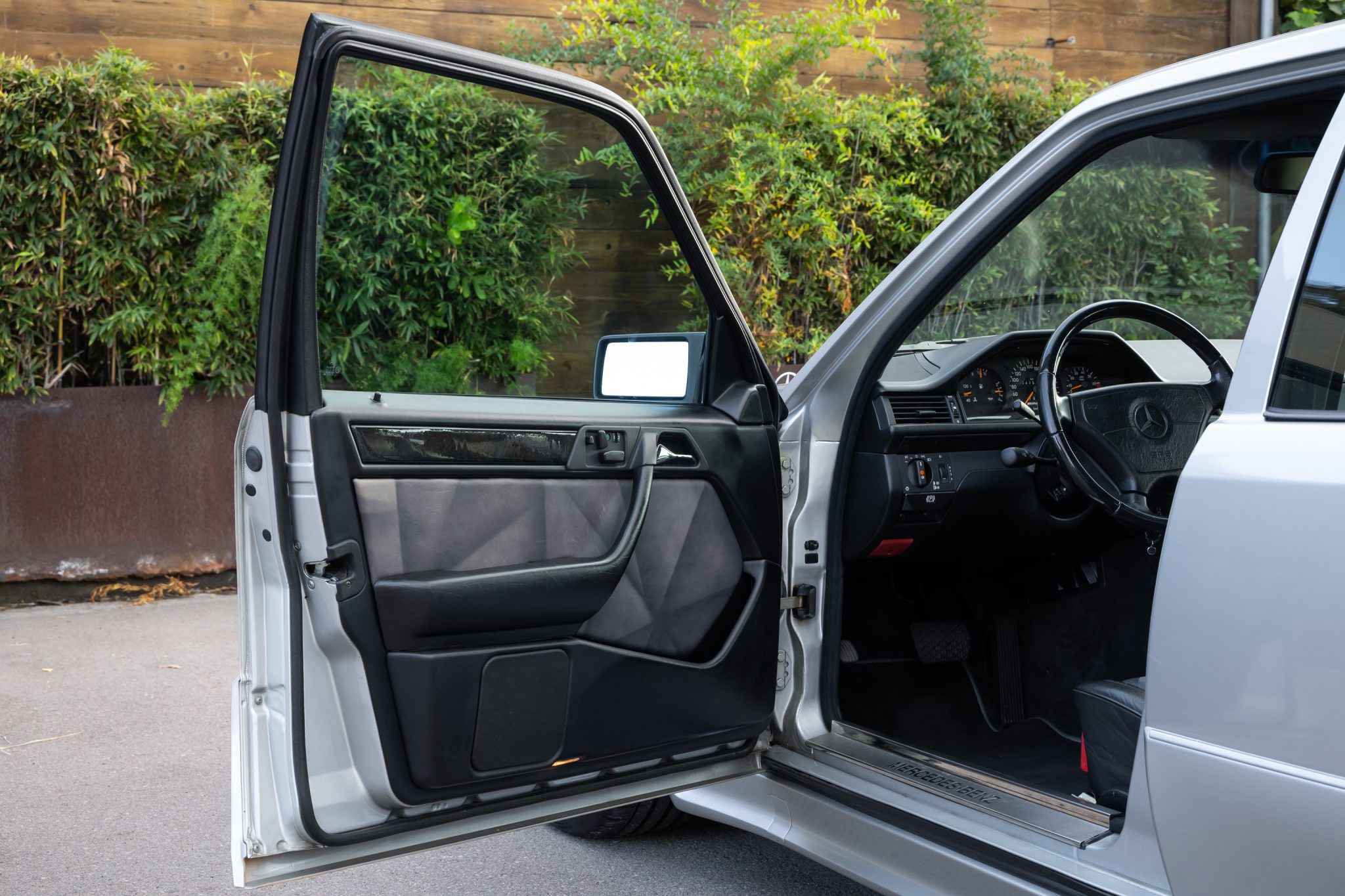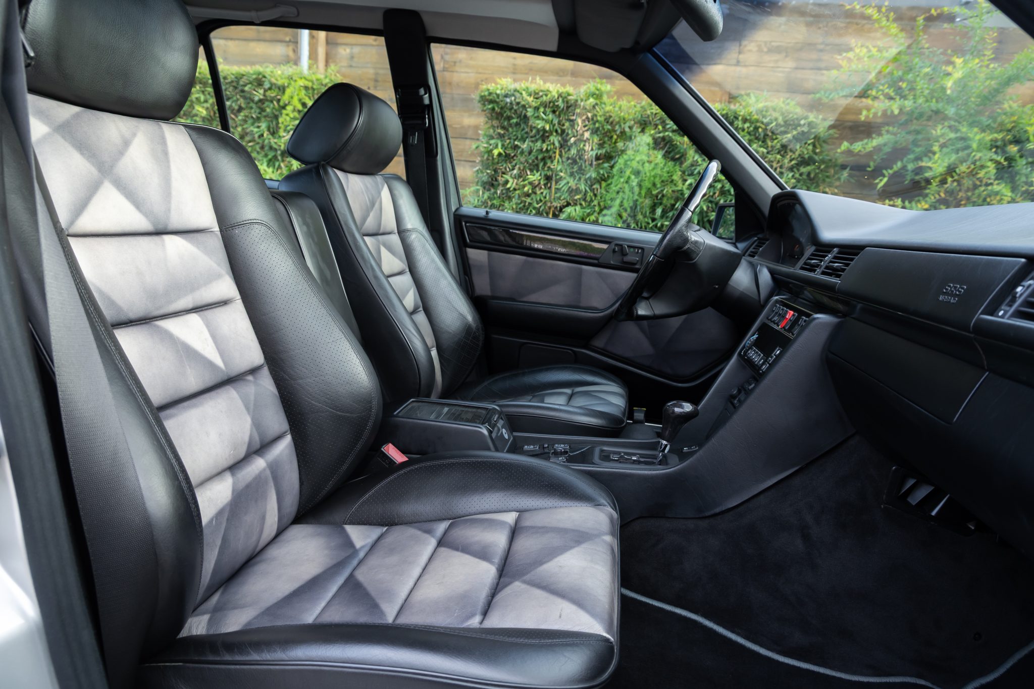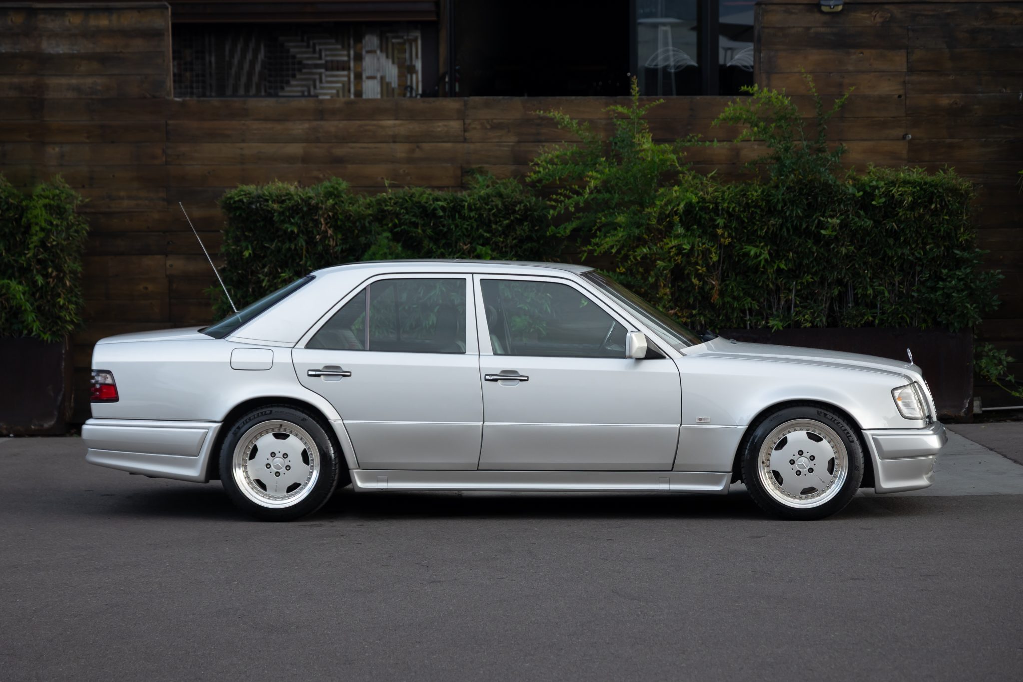 This Mercedes-Benz E500 is one of 951 Limited models produced over a two-year model run. A subsequent E60-spec conversion is noted to have been carried out by AMG Japan with the installation of a 6.0-liter M119 V8, 17” AMG Aero III multi-piece wheels, suspension upgrades, and an AMG exhaust system. Finished in Brilliant Silver Metallic, the car is equipped with AMG front and rear valances, a power sunroof, a self-leveling rear suspension, and Automatic Slip Control. Inside, the heated and power-adjustable front seats with position memory are trimmed in black leather with patterned inserts and are accompanied by black birdseye maple wood trim, an electric rear window blind, and a cassette stereo. The car was acquired by the selling dealer out of Japan and subsequently imported to the US in 2025. Service completed in anticipation of the sale involved servicing the four-speed automatic transmission as well as replacing the tires, engine mounts, valve cover gaskets, and spark plugs