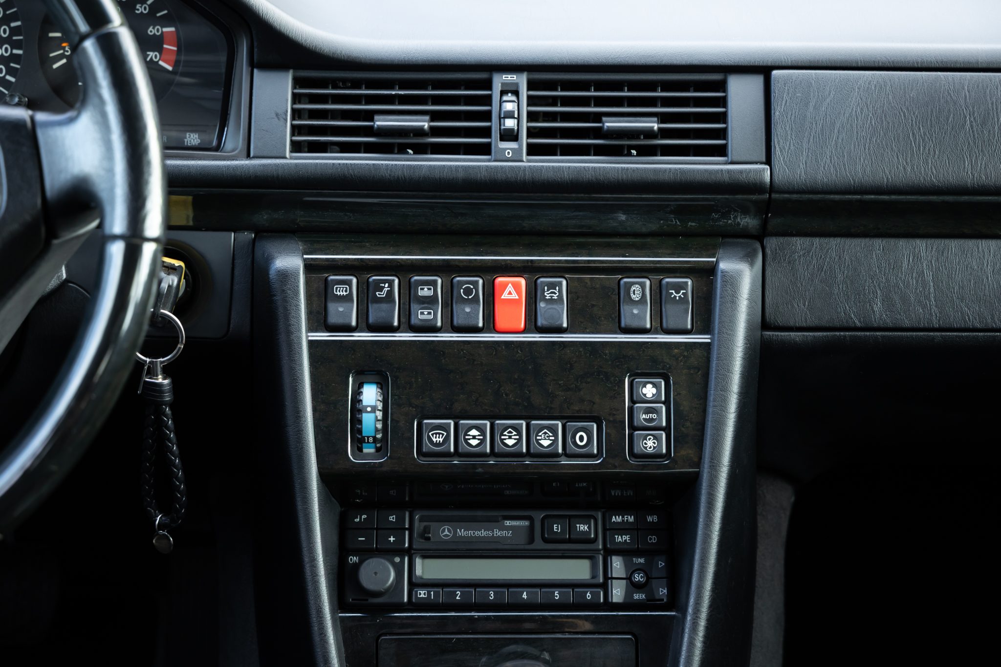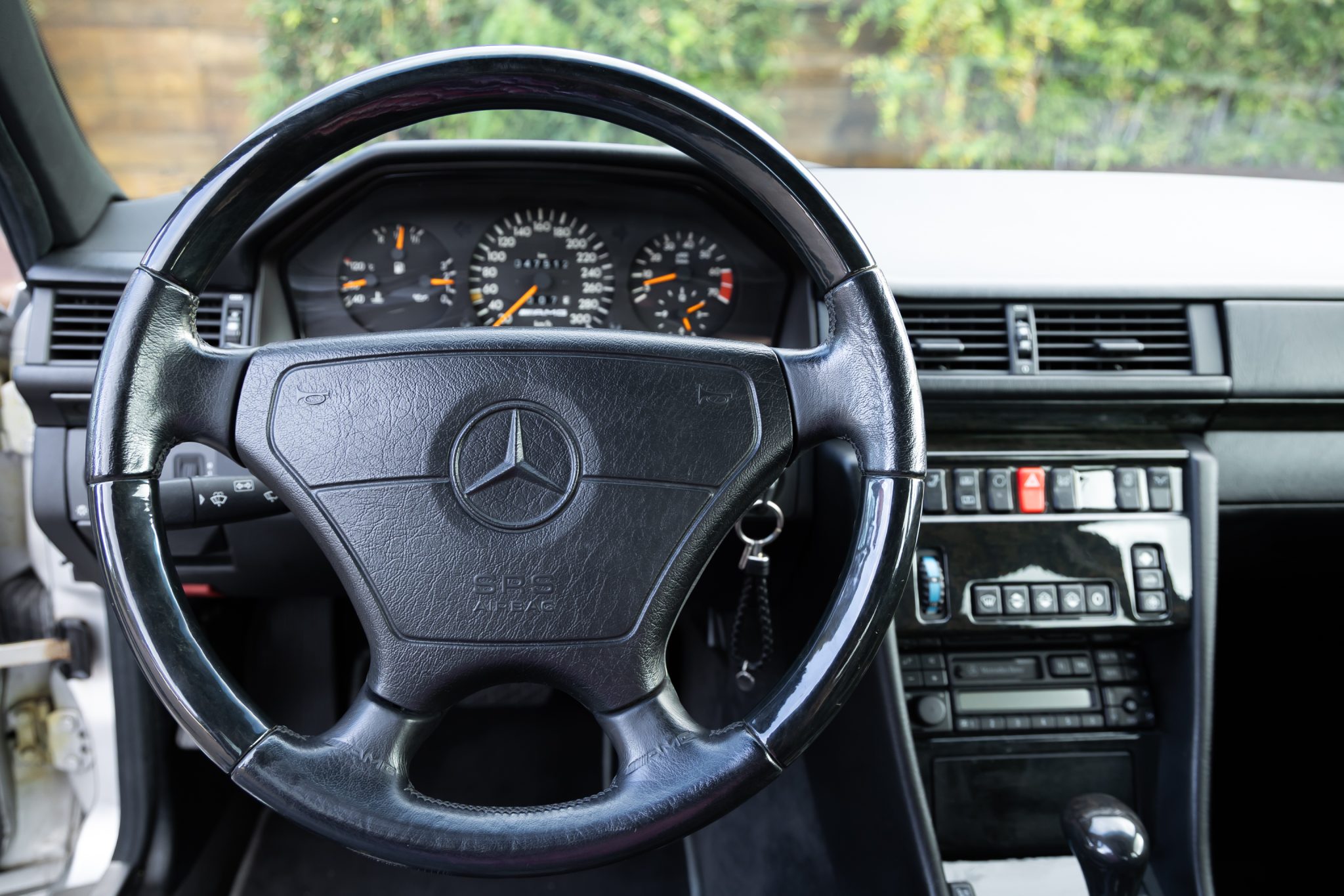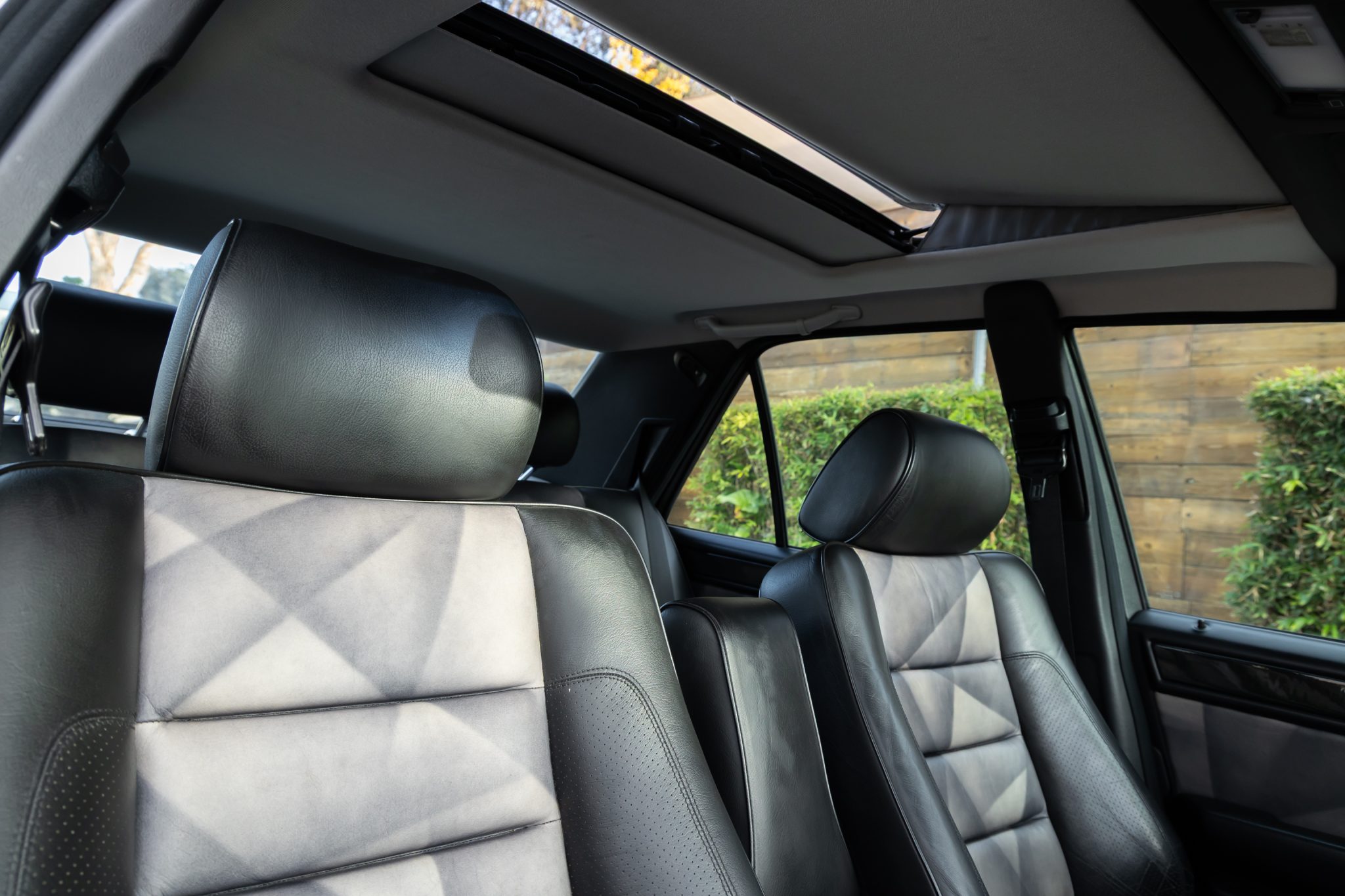 This Mercedes-Benz E500 is one of 951 Limited models produced over a two-year model run. A subsequent E60-spec conversion is noted to have been carried out by AMG Japan with the installation of a 6.0-liter M119 V8, 17” AMG Aero III multi-piece wheels, suspension upgrades, and an AMG exhaust system. Finished in Brilliant Silver Metallic, the car is equipped with AMG front and rear valances, a power sunroof, a self-leveling rear suspension, and Automatic Slip Control. Inside, the heated and power-adjustable front seats with position memory are trimmed in black leather with patterned inserts and are accompanied by black birdseye maple wood trim, an electric rear window blind, and a cassette stereo. The car was acquired by the selling dealer out of Japan and subsequently imported to the US in 2025. Service completed in anticipation of the sale involved servicing the four-speed automatic transmission as well as replacing the tires, engine mounts, valve cover gaskets, and spark plugs