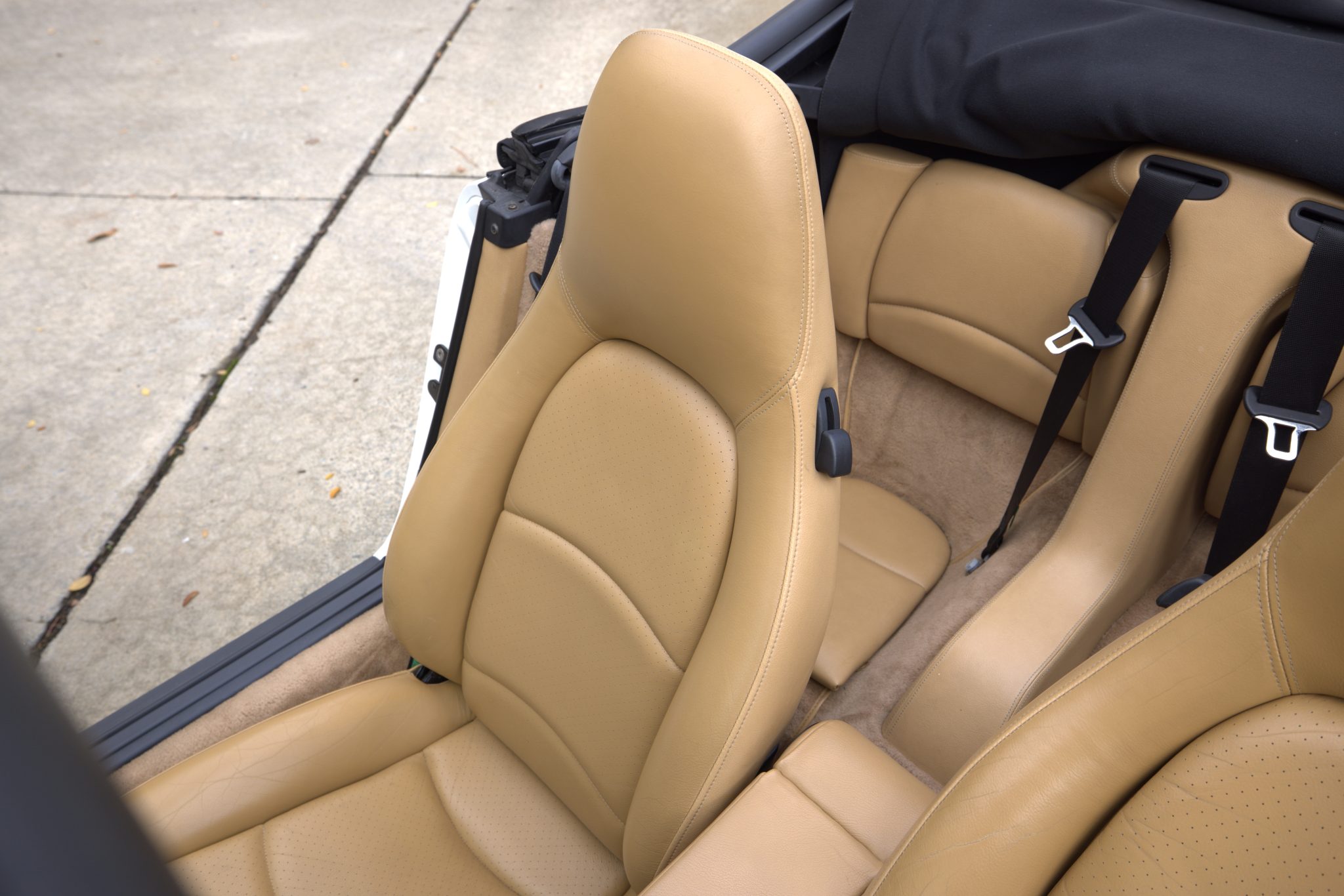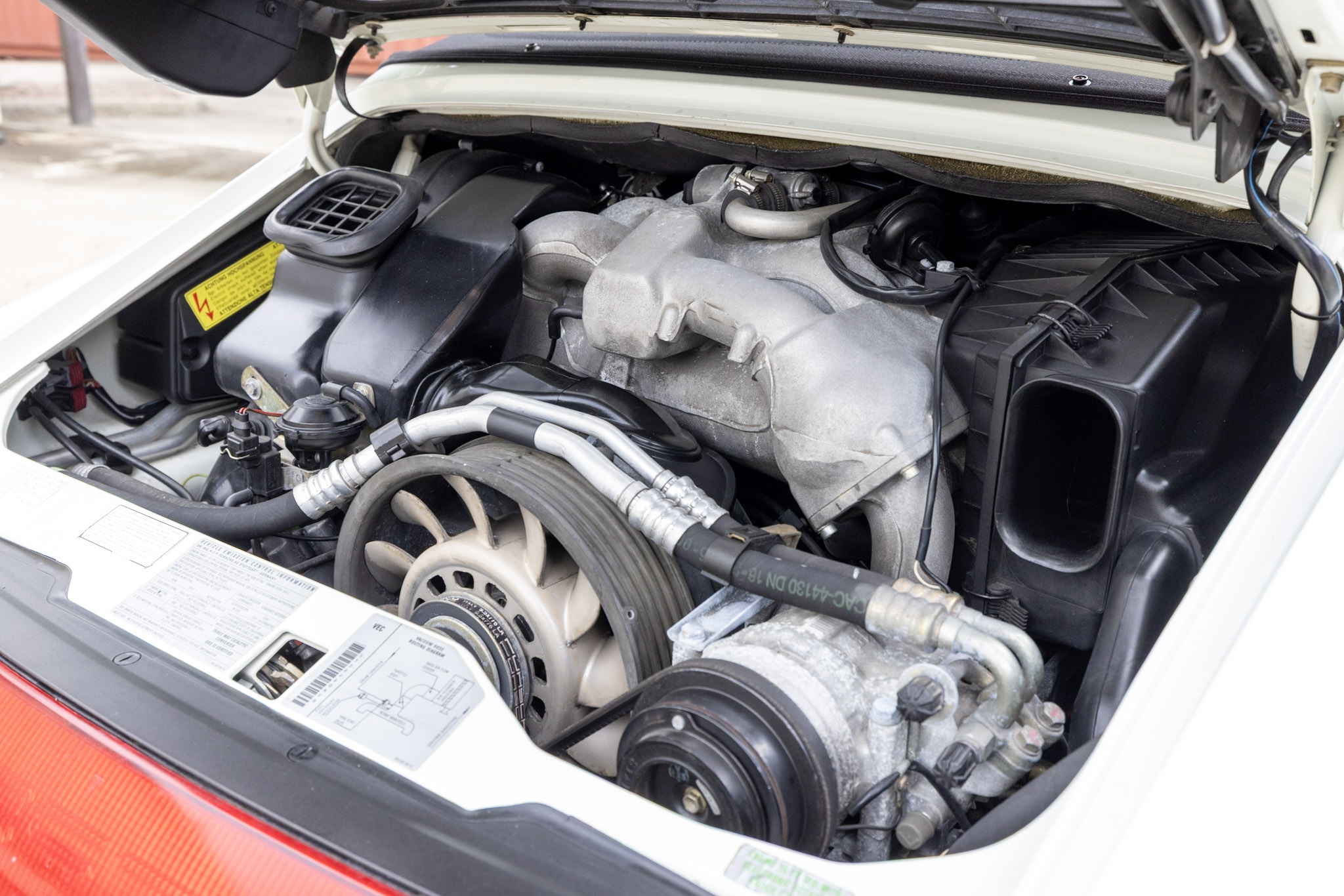 This 1996 Porsche 911 Carrera cabriolet shows 52k miles The car is finished in Grand Prix White over Cashmere Beige leather and is powered by a 3.6-liter flat-six paired with a six-speed manual transaxle. Equipment includes a power-retractable black soft top, 17″ Cup II wheels, cross-drilled brake rotors, a power-adjustable driver’s seat, cruise control, air conditioning, and a Kenwood stereo with Bluetooth connectivity.