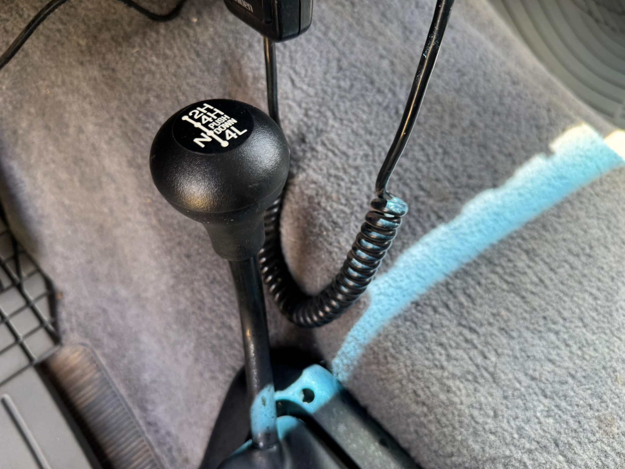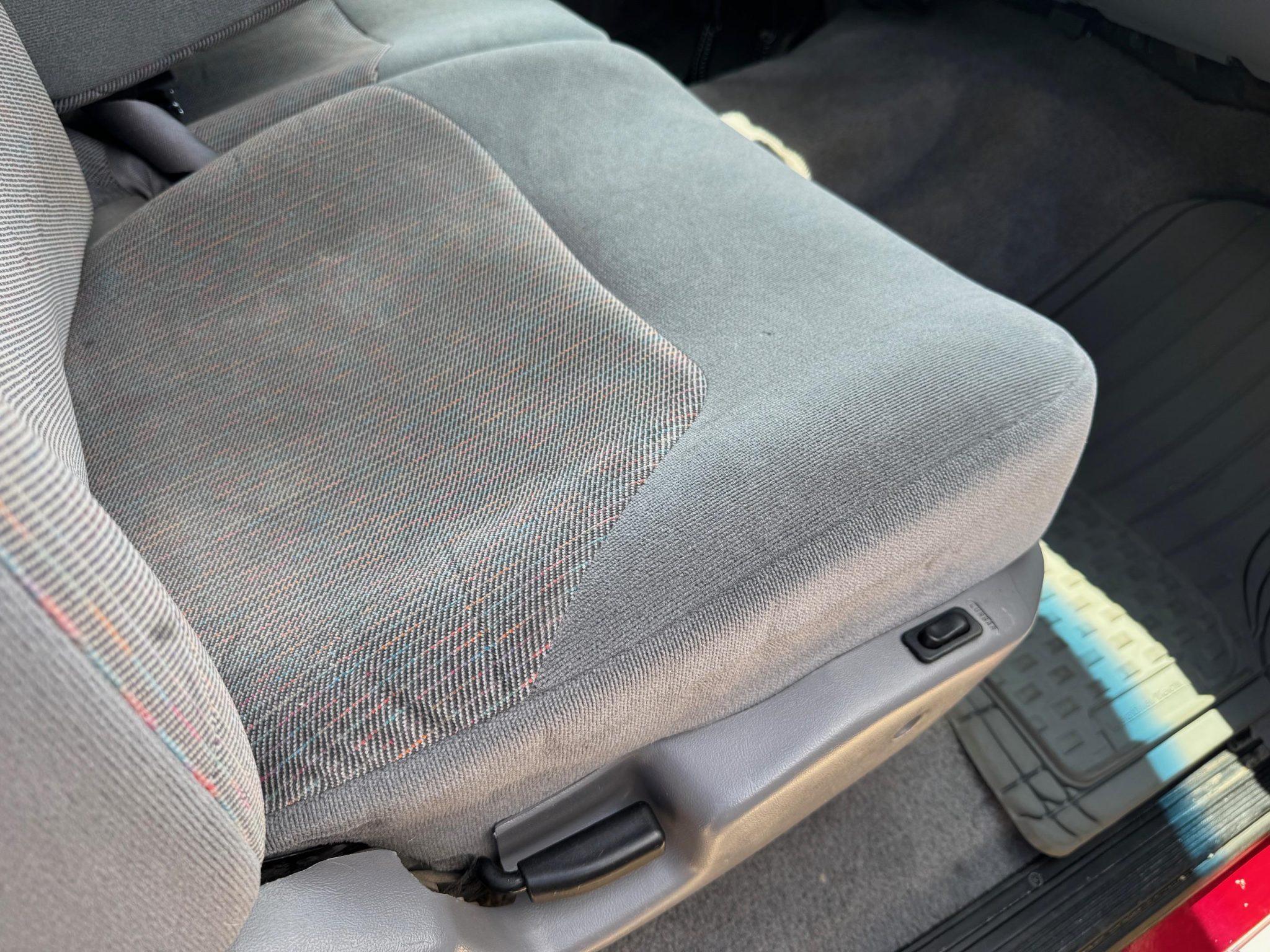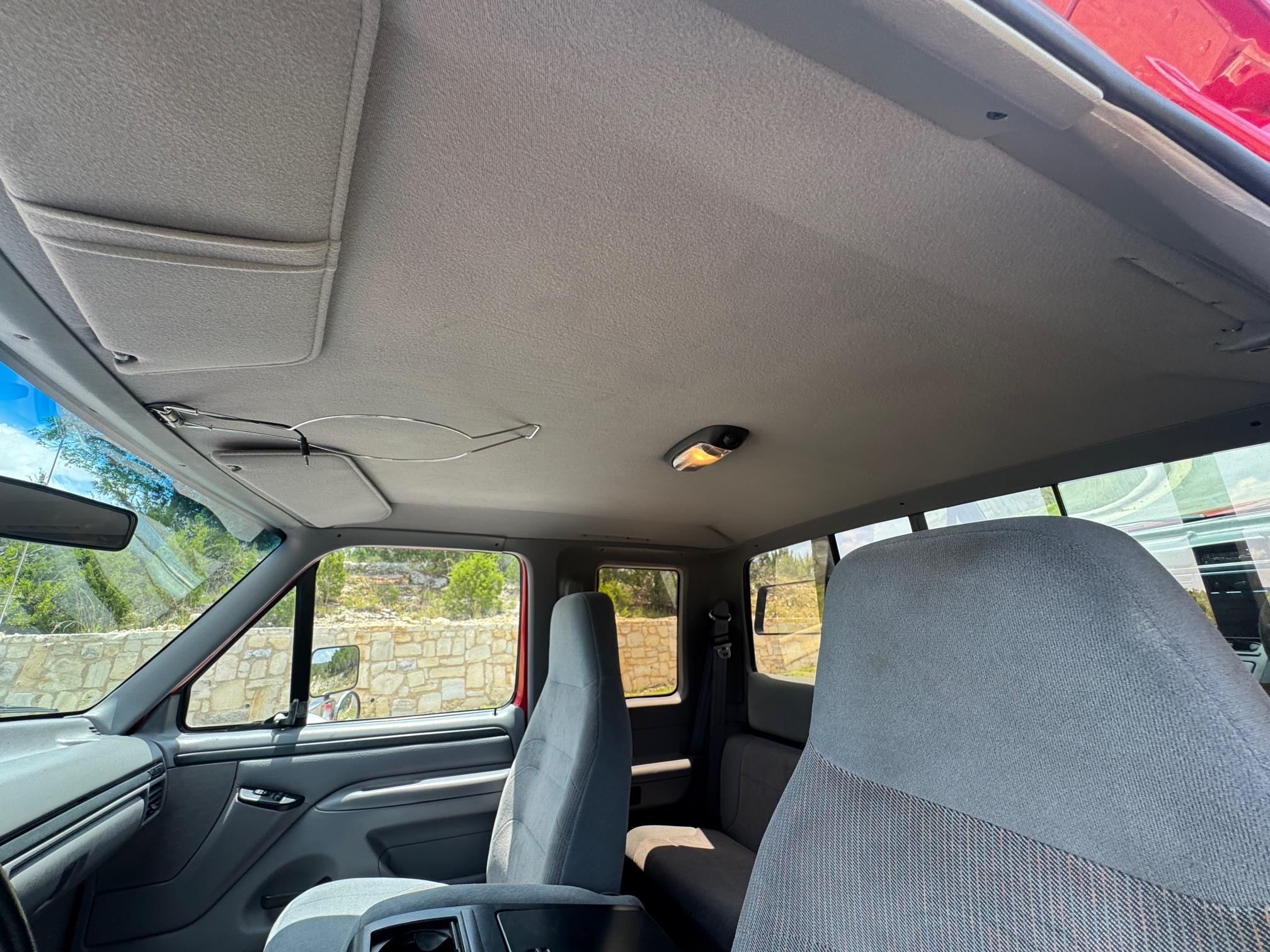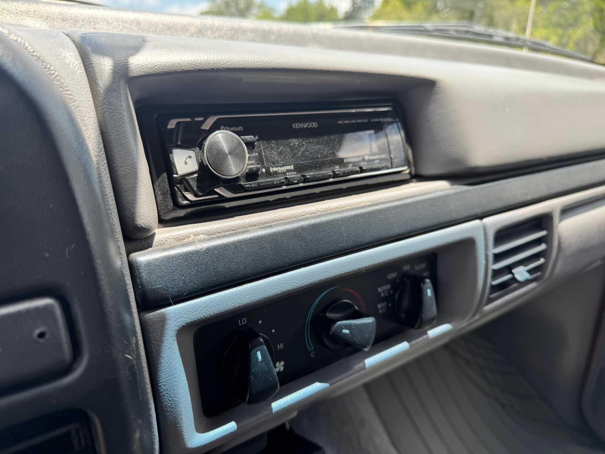 The truck is finished in Bright Red and Oxford White over Opal Gray cloth and is powered by a 7.3-liter turbodiesel V8 linked to a four-speed automatic transmission and a dual-range transfer case. Equipment includes a receiver hitch, a gooseneck hitch, bed-mounted toolboxes, a headache rack, 16″ eight-hole alloy wheels, front disc brakes, manually locking front hubs, air conditioning, cruise control, and a Kenwood stereo. This F-250