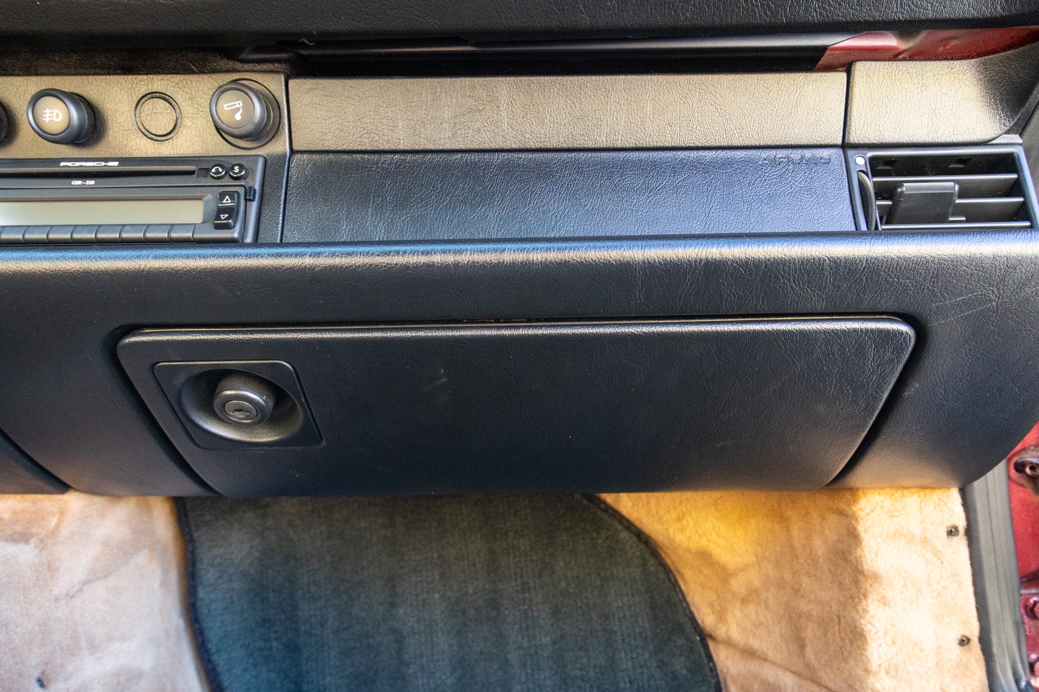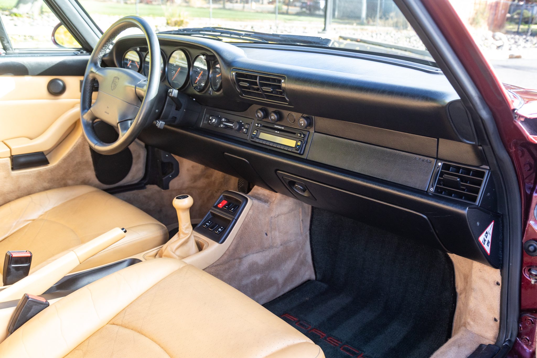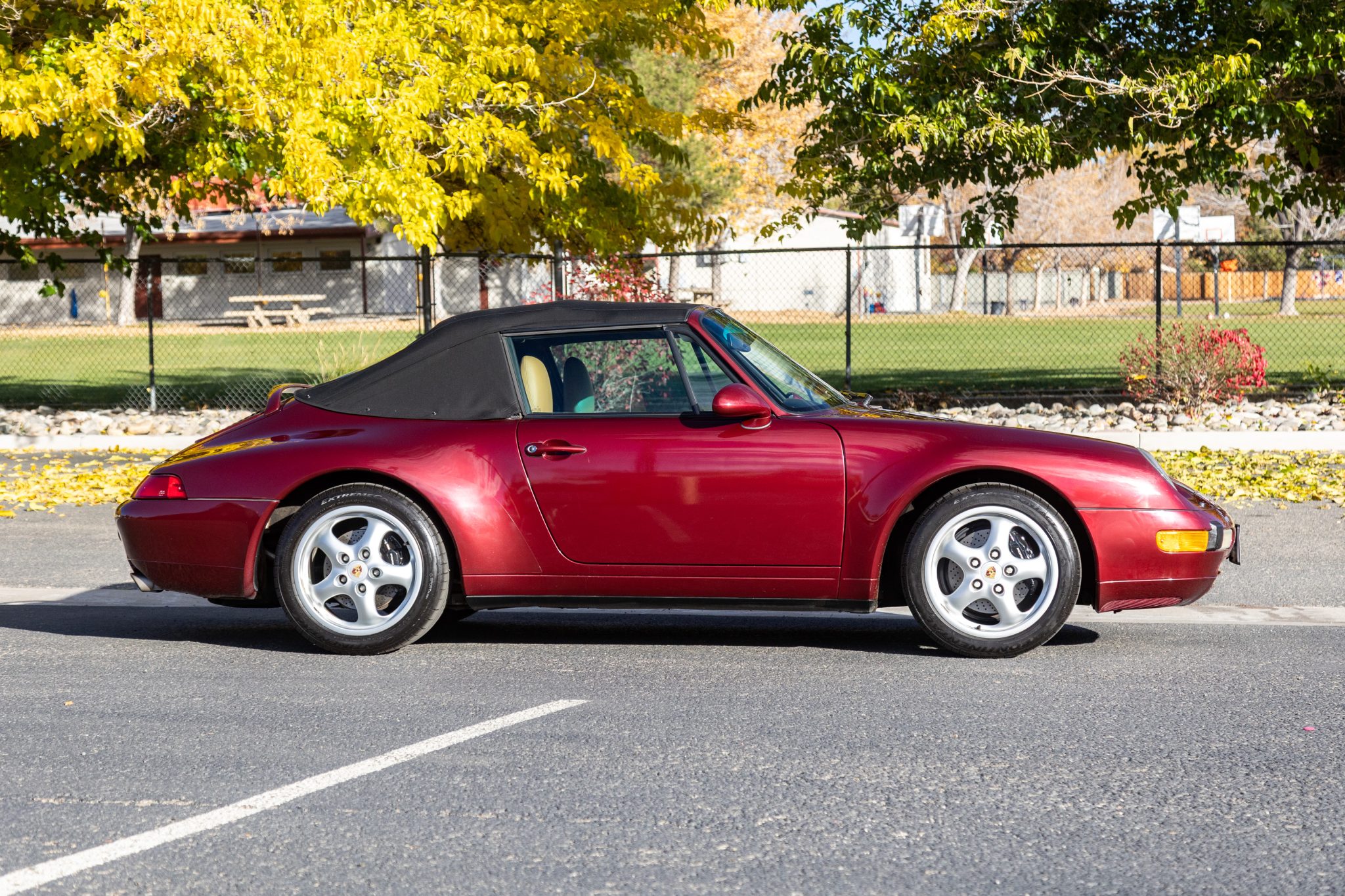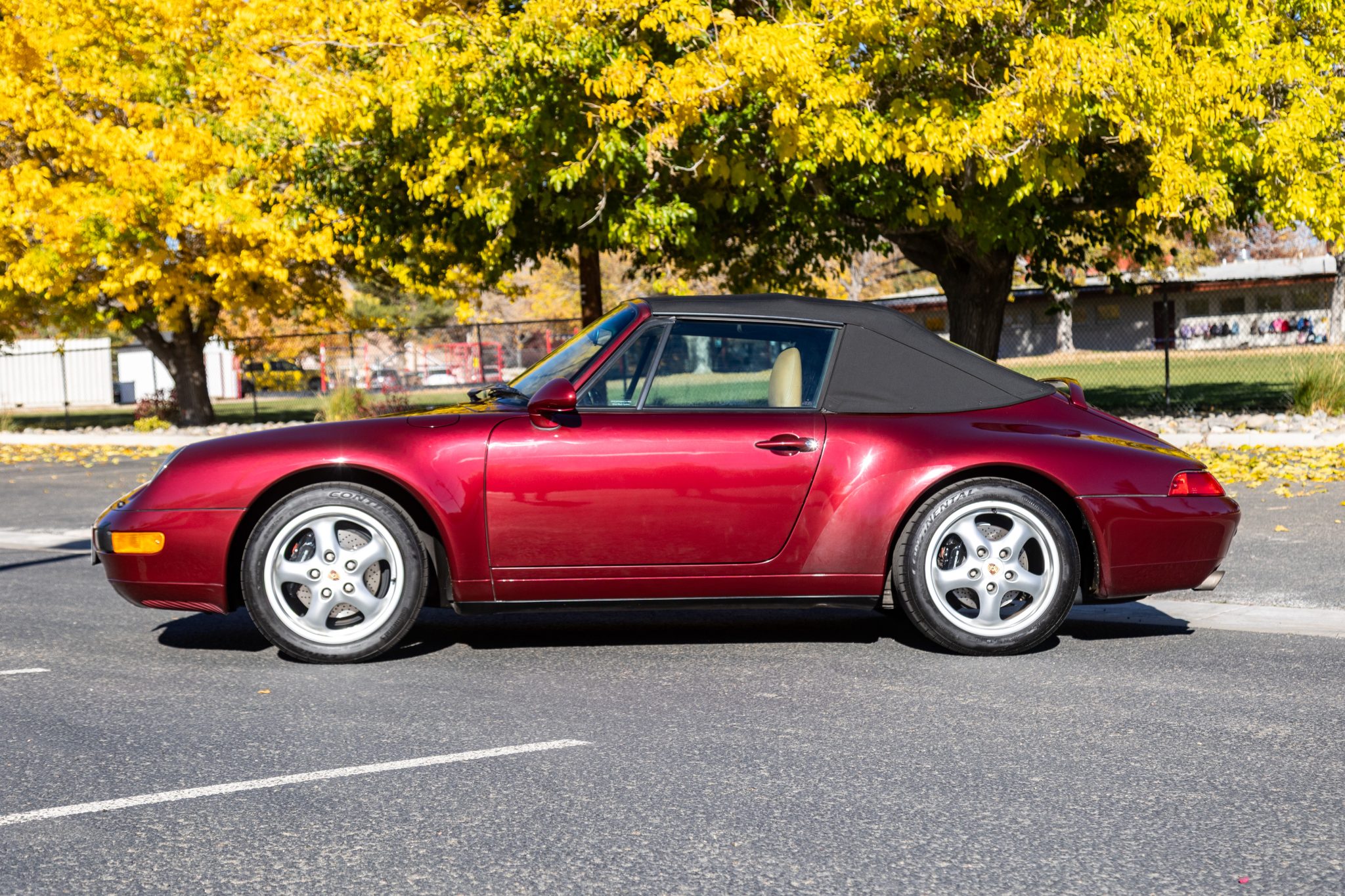 Finished in Arena Red Metallic over Cashmere leather upholstery, the car is powered by a 3.6-liter flat-six mated to a six-speed manual transaxle and a limited-slip differential. Equipment includes a black soft top, 17″ Cup II wheels, headlight washers, power-adjustable front seats, cruise control, a CD stereo, power windows, central locking, and air conditioning. Work in 2025 consisted of repairing the speedometer and the left-front fender, changing the oil, and replacing the battery along with the soft top and its switch and motors. This 993 Carrera cabriolet