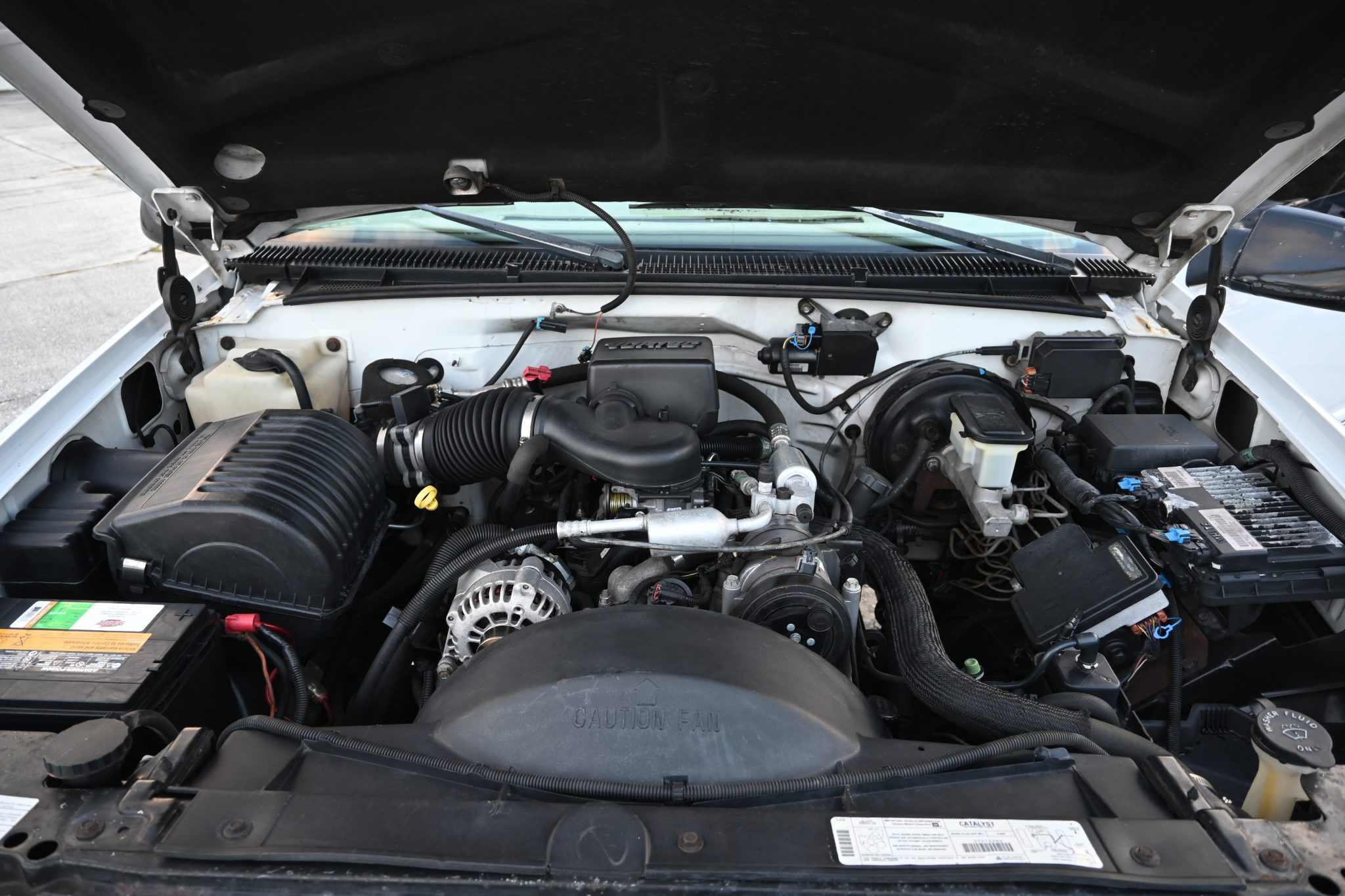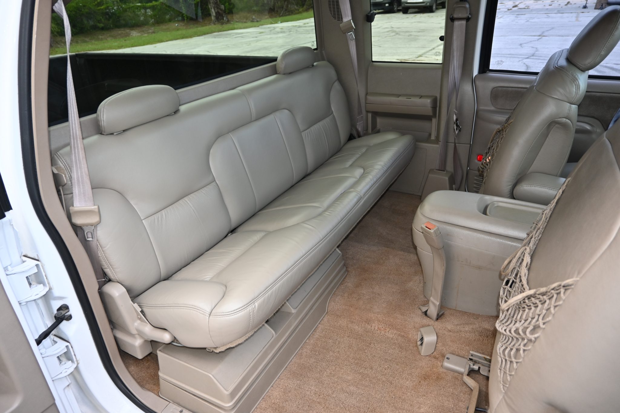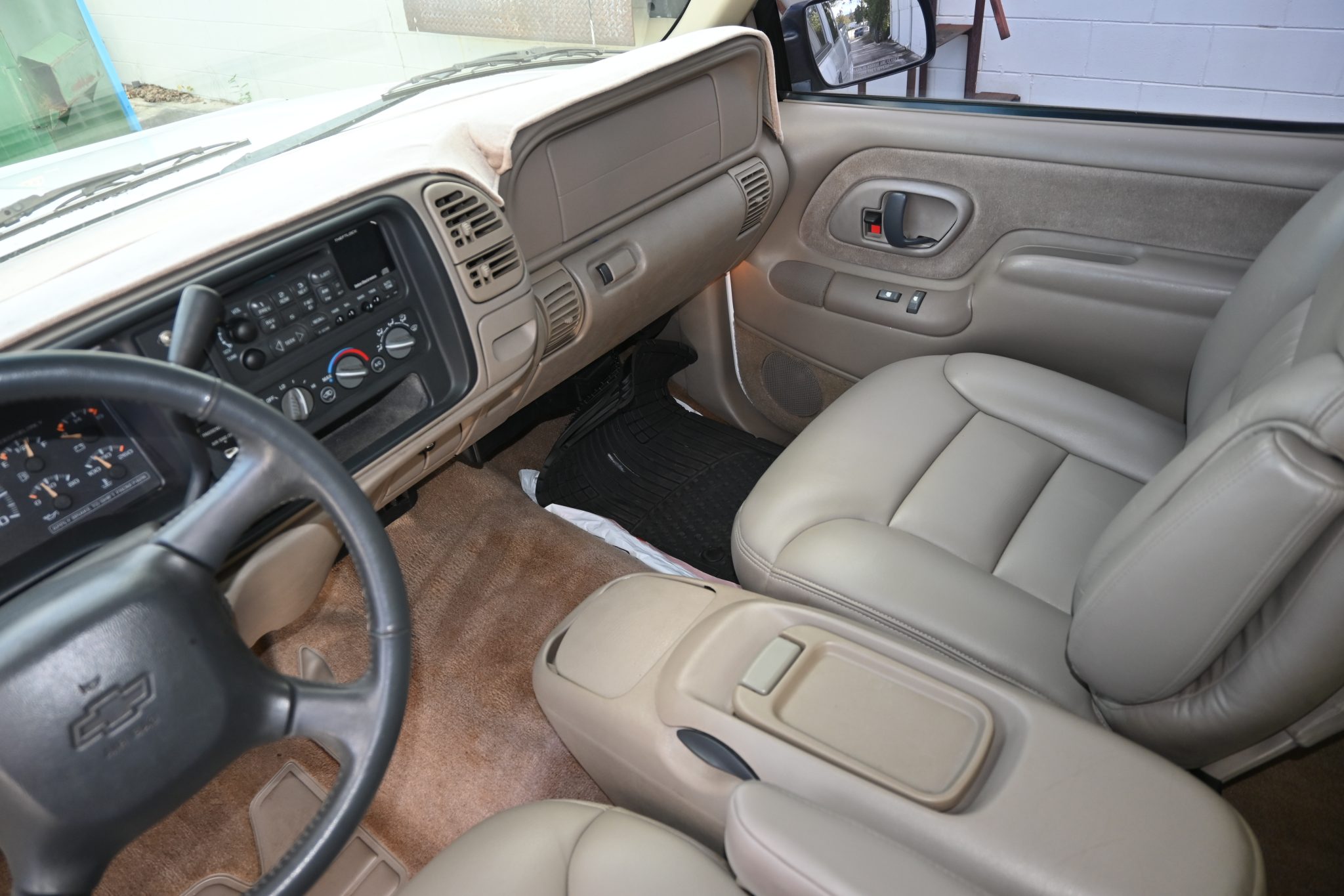 This 1999 Chevrolet Silverado K1500 LS is an extended-cab 4×4 pickup The truck is powered by a 5.7-liter Vortec V8 linked to a four-speed automatic transmission and a dual-range transfer case, and it is finished in Summit White over Oak leather. Equipment includes the Z71 Off-Road package, 16″ aluminum wheels, a bed liner, a receiver hitch, a power-adjustable driver’s seat, power windows and door locks, a CD stereo, cruise control, and air conditioning.