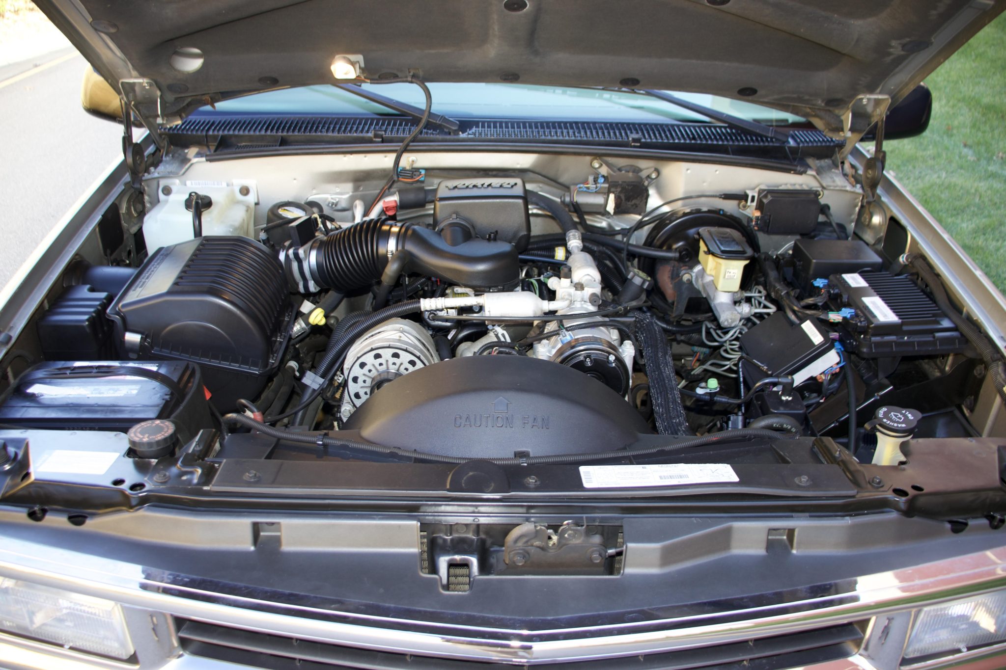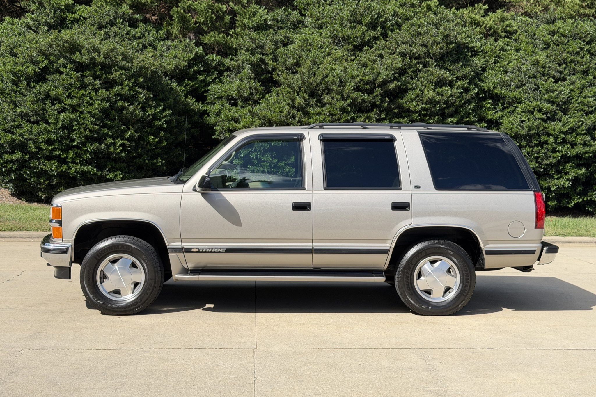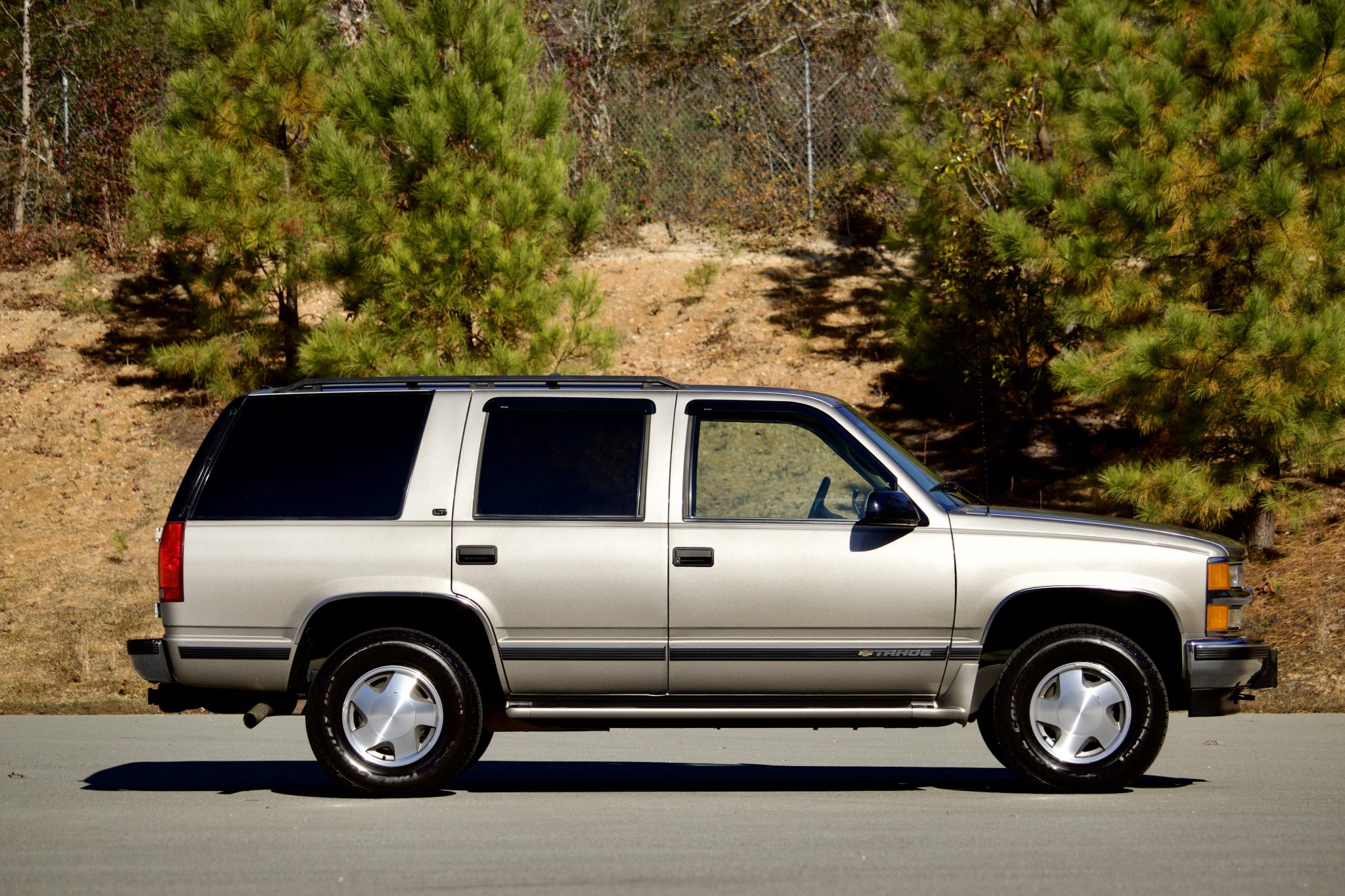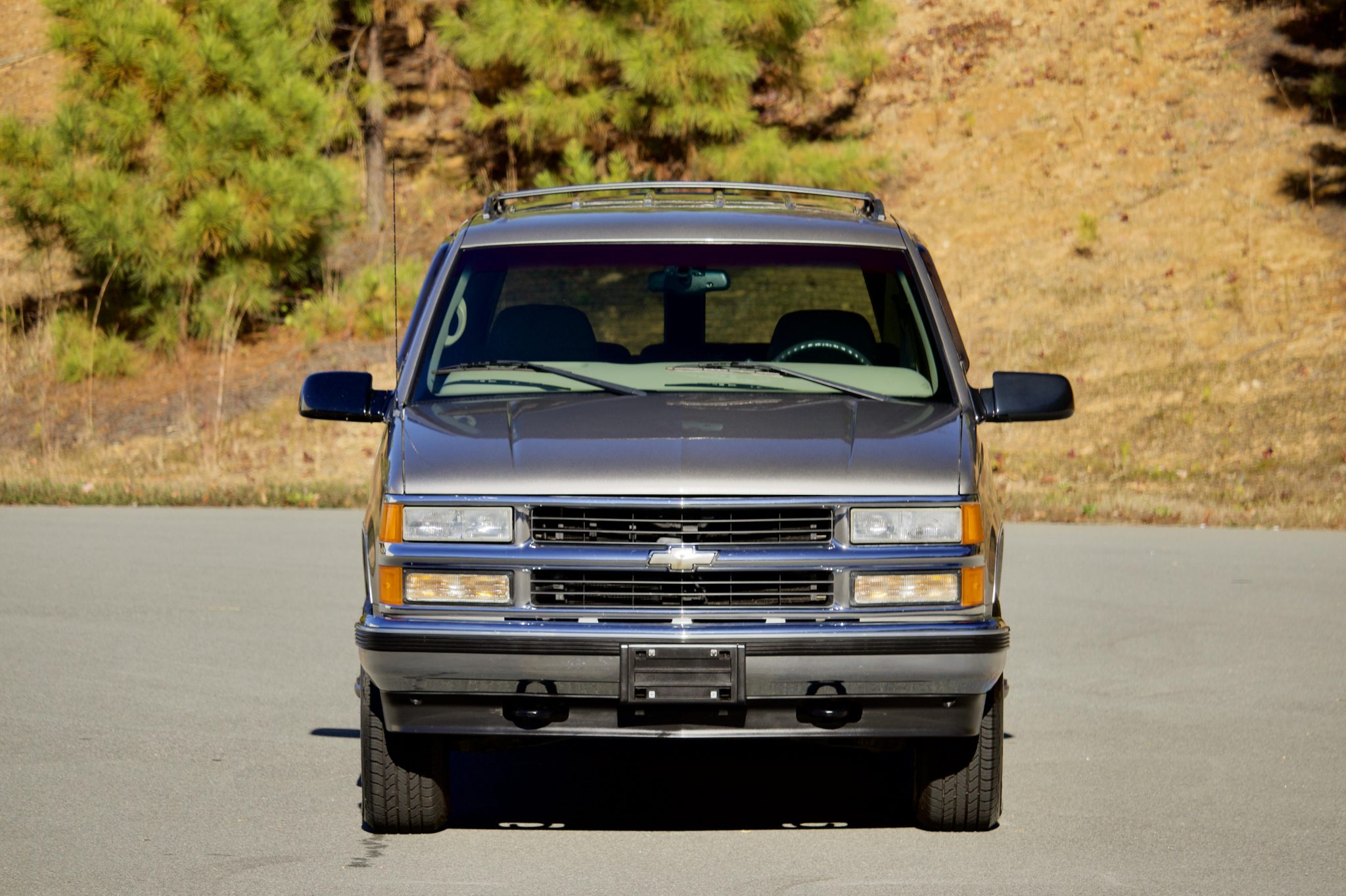 Finished in Light Pewter Metallic over Neutral leather, the truck is powered by a 5.7-liter V8 linked to a four-speed automatic transmission, an AutoTrac full-time four-wheel drive system, and a locking rear differential. Equipment includes Preferred Equipment Group 1SC and the Comfort and Security and Heavy-Duty Trailering packages as well as front disc brakes, 16″ alloy wheels, running boards, rear barn doors, a receiver hitch, heated power-adjustable front seats, dual-zone air conditioning, power windows, and a CD/cassette stereo.
