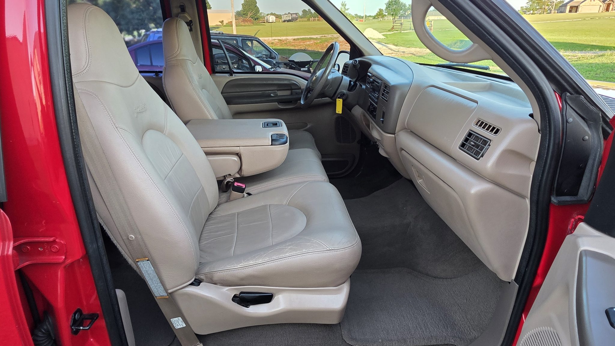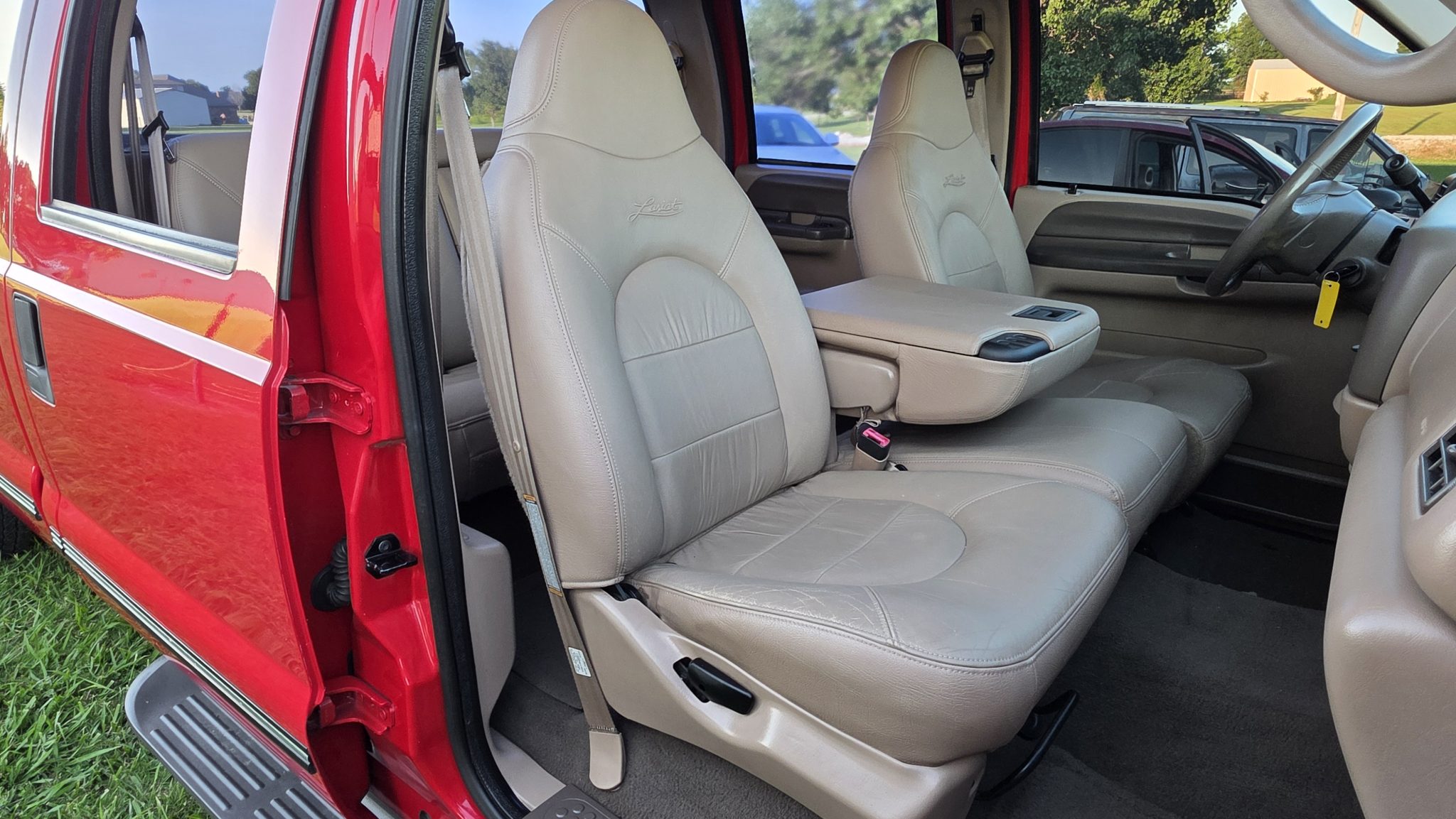 This 1999 Ford F-250 Super Duty Lariat is a Crew Cab long-bed pickup now shows 71k miles. Finished in Vermilion over Prairie Tan leather, the truck is powered by a 7.3-liter Power Stroke turbodiesel V8 that drives the rear wheels through a four-speed automatic transmission and a limited-slip differential. Equipment includes 16″ alloy wheels, four-wheel disc brakes, a power-adjustable driver’s seat, a CD/cassette stereo, cruise control, and air conditioning.