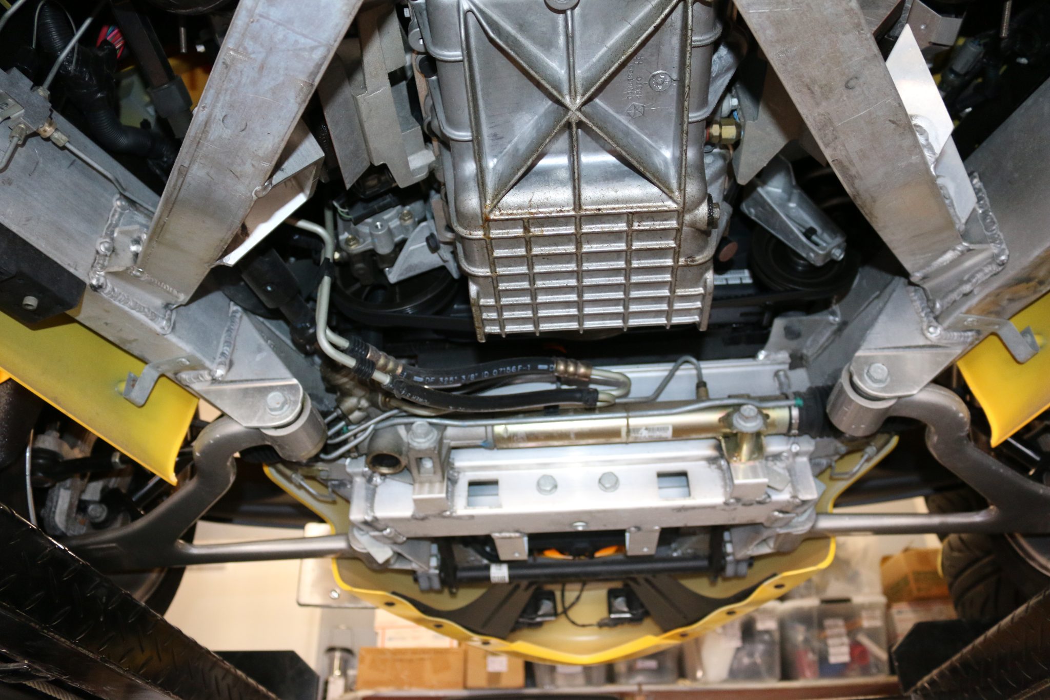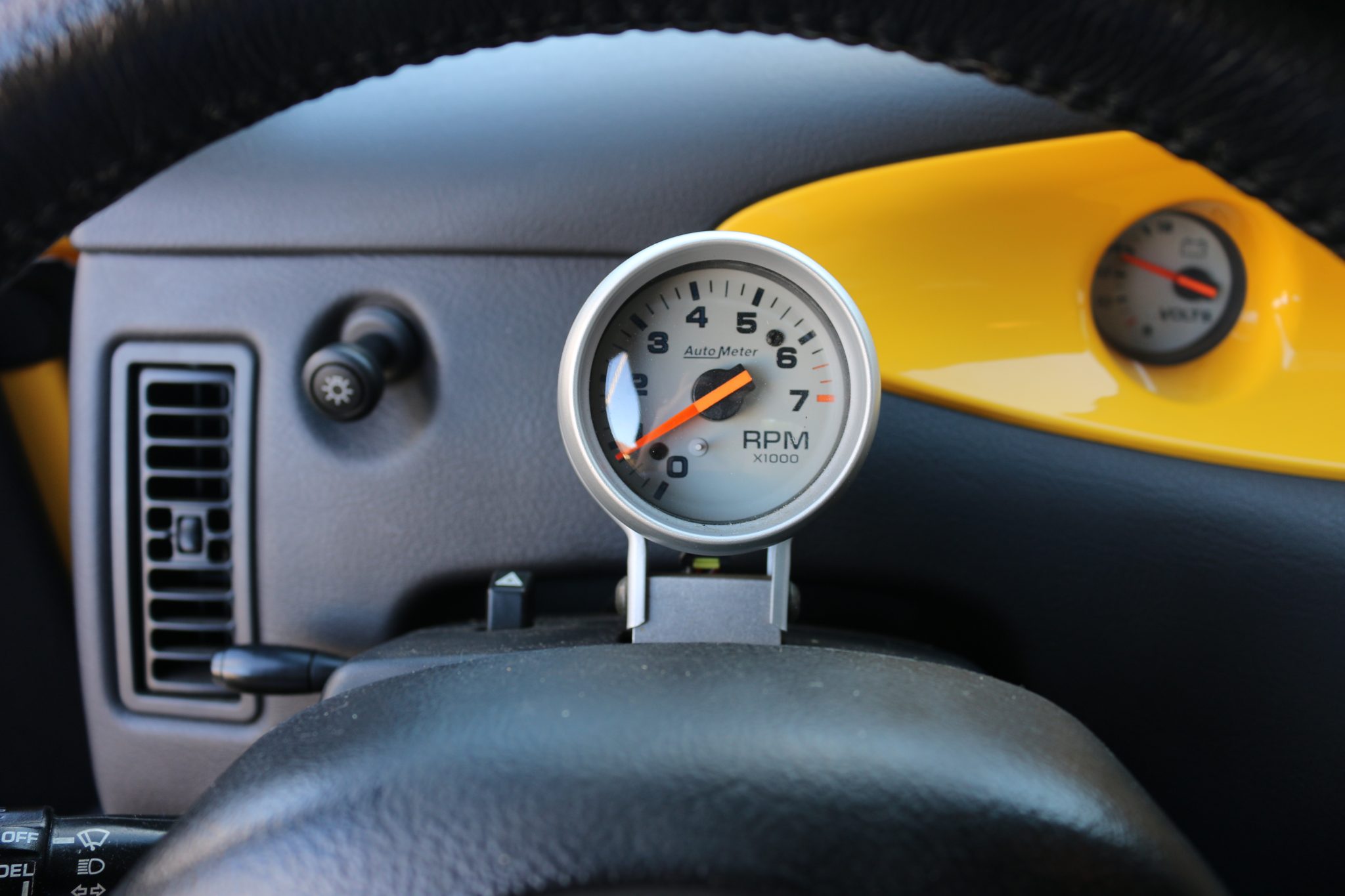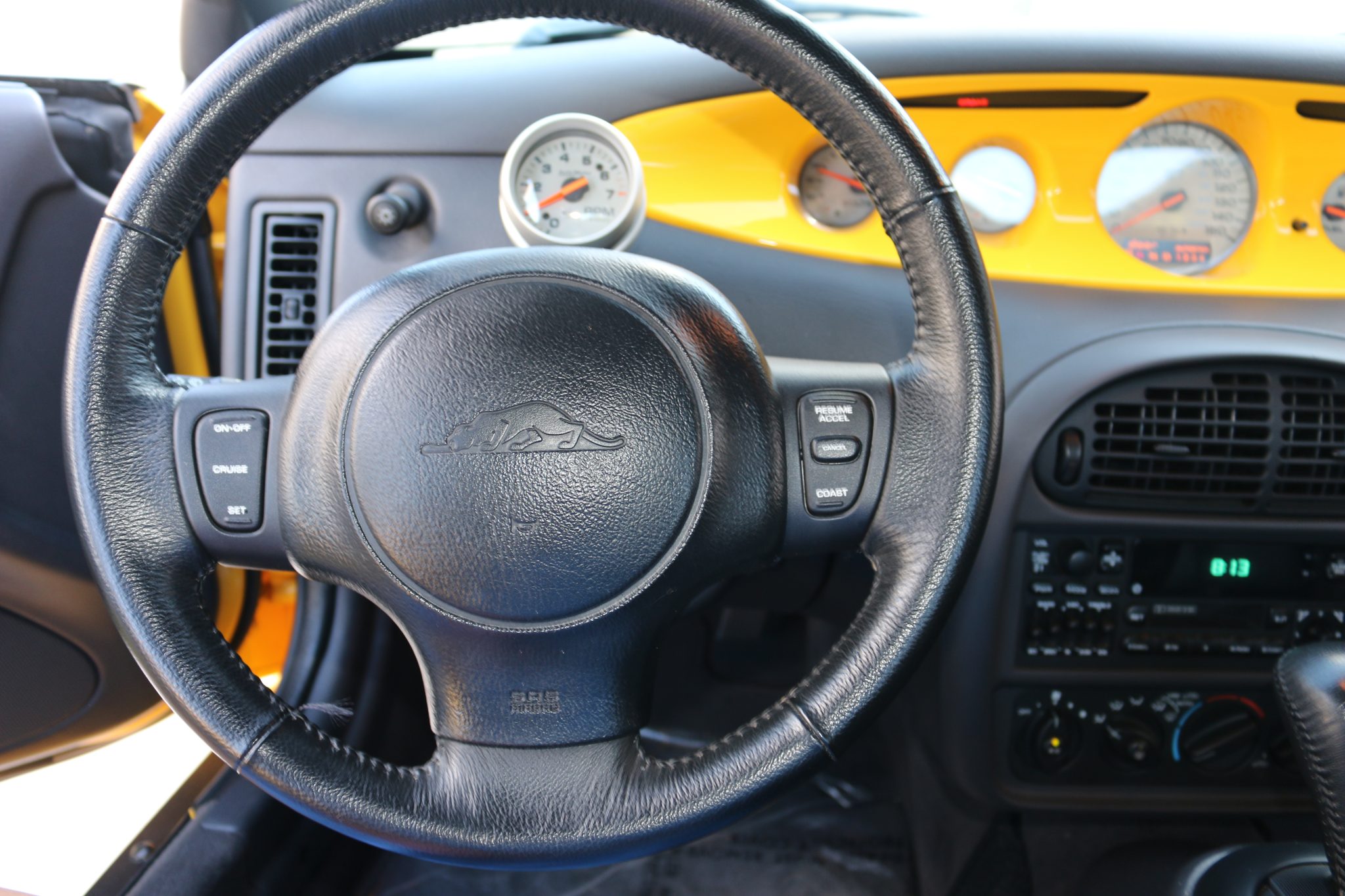 The car is powered by a 3.5-liter V6 paired with a four-speed automatic transaxle and is finished in Prowler Yellow over Agate leather. Equipment includes staggered-diameter five-spoke wheels, a black convertible soft top, air conditioning, cruise control, an Infinity sound system, and an AM/FM/cassette stereo with a CD changer.
