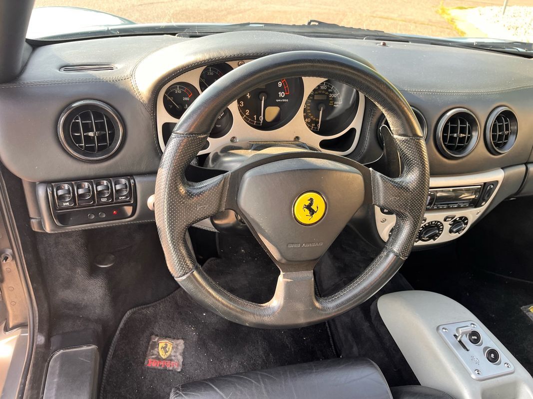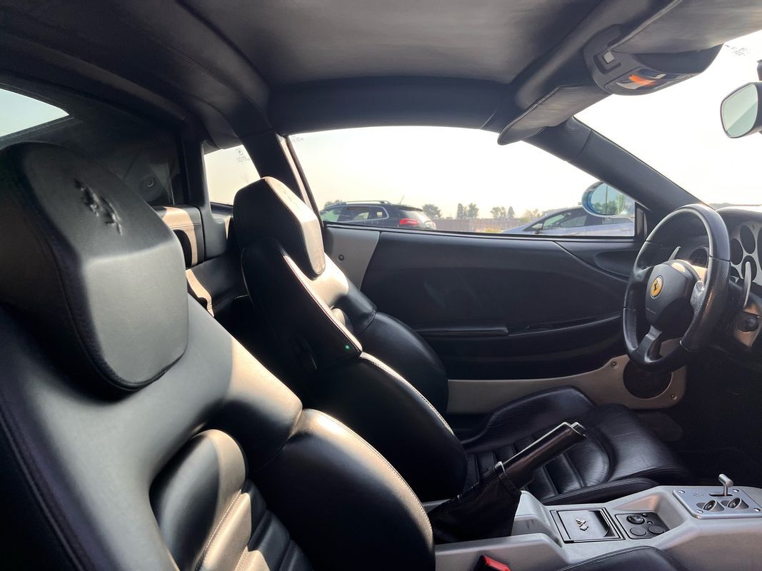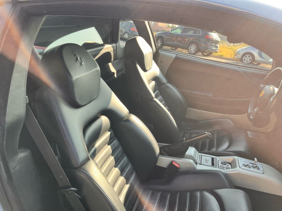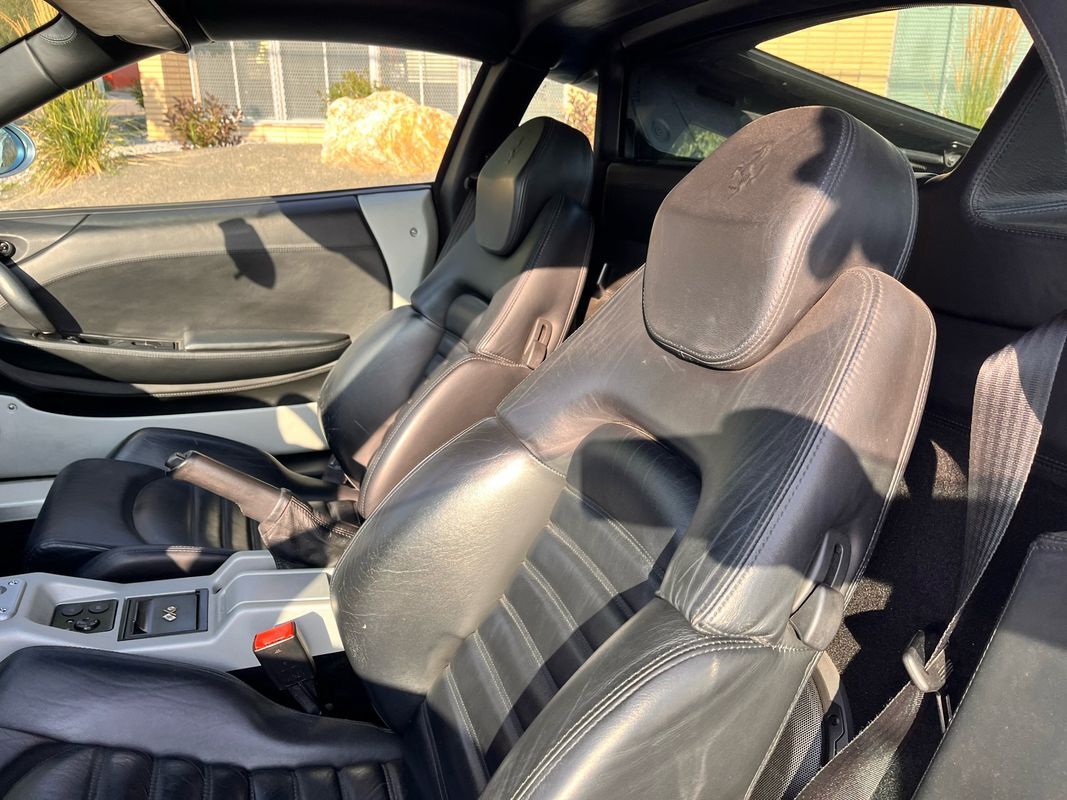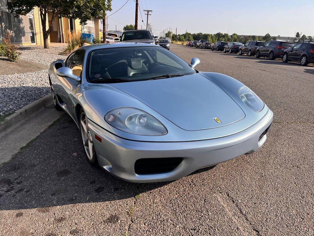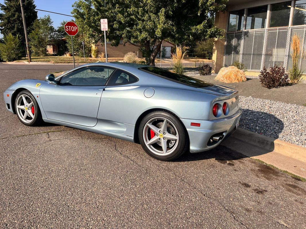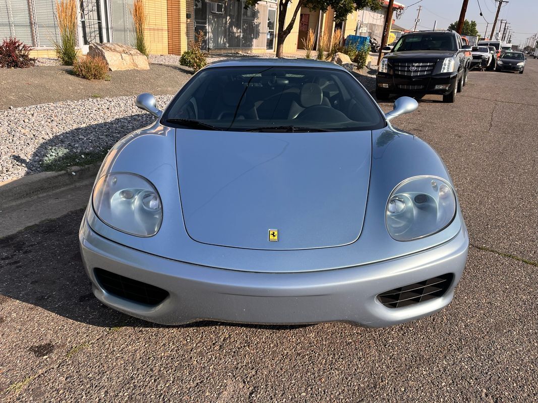 2000 Ferrari 360 Modenacoupe finished in light blue exterior over midnight blue leather interior. This Ferrari 360 only has 26,587 original miles with the factory V8 and F1 gearbox. The body and paint are nearly flawless not one door ding and no chips in the paint. This Ferrari has the Ferrari shields on the fender and is very stock. The interior is in very nice condition. All the power seats. Power windows are all in working condition and does not have the sticky buttons like you typically find in most all Ferraris.