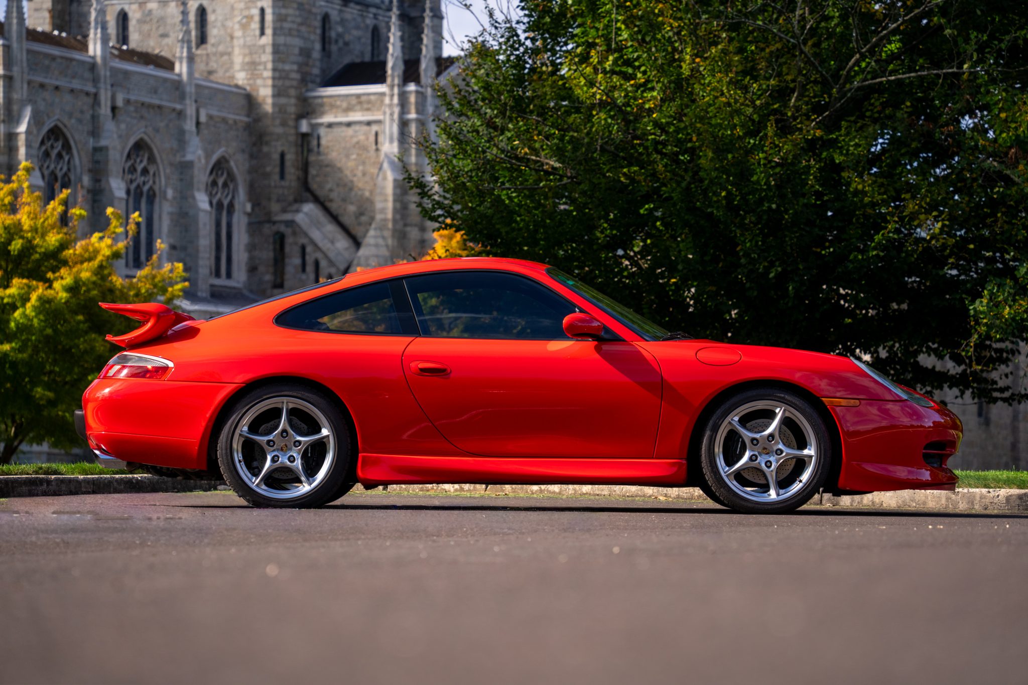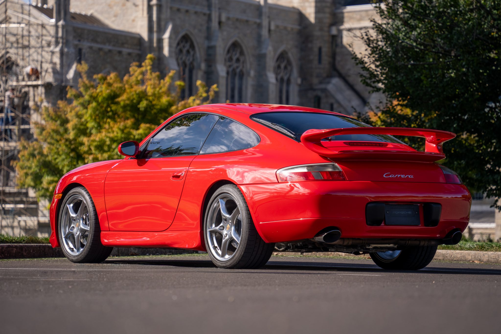 This 2000 Porsche 911 Carrera coupe has 36k miles and was optioned with Aerokit bodywork and the Digital Sound Package, and it received an LN Engineering IMS bearing in 2022. Powered by a 3.4-liter M96 flat-six paired with a six-speed manual transaxle, the car is finished in Guards Red over black full leather upholstery. Equipment includes a sunroof, 18” Carrera II wheels, cruise control, a HiFi sound system, a CDR-220 stereo, and automatic climate control.