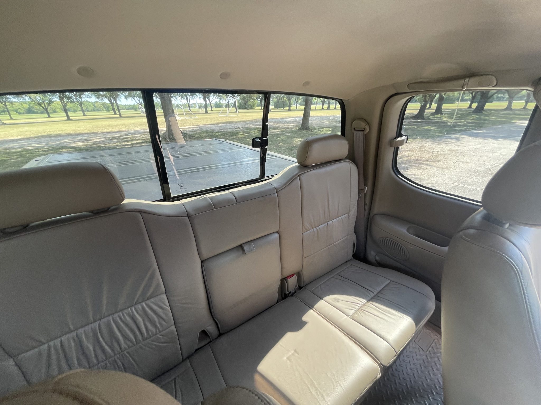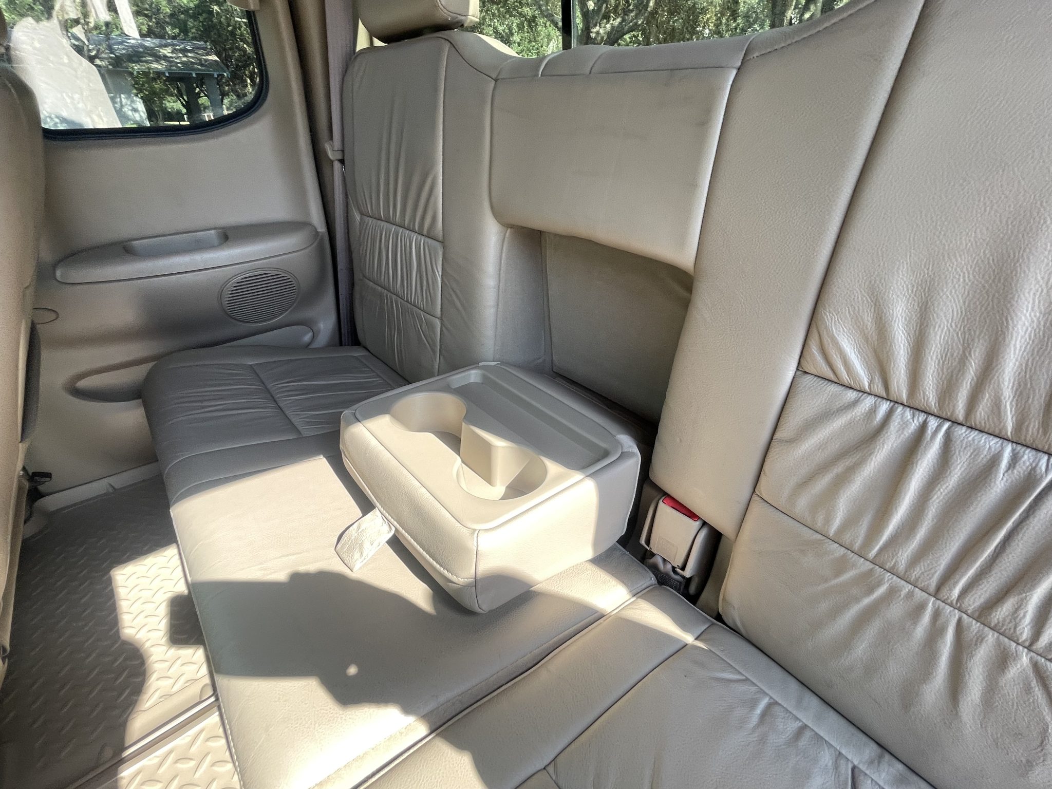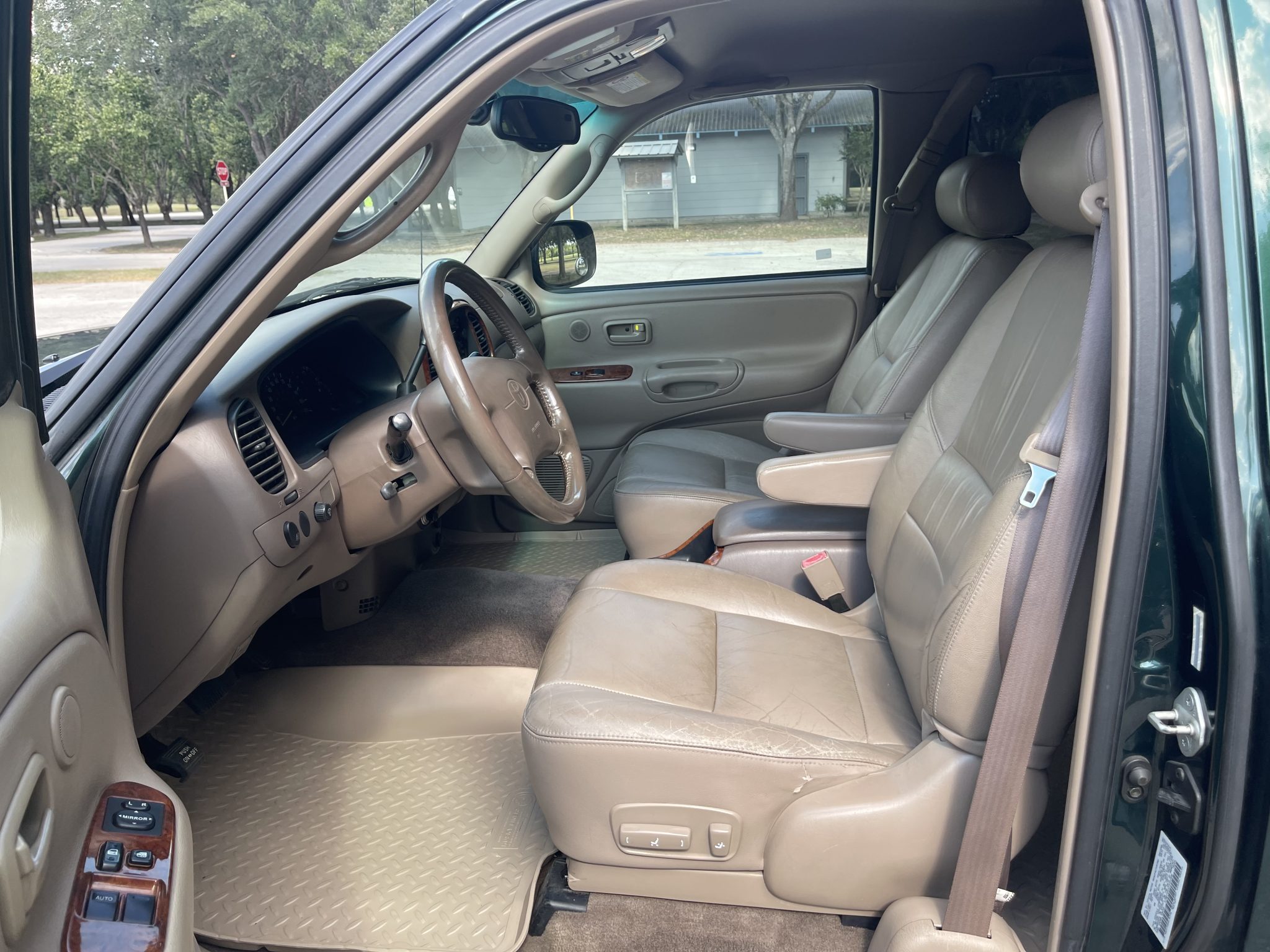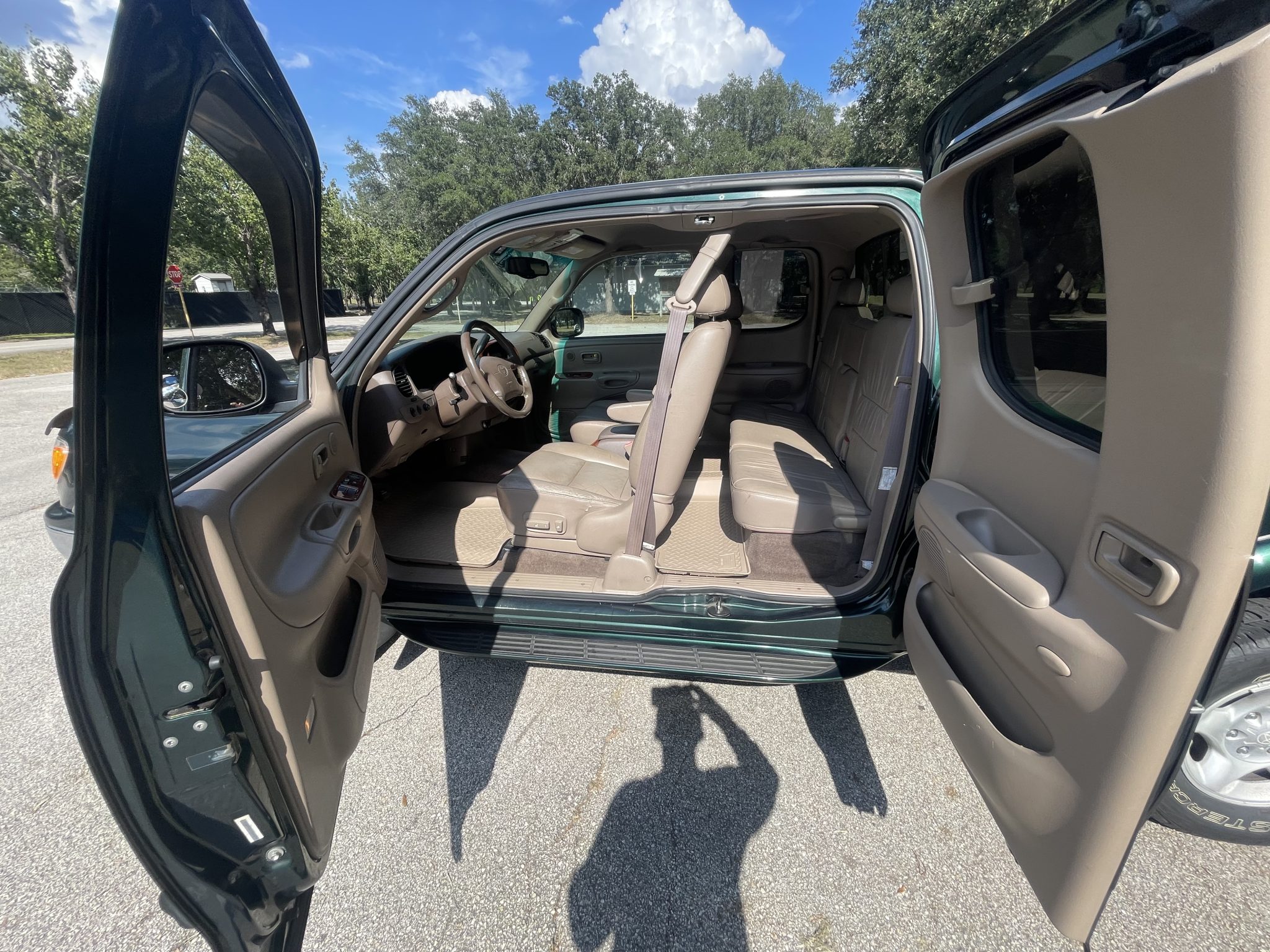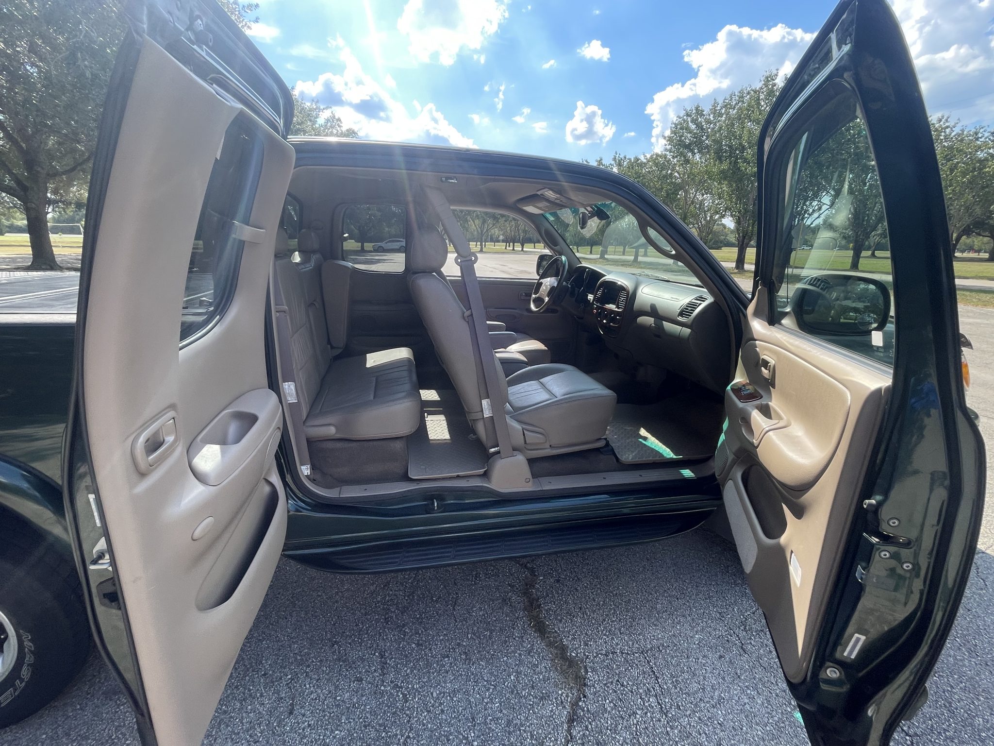 This 2000 Toyota Tundra Limited is an Access Cab 4×4 pickup powered by a 4.7-liter V8 that drives the rear or all four wheels through a four-speed automatic transmission and a dual-range transfer case. Finished in Imperial Jade Mica over Oak leather, the truck is equipped with the TRD Off-Road package, 16″ alloy wheels, side steps, fog lights, a sliding rear window, a hitch receiver, air conditioning, cruise control, front captain’s chairs, power accessories, and cassette/CD-changer stereo.