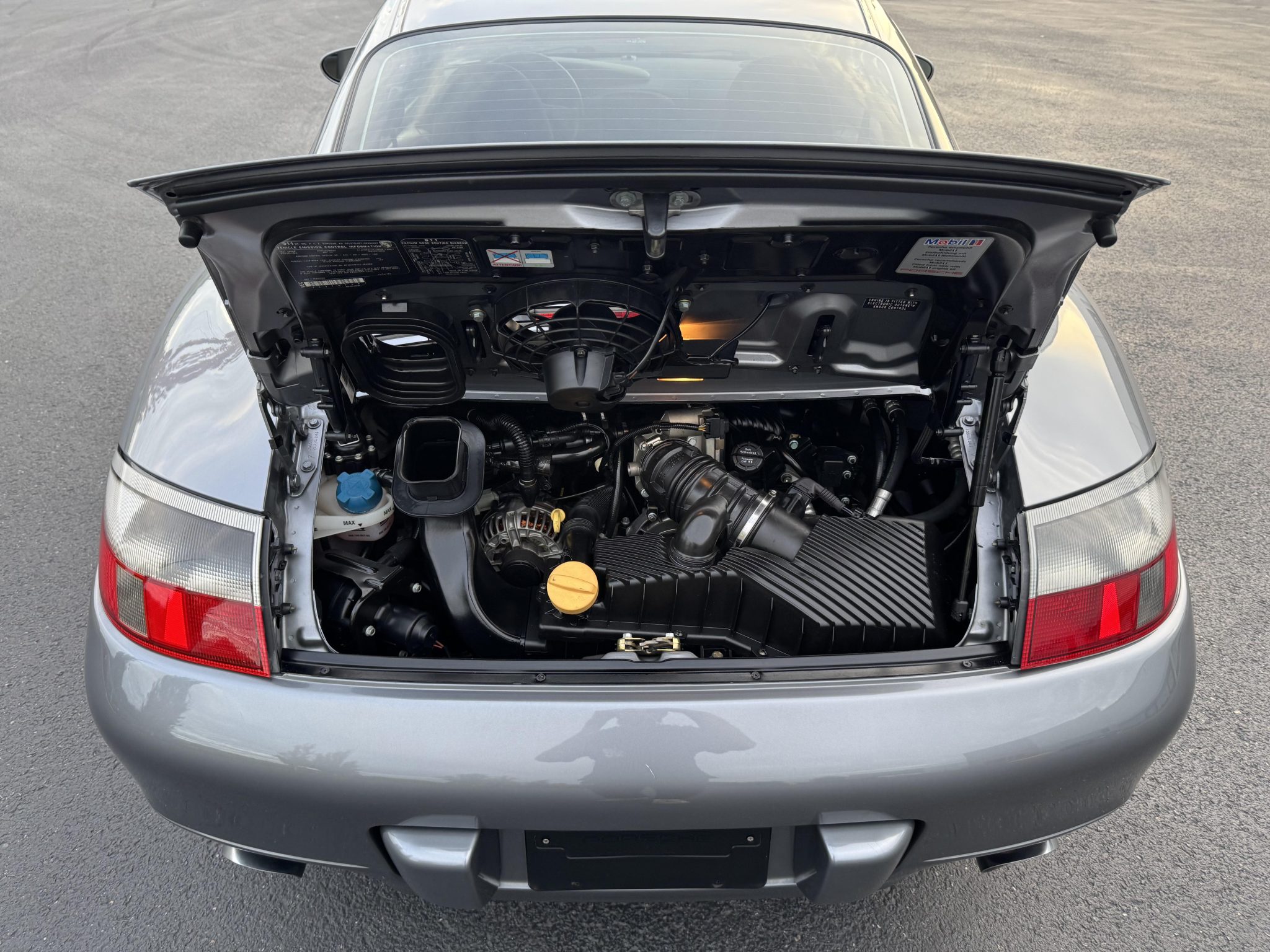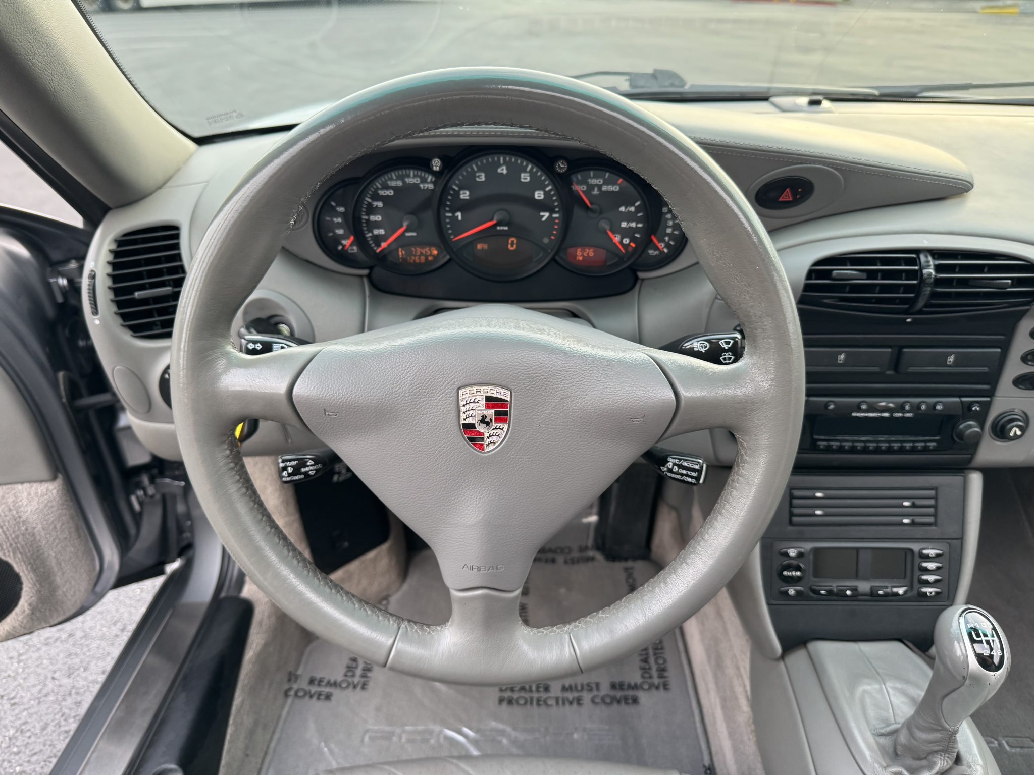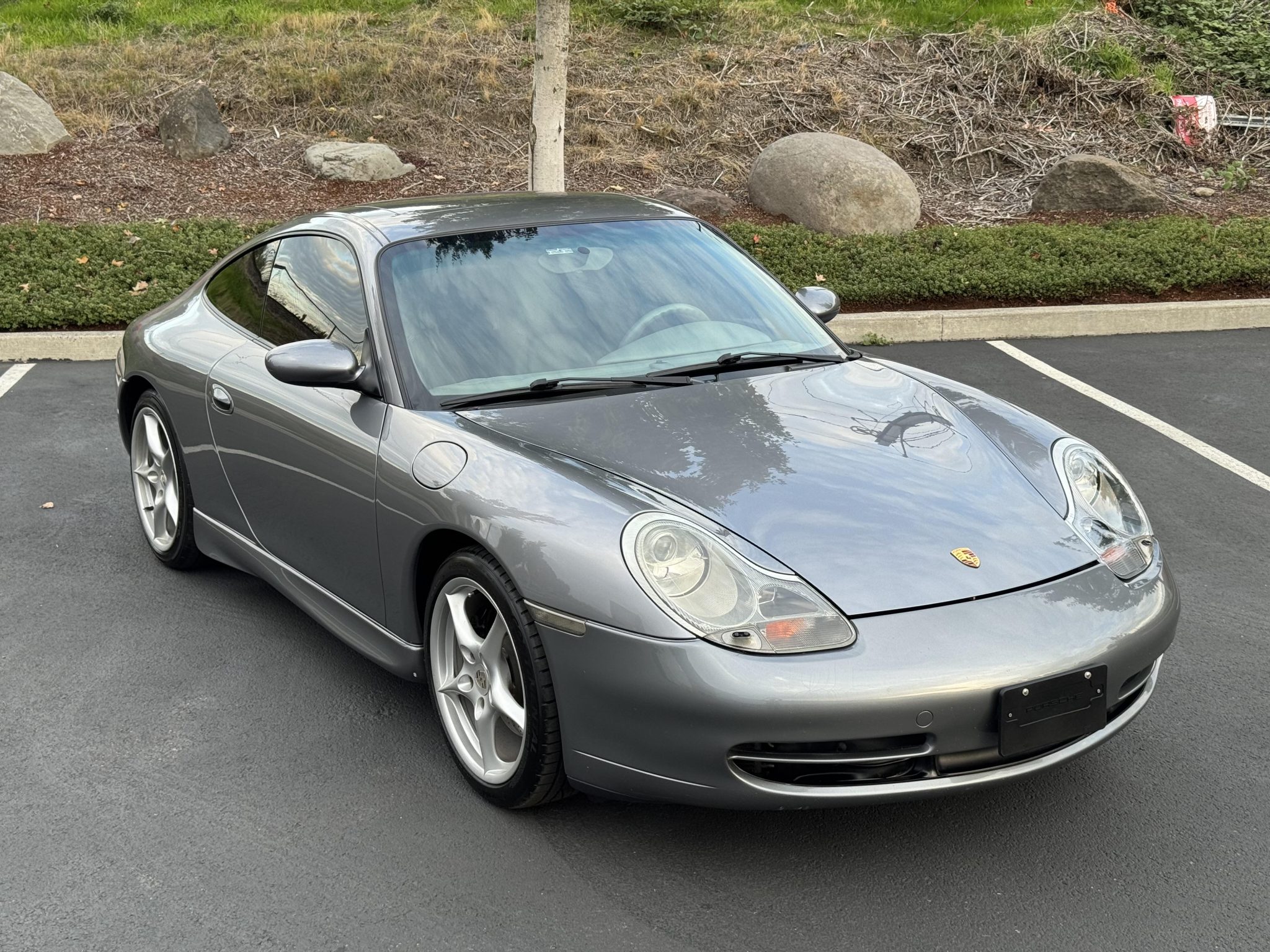 This 2001 Porsche 911 Carrera coupe is powered by a 3.4-liter M96 flat-six paired with a six-speed manual transaxle and is finished in Seal Gray Metallic over gray leather upholstery. Features include a sunroof, xenon headlights, a deployable rear spoiler, 18” Carrera II wheels, cruise control, power-adjustable front seats, a CDR-220 stereo, and automatic climate control.