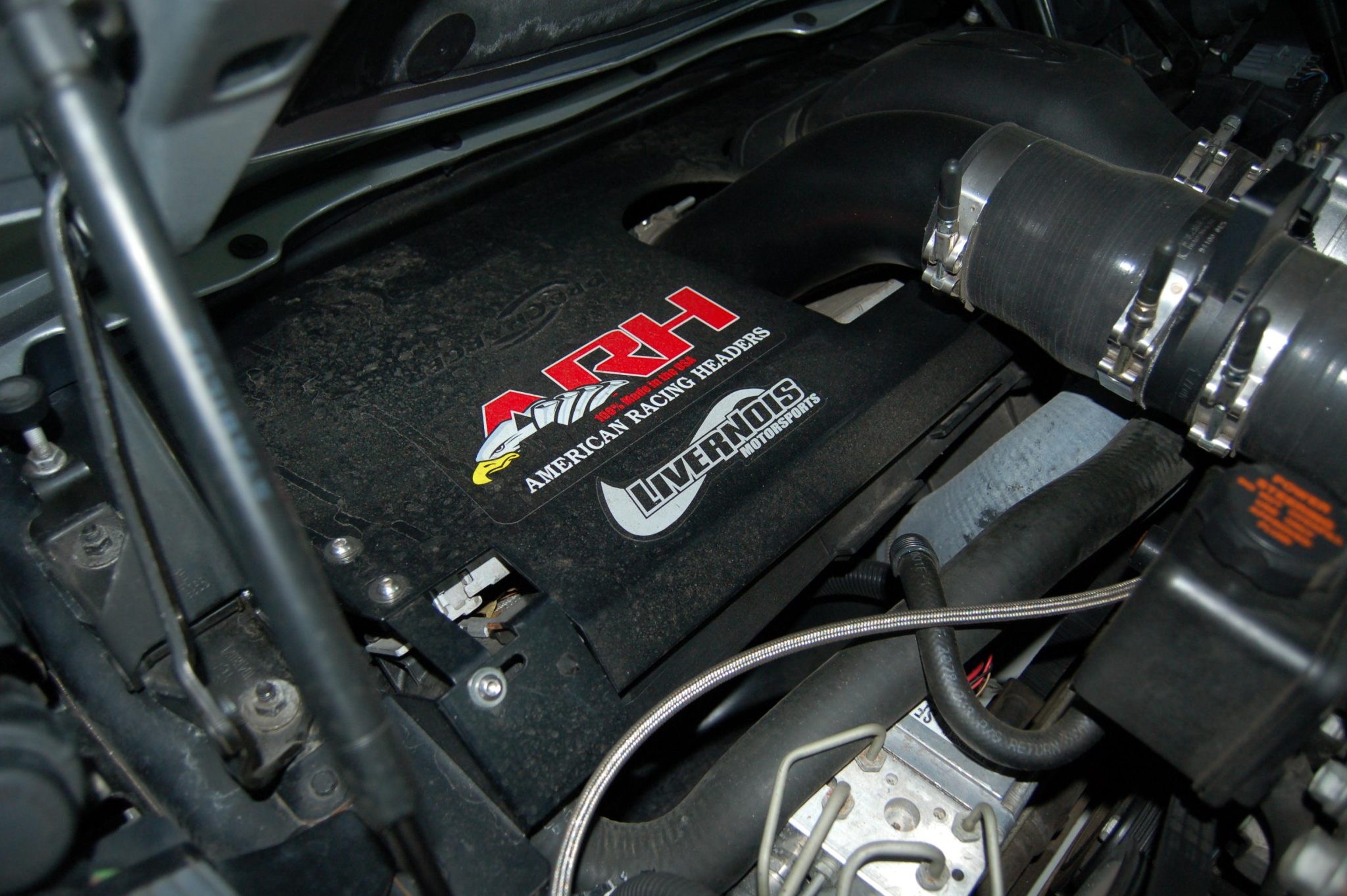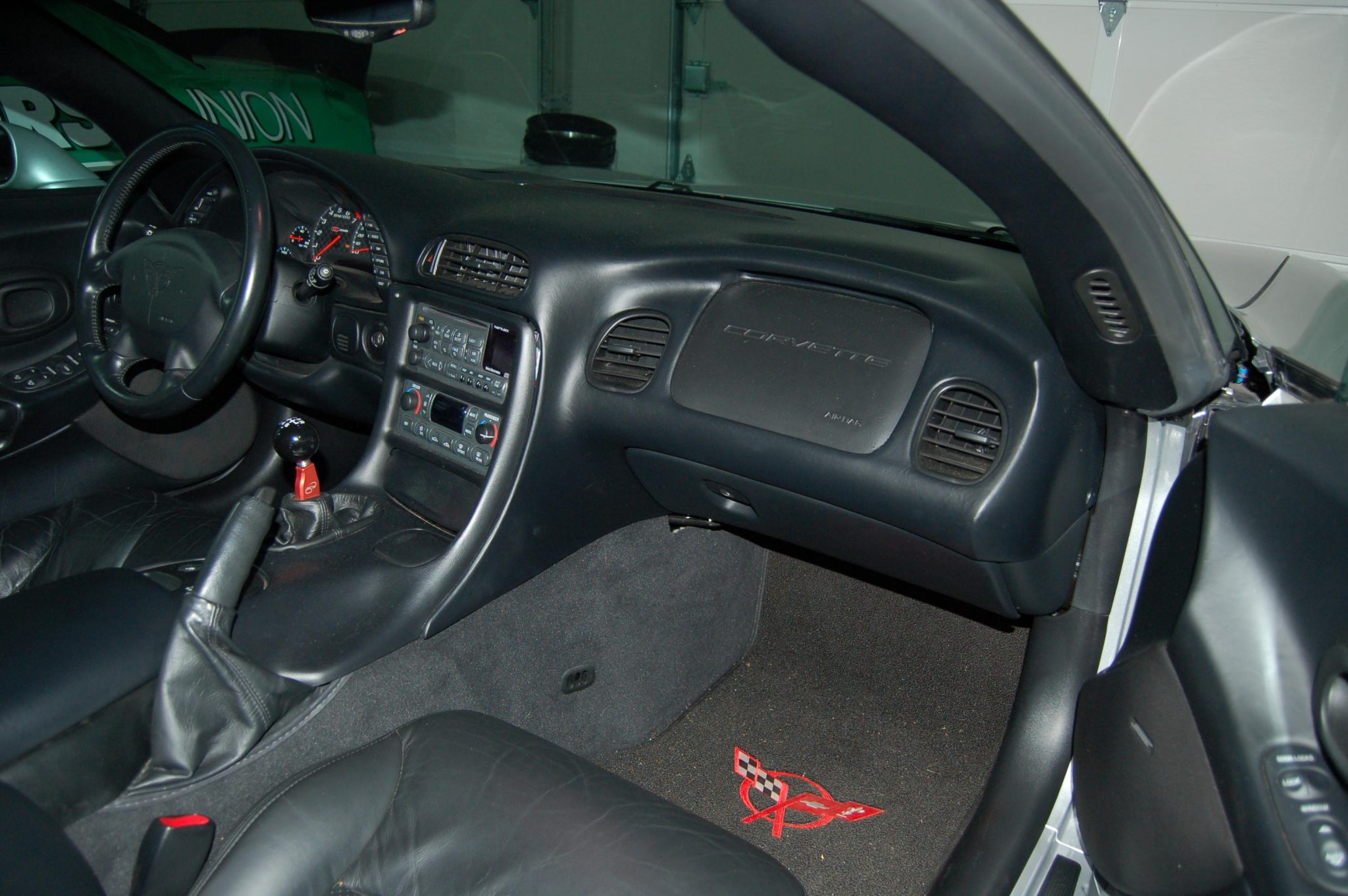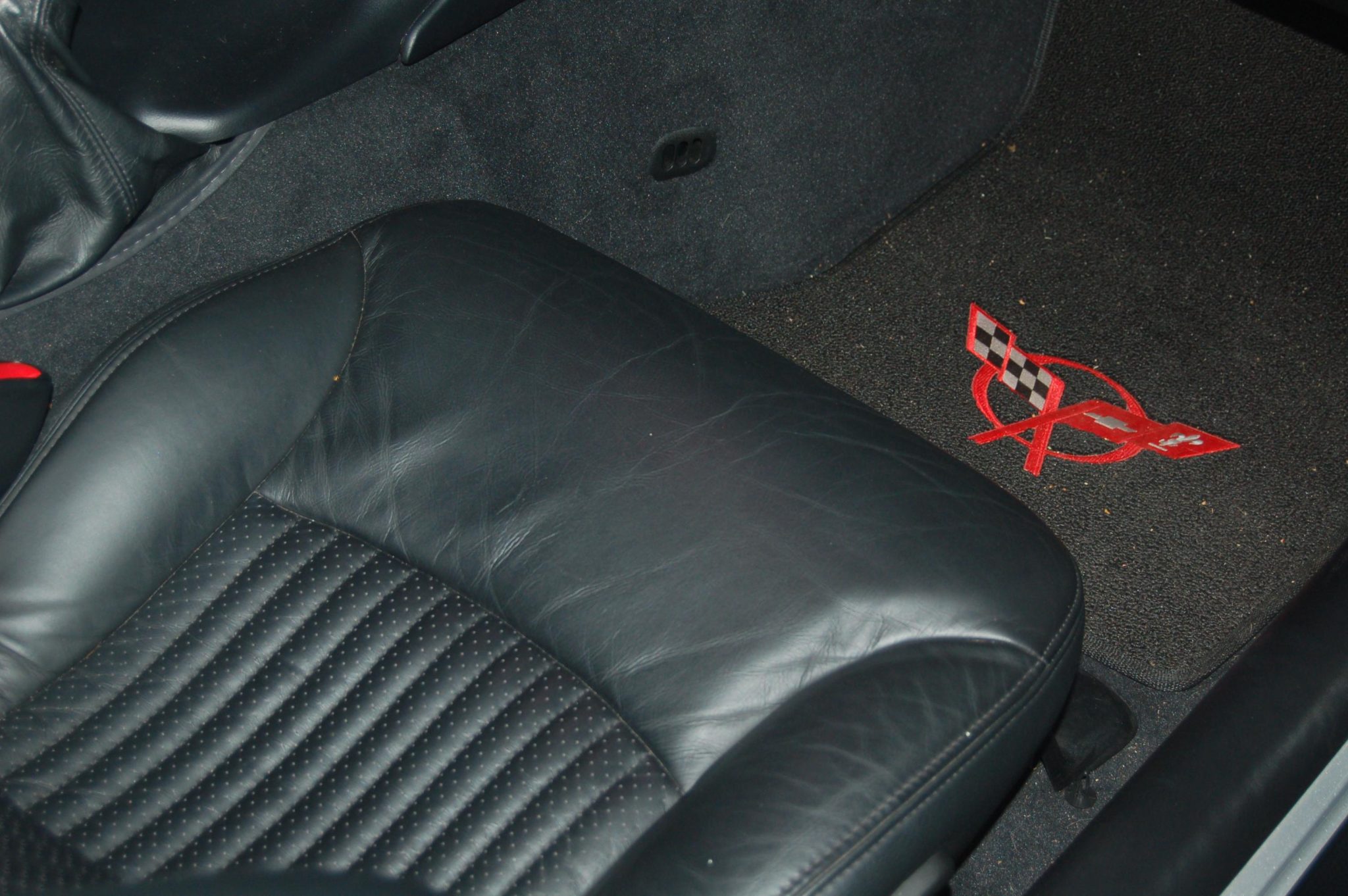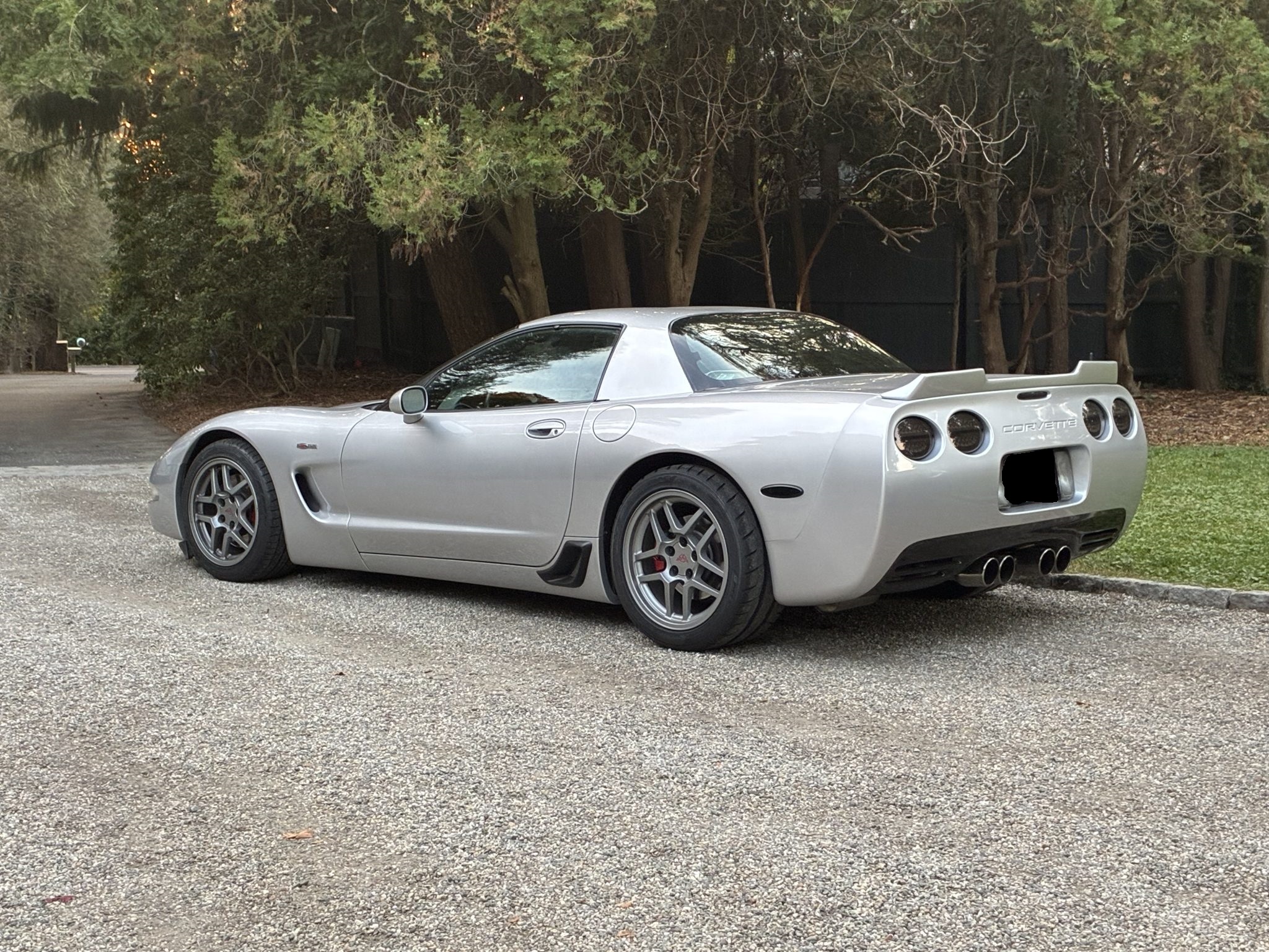 This 2002 Chevrolet Corvette Z06 is powered by a supercharged 5.7-liter LS6 V8 linked to a six-speed manual gearbox and a limited-slip differential, and it is finished in Quicksilver Metallic over black leather. The car was modified under previous ownership with a ProCharger supercharger, an intercooler, a high-performance camshaft, American Racing long-tube headers, a Borla exhaust system, a revised fuel system, an Alky Control methanol injection system, aftermarket lighting, and an MGW short shifter. It is further equipped with 17″ and 18″ alloy wheels, pop-up headlights, a rear lip spoiler, power-adjustable seats, dual-zone automatic climate control, a head-up display, and a CD stereo linked to a Bose sound system