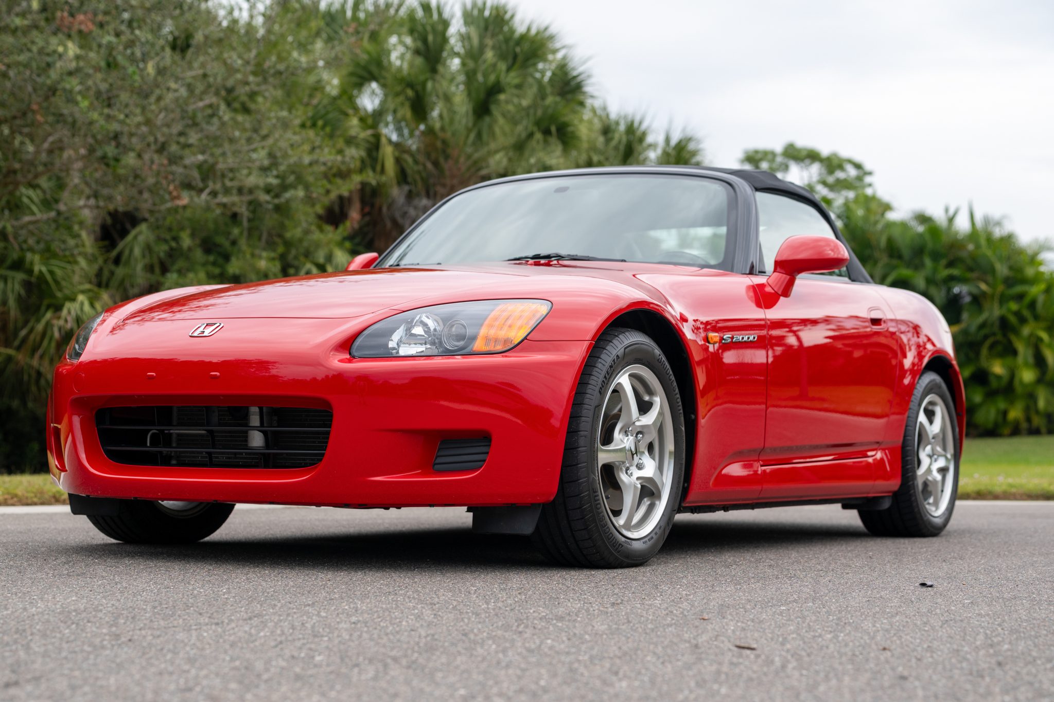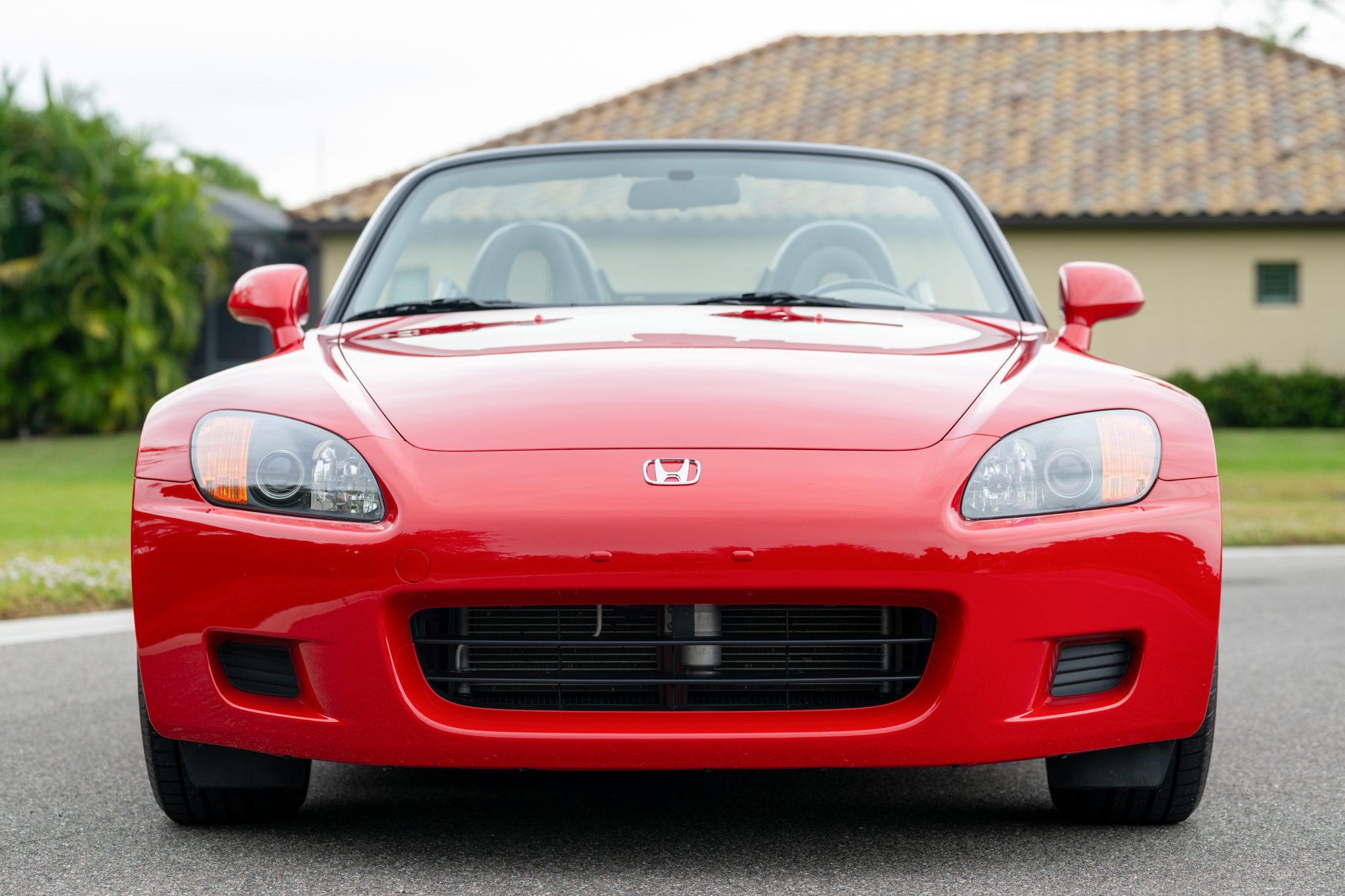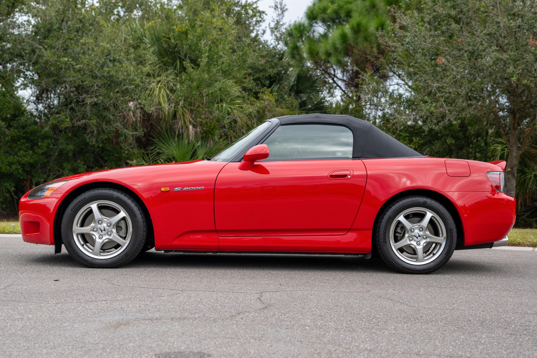 Finished in New Formula Red over black leather, the car is powered by a 2.0-liter VTEC inline-four linked with a six-speed manual transmission and a limited-slip differential. Equipment includes 16″ five-spoke alloy wheels, a black convertible soft top, a rear spoiler, xenon headlights, LED brake lights, air conditioning, a Bluetooth-capable Kenwood head unit, and cruise control.
