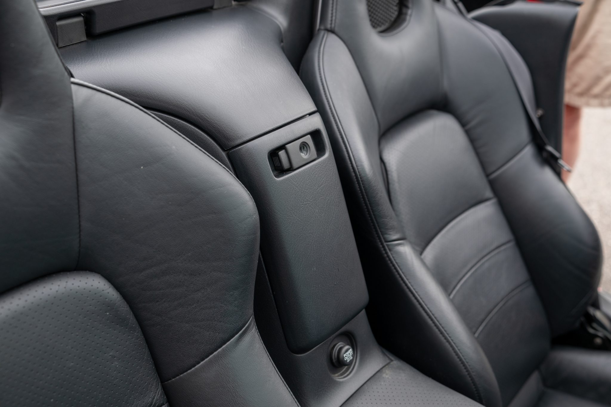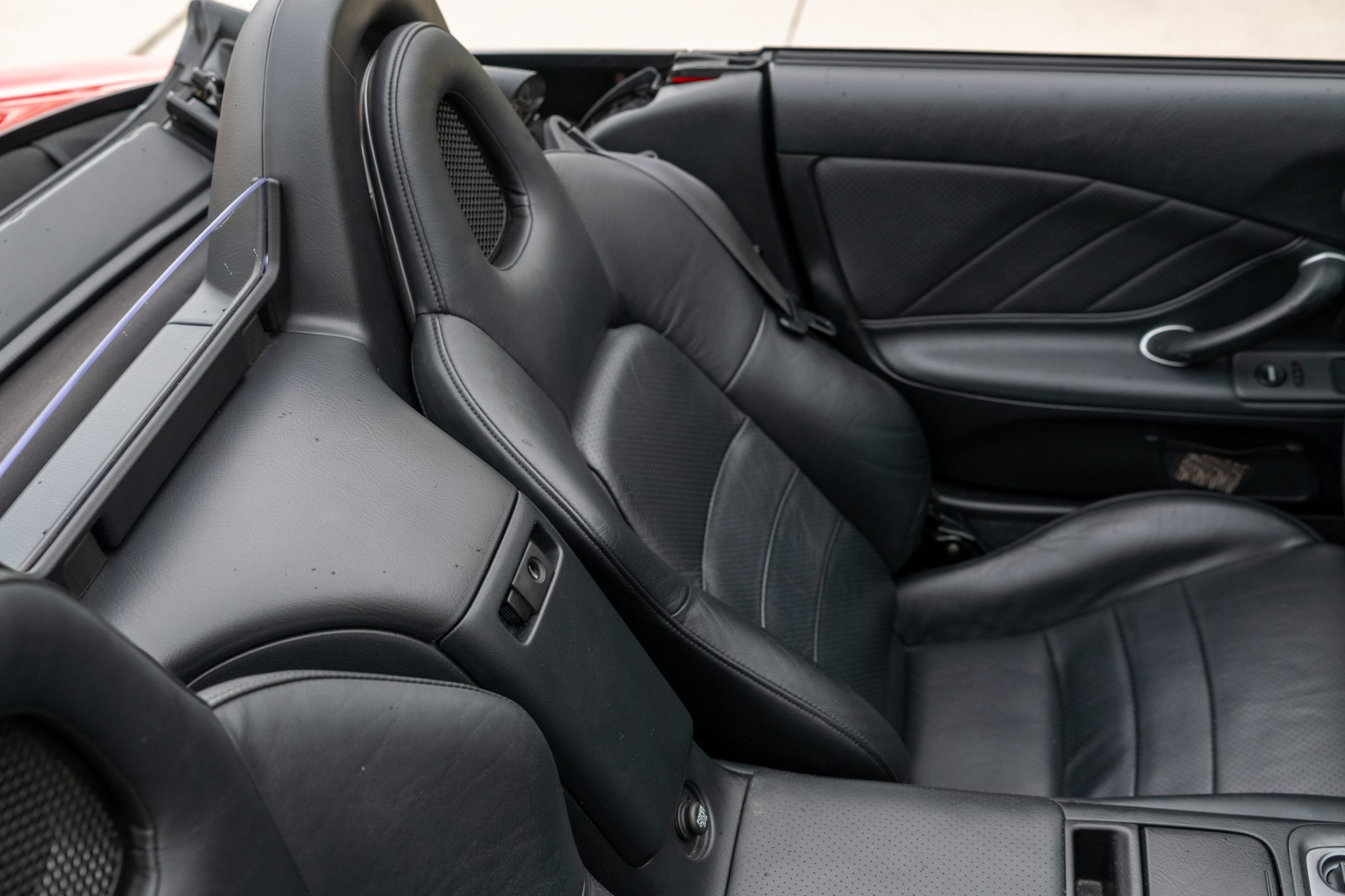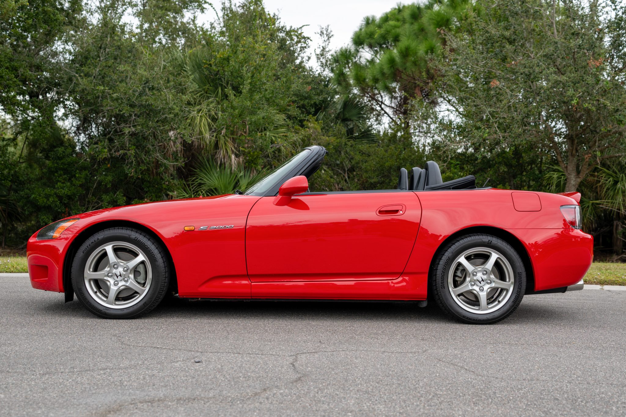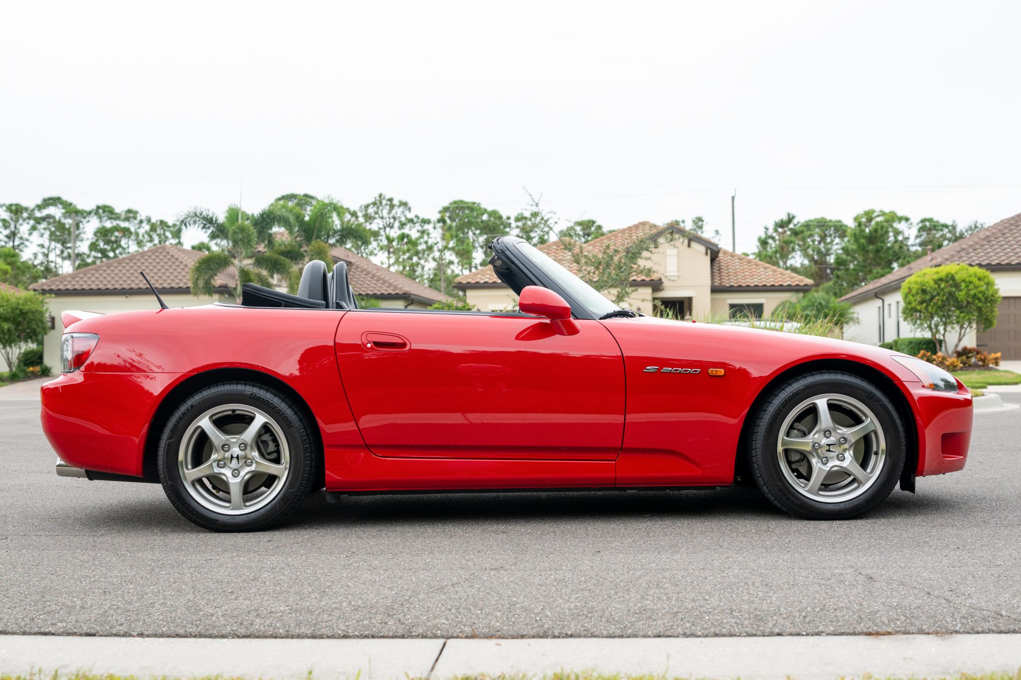 Finished in New Formula Red over black leather, the car is powered by a 2.0-liter VTEC inline-four linked with a six-speed manual transmission and a limited-slip differential. Equipment includes 16″ five-spoke alloy wheels, a black convertible soft top, a rear spoiler, xenon headlights, LED brake lights, air conditioning, a Bluetooth-capable Kenwood head unit, and cruise control.