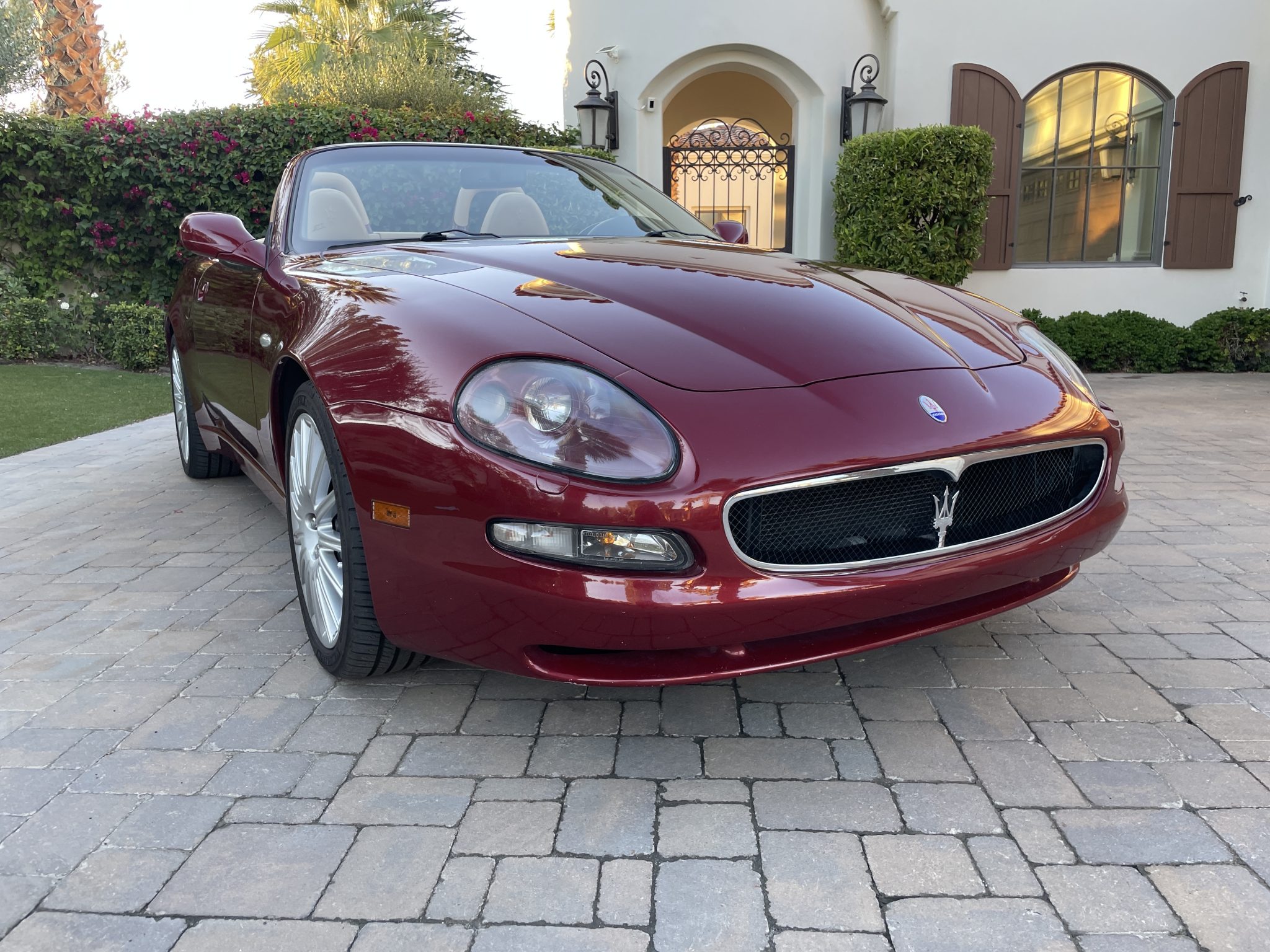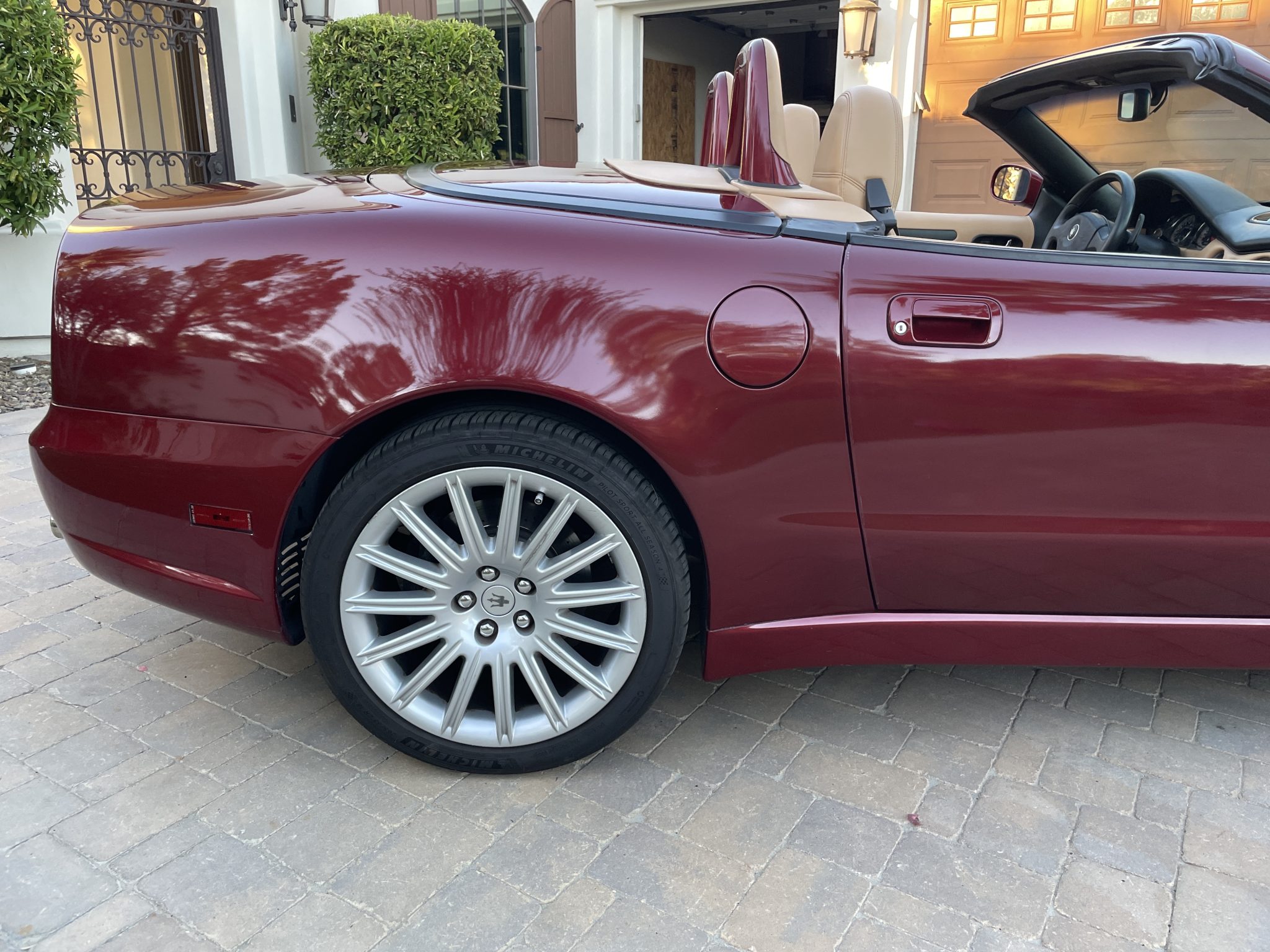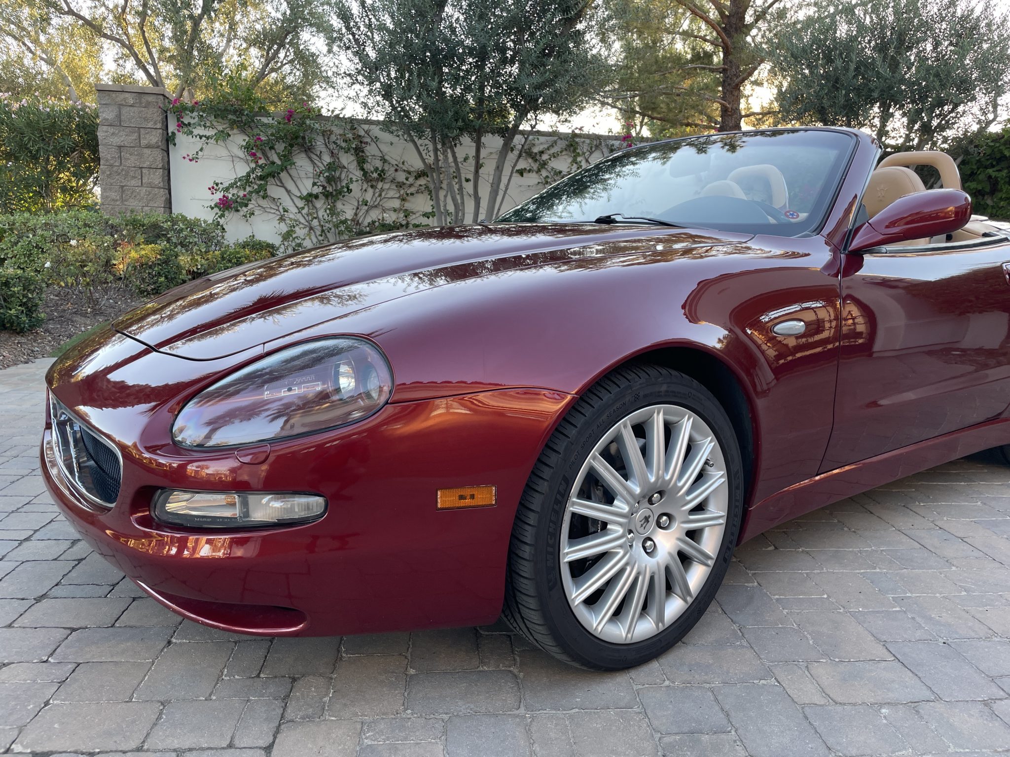 Finished in Rosso Bologna Metallizzato over Beige leather, the car is powered by a 4.2-liter V8 connected to a Cambiocorsa six-speed automated transaxle. Equipment includes a black soft top, 18″ multi-spoke alloy wheels, a Skyhook adjustable suspension, xenon headlights, cruise control, power-adjustable seats, and automatic climate control. The seller has fitted a sport exhaust system during their ownership, along with a Pioneer head unit with aftermarket speakers, Apple CarPlay connectivity, and a rearview camera.