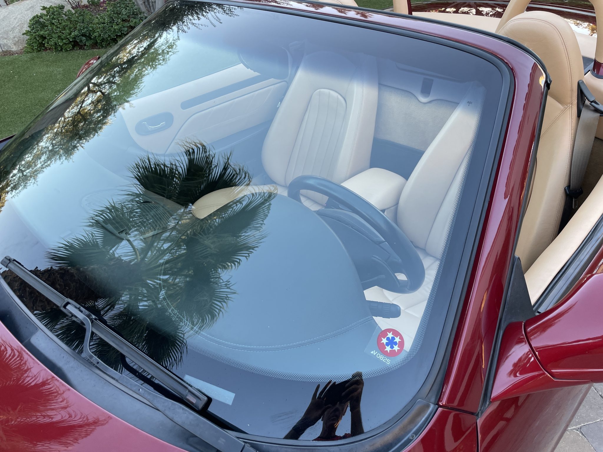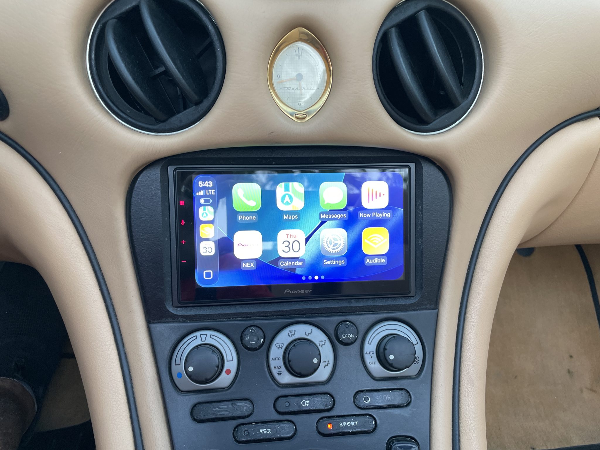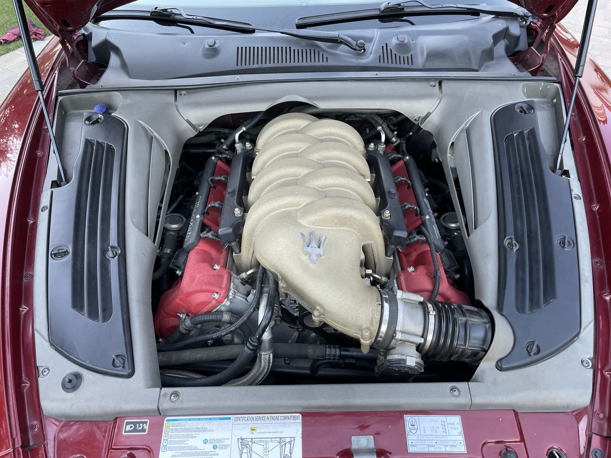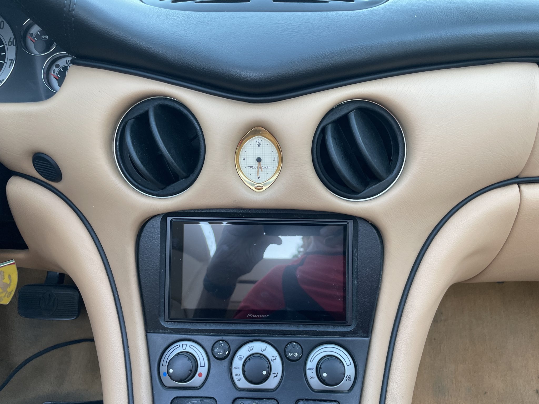 Finished in Rosso Bologna Metallizzato over Beige leather, the car is powered by a 4.2-liter V8 connected to a Cambiocorsa six-speed automated transaxle. Equipment includes a black soft top, 18″ multi-spoke alloy wheels, a Skyhook adjustable suspension, xenon headlights, cruise control, power-adjustable seats, and automatic climate control. The seller has fitted a sport exhaust system during their ownership, along with a Pioneer head unit with aftermarket speakers, Apple CarPlay connectivity, and a rearview camera.