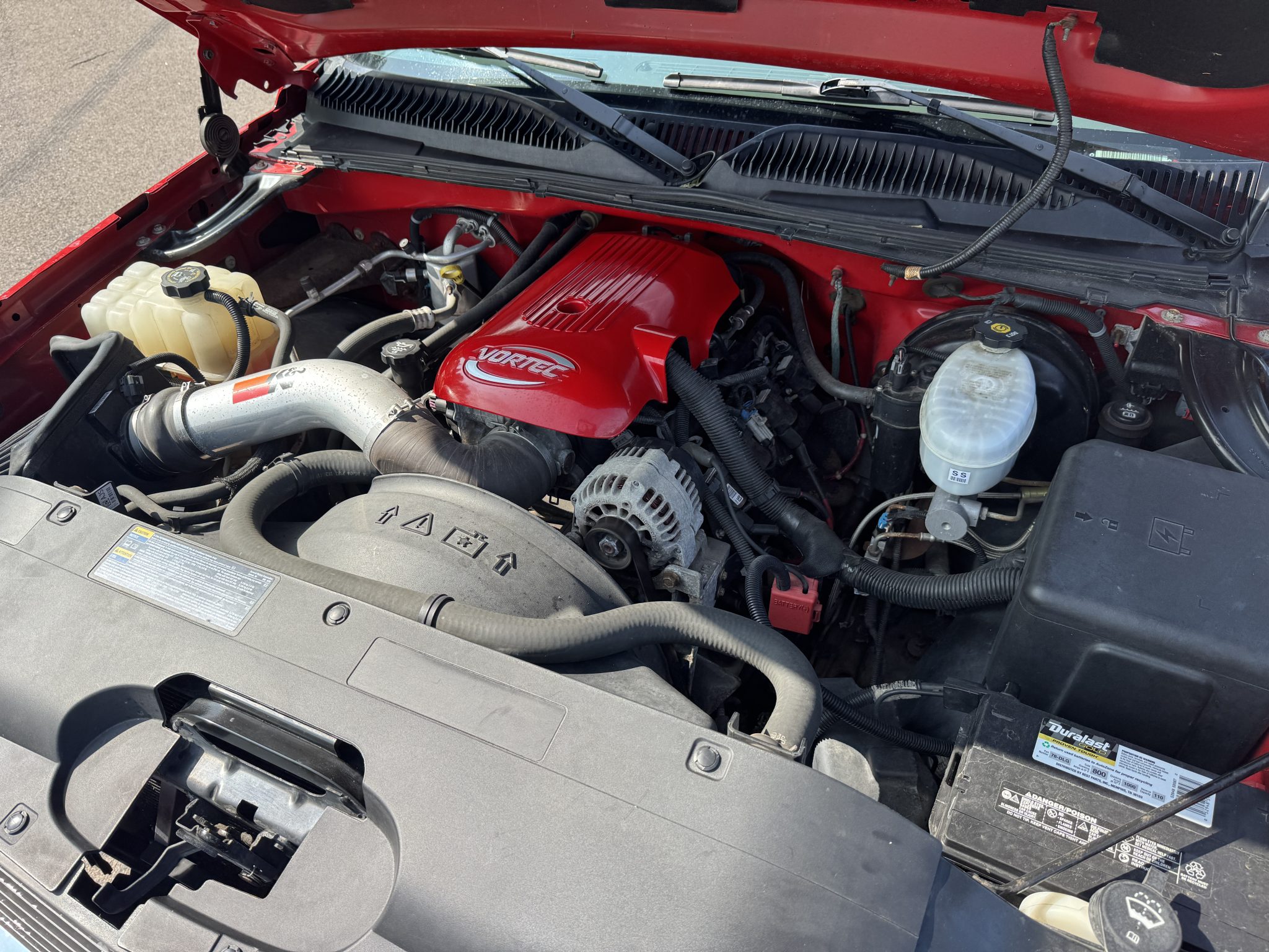 The Victory Red truck is equipped with a K&N Free Flow open-air induction system, a performance-designed PowerFlow exhaust system, ceramic headers, and a Regency Sport tuned suspension in addition to revised interior and exterior features. Power is provided by 4.8-liter Vortec V8 linked to a five-speed manual transmission, and equipment further includes a tonneau cover, tinted taillights, an AM/FM/CD stereo, and air conditioning.