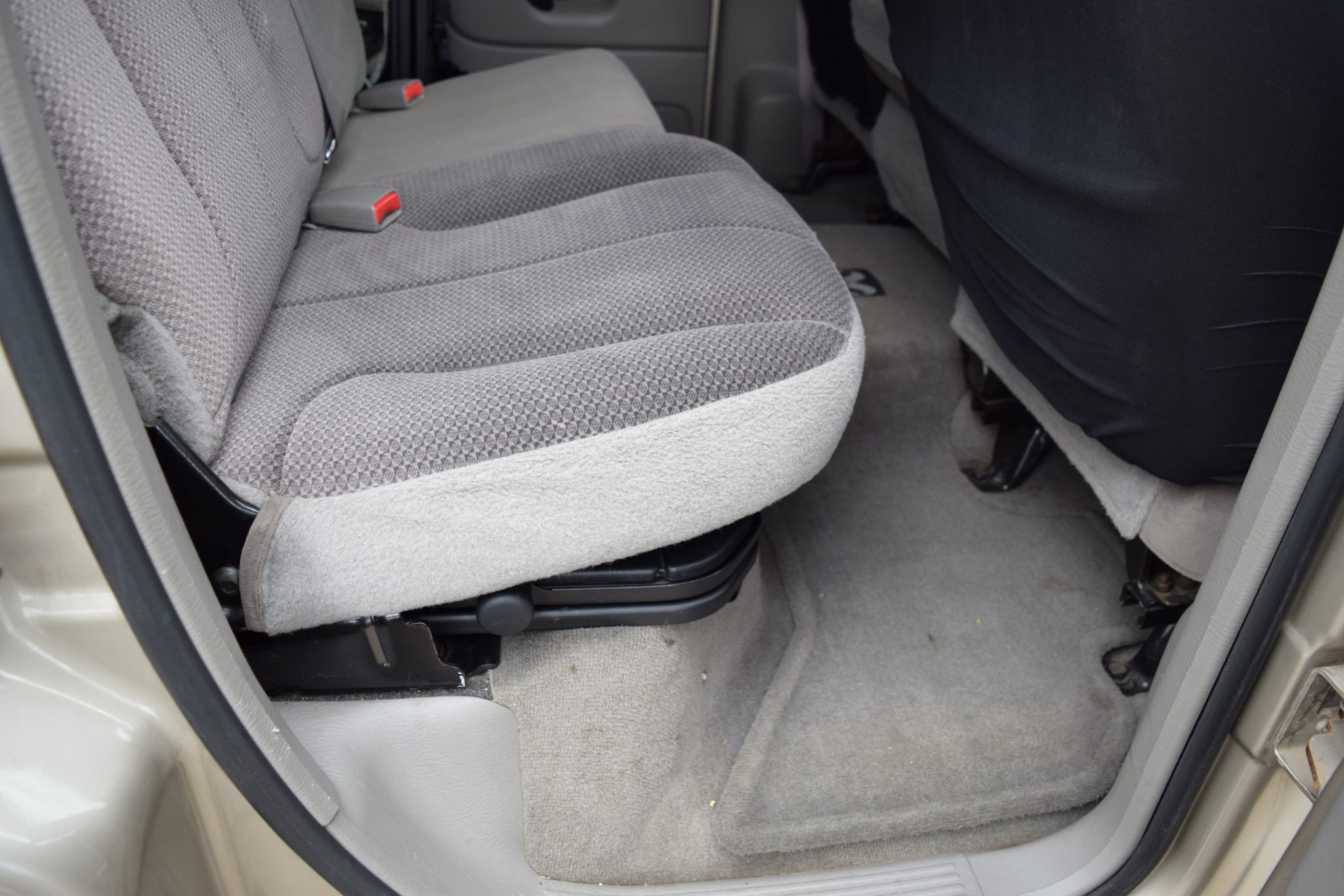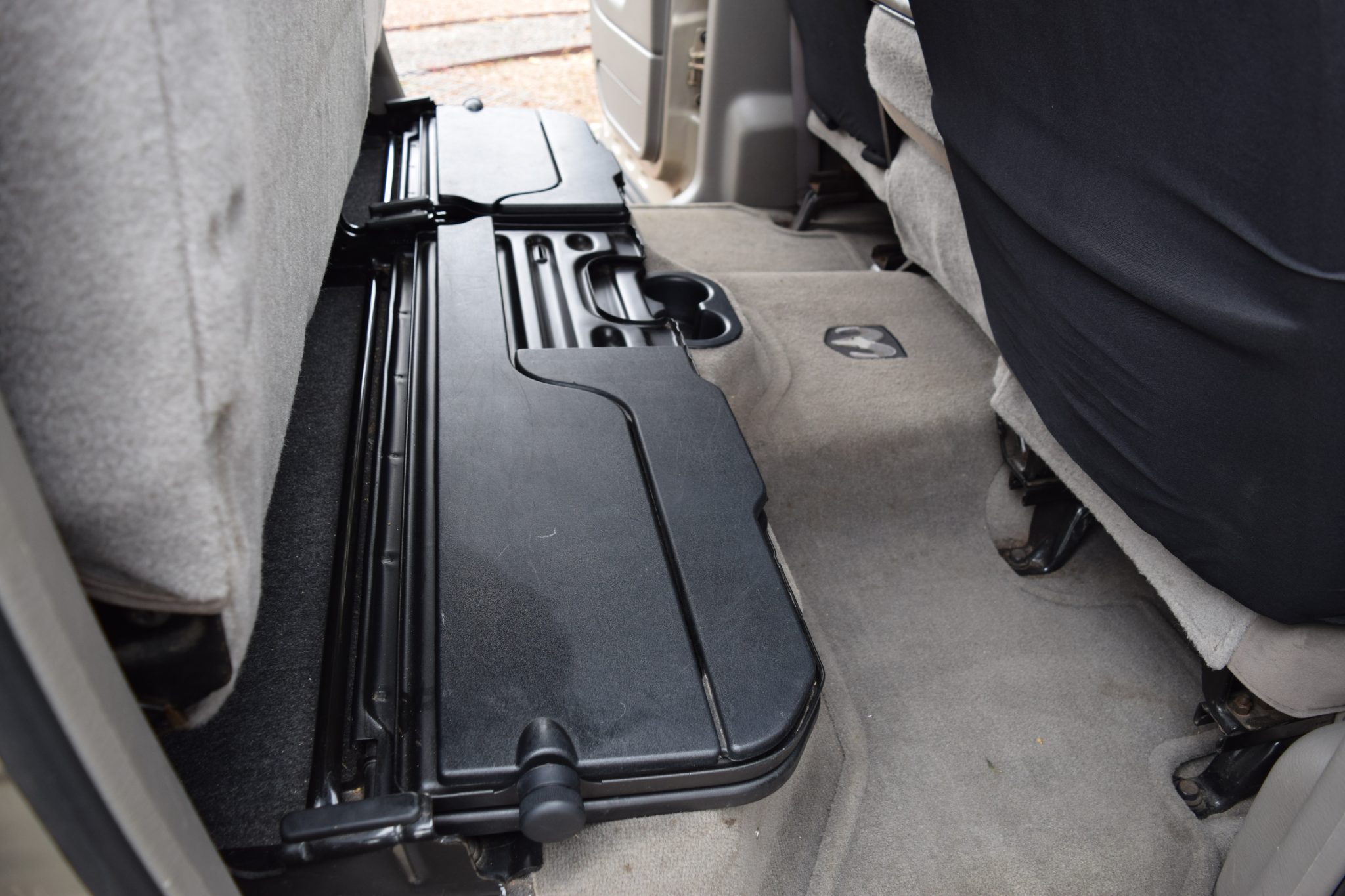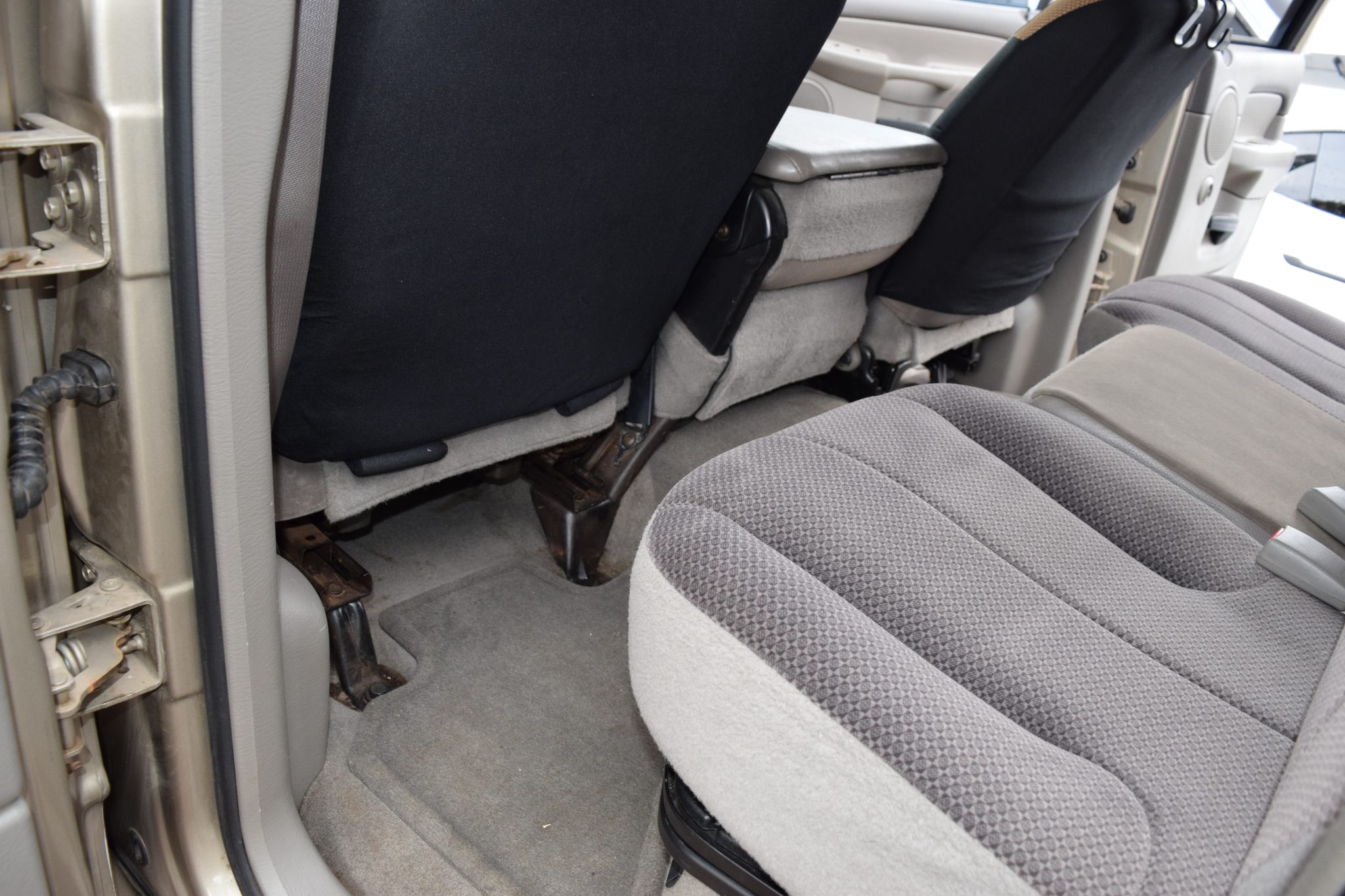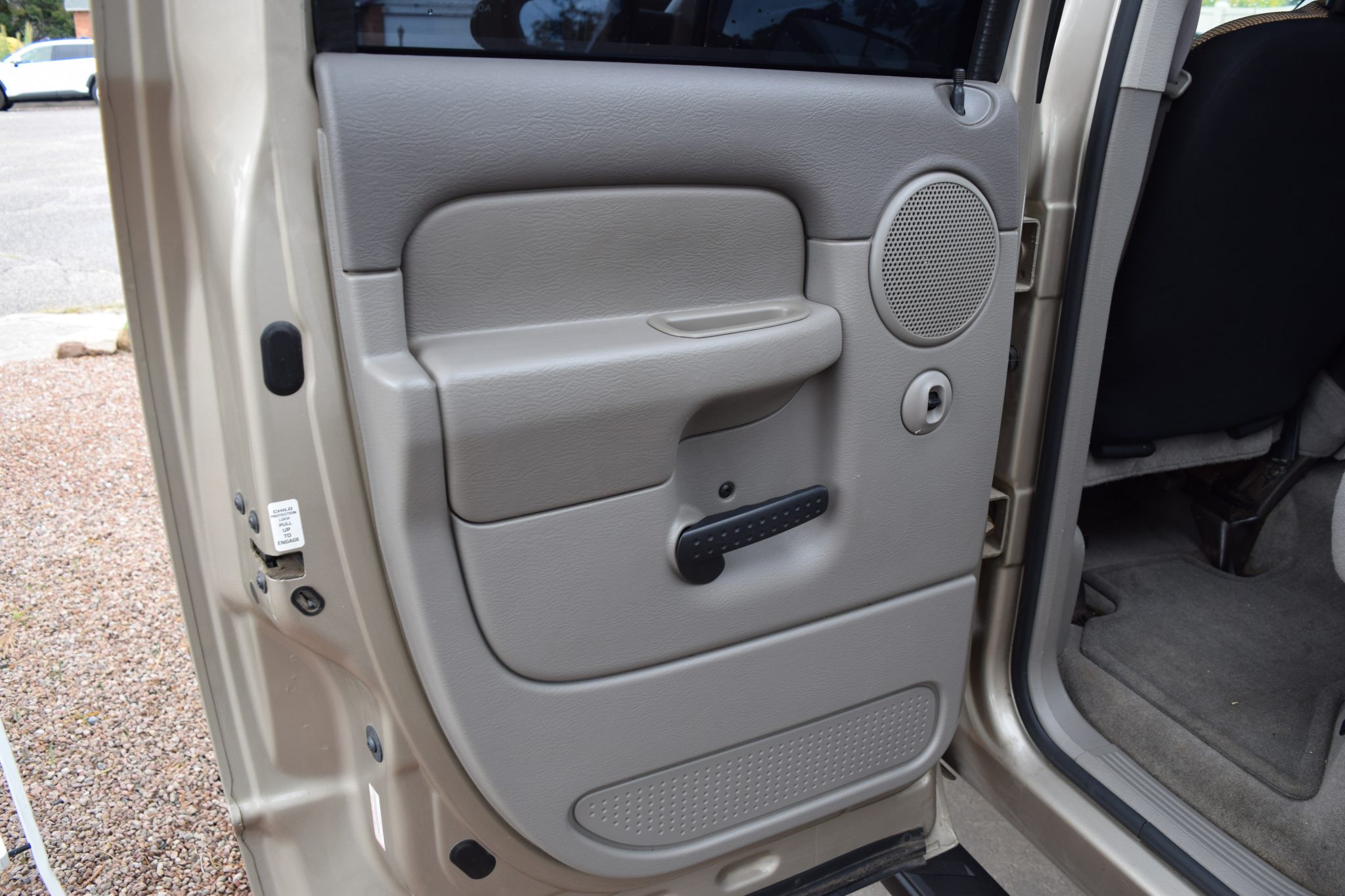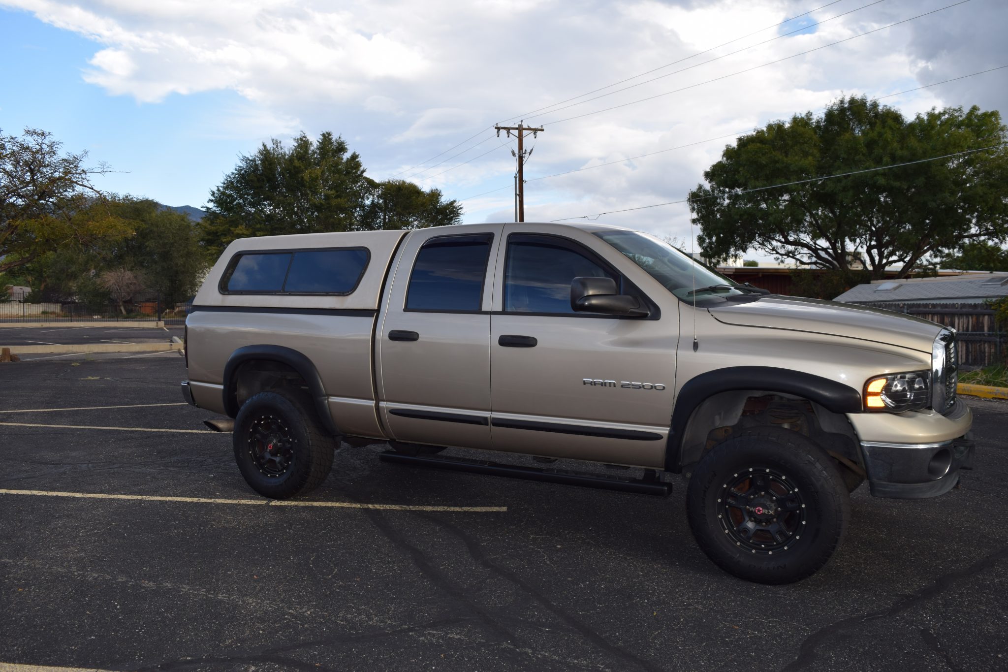 Finished in Light Almond Pearl Metallic over Taupe cloth, the truck is powered by a 5.9-liter Cummins turbodiesel inline-six linked with a six-speed manual transmission, a dual-range transfer case, and a limited-slip rear differential. Equipment includes the Trailer Tow, Light, and Protection groups, a Volant Performance air intake, a body-color camper shell, 17″ Worx 802 Havoc wheels, Bilstein shock absorbers, and Firestone rear air helper springs in addition to a power-adjustable driver’s seat, a JVC Bluetooth stereo, Cerwin Vega speakers, air conditioning, and cruise control.