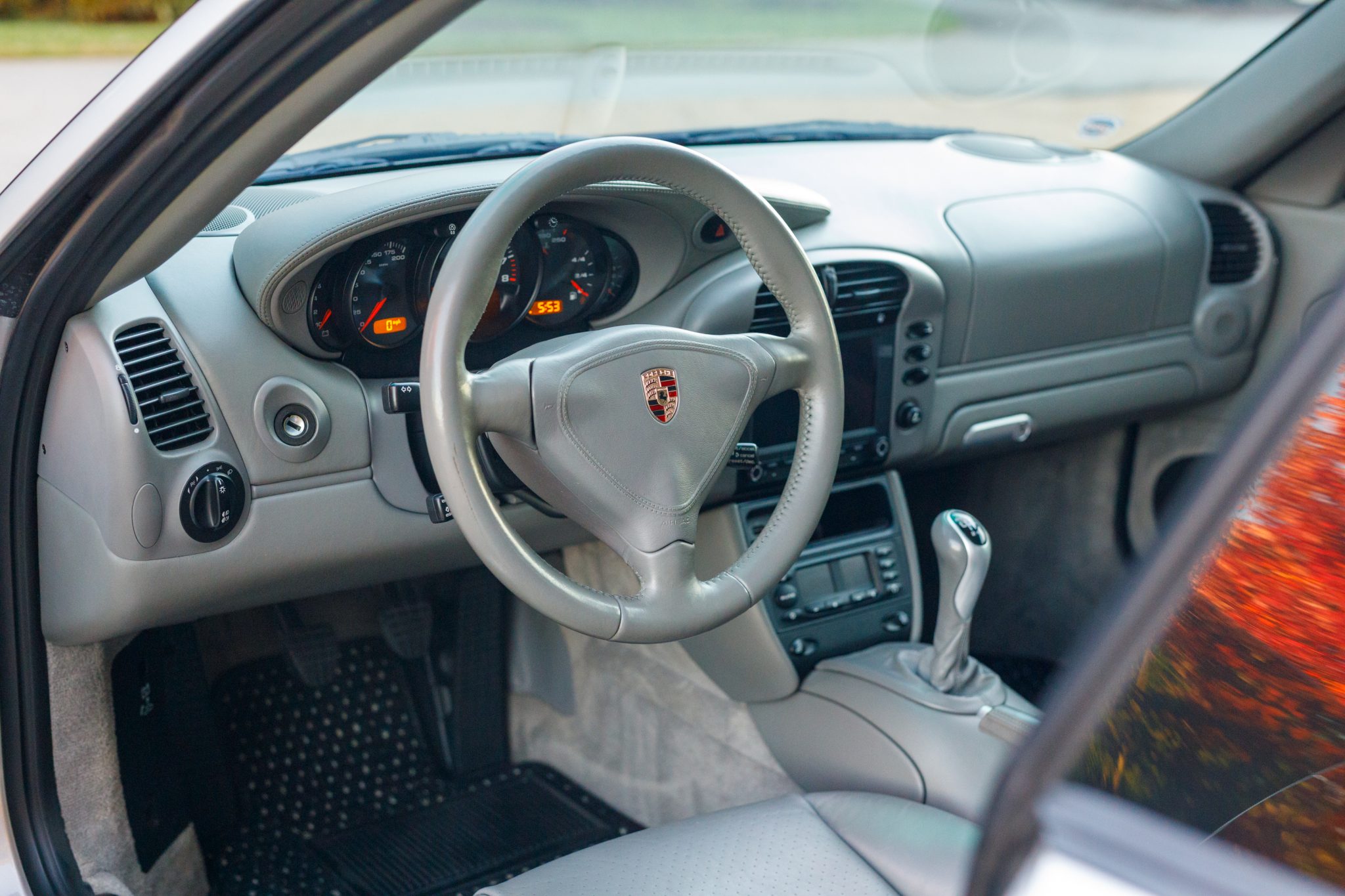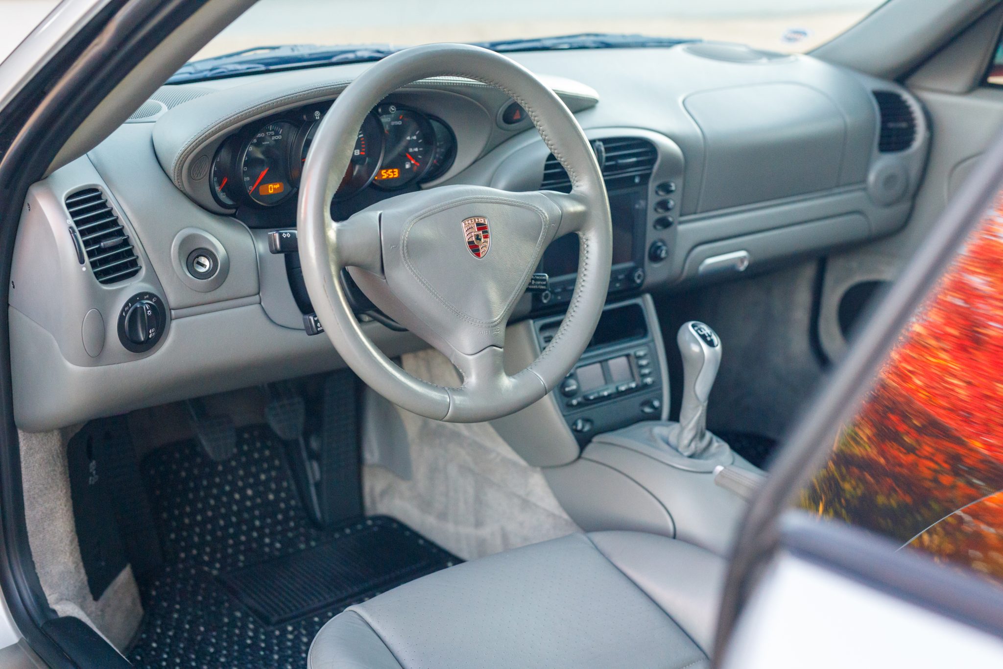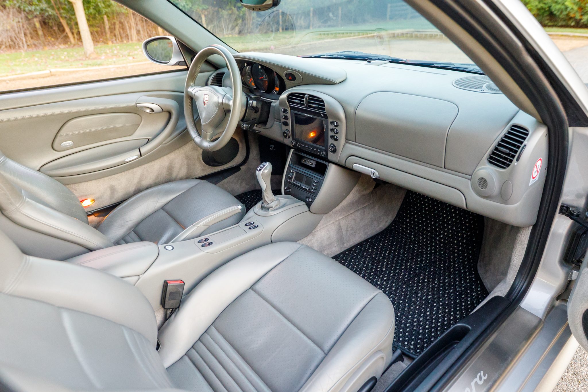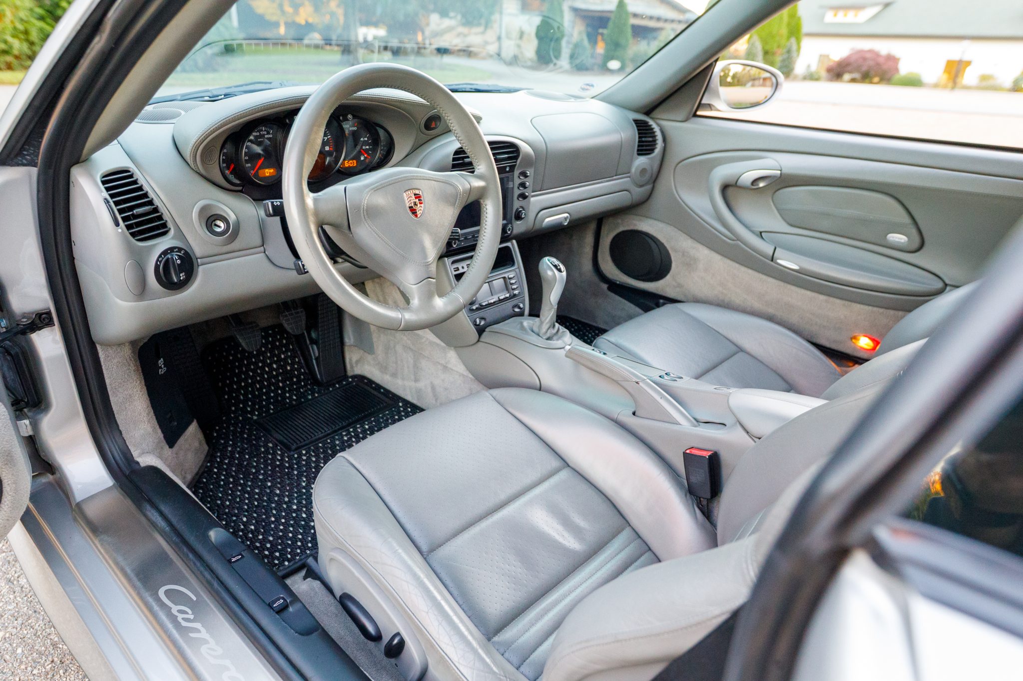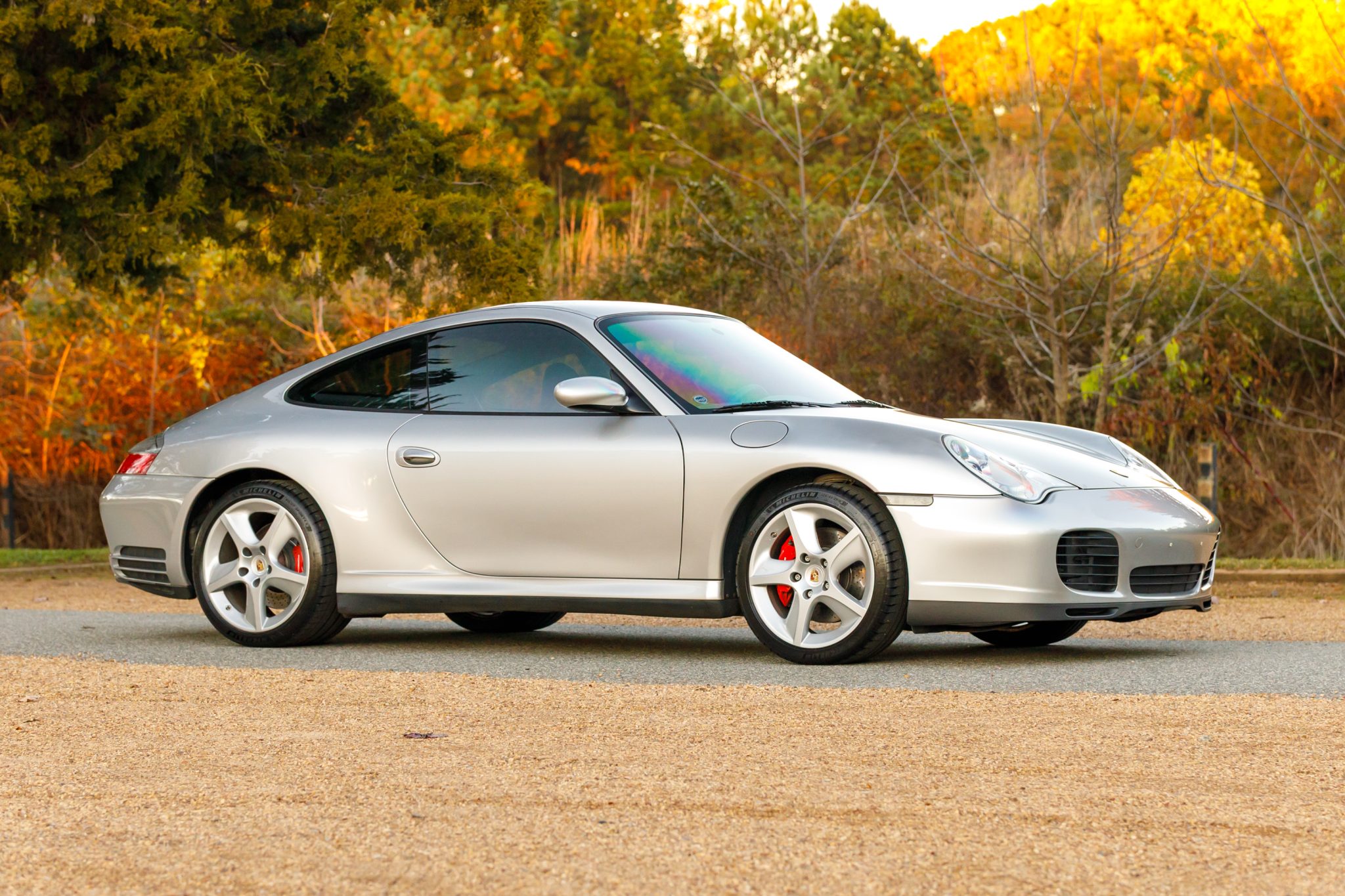 This 2004 Porsche 911 Carrera 4S coupe was optioned with the X51 Carrera Power Kit, a option that provided the 3.6-liter flat-six with a revised air intake, exhaust system, and engine tuning. The car is finished in Arctic Silver Metallic over Graphite Gray leather, and is further equipped with a six-speed manual transaxle, speed-activated rear spoiler, sunroof, xenon headlights, fog lights, and 18″ Sport Techno wheels. On the inside, heated power-adjustable front sport seats are accompanied by a Porsche Classic Communication Management Plus infotainment system, CocoMats floor mats, stainless-steel door entry guards, and an automatic climate control system.