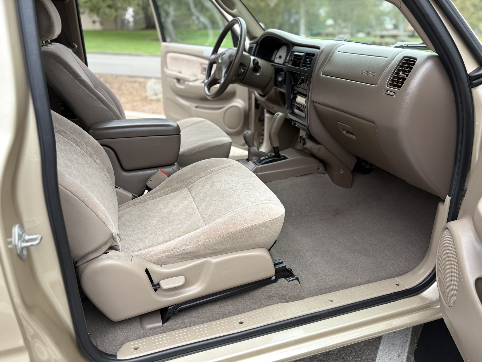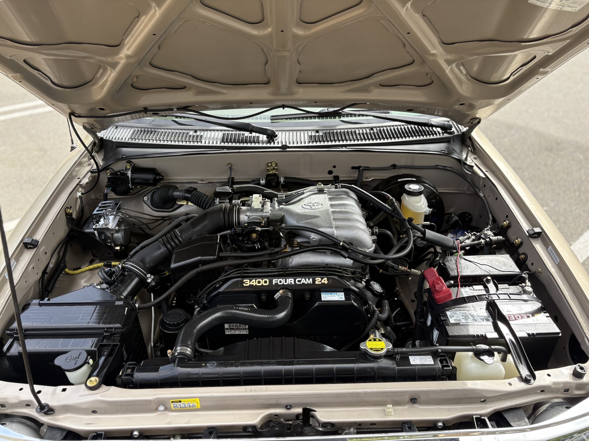 Finished in Mystic Gold Metallic over Oak cloth, the truck is powered by a 3.4-liter 5VZ-FE V6 linked with a four-speed automatic transmission, a dual-range transfer case, and a locking rear differential. Equipment includes the TRD Off-Road Package, 16″ five-spoke alloy wheels, air conditioning, cruise control, and a CD/cassette stereo.