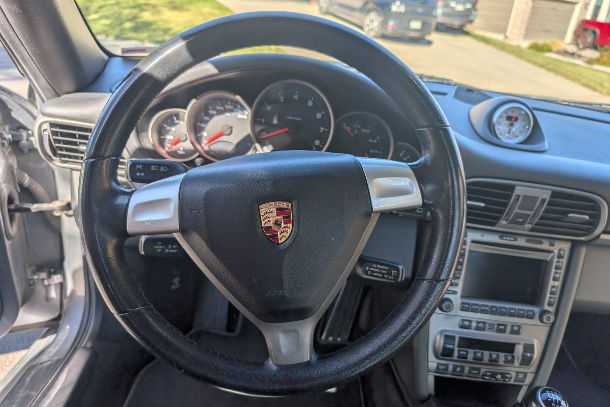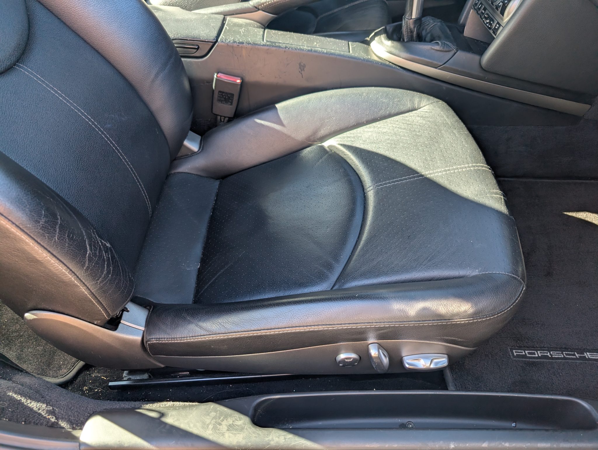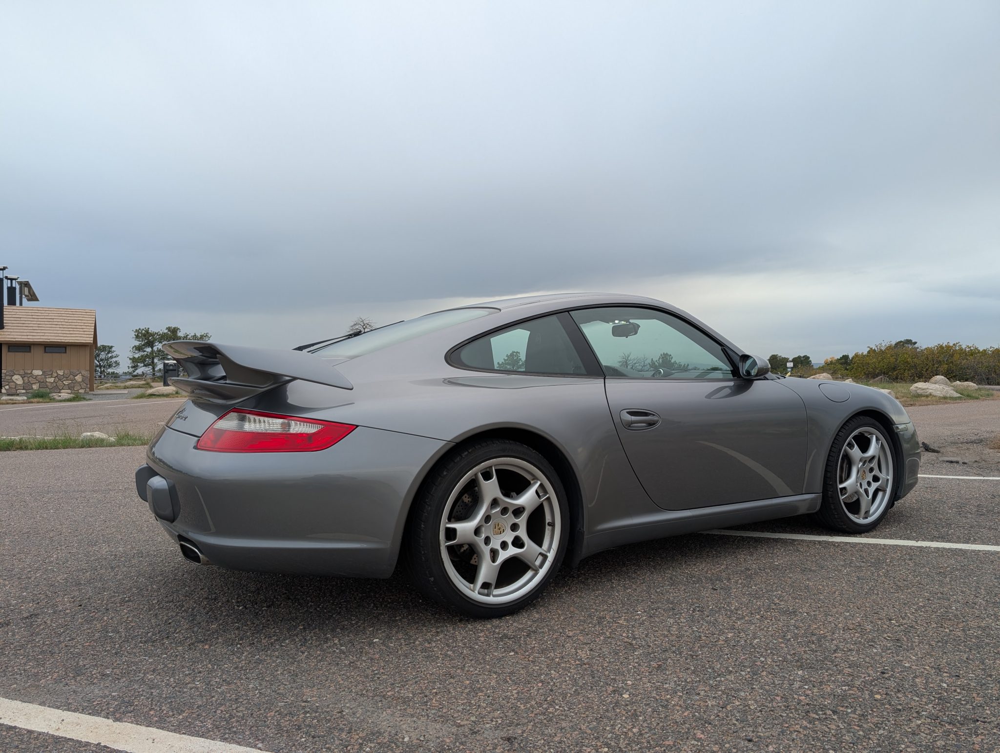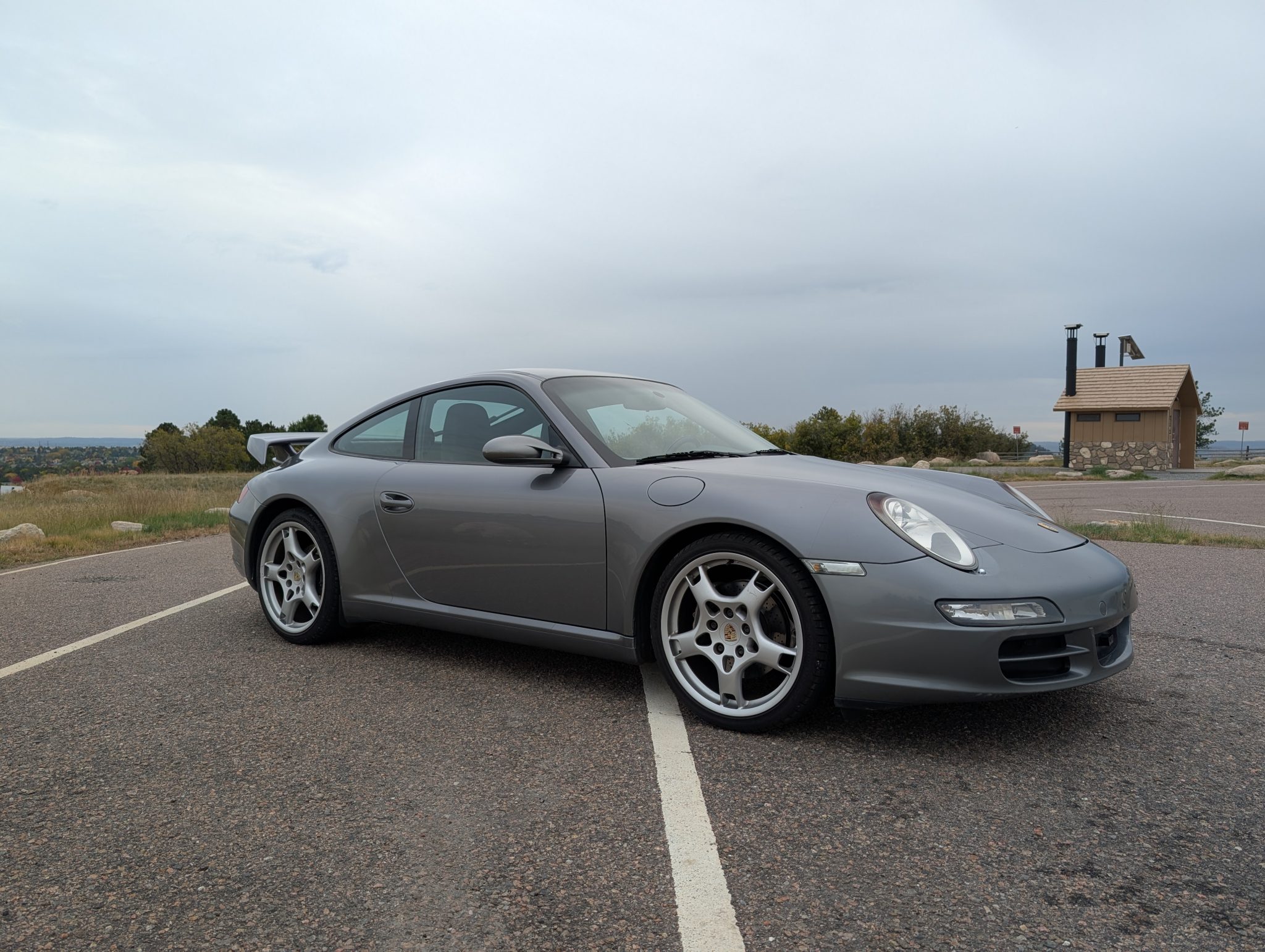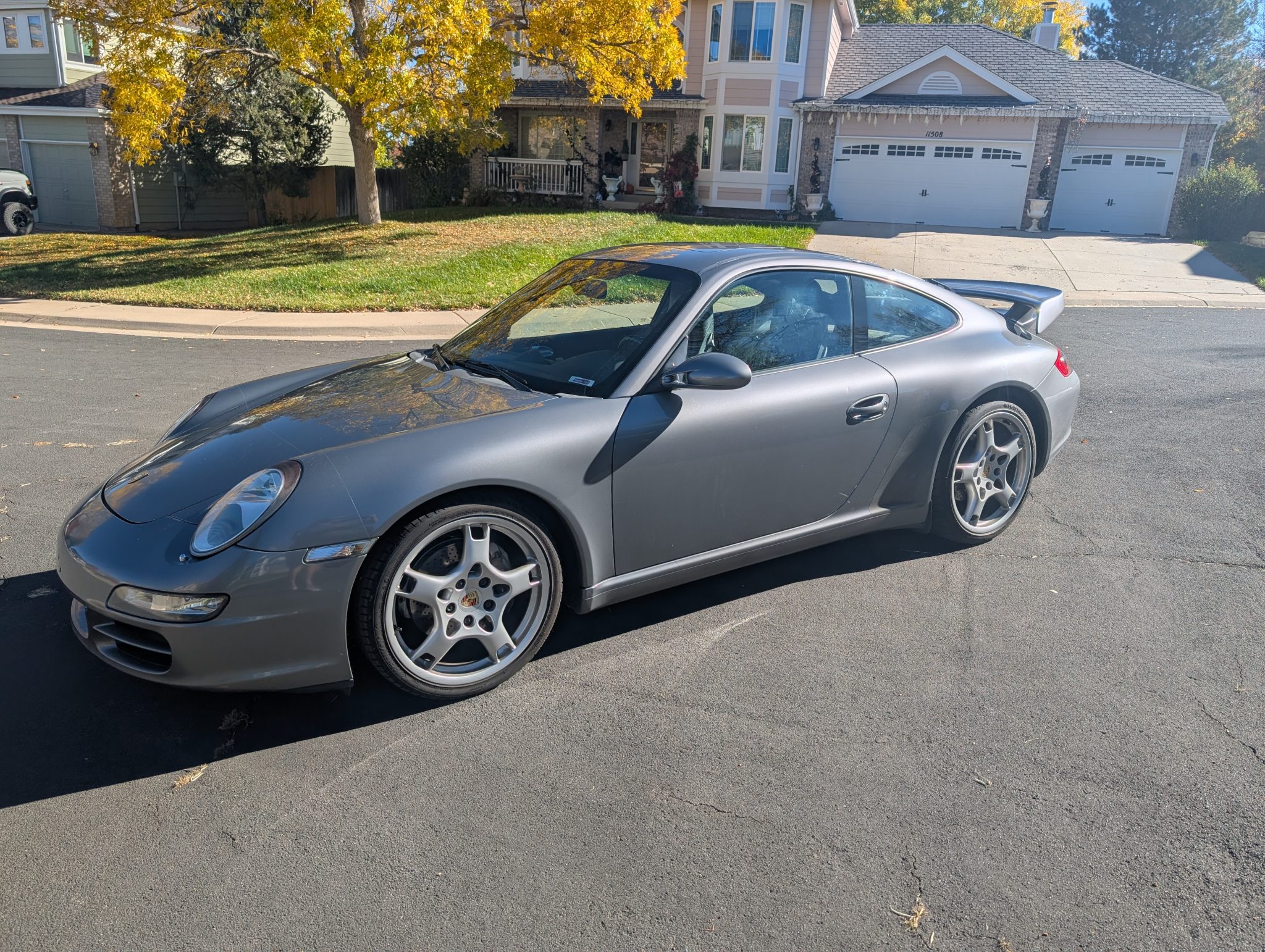 The car was specified in Seal Gray Metallic over a Black standard leather interior, and it is powered by a 3.6-liter flat-six paired with a six-speed manual transaxle. Equipment includes the Sport Chrono Package Plus, a fixed rear wing, a rear window wiper, bi-xenon headlights, Porsche Active Suspension Management (PASM), 19″ Carrera S wheels, 12-way power-adjustable front seats, a Bose sound system, and driver-seat position memory settings.