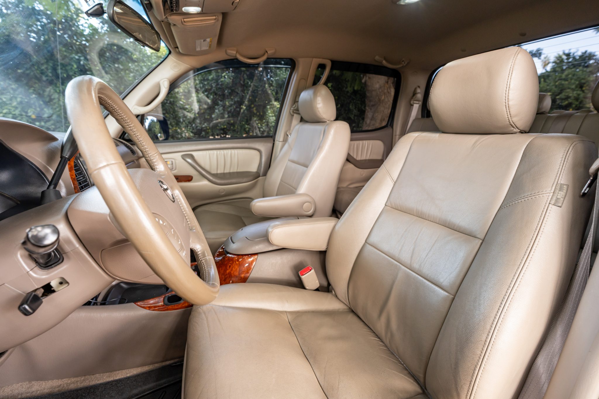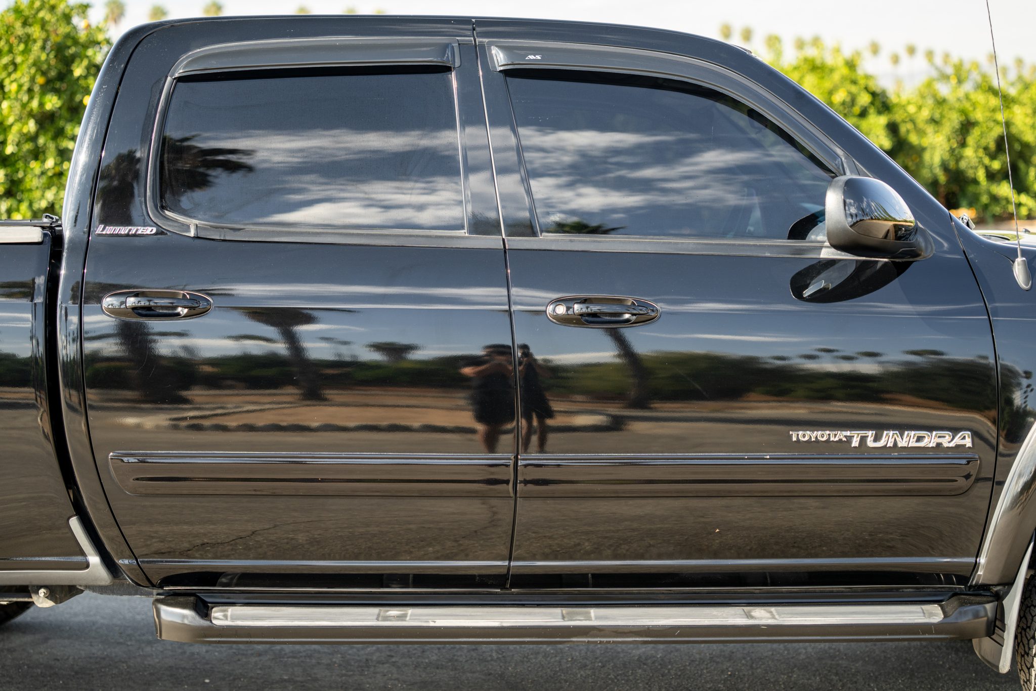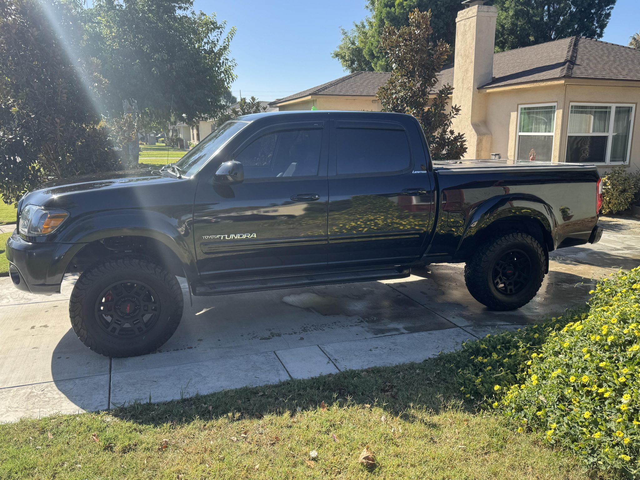 This 2006 Toyota Tundra Limited is a Double Cab 4×4 pickup  Finished in black over Taupe leather, the truck is powered by a 4.7-liter 2UZ-FE V8 linked with a five-speed automatic transmission and a dual-range transfer case. Equipment includes a power rear window, a hard-folding tonneau cover, matte black 17″ TRD alloy wheels, Old Man Emu shocks and front lift springs, an ICON add-a-leaf kit, Firestone rear air helper springs, and a PowerStop Z36 brake upgrade kit in addition to heated front seats, air conditioning, cruise control, a JBL sound system, and an Alpine touchscreen head unit.