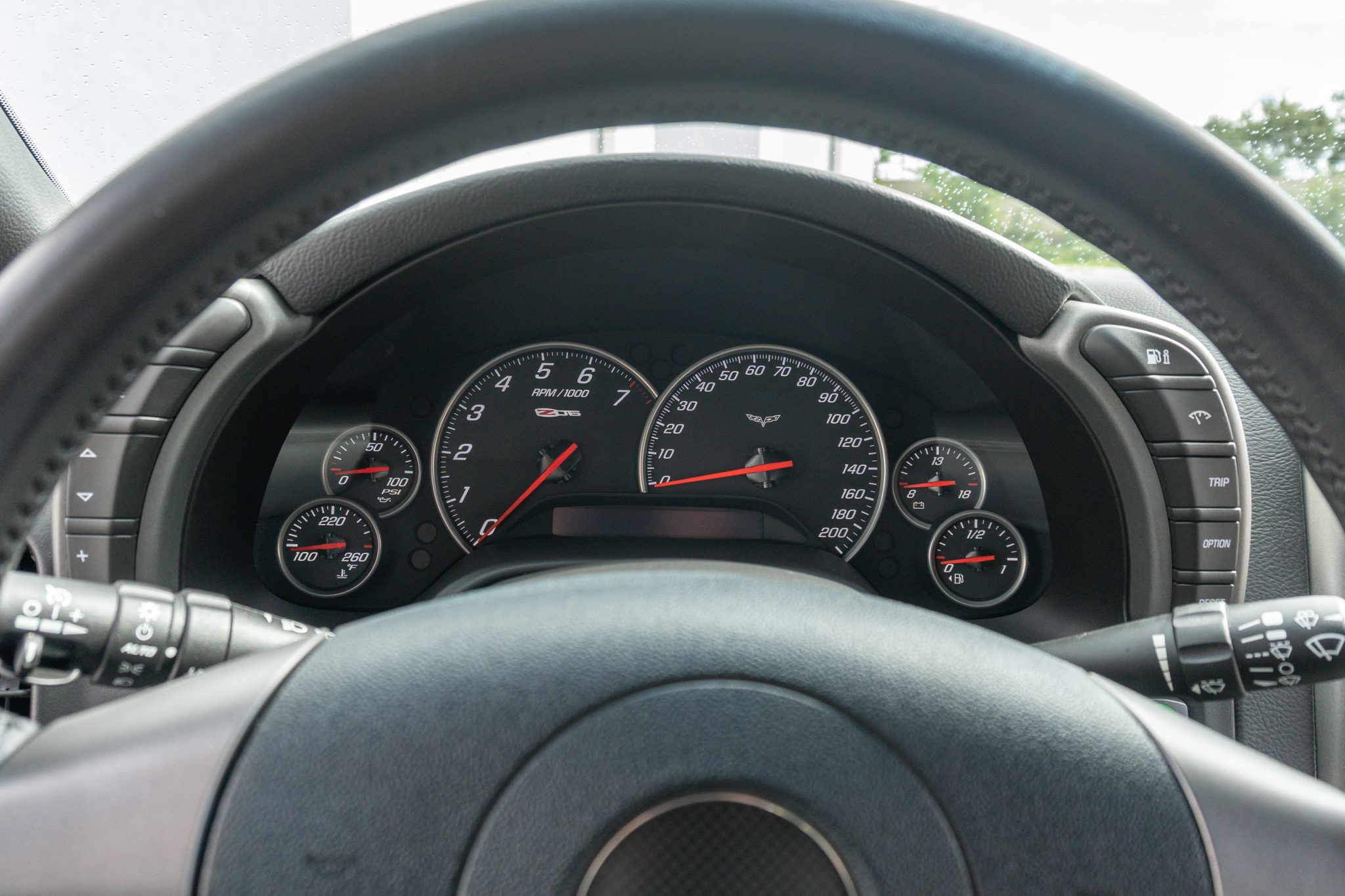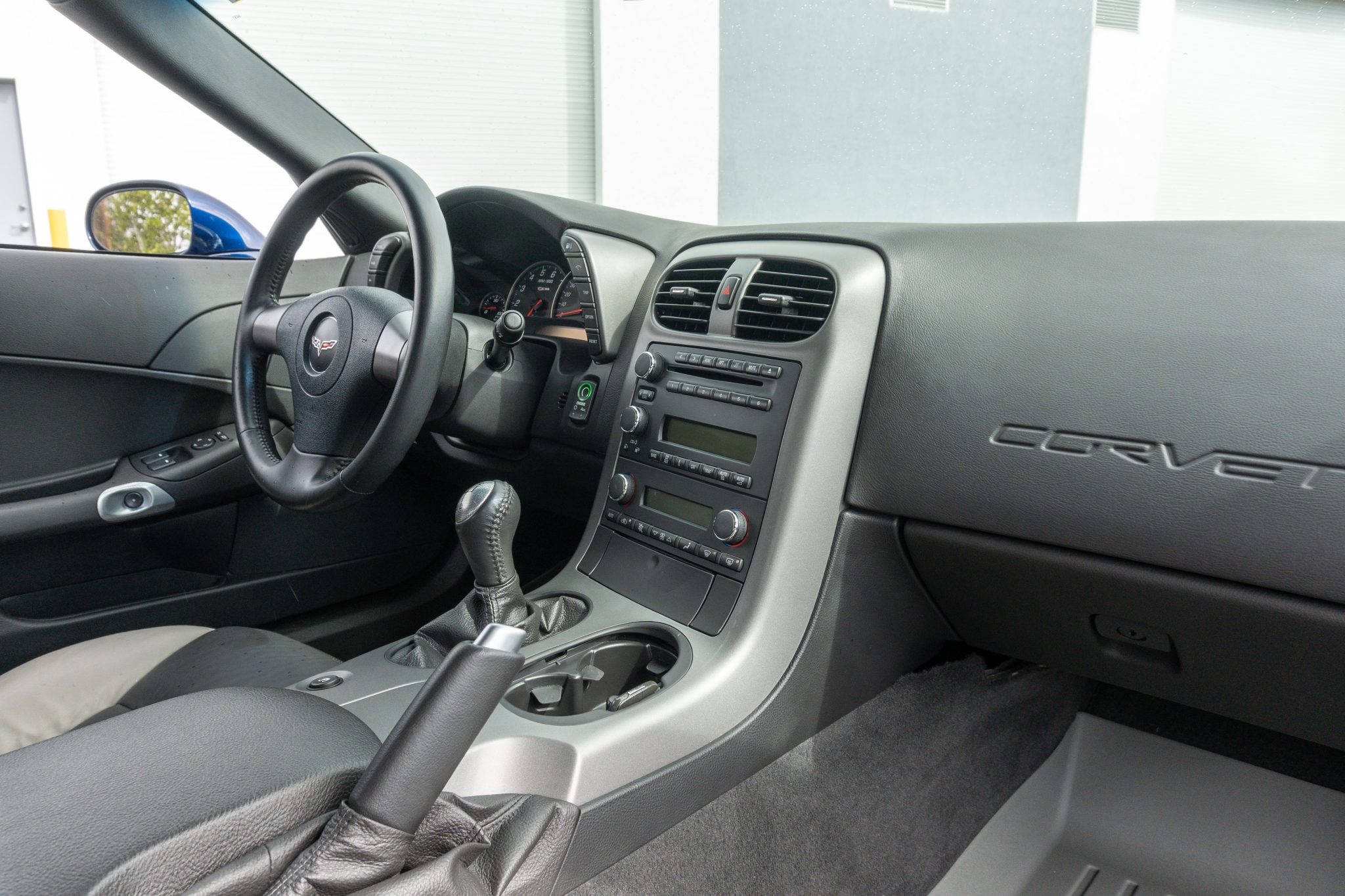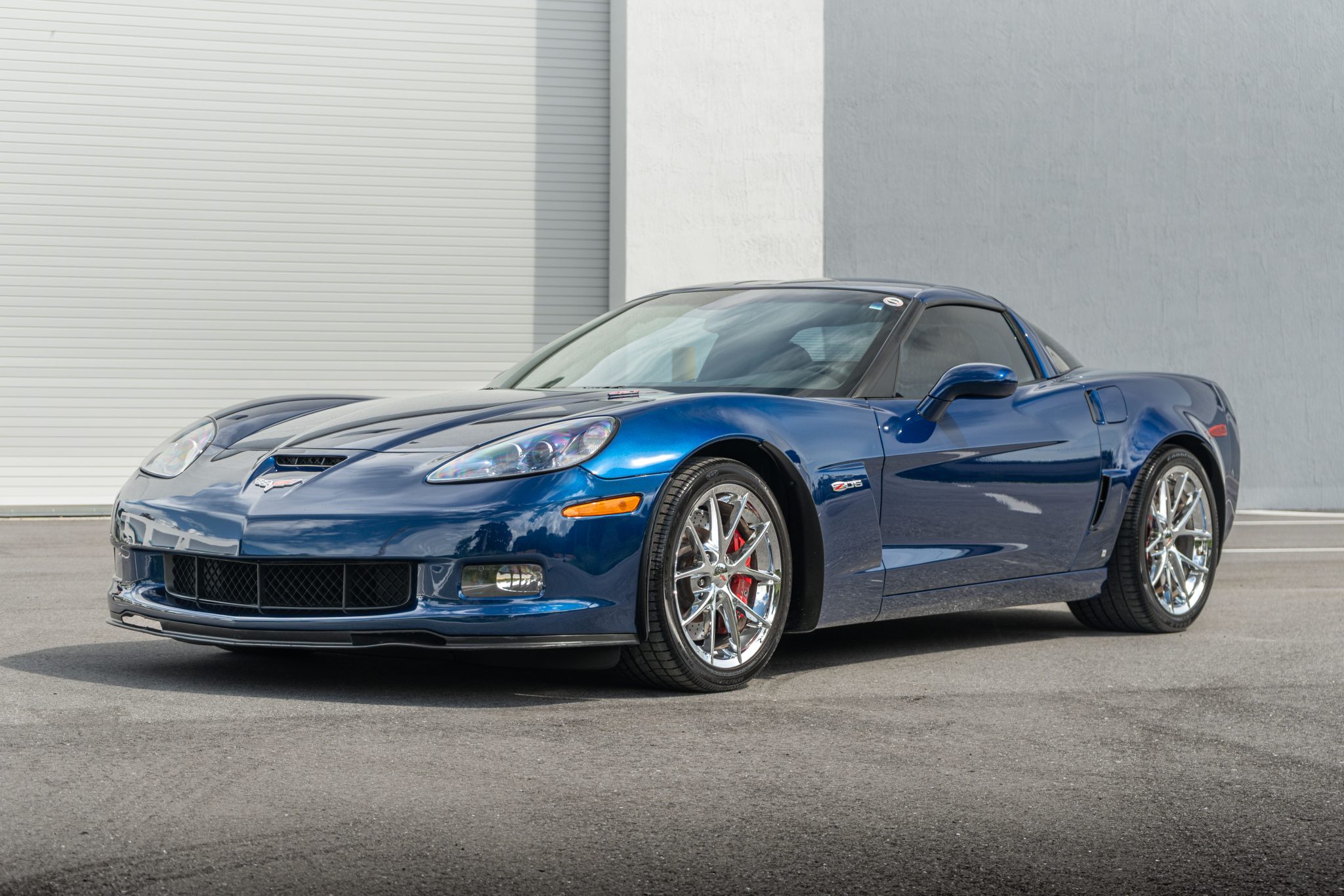 It is finished in LeMans Blue over black and Titanium Gray leather and is powered by a 7.0-liter LS7 V8 paired with a six-speed manual gearbox. Equipment includes a limited-slip differential, chrome 18″ and 19″ alloy wheels, xenon headlights, a head-up display, power-adjustable seats, a CD stereo, and Keyless Access