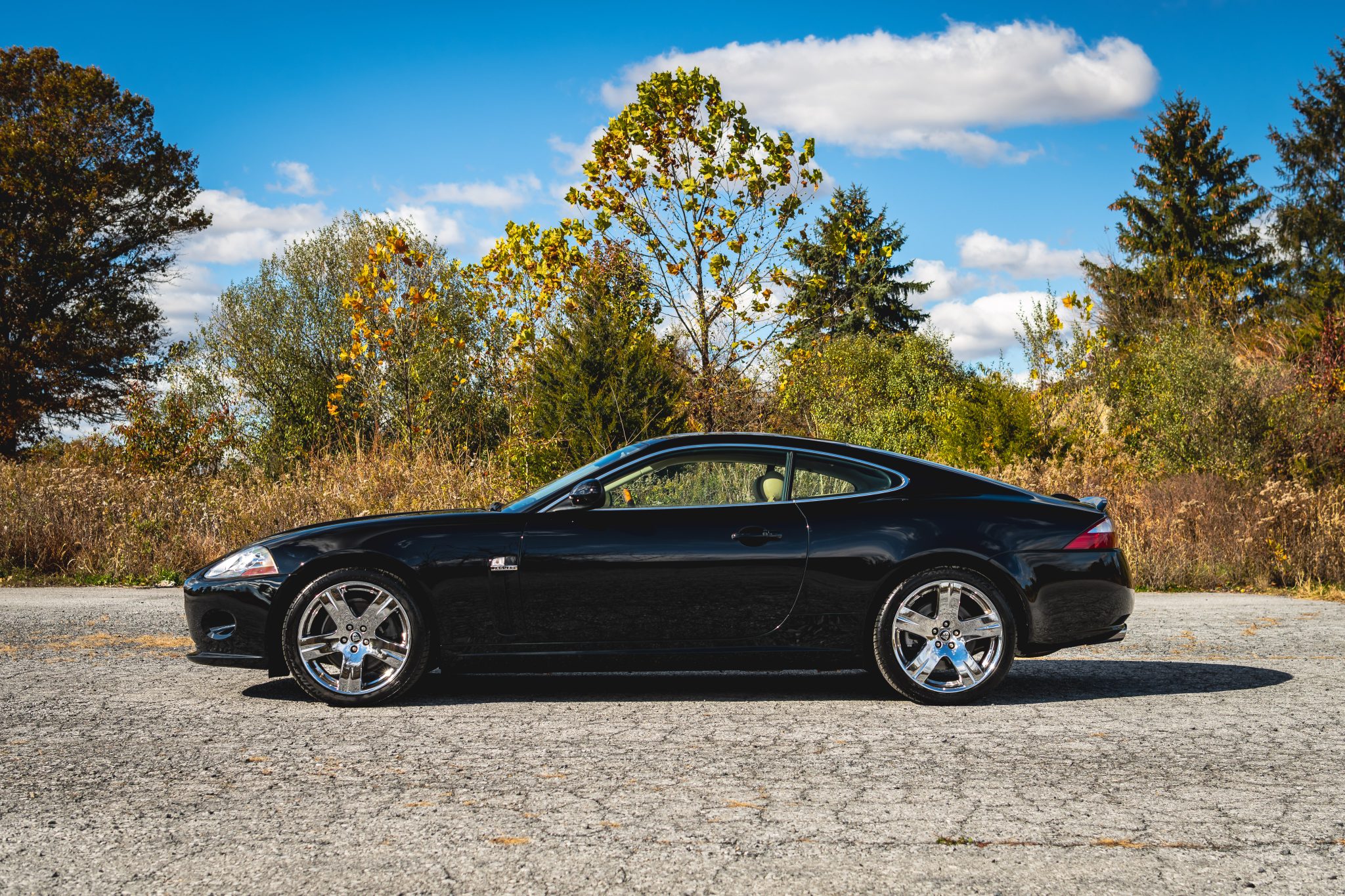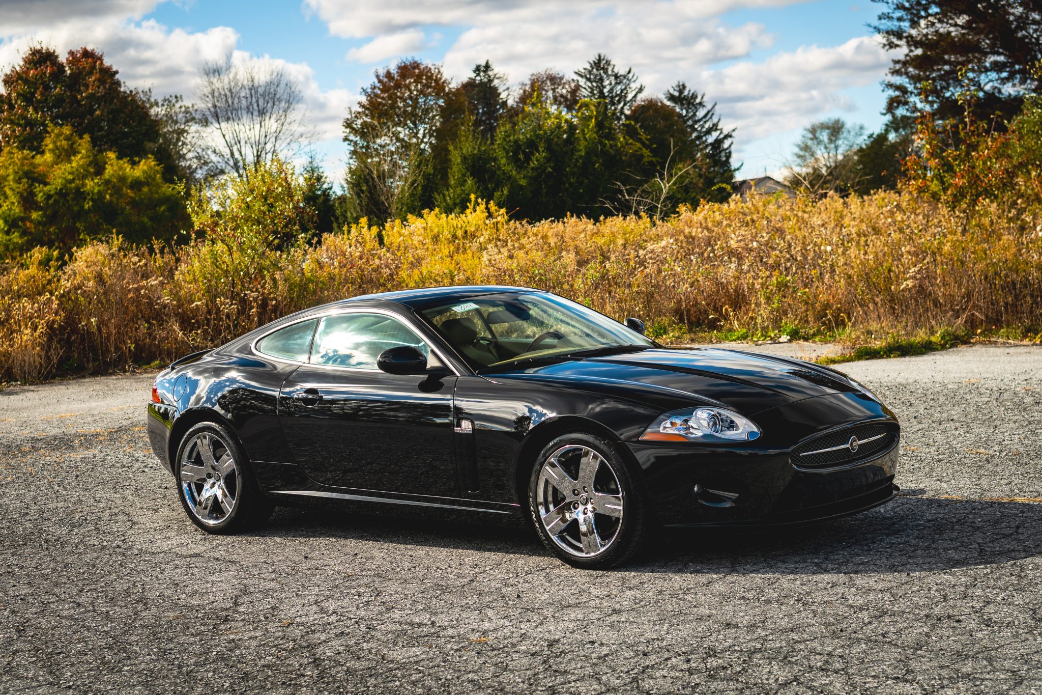 This 2007 Jaguar XK coupe has 14k miles The car is finished in Ebony over Caramel leather and is powered by a 4.2-liter V8 paired with a six-speed automatic transmission. Additional equipment includes parking sensors, xenon headlights, 19″ Sabre alloy wheels, heated power-adjustable front seats, an Alpine sound system, navigation, and dual-zone automatic climate control.
