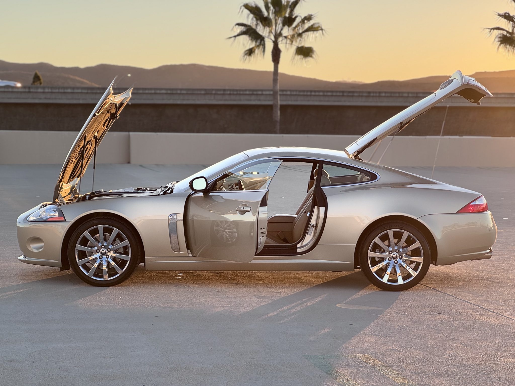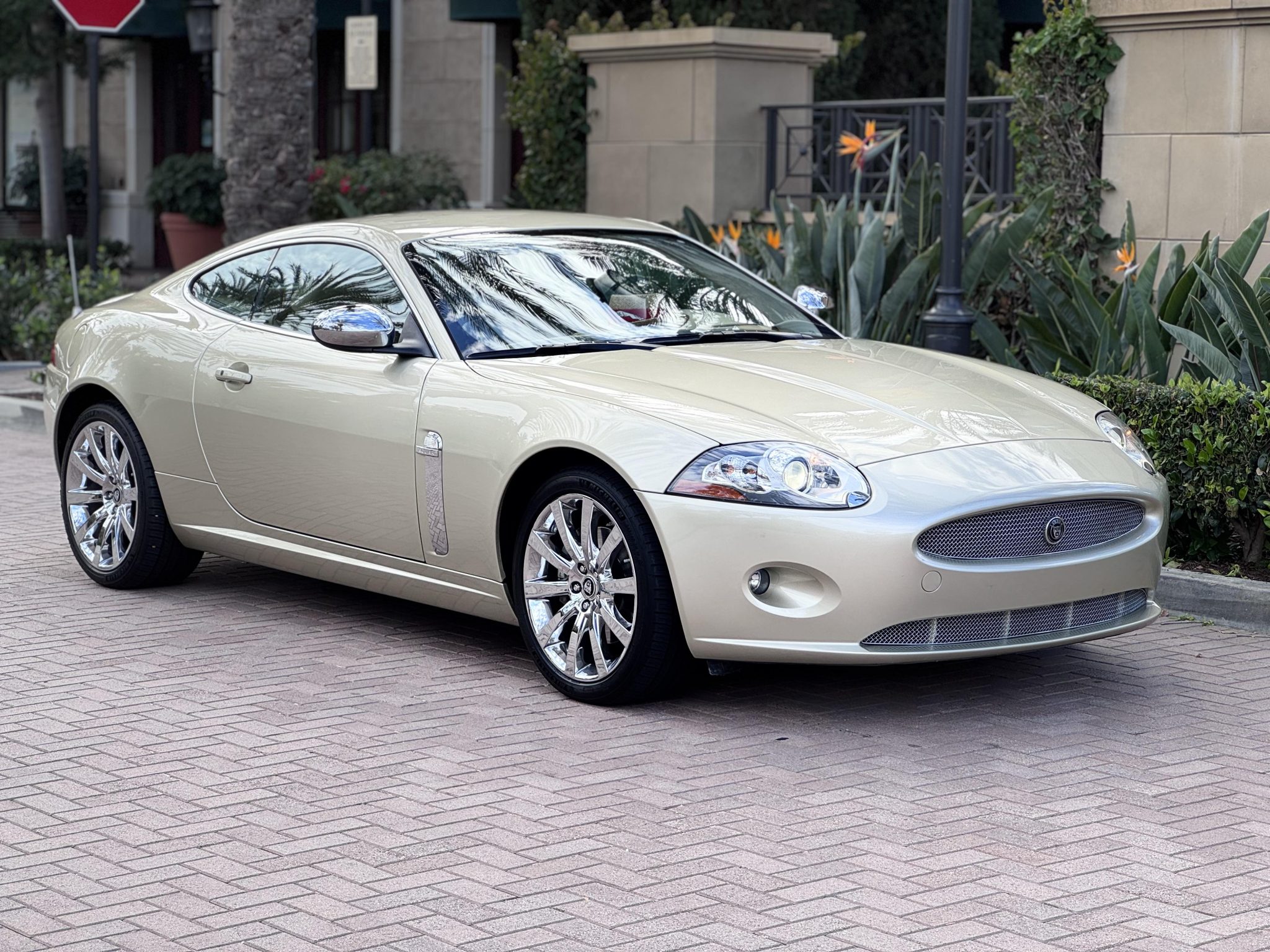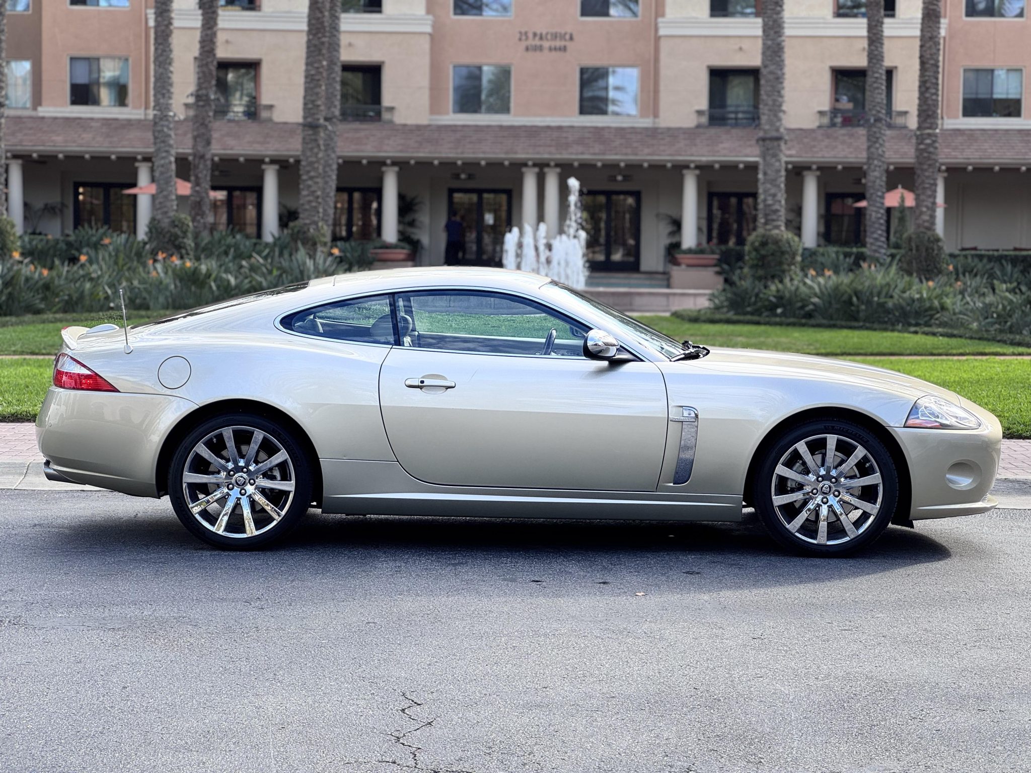Powered by a 4.2-liter AJ V8 linked to a six-speed automatic transmission, the car is finished in Winter Gold over Caramel leather upholstery. Features include parking sensors, xenon headlights, 19″ Carelia alloy wheels, heated power-adjustable front seats, navigation, and dual-zone automatic climate control.