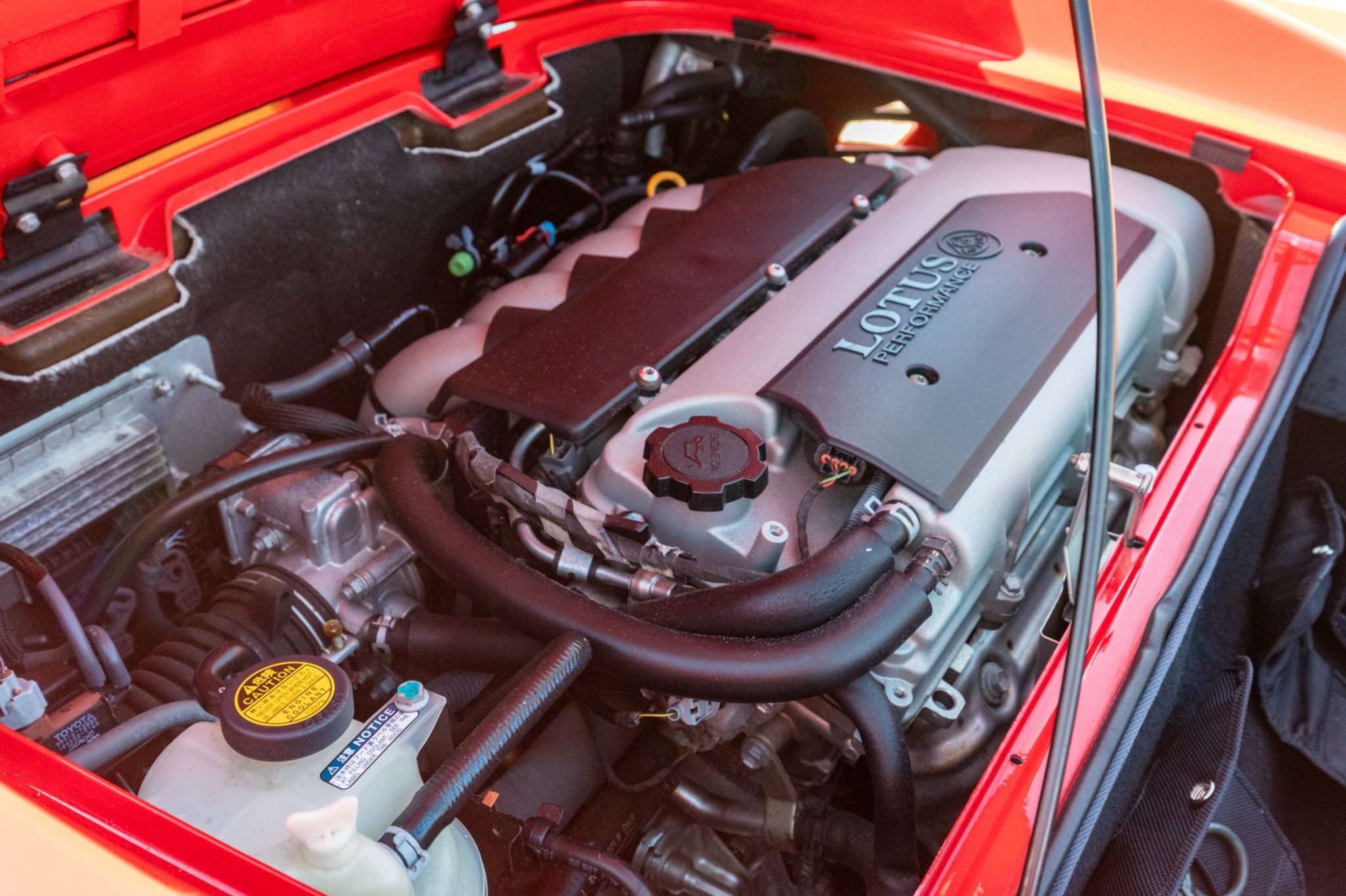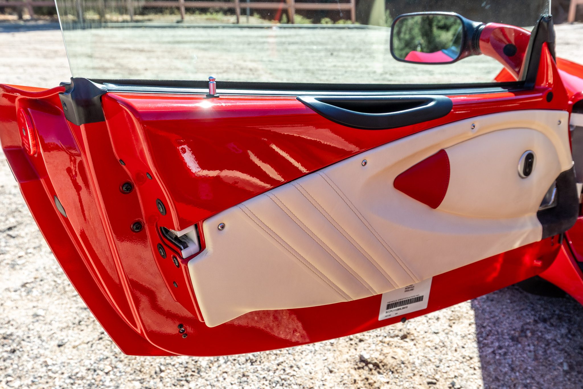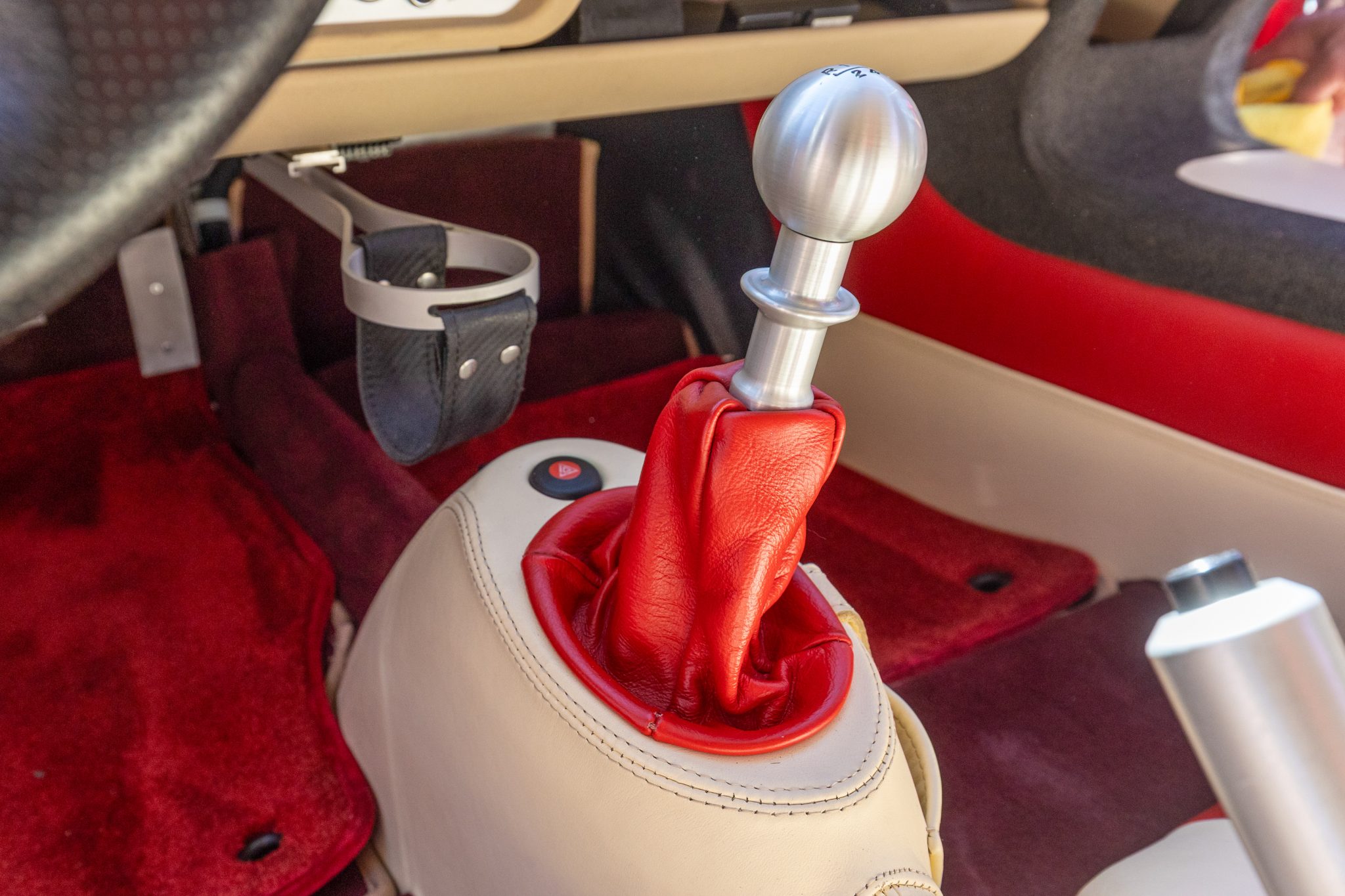 Finished in Ardent Red over Magnolia and red leather, the car is powered by a 1.8-liter inline-four paired with a six-speed manual transaxle. Equipment includes 16″ and 17″ Y-spoke alloy wheels, a removable soft top, a color-matching roof panel, a Alpine CD stereo, power windows, and air conditioning.