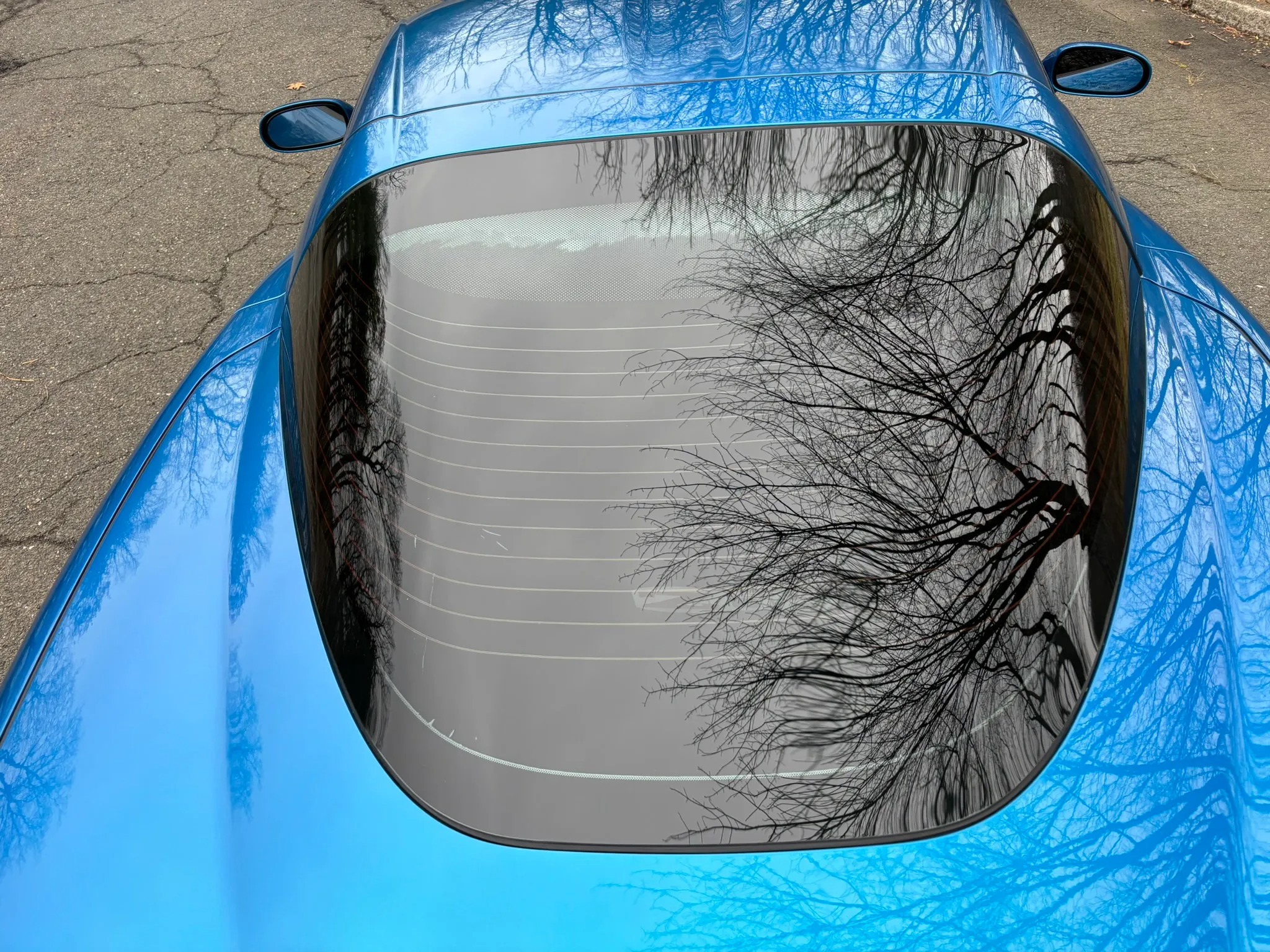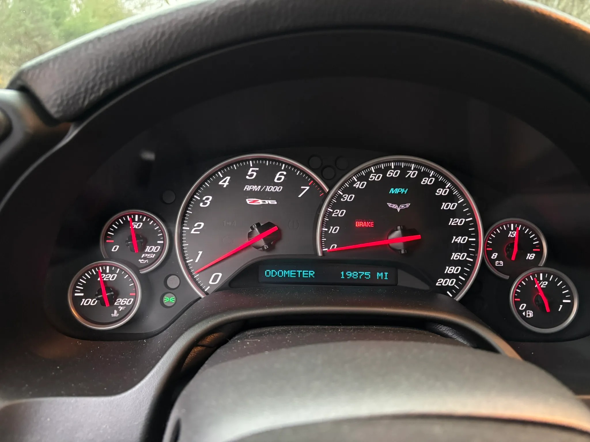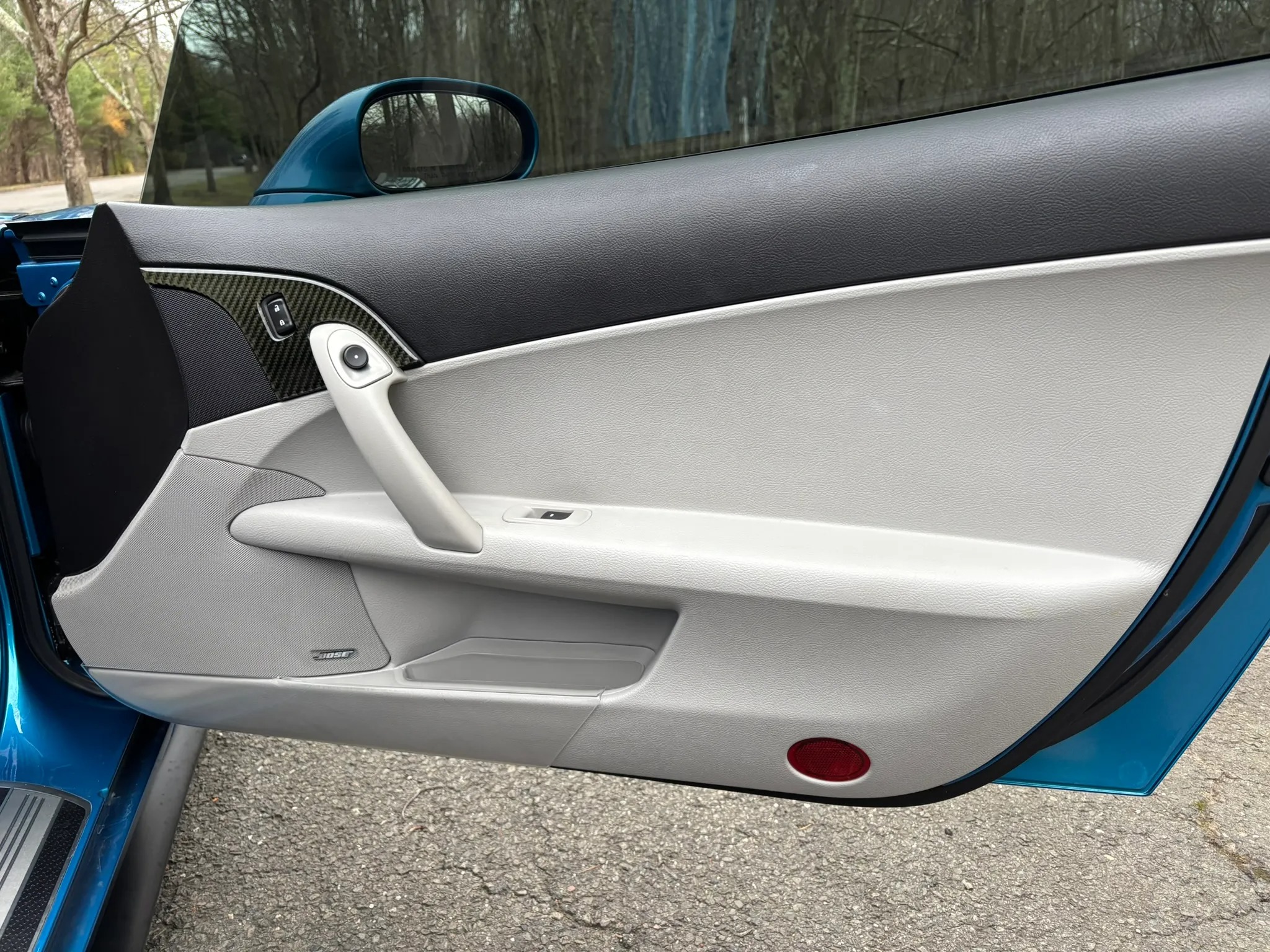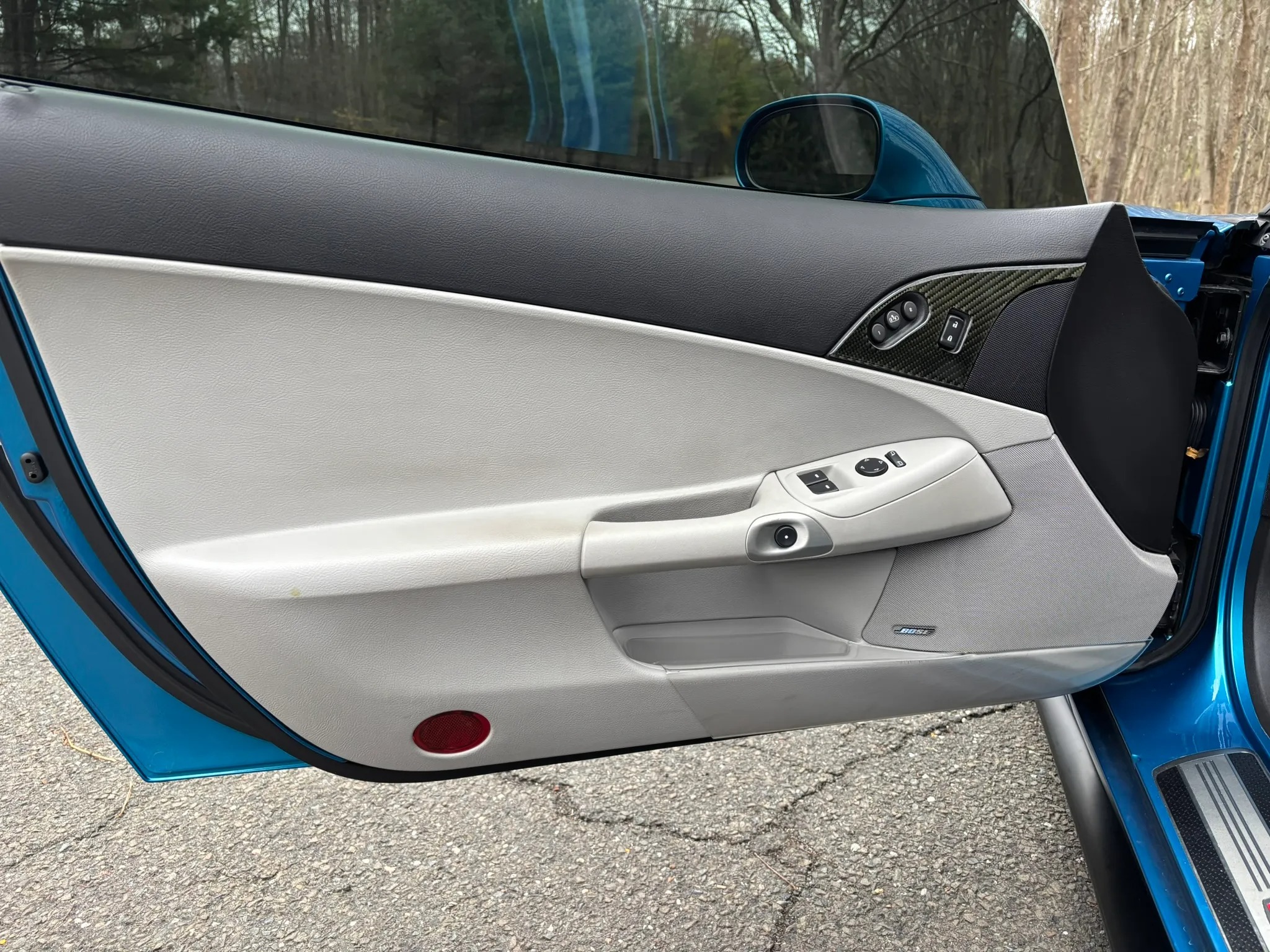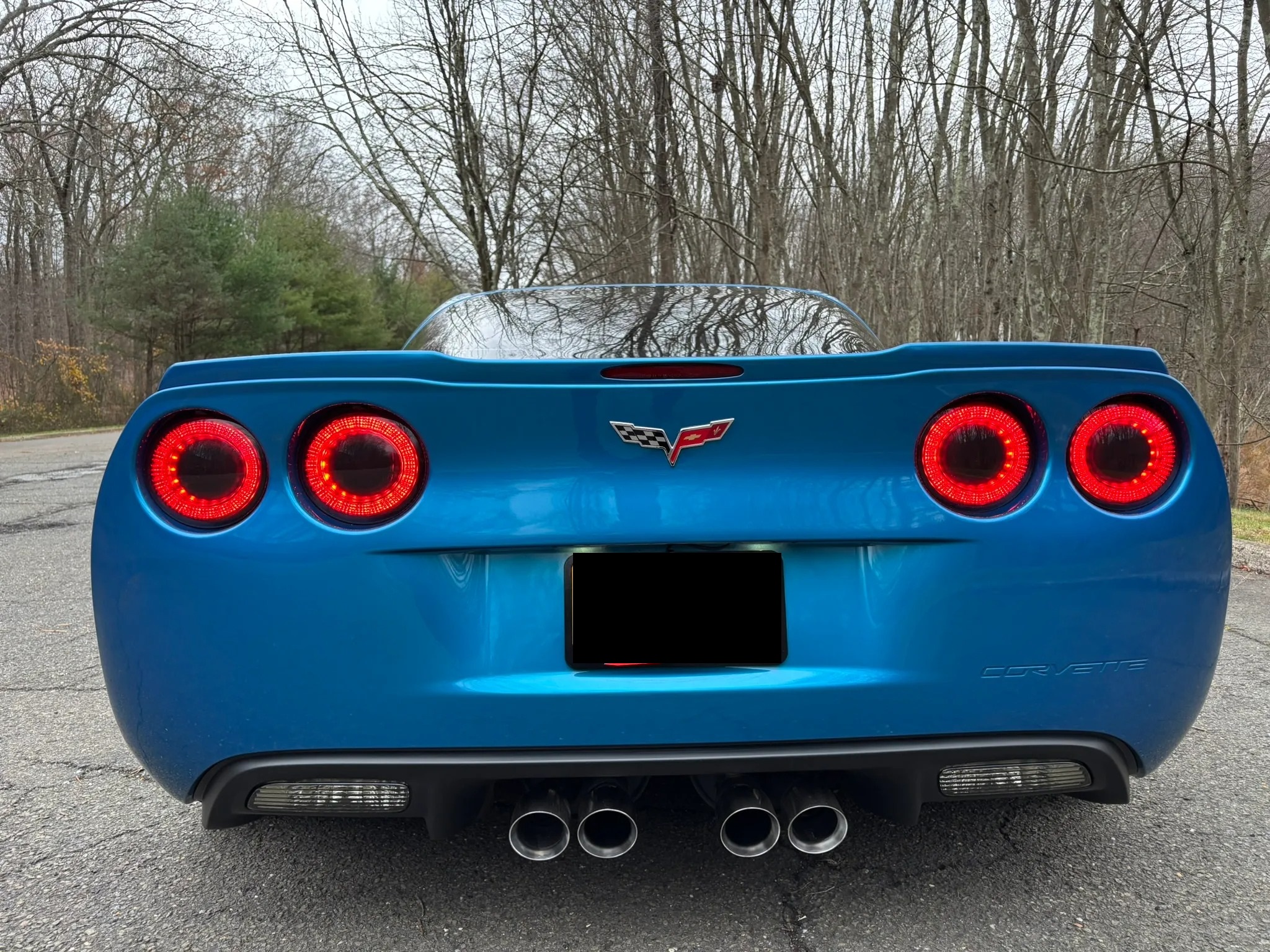 2009 Chevrolet Corvette Z06 is finished in Jetstream Blue over Ebony and Titanium leather It is powered by a 7.0-liter LS7 V8 paired with a six-speed manual gearbox and is equipped with the 2LZ Preferred Equipment Group, chrome 18″ and 19″ wheels, a head-up display, heated power-adjustable seats, a Kenwood touchscreen infotainment system, and aftermarket taillights and side markers.