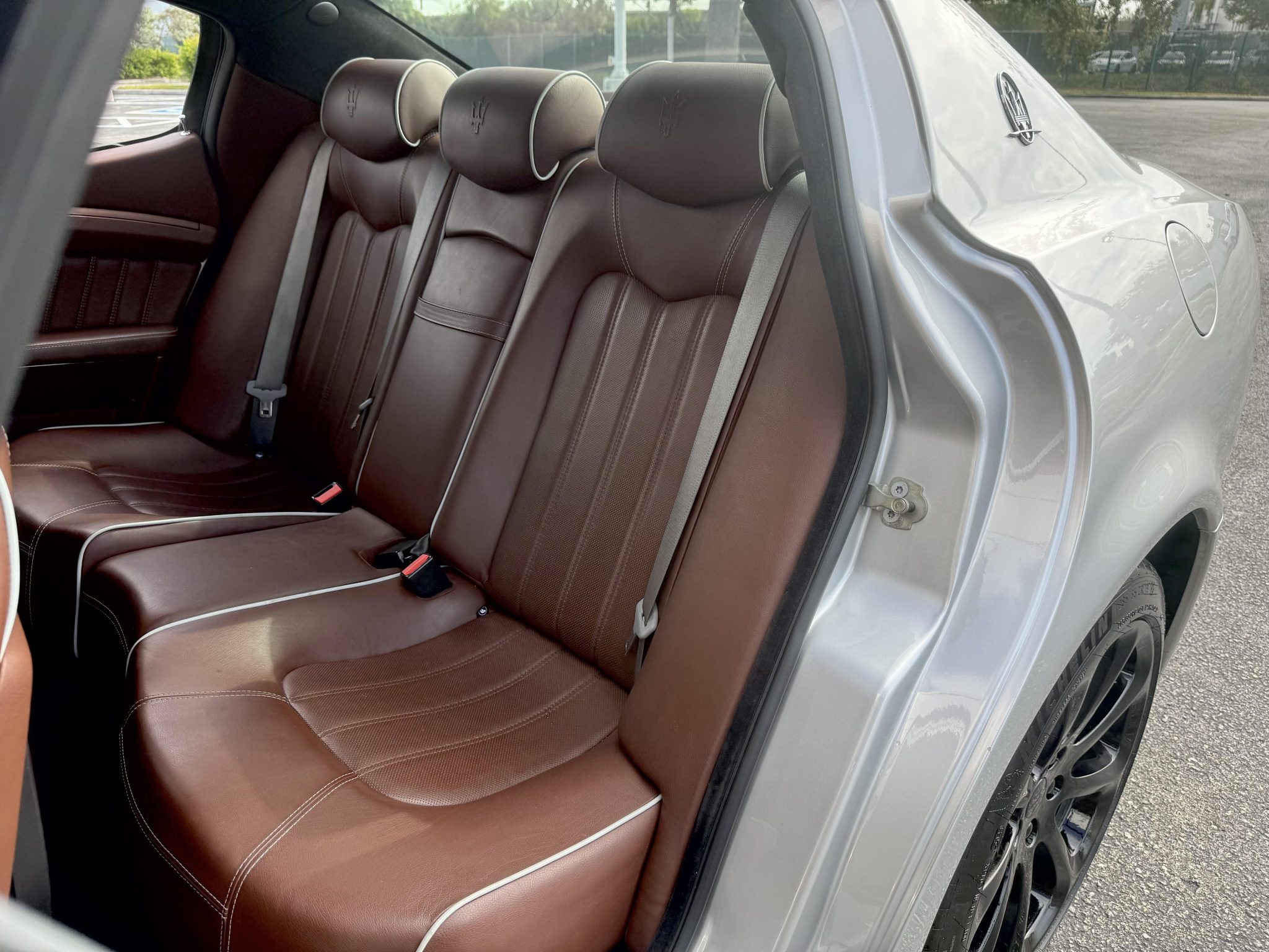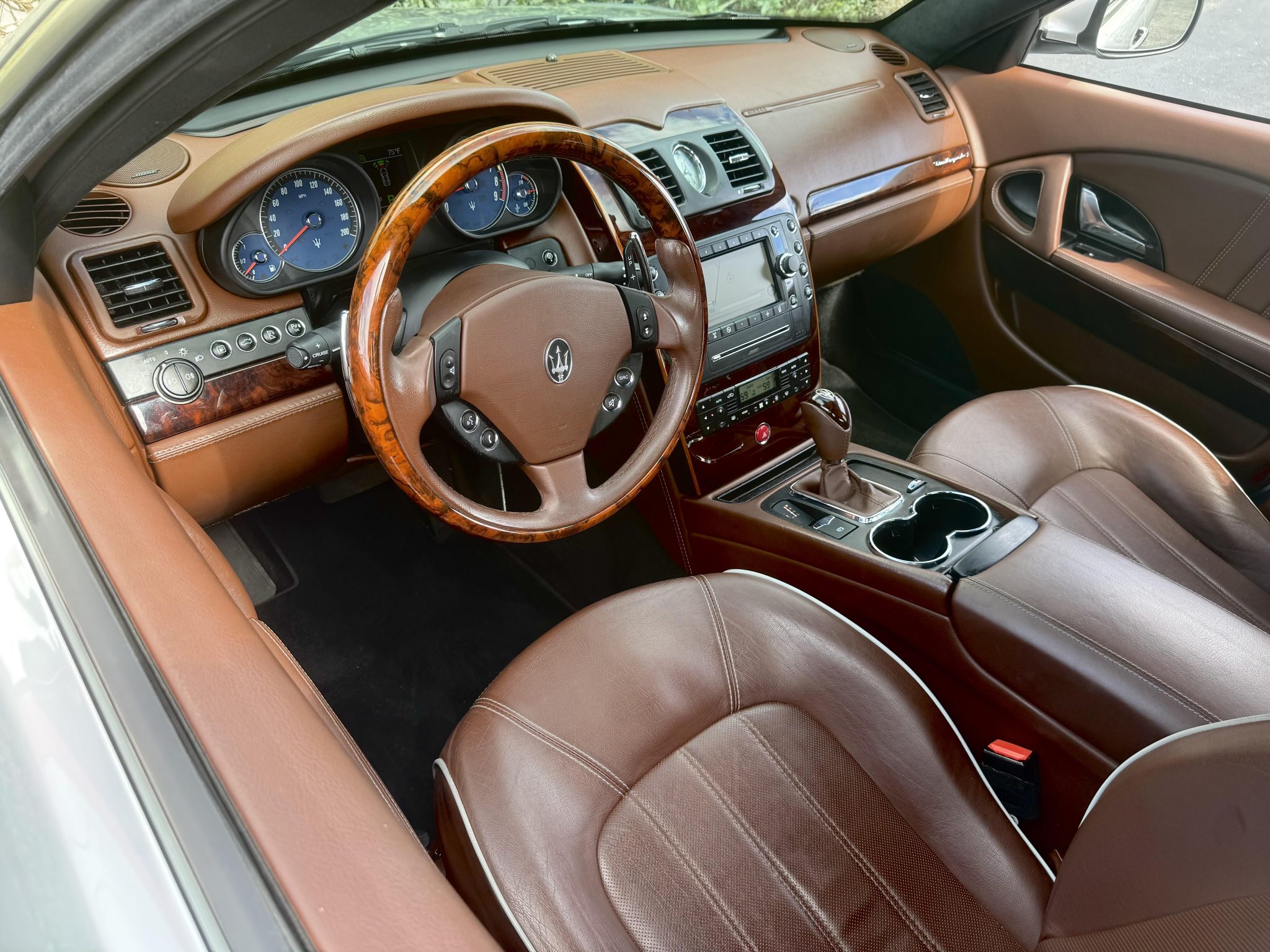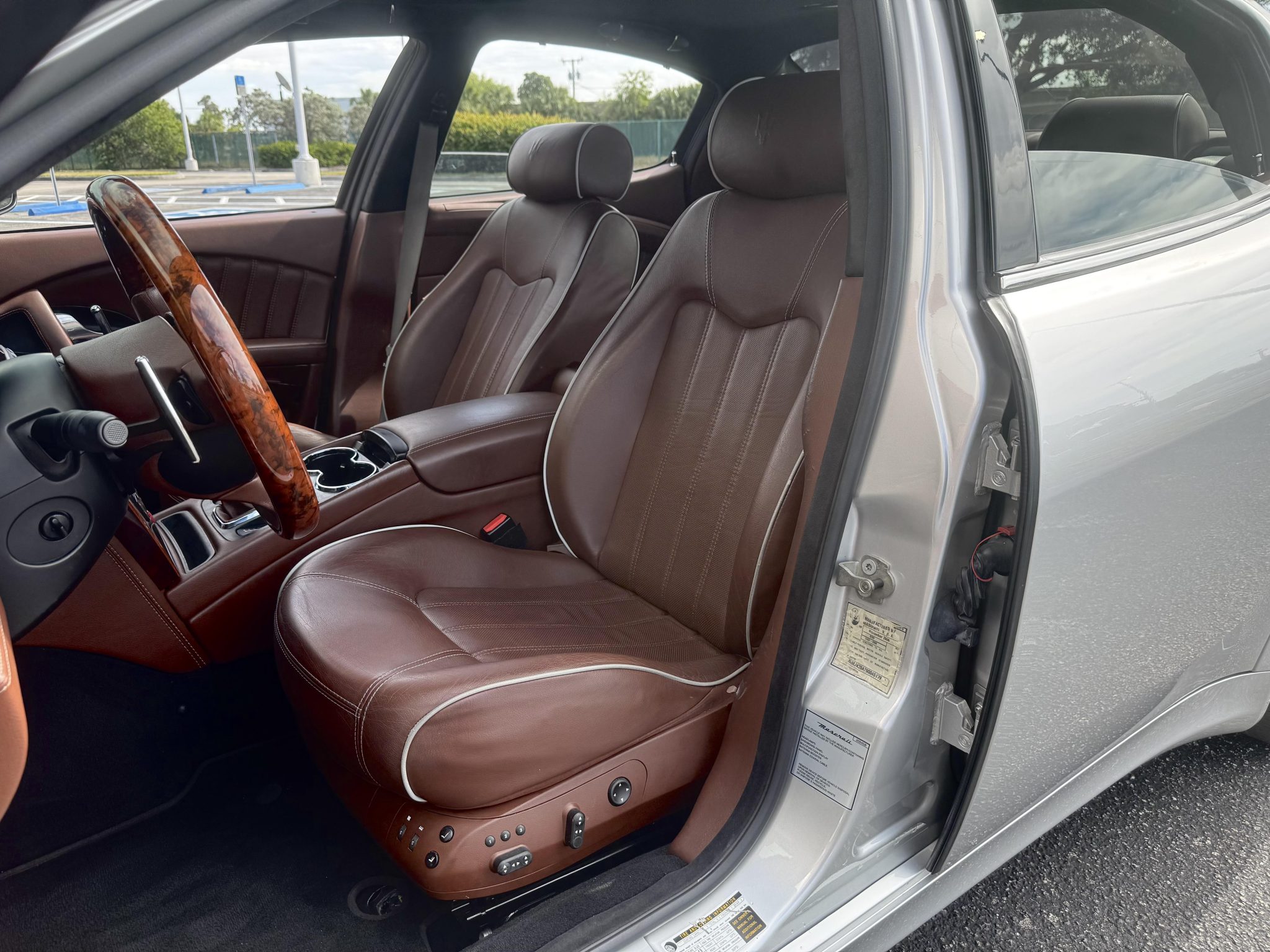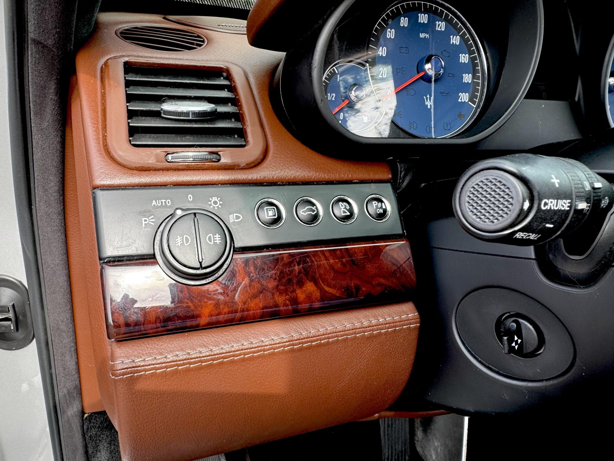 It is equipped with the Executive GT Pack, which added wooden rear tables, rear climate controls, and an Alcantara headliner. Finished in Grigio Touring Metallizzato over Marrone Corniola leather, additional appointments include a 4.7-liter V8, a six-speed automatic transmission, a sunroof, parking sensors, black-finished 19″ nine-spoke alloy wheels, heated and ventilated front seats, a Bose sound system, and multi-zone automatic climate control.