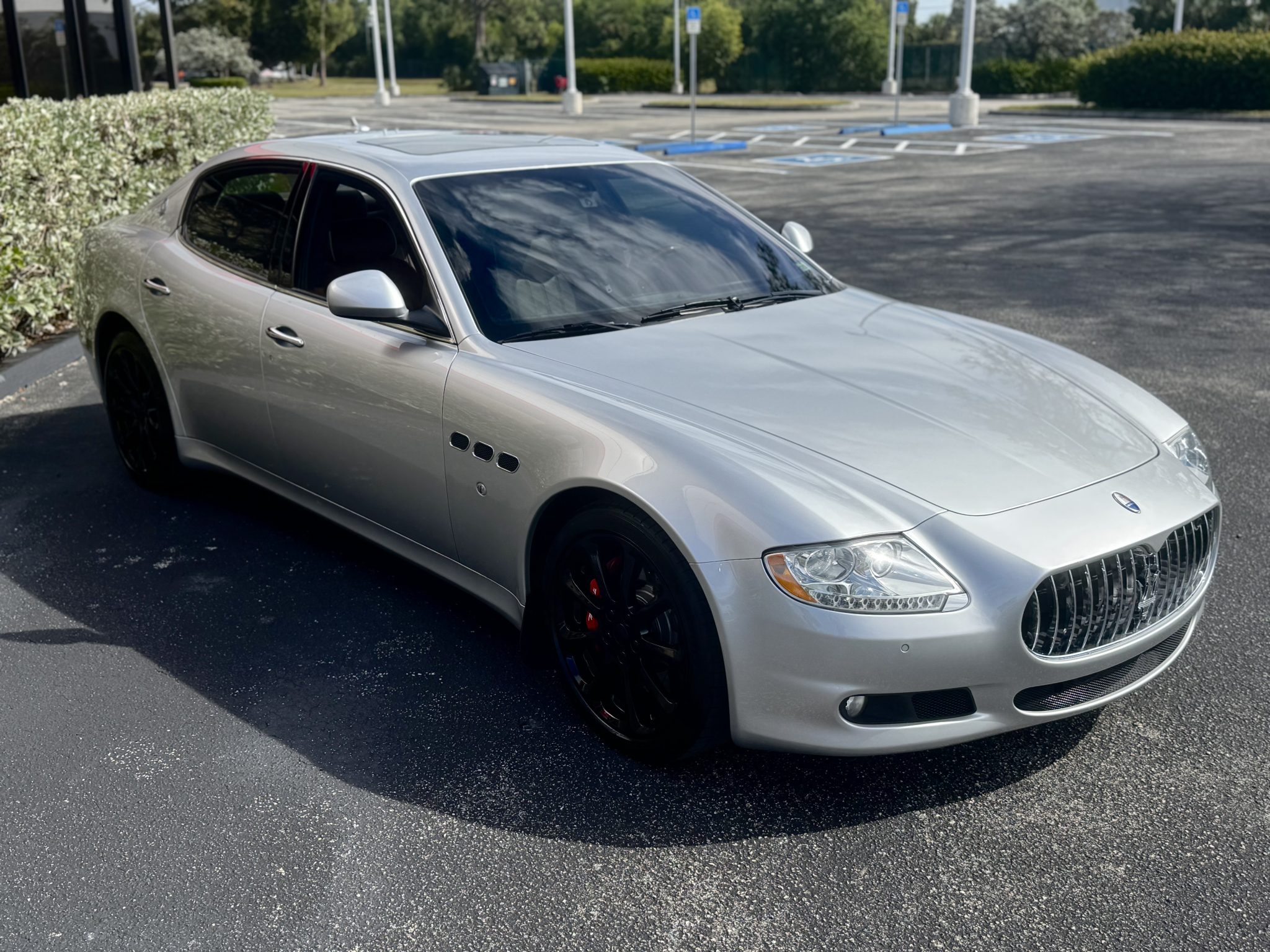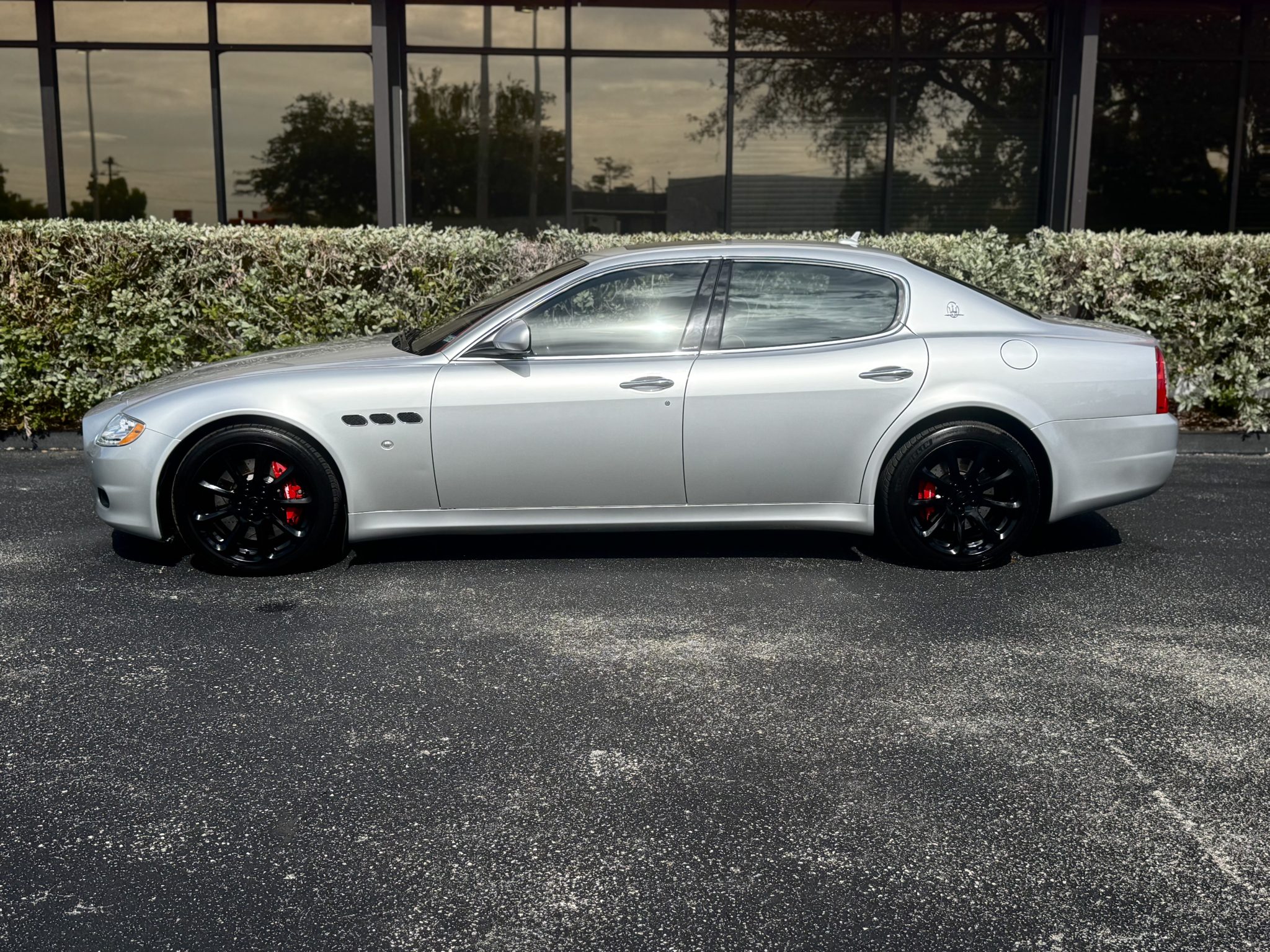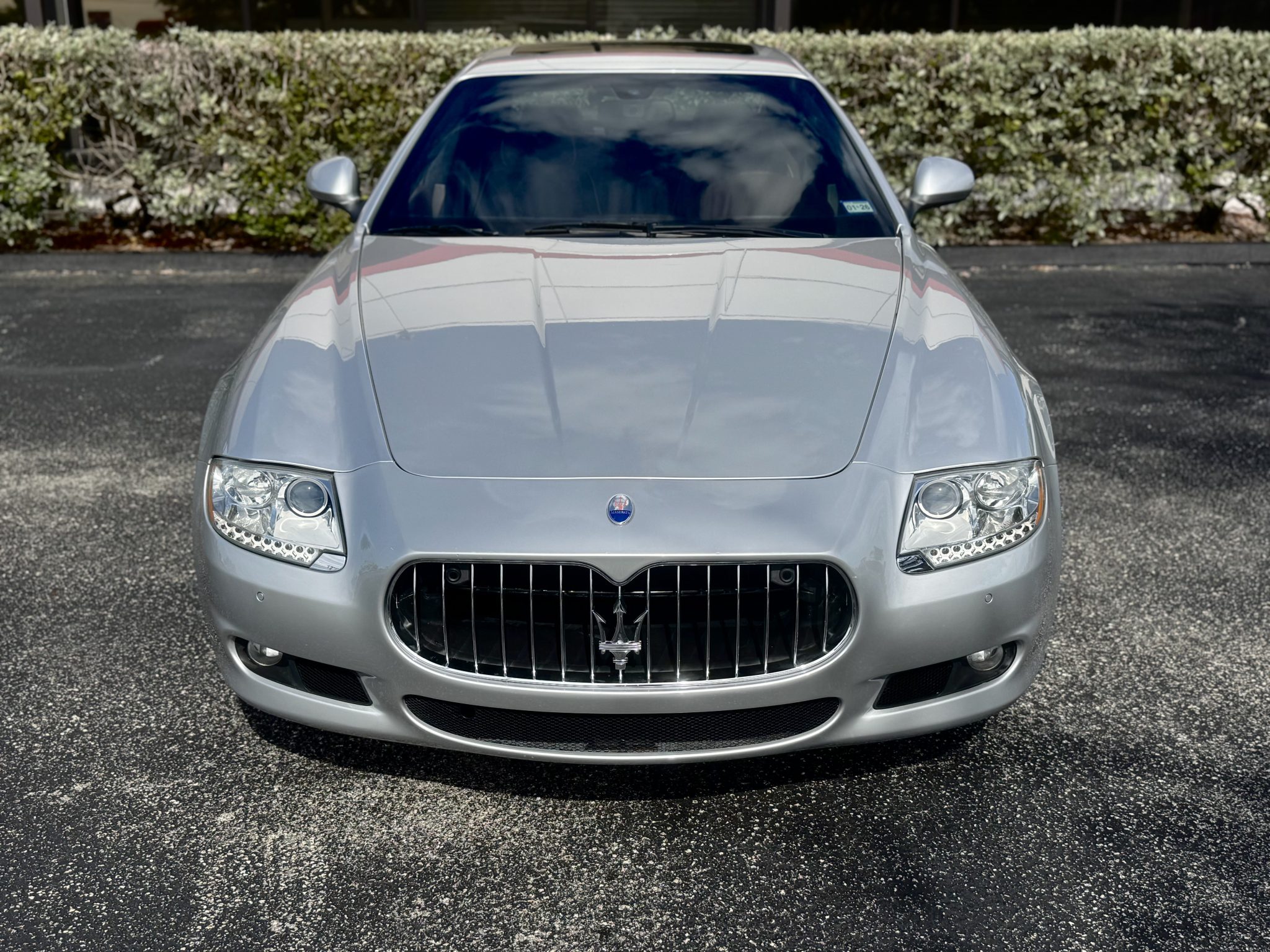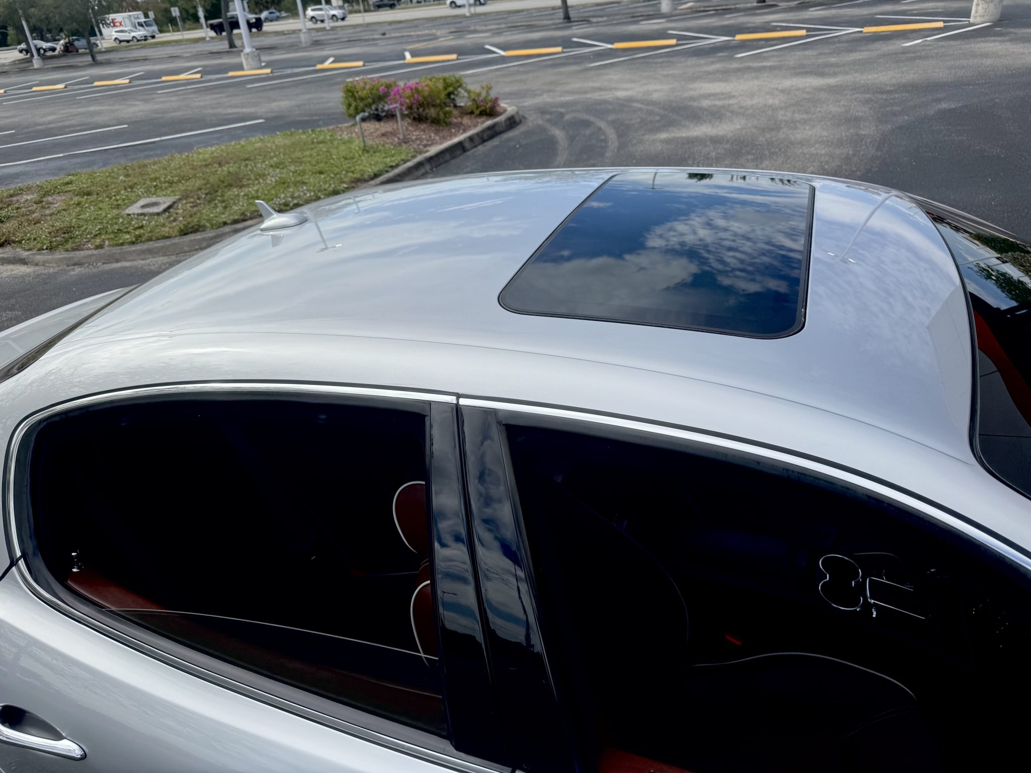 It is equipped with the Executive GT Pack, which added wooden rear tables, rear climate controls, and an Alcantara headliner. Finished in Grigio Touring Metallizzato over Marrone Corniola leather, additional appointments include a 4.7-liter V8, a six-speed automatic transmission, a sunroof, parking sensors, black-finished 19″ nine-spoke alloy wheels, heated and ventilated front seats, a Bose sound system, and multi-zone automatic climate control.