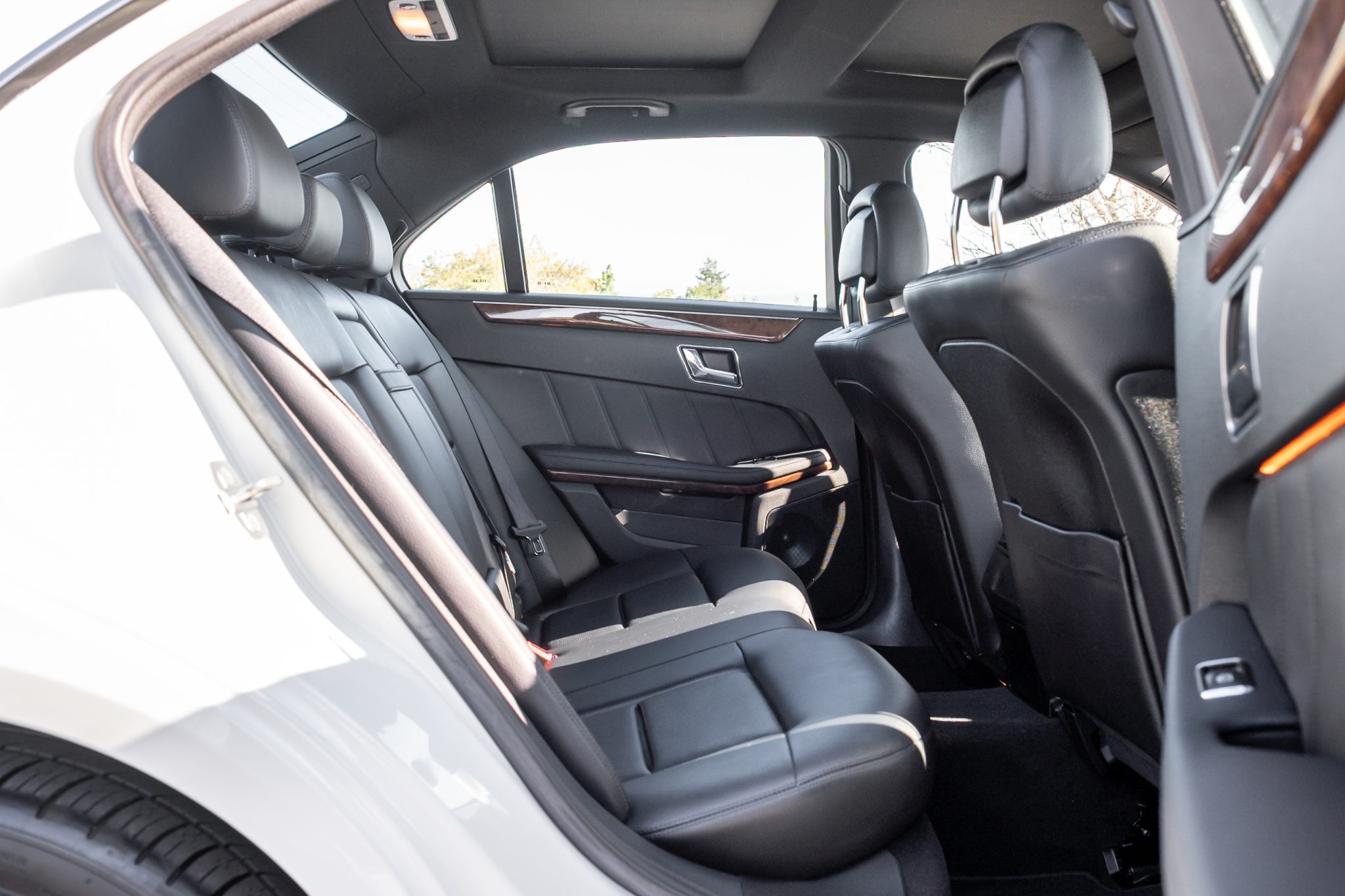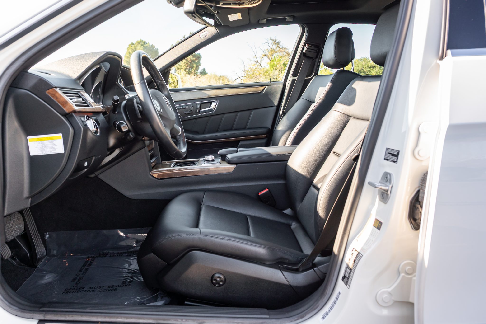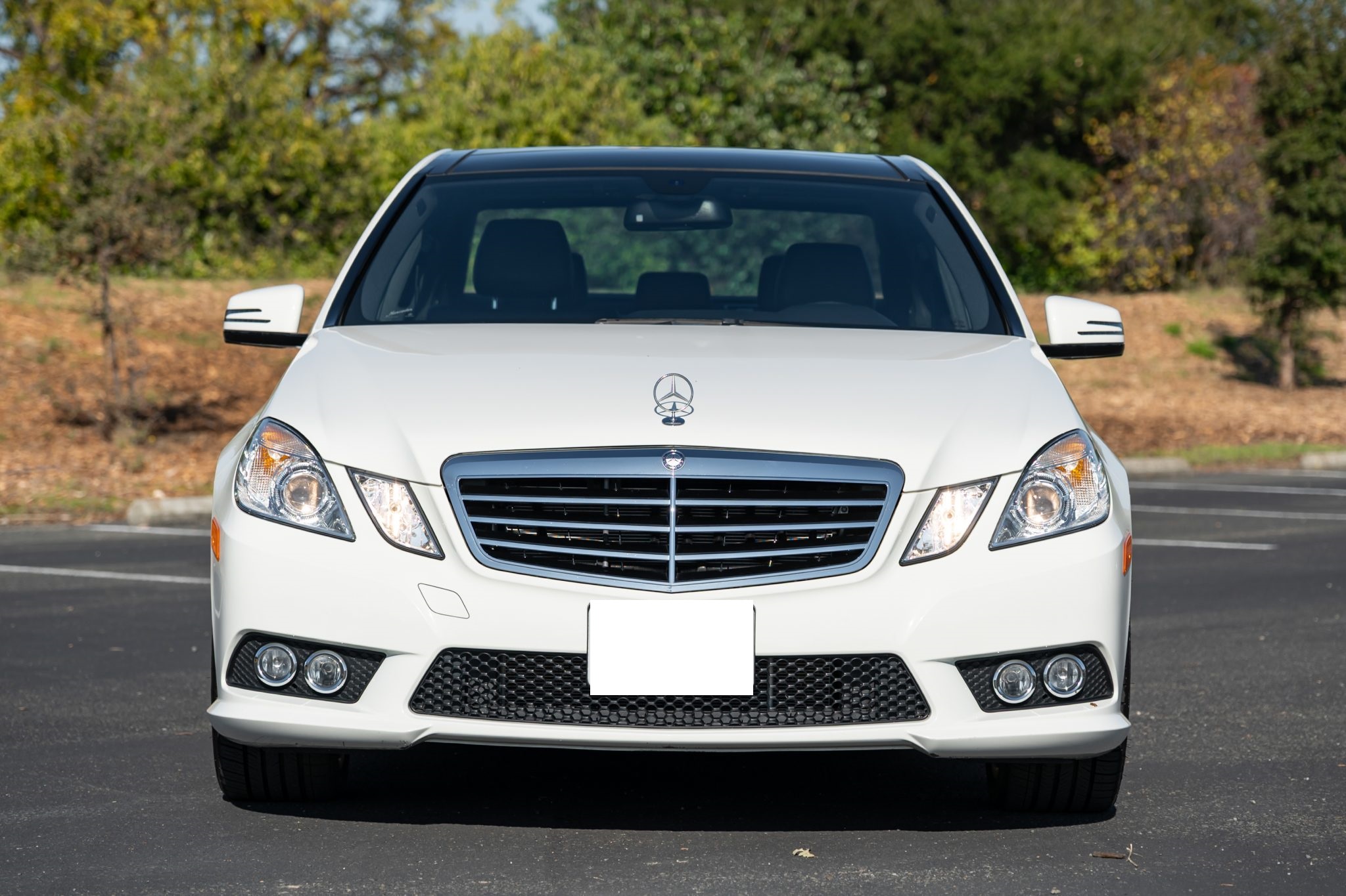 The car is powered by a 3.5-liter V6 paired with a seven-speed automatic transmission and is finished in Arctic White over black MB-Tex upholstery. Features include xenon headlights, a panoramic sunroof, 18″ five-spoke alloy wheels, a rearview camera, navigation, heated power-adjustable front seats, a Harman Kardon sound system, cruise control, a CD stereo, and dual-zone automatic climate control.