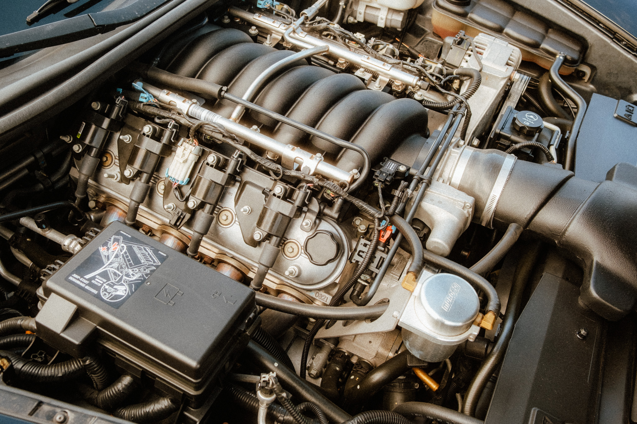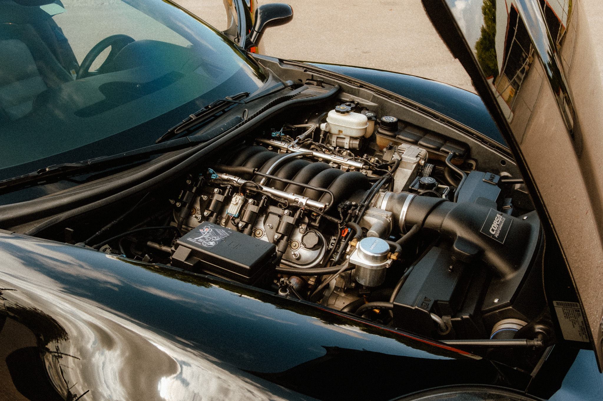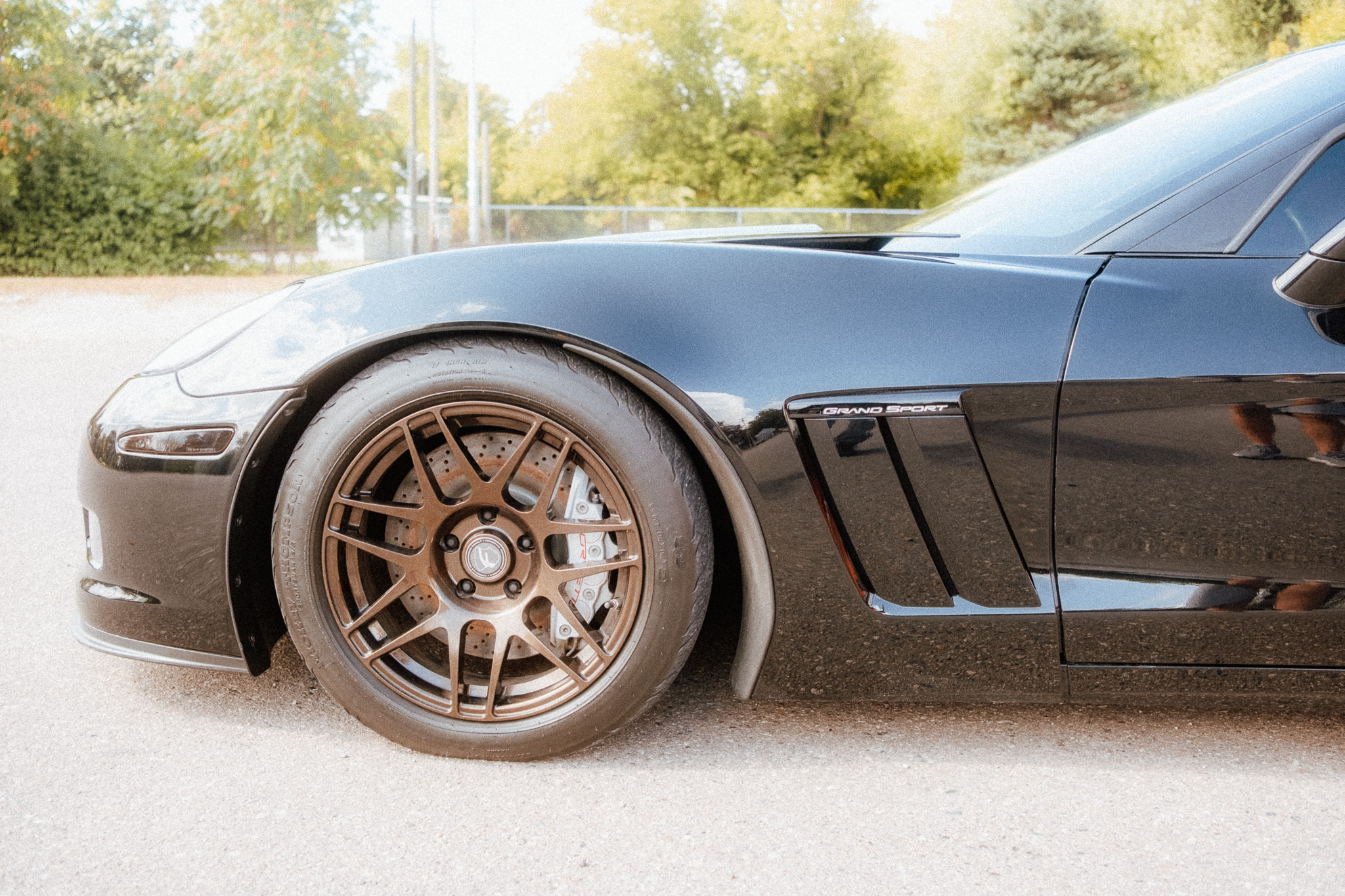 2011 Chevrolet Corvette Grand Sport coupe is powered by a 6.2-liter LS3 V8 that has been modified with an aftermarket stage-three camshaft, a Corsa Performance air-intake system, a Moroso oil catch can, and revised valve springs, valve retainers, and engine management. Additional revisions include a switchable straight-pipe exhaust system, long-tube headers, aftermarket mufflers, and bronze-finished 17″ Forgestar Performance wheels. Indicating 36k miles and finished in Black over Ebony and Titanium Gray leather, further appointments include a six-speed manual gearbox, a limited-slip differential, the 3LT Preferred Equipment Group, a removable roof panel, a head-up display, heated seats, a Bose sound system, and dual-zone automatic climate control.
