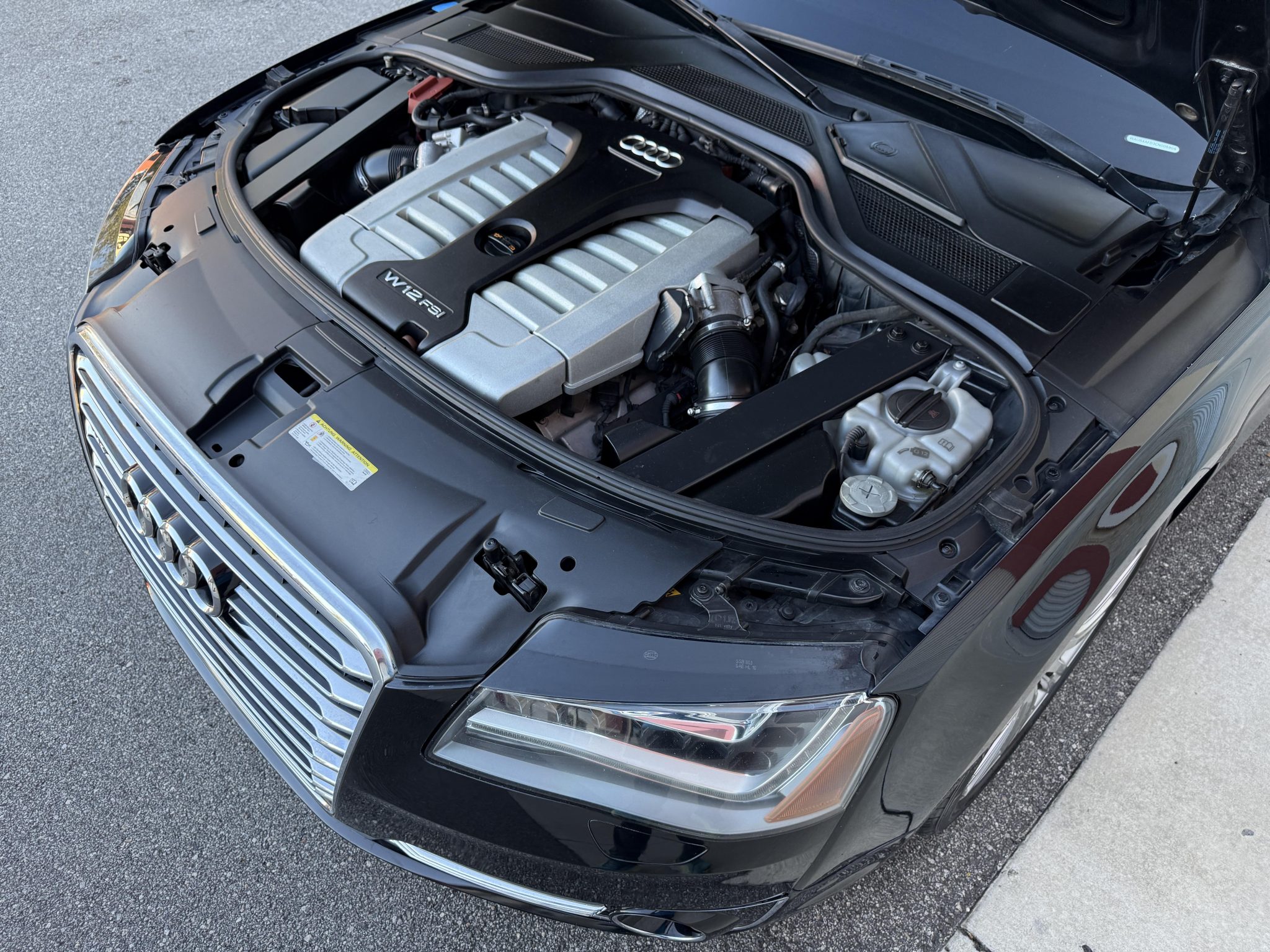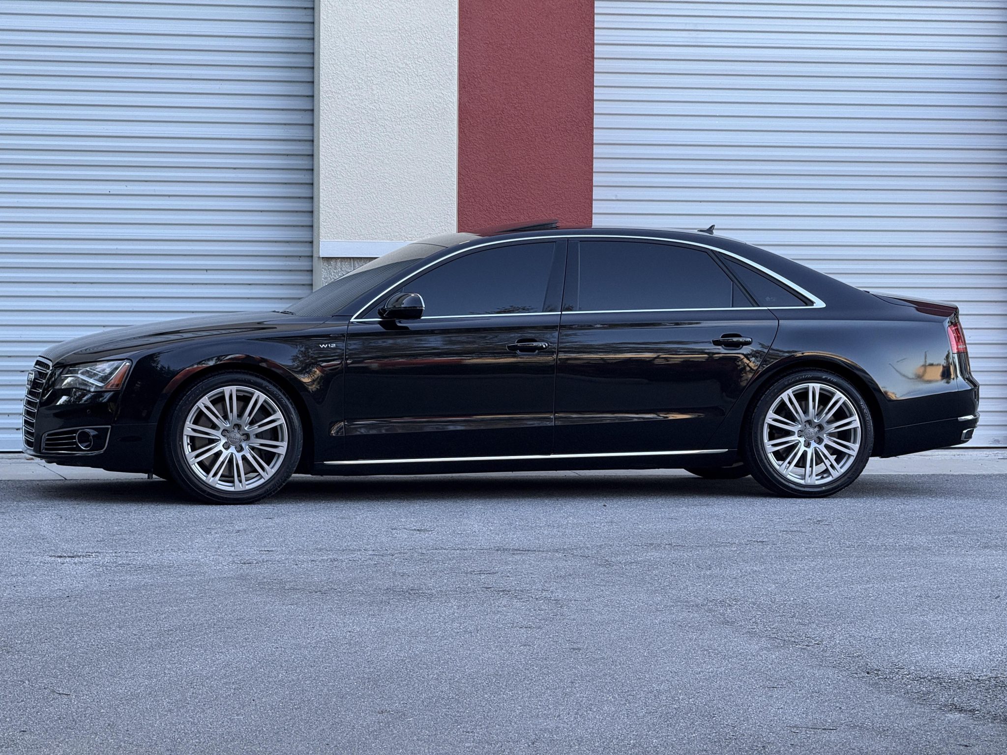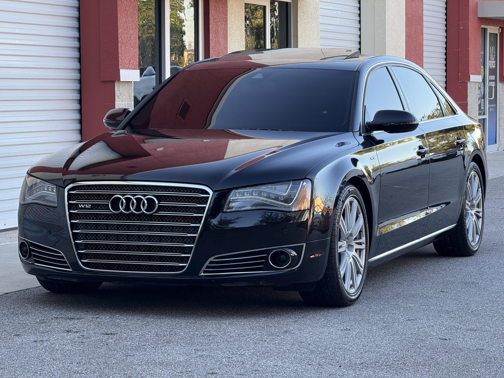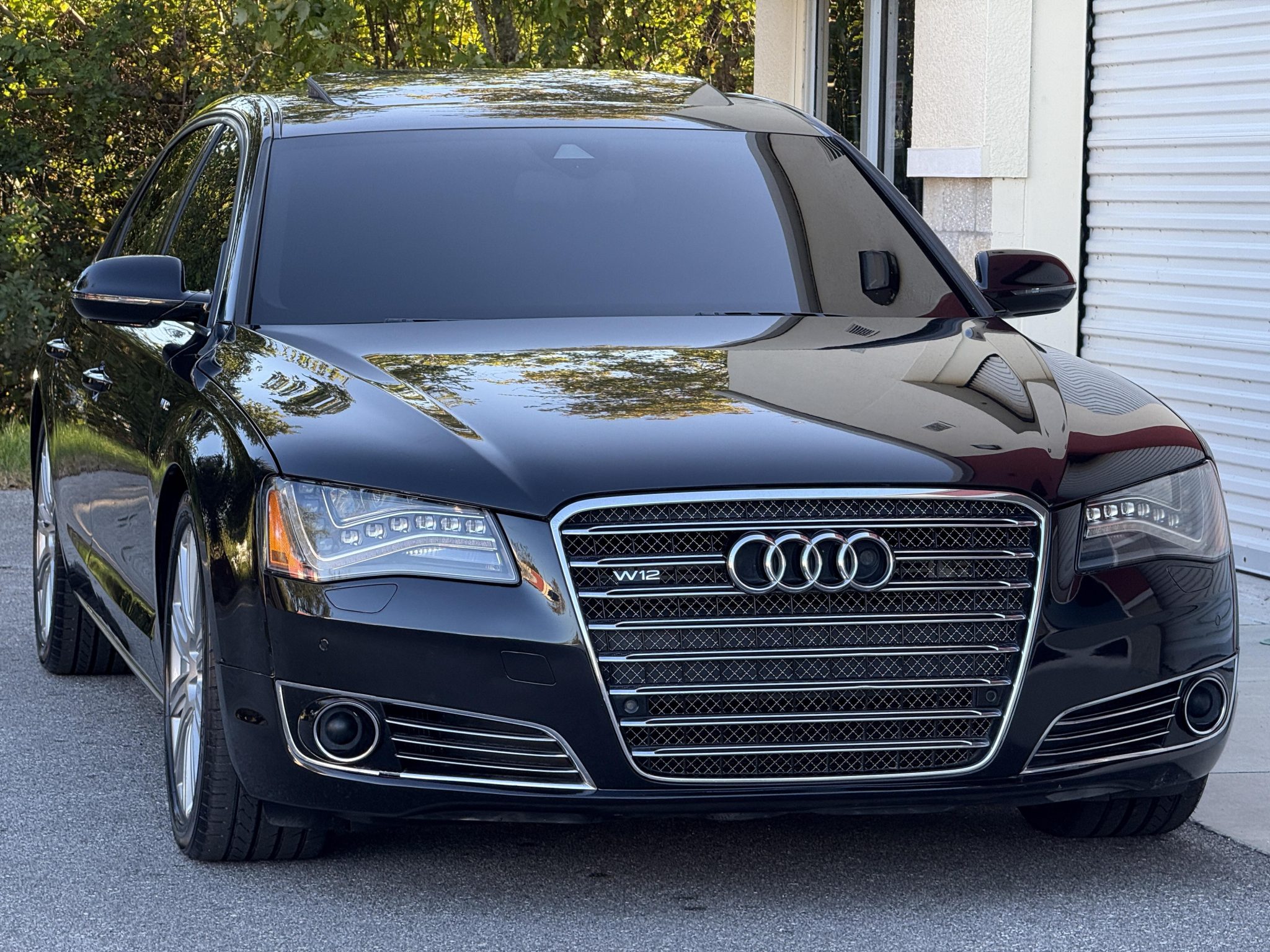 This 2012 Audi A8L W12 is finished in black over black leather and is powered by a 6.3-liter W12 linked to an eight-speed automatic transaxle and a Quattro all-wheel-drive system. Equipment includes adaptive cruise control, an adaptive air suspension, a Bang & Olufsen sound system, four-zone automatic climate control, rear entertainment screens, 20″ wheels, and heated, ventilated, and massaging front and rear seats.