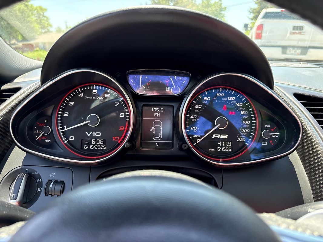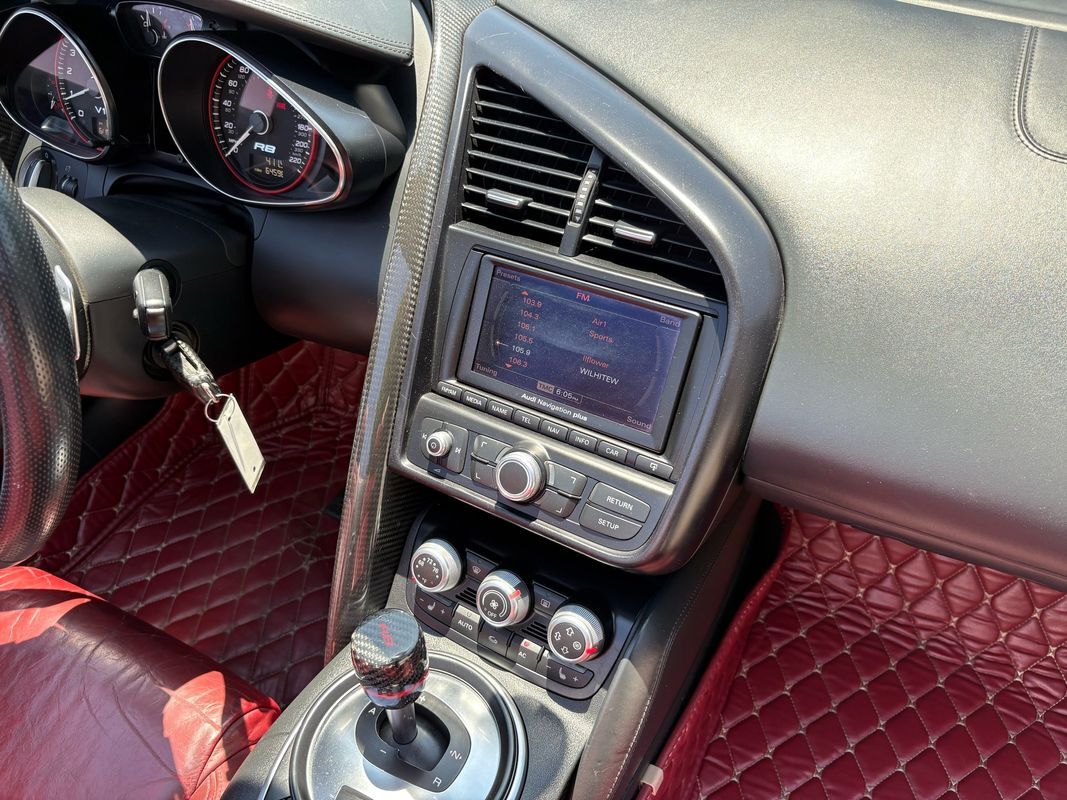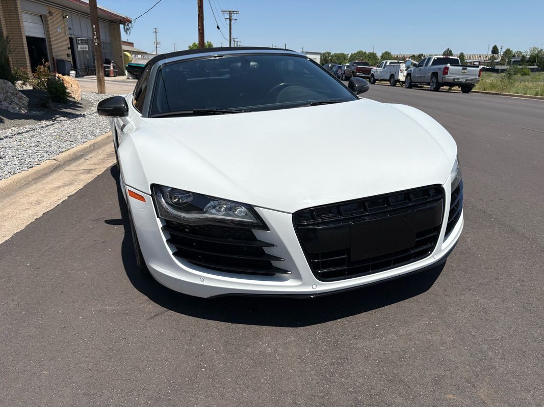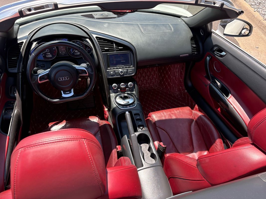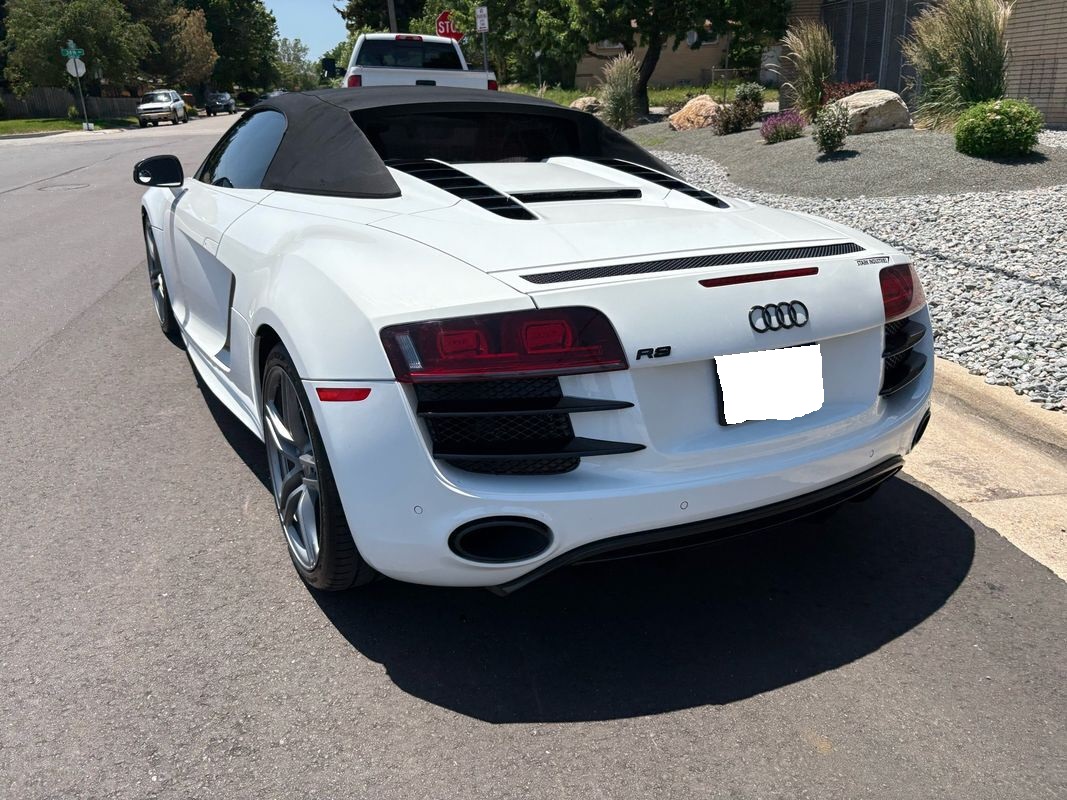 2012 Audi R8 spyder done in White over Red leather. Has the 5.2L V10 that put out 525HP with the R-tronic transmission and all wheel drive.