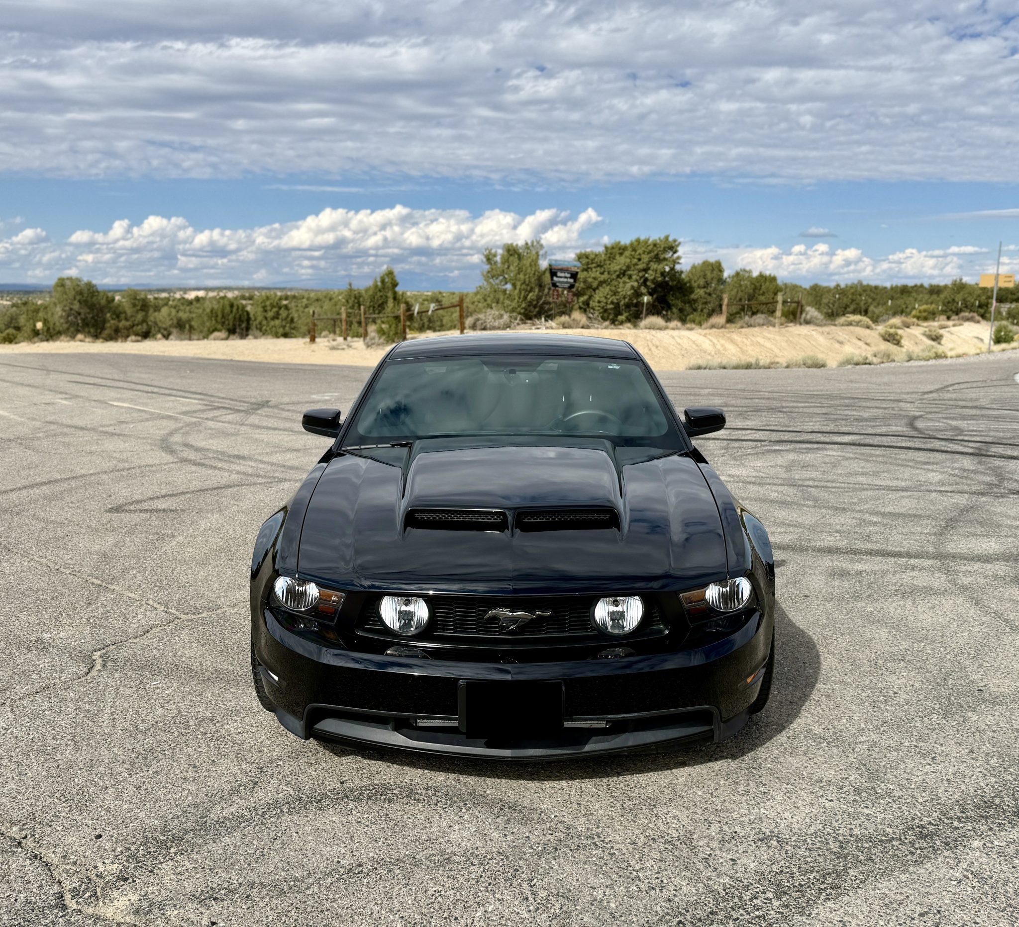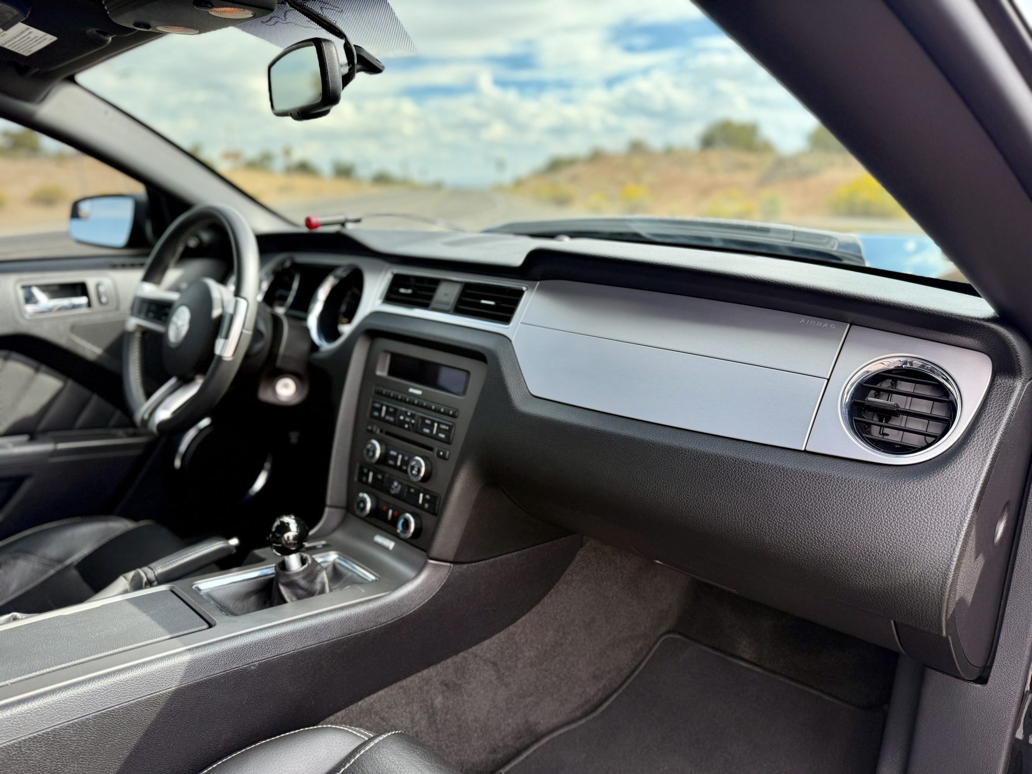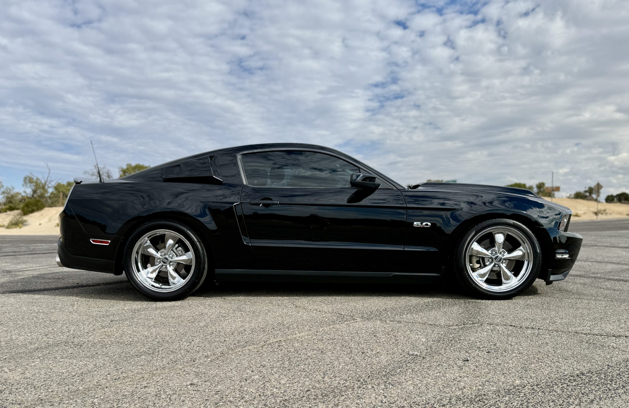 This 2012 Ford Mustang Premium GT coupe has 16k miles  and was modified with the installation of twin 62mm Hellion turbochargers, dual 44mm Turbosmart wastegates, Injector Dynamics 1,050cc fuel injectors, and a custom exhaust system. Power comes from a 5.0-liter Coyote V8 linked to a Tremec T56 Magnum XL six-speed manual transmission, a DynoTech driveshaft, and a limited-slip differential, and the car is finished in black over black upholstery. It rides on 19″ American Muscle wheels and is further equipped with Strange Engineering front struts, Viking rear shocks, a BMR Suspension K-member and control arms, a Cervini’s hood, air conditioning, heated front seats, and a Shaker 500 audio system.