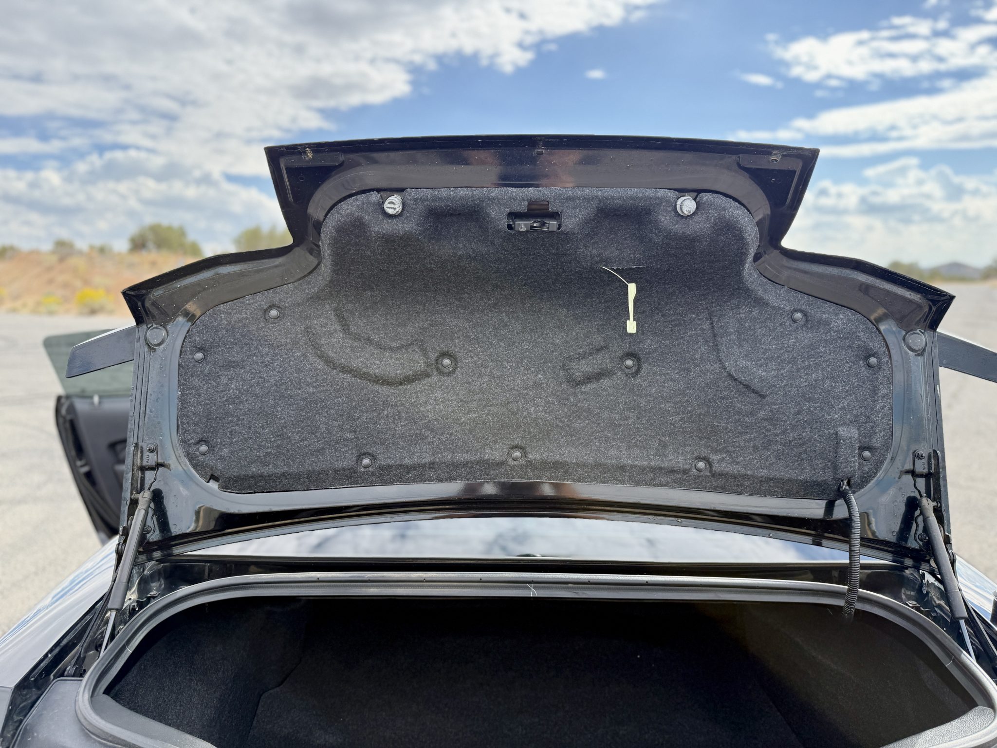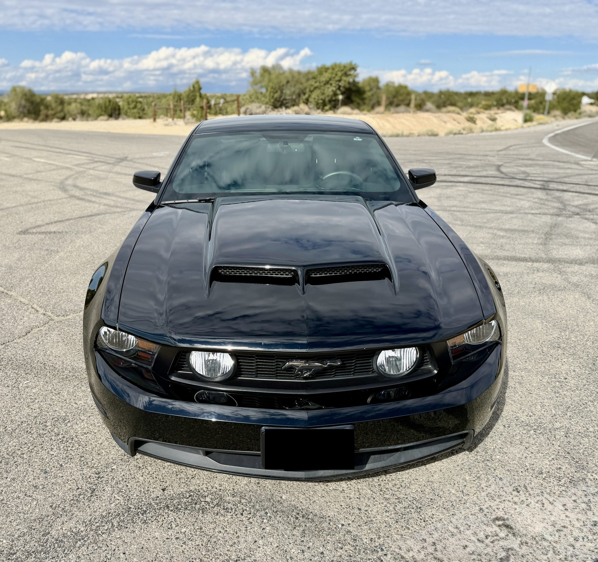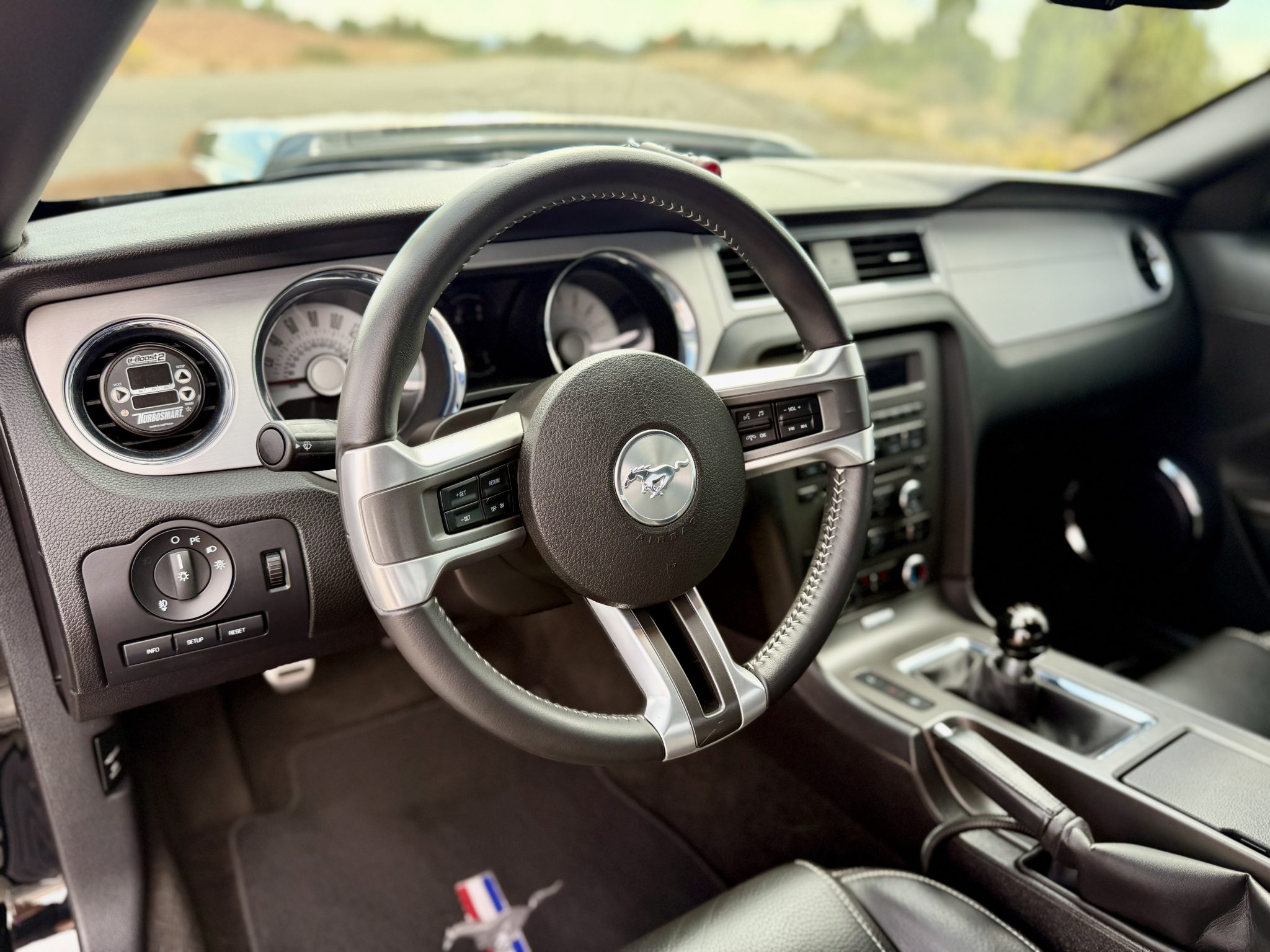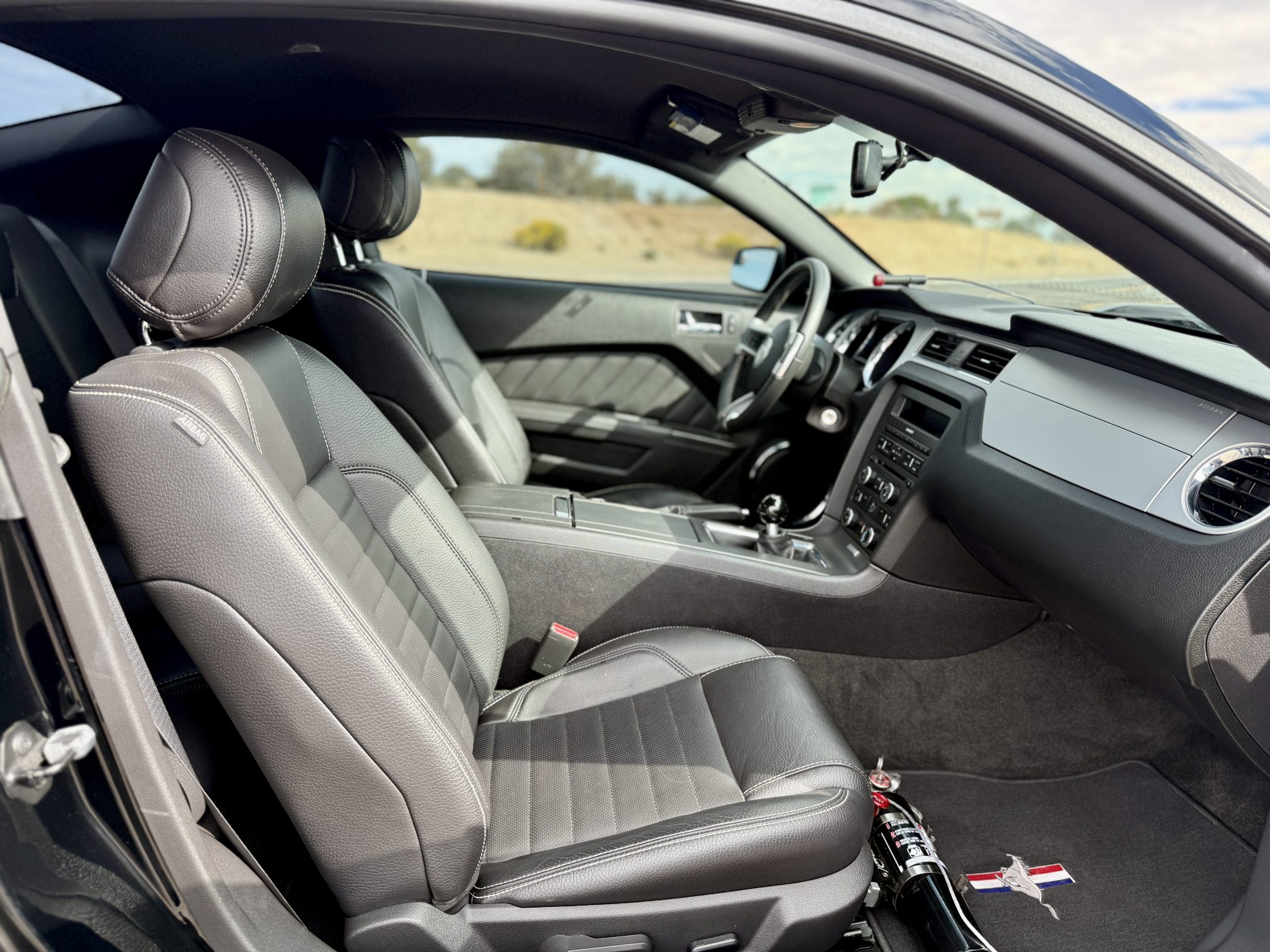 This 2012 Ford Mustang Premium GT coupe has 16k miles  and was modified with the installation of twin 62mm Hellion turbochargers, dual 44mm Turbosmart wastegates, Injector Dynamics 1,050cc fuel injectors, and a custom exhaust system. Power comes from a 5.0-liter Coyote V8 linked to a Tremec T56 Magnum XL six-speed manual transmission, a DynoTech driveshaft, and a limited-slip differential, and the car is finished in black over black upholstery. It rides on 19″ American Muscle wheels and is further equipped with Strange Engineering front struts, Viking rear shocks, a BMR Suspension K-member and control arms, a Cervini’s hood, air conditioning, heated front seats, and a Shaker 500 audio system.