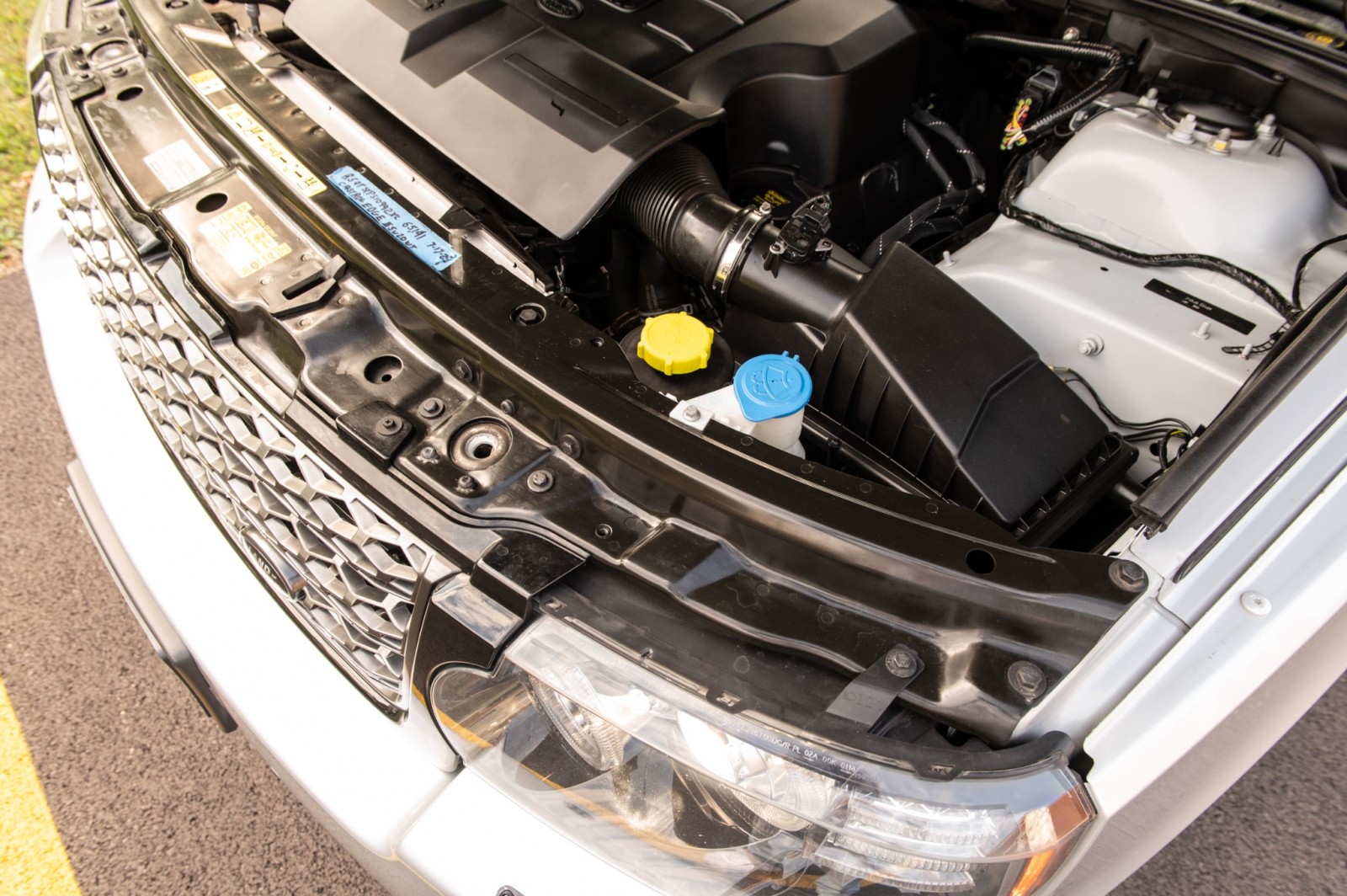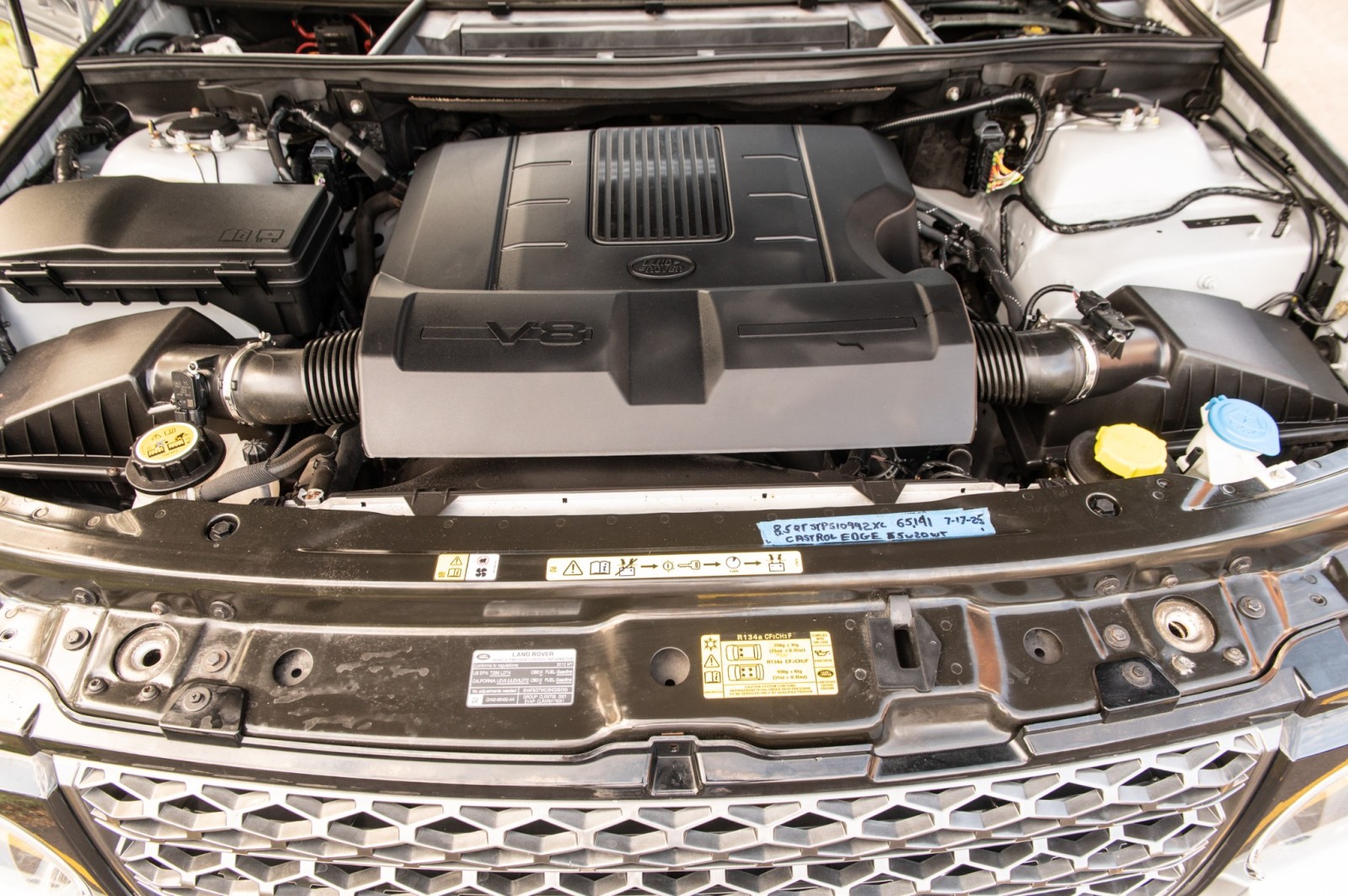 It is finished in Indus Silver over Jet leather and is powered by a 5.0-liter AJ133 V8 that drives all four wheels through a six-speed automatic transmission and a dual-range transfer case. Equipment includes a Harman Kardon sound system, a back-up camera, a sunroof, 19″ split-spoke wheels, and a heated steering wheel and seating.