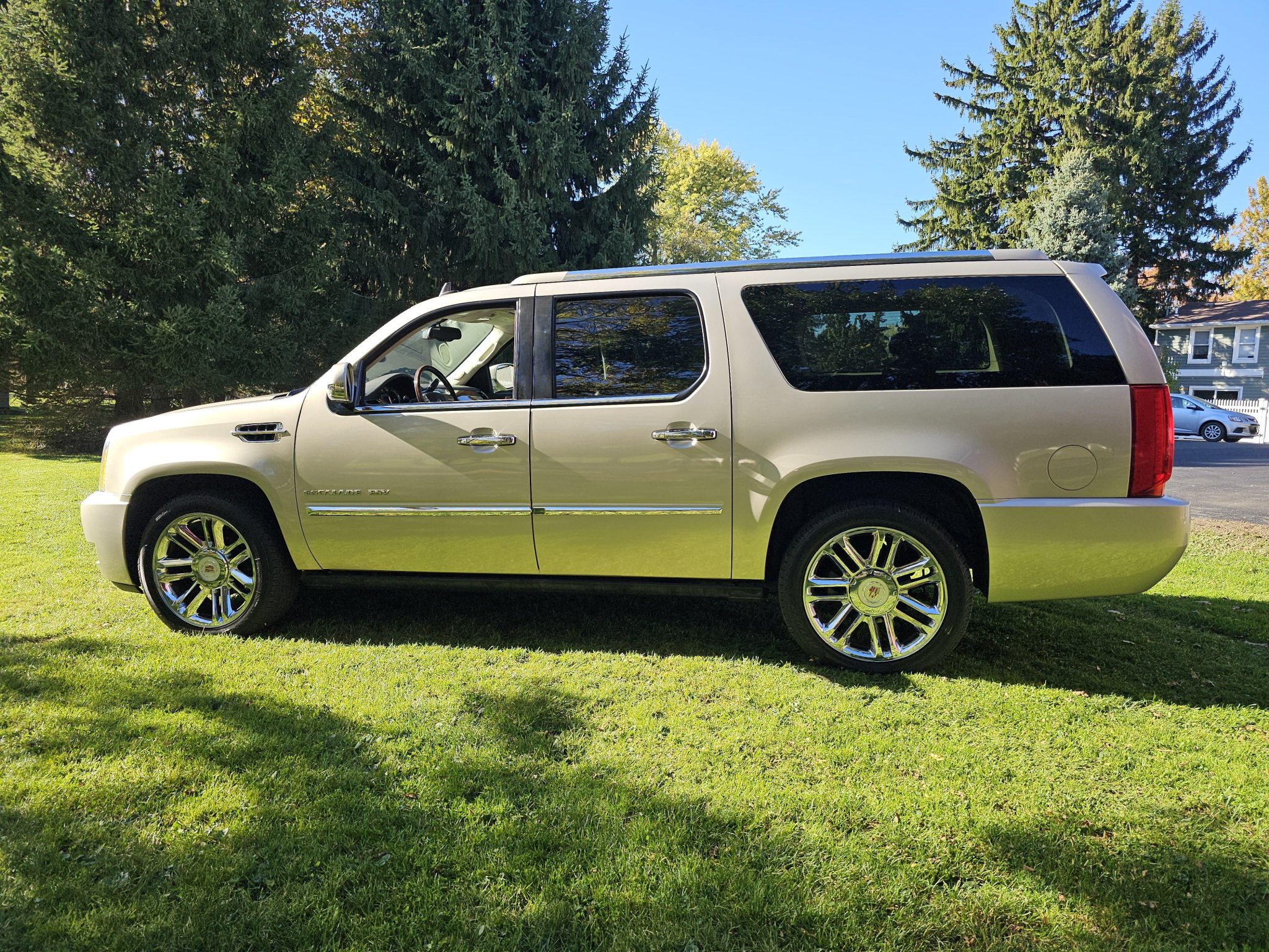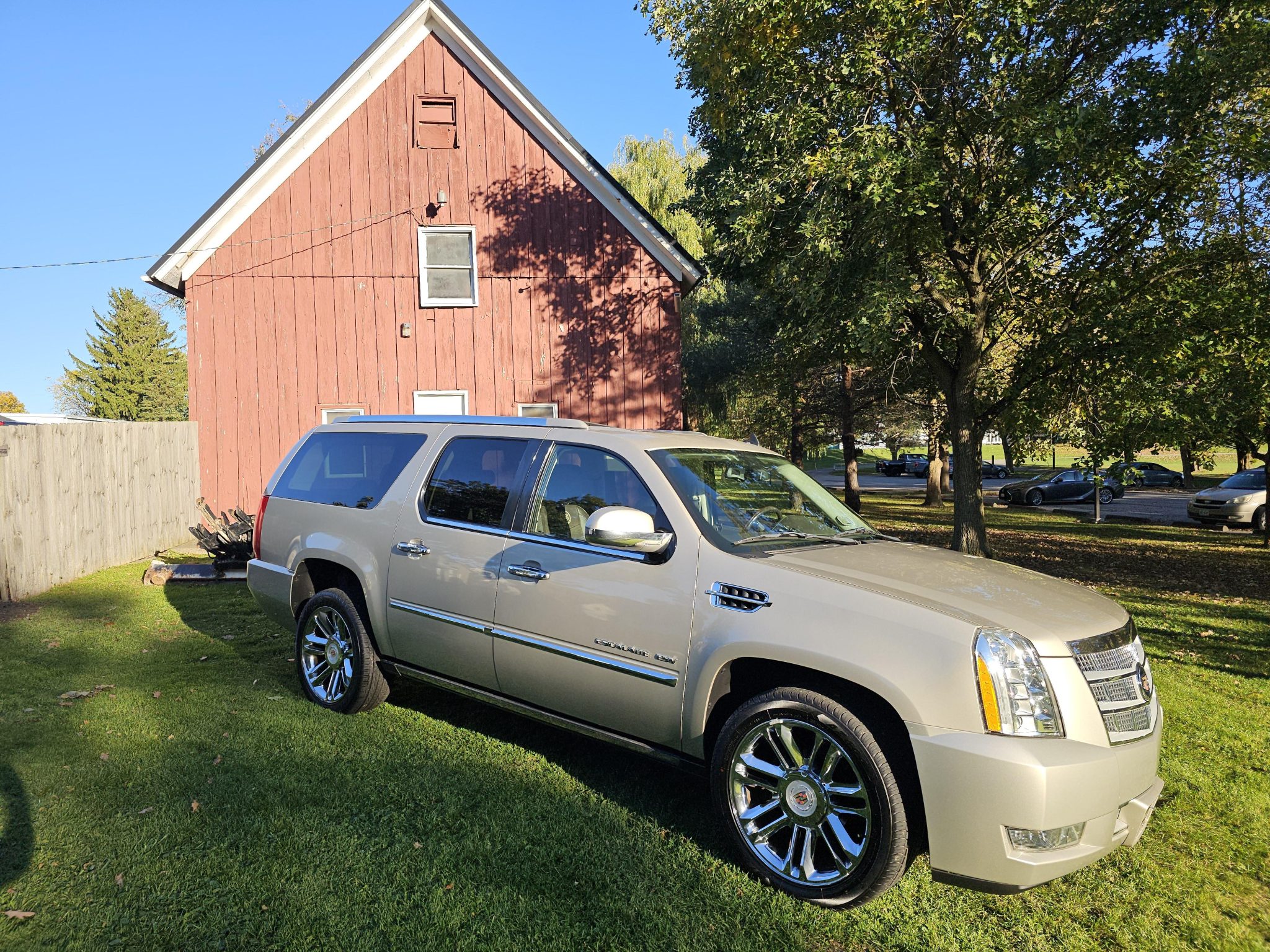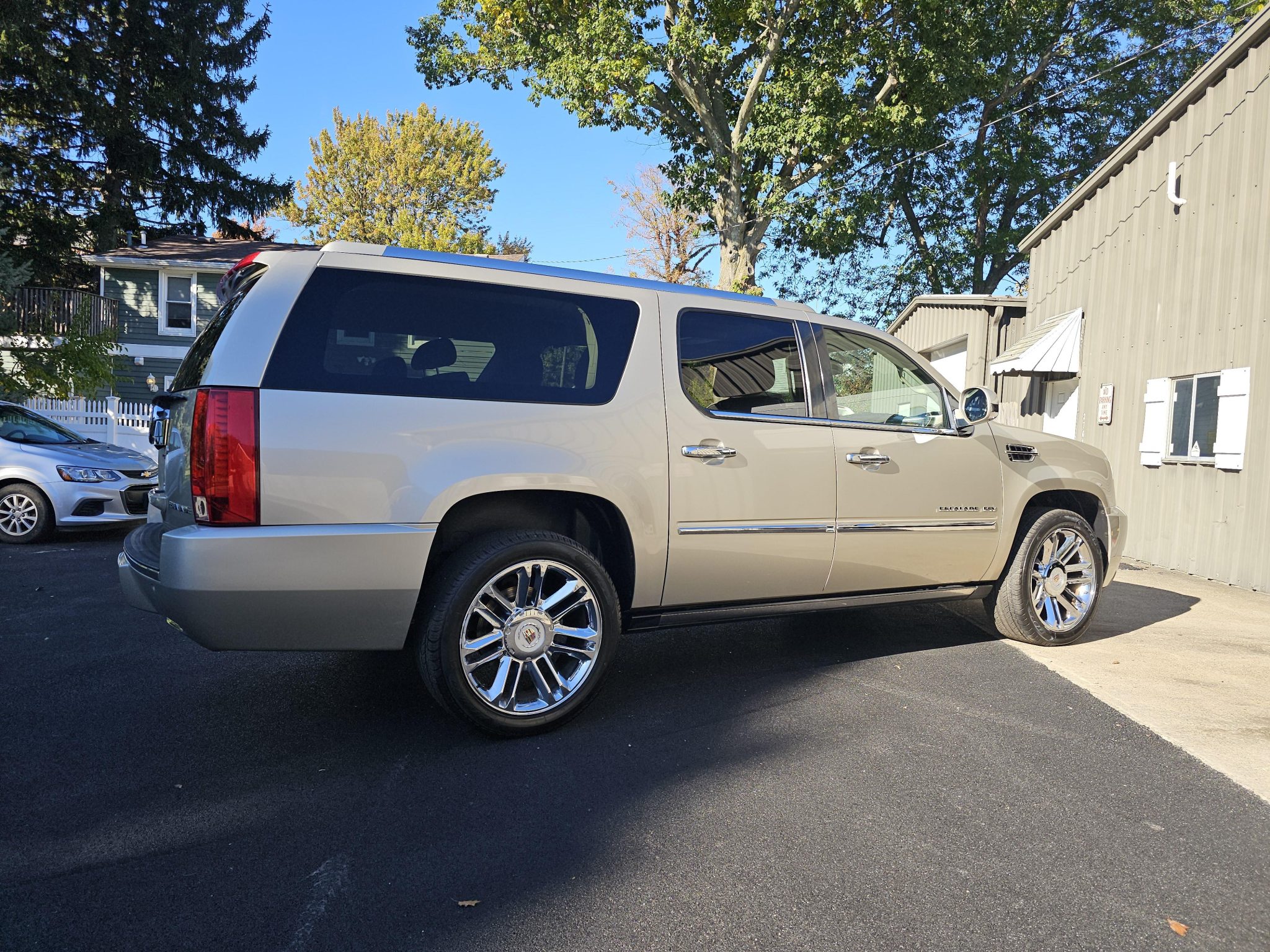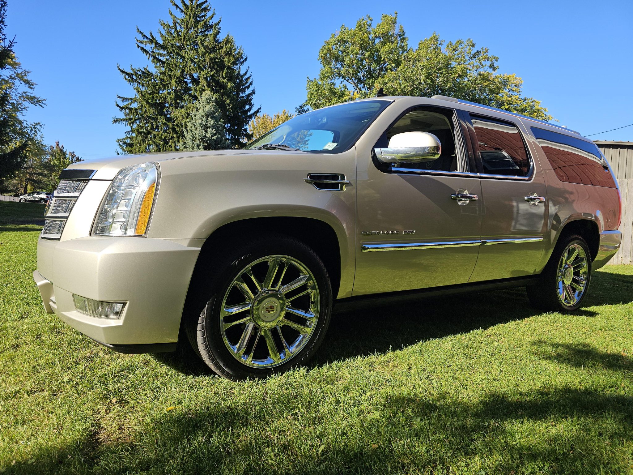 This 2013 Cadillac Escalade ESV Platinum is finished in Mocha Steel Metallic over Cocoa leather and powered by a 6.2-liter Vortec V8 that drives all four wheels through a six-speed automatic transmission and a locking rear differential. Equipment includes a power sunroof, a power-operated liftgate, power-retractable running boards, 22″ chromed-aluminum wheels, and Magnetic Ride Control. The interior features heated and ventilated front seats, heated second-row captains’ chairs, heated and cooled cupholders, three-zone automatic climate control, a heated steering wheel, a Bose surround sound system, and a rear-seat entertainment system.