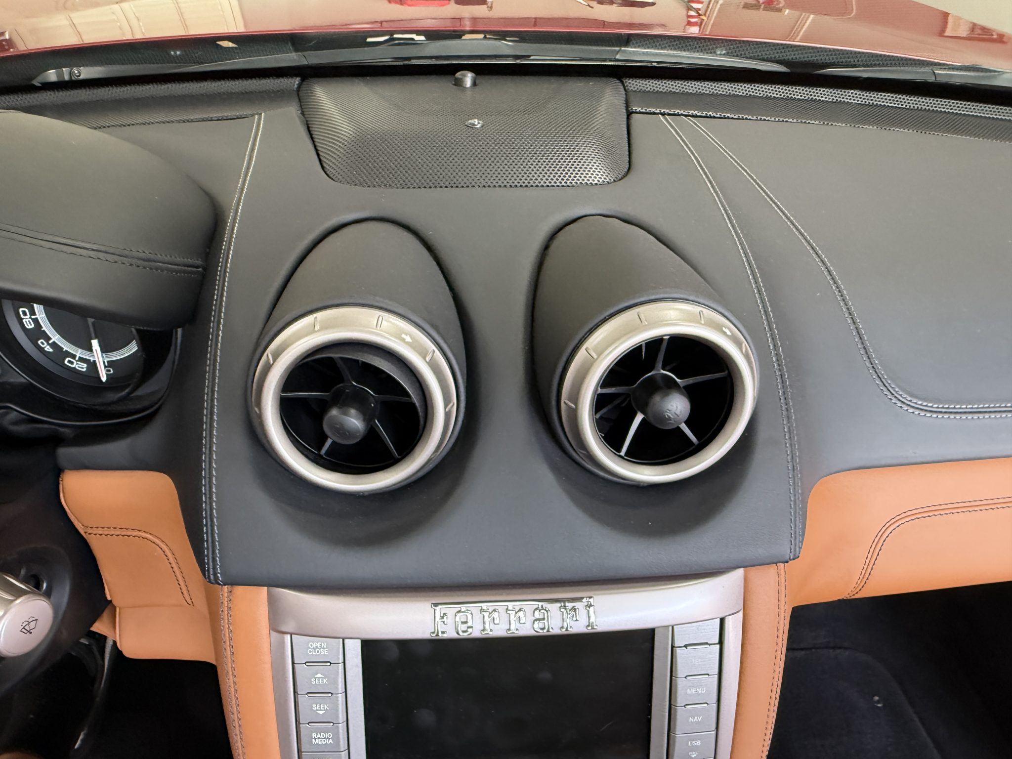 This 2013 Ferrari California has 17k miles and is powered by a 4.3-liter V8 paired with a seven-speed dual-clutch automatic transaxle. Finished in Rosso Mugello over Cuoio leather upholstery, the car is equipped with a MagneRide dual-mode suspension, a limited-slip differential, a retractable hardtop, xenon headlights, Scuderia Ferrari fender shields, parking sensors, 19″ five-spoke wheels, carbon-ceramic brakes with yellow-finished calipers, a backup camera, heated power-adjustable front seats, and a touchscreen infotainment system with navigation.