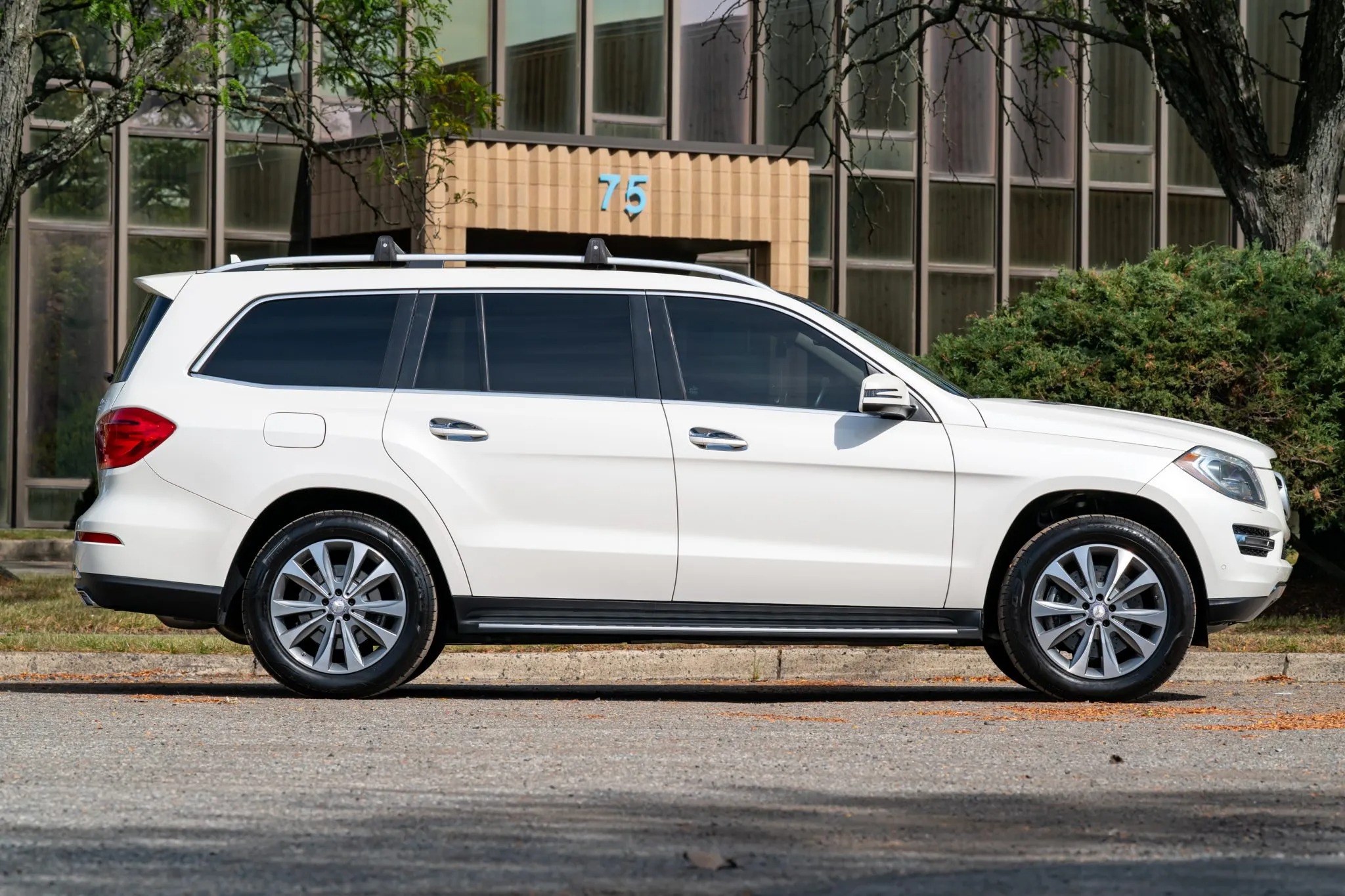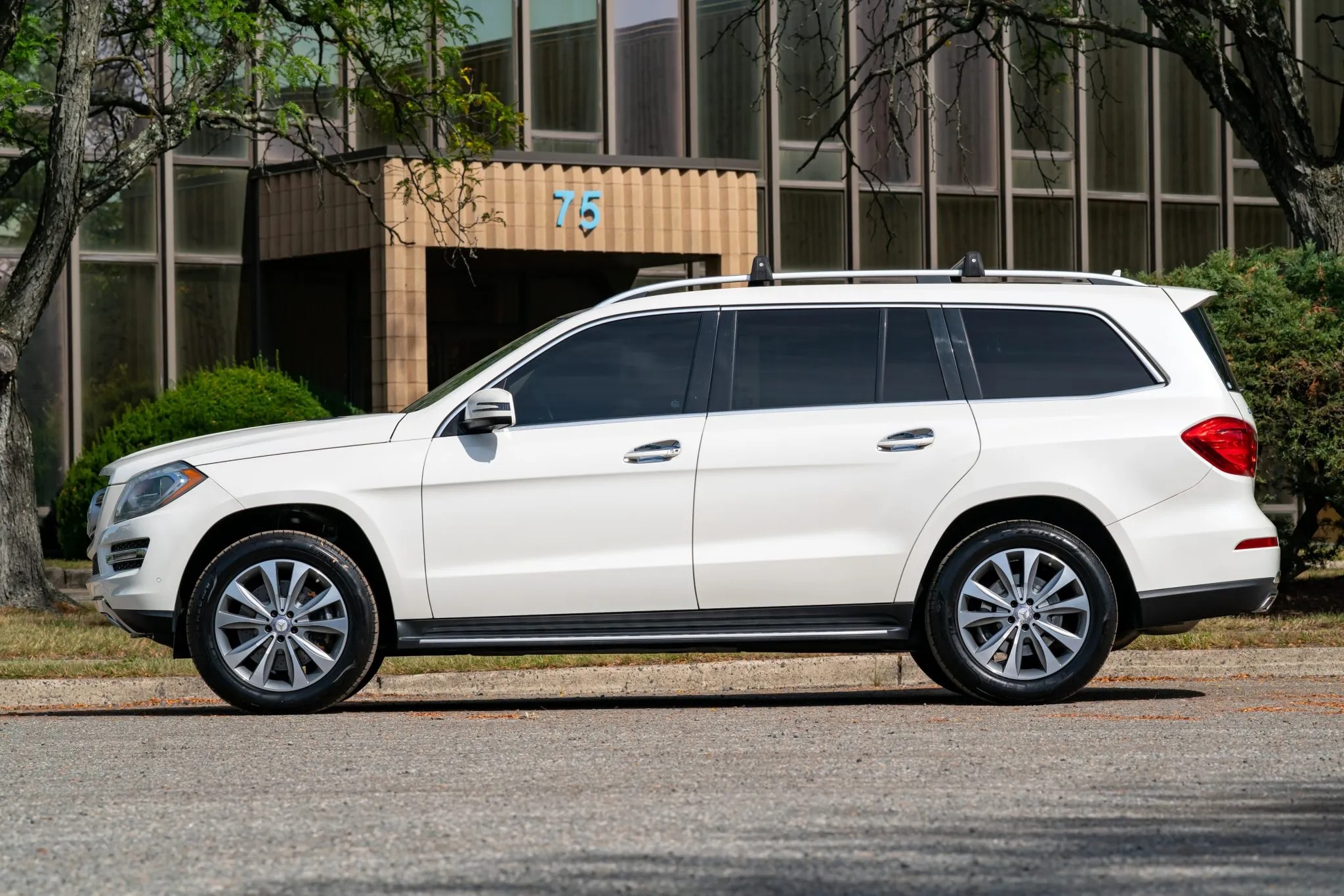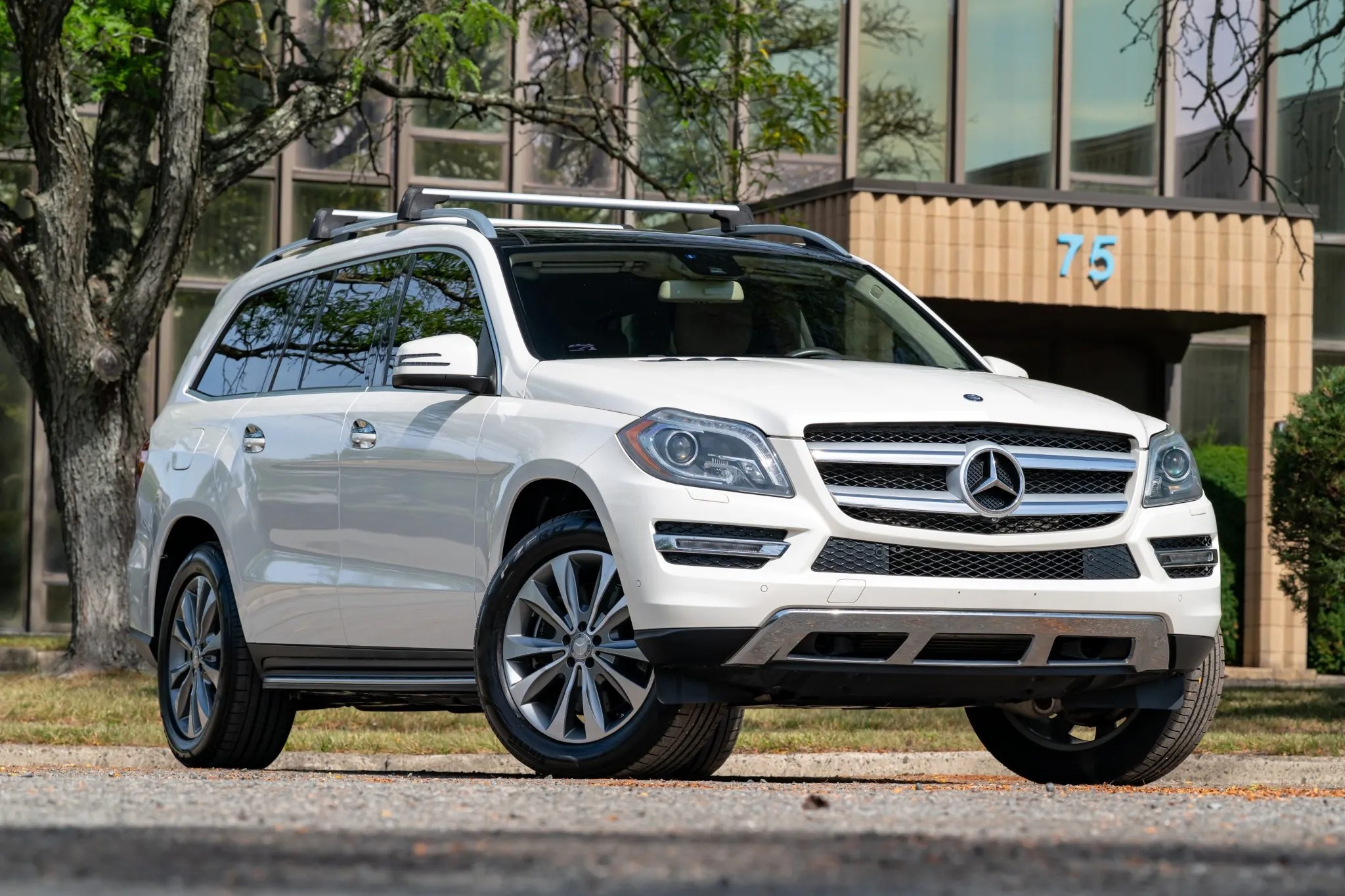 2013 Mercedes-Benz GL450 has 19k miles, is finished in Diamond White Metallic over beige leather upholstery. Power is provided by a twin-turbocharged 4.6-liter V8 linked with a seven-speed automatic transmission and a 4MATIC all-wheel-drive system. Equipment includes the Lane Tracking Package, a panoramic sunroof, bi-xenon headlights, parking sensors, a powered tailgate, 20″ 10-spoke wheels, heated and ventilated power-adjustable front seats, a heated steering wheel, heated second-row seats, third-row seating, Keyless Go, a Harman Kardon LOGIC7 surround sound system, navigation, and three-zone automatic climate control.